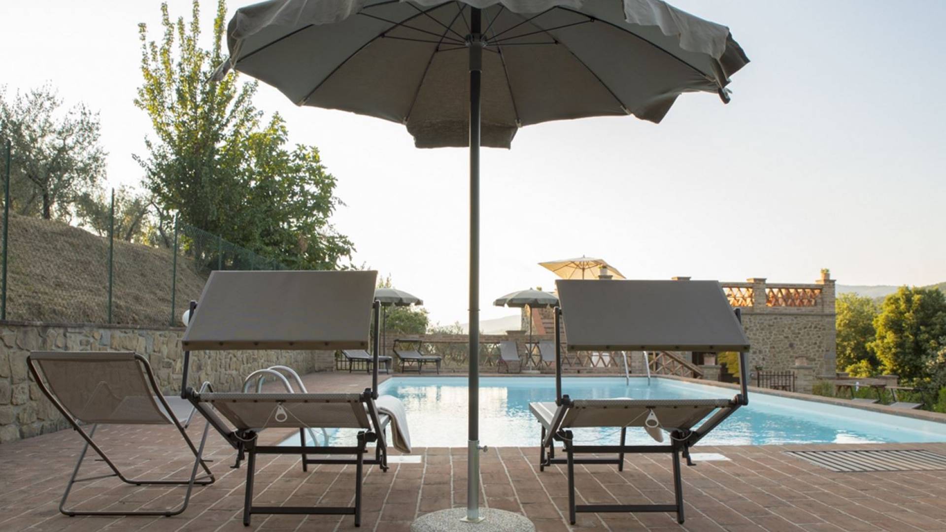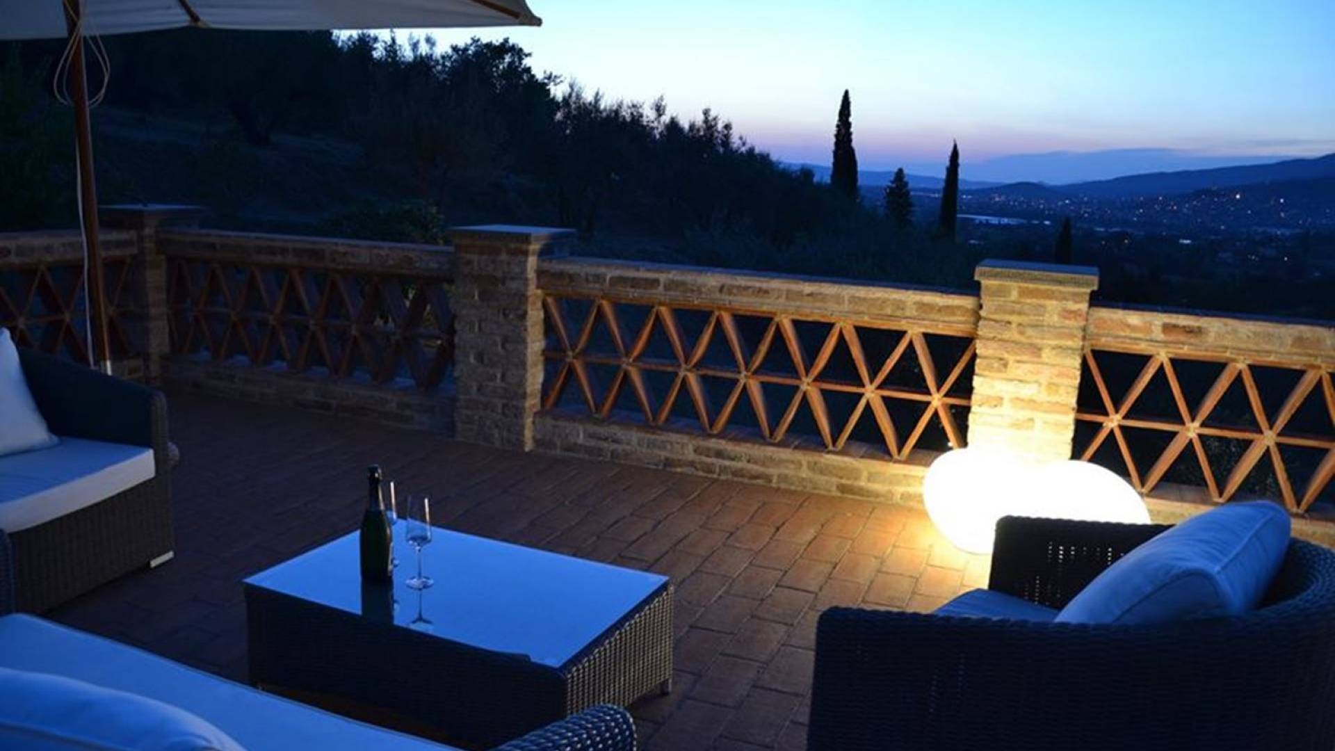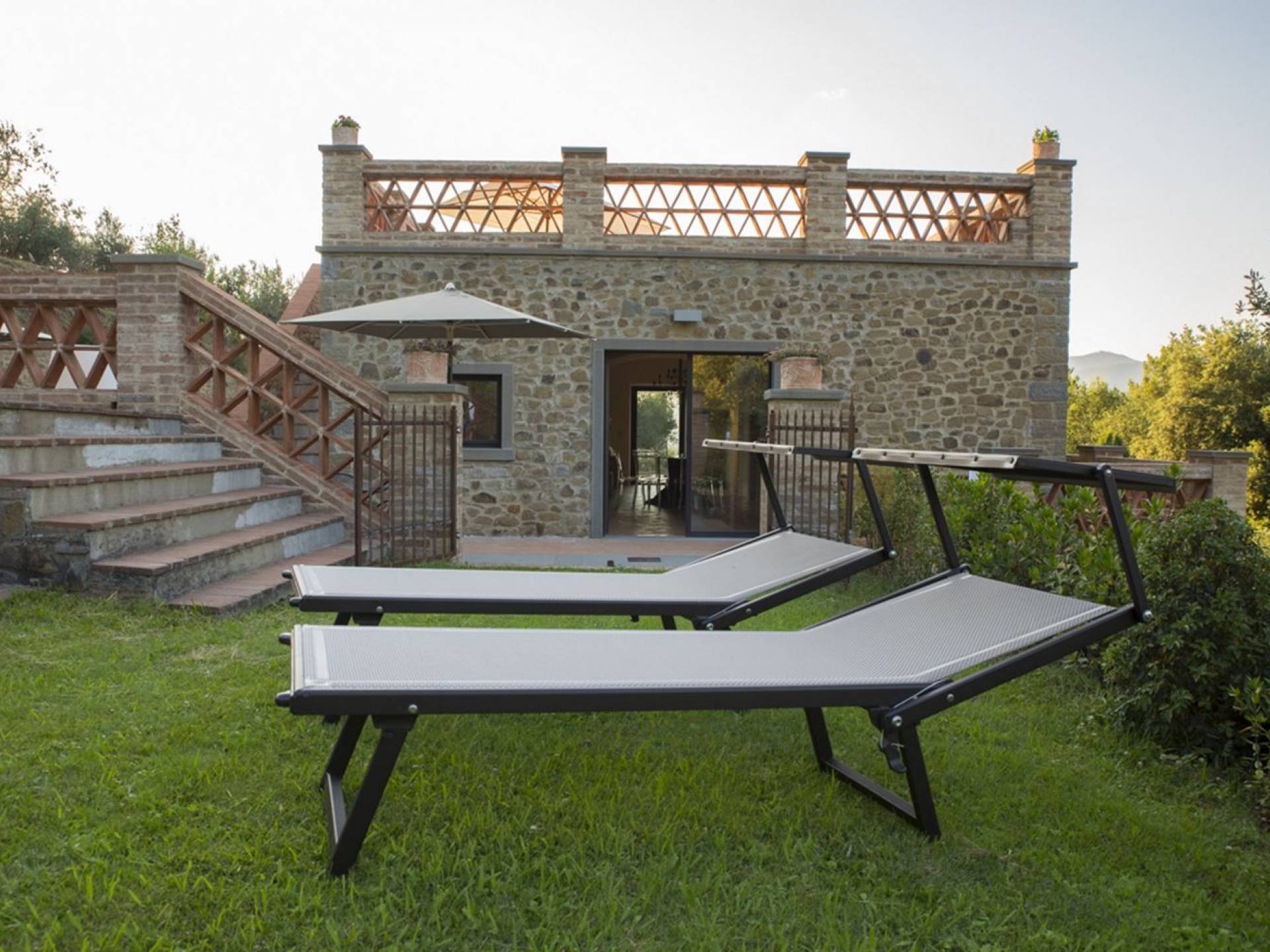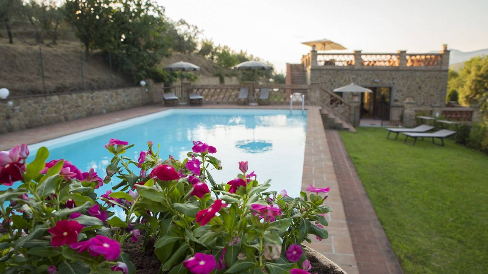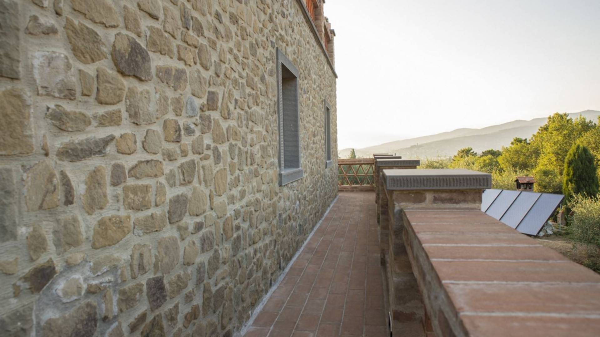 Draußen bietet das große Schwimmbad jedoch die Möglichkeit, alleine oder in der Gruppe Spaß zu haben und zu entspannen. Unmittelbar außerhalb des Wohnbereichs befindet sich auch ein Bereich, in dem Sie Ihre Mahlzeiten genießen können. Auf der Panoramaterrasse auf dem Dach der Villa befindet sich auch eine kleine beleuchtete Lounge, von der aus Sie den herrlichen Sonnenuntergang über Castiglion Fiorentino genießen können, einer Stadt etruskischen Ursprungs, die ihren Namen der florentinischen Herrschaft im Mittelalter verdankt und die, Noch heute sind fast die mittelalterlichen Mauern erhalten, die vom Bergfried dominiert werden. Eine zehnminütige Autofahrt entfernt finden Sie auch die Burg von Montecchio, eine alte Burg auf einem Hügel mit Blick auf das Val di Chiana.