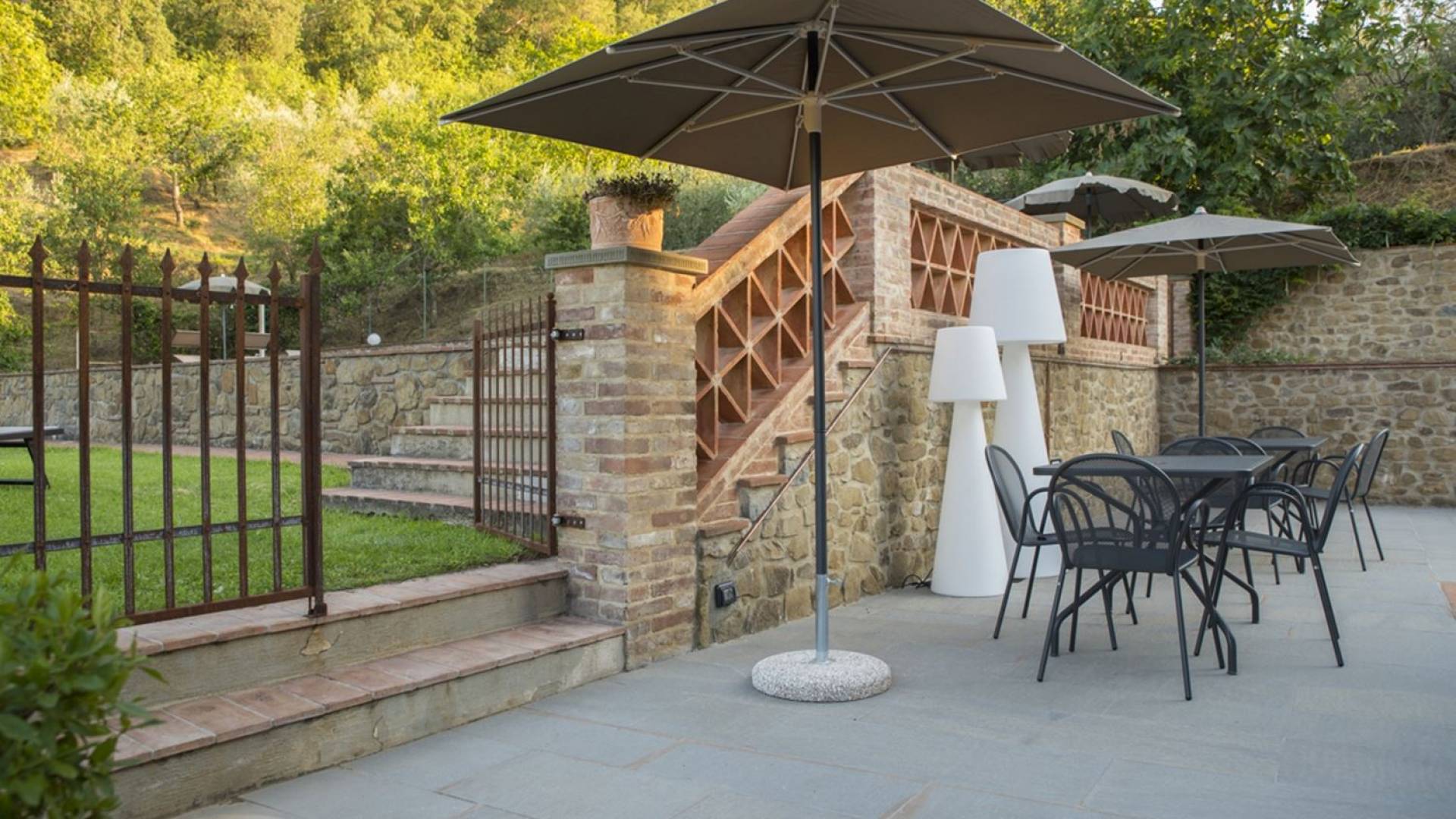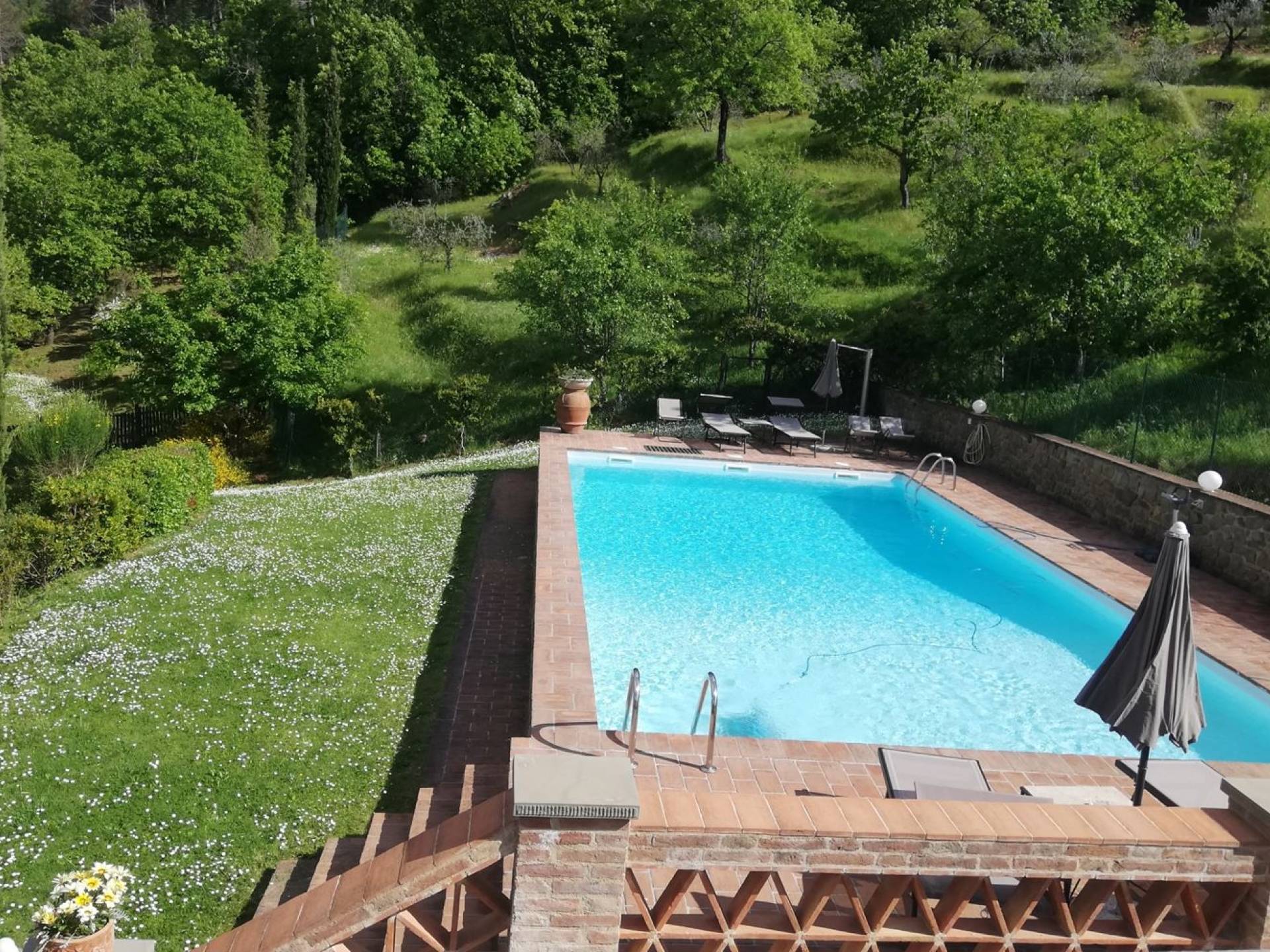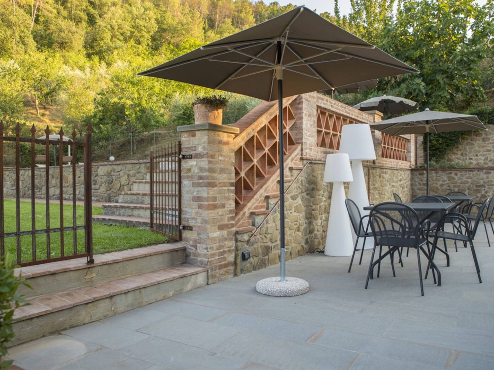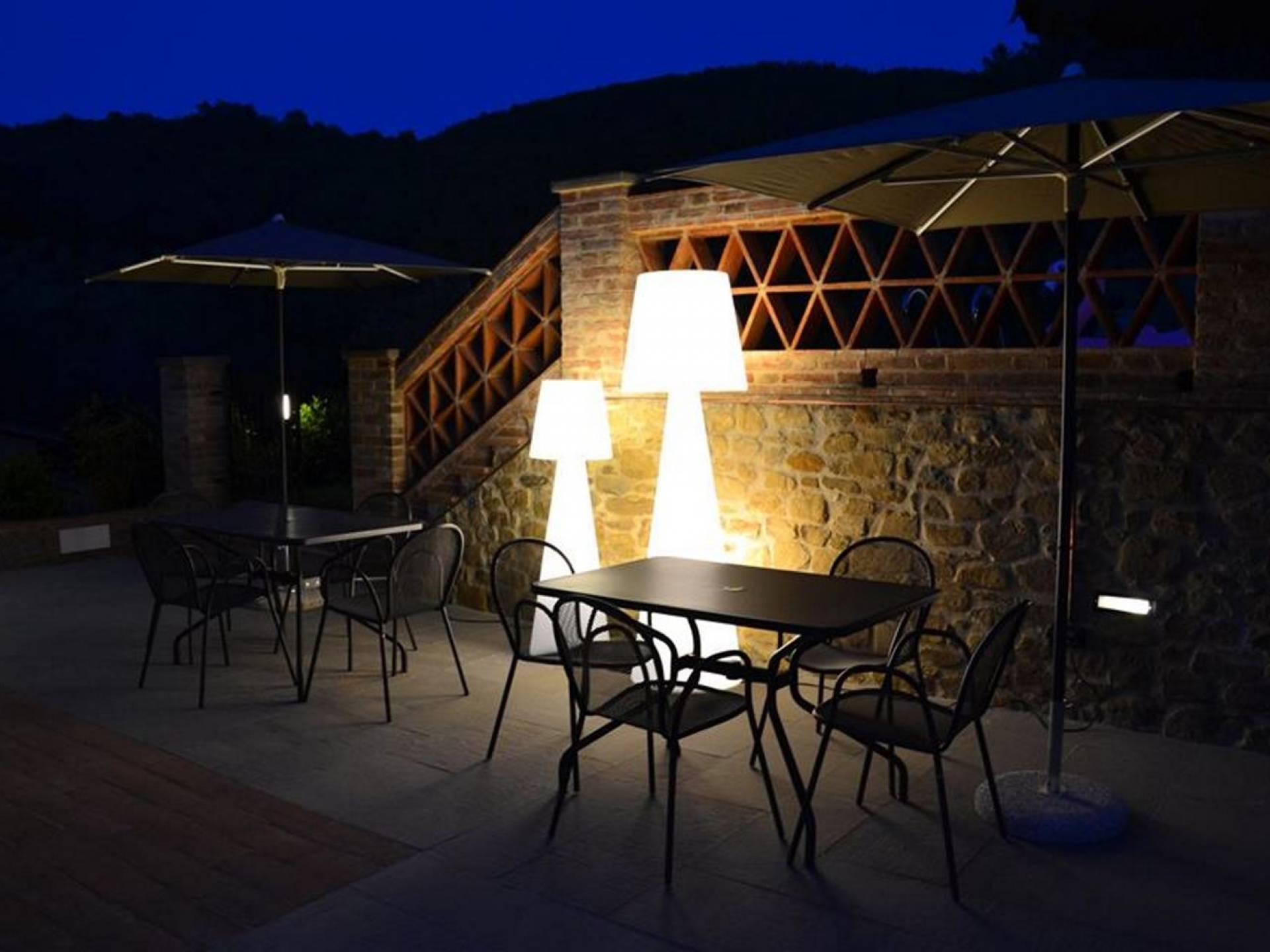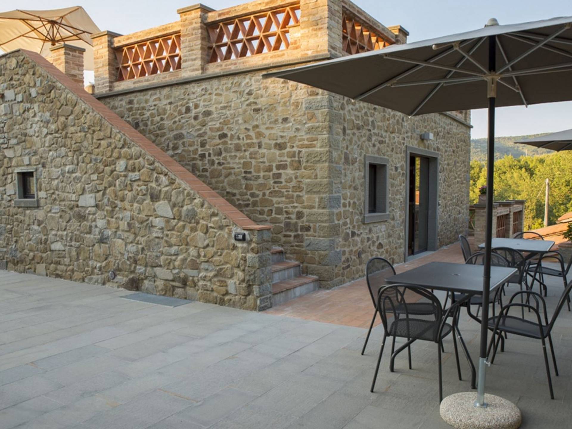 Draußen bietet das große Schwimmbad jedoch die Möglichkeit, alleine oder in der Gruppe Spaß zu haben und zu entspannen. Unmittelbar außerhalb des Wohnbereichs befindet sich auch ein Bereich, in dem Sie Ihre Mahlzeiten genießen können. Auf der Panoramaterrasse auf dem Dach der Villa befindet sich auch eine kleine beleuchtete Lounge, von der aus Sie den herrlichen Sonnenuntergang über Castiglion Fiorentino genießen können, einer Stadt etruskischen Ursprungs, die ihren Namen der florentinischen Herrschaft im Mittelalter verdankt und die, Noch heute sind fast die mittelalterlichen Mauern erhalten, die vom Bergfried dominiert werden. Eine zehnminütige Autofahrt entfernt finden Sie auch die Burg von Montecchio, eine alte Burg auf einem Hügel mit Blick auf das Val di Chiana.
