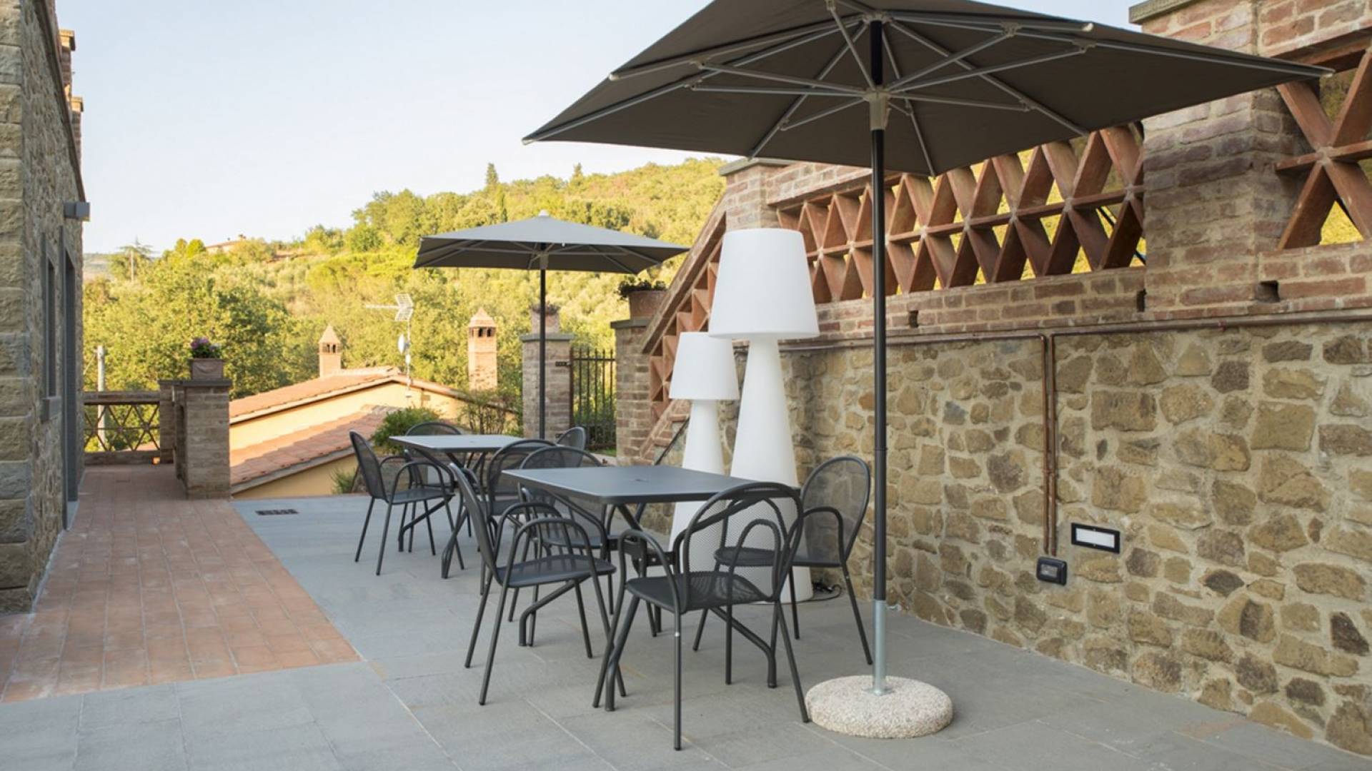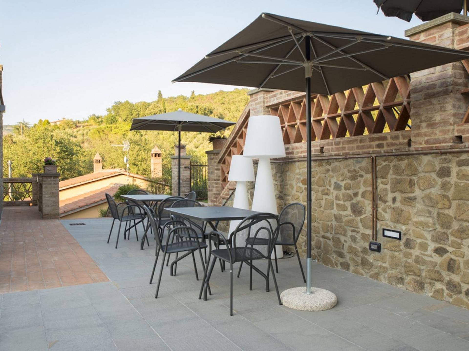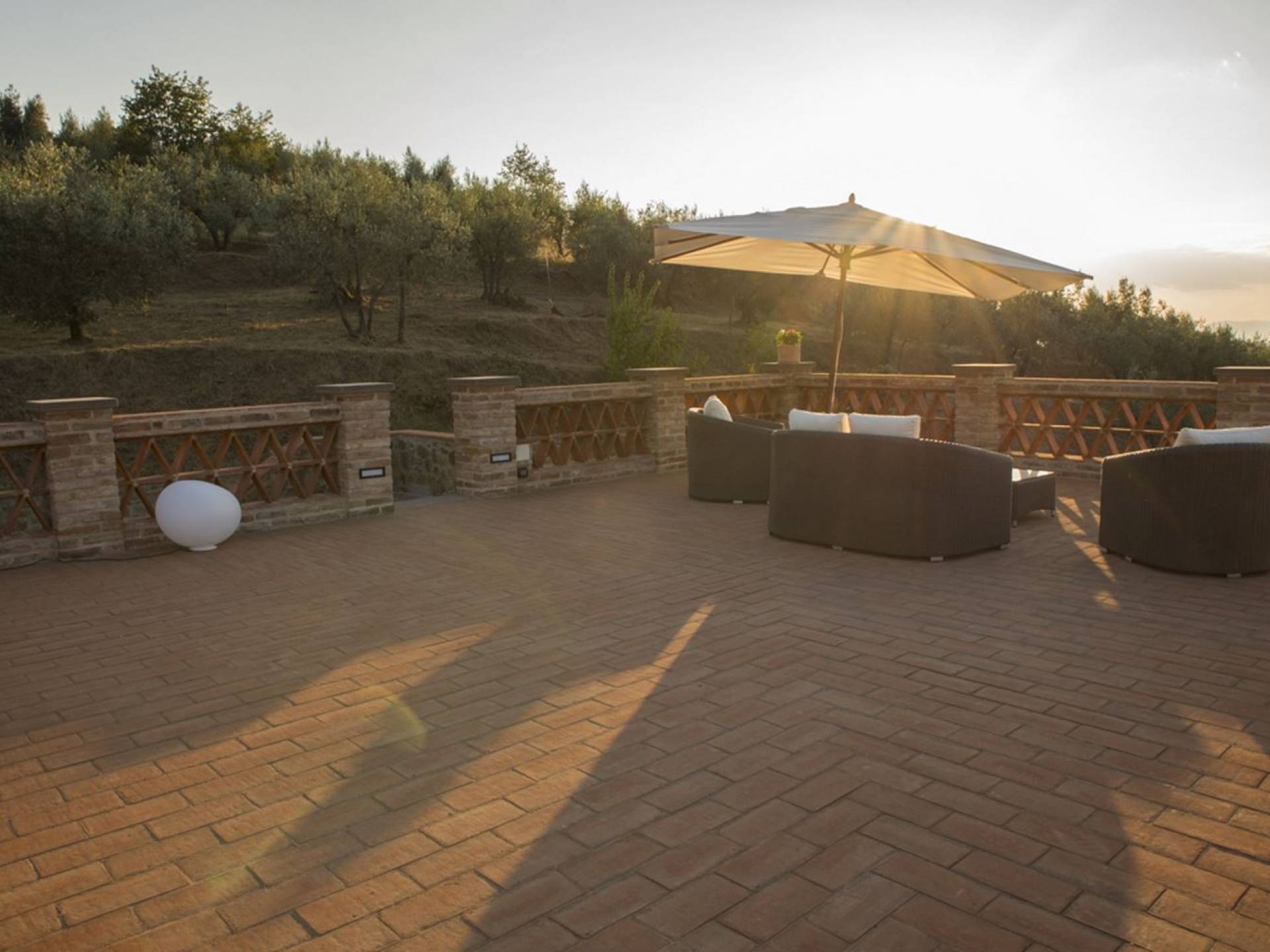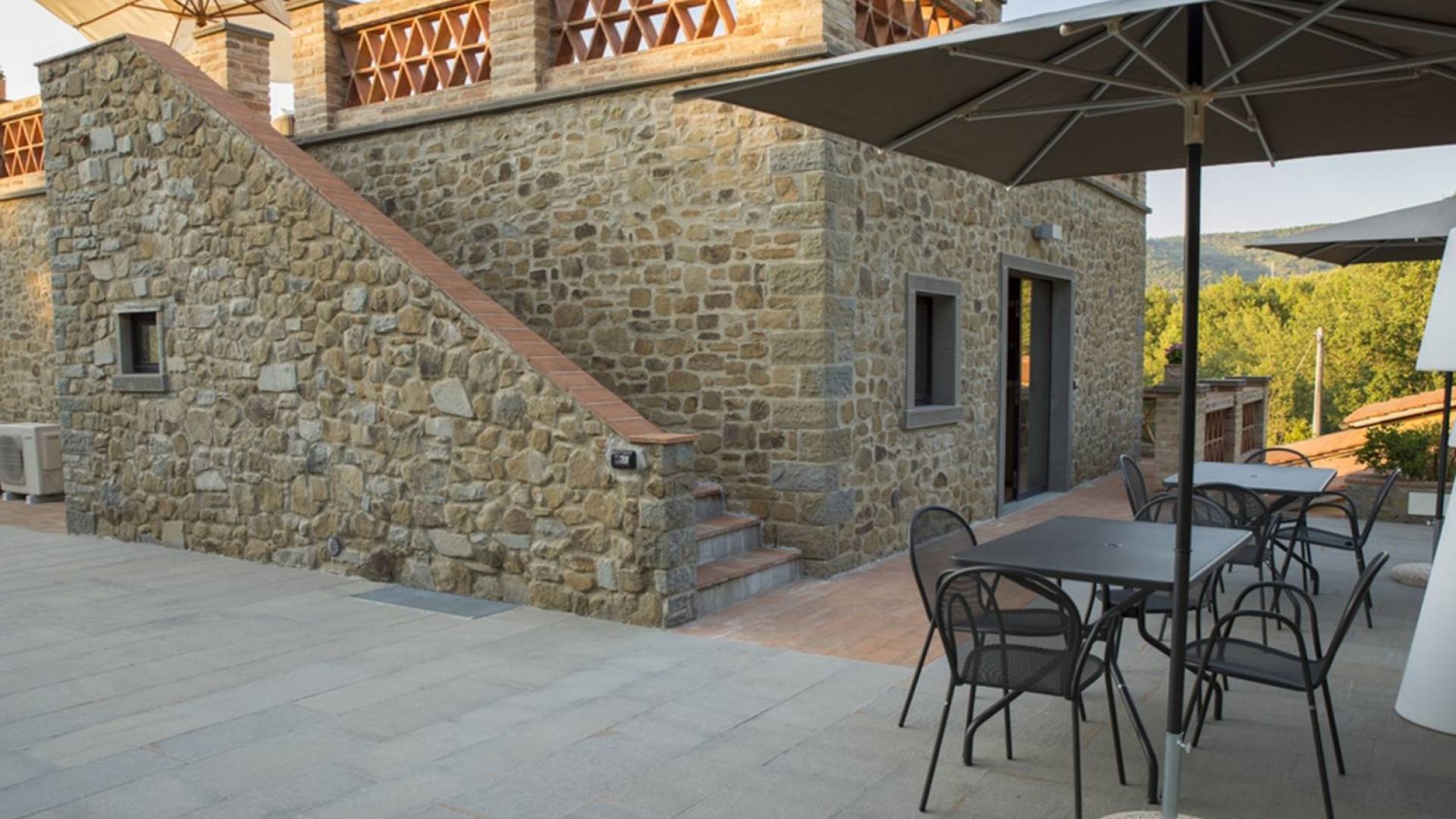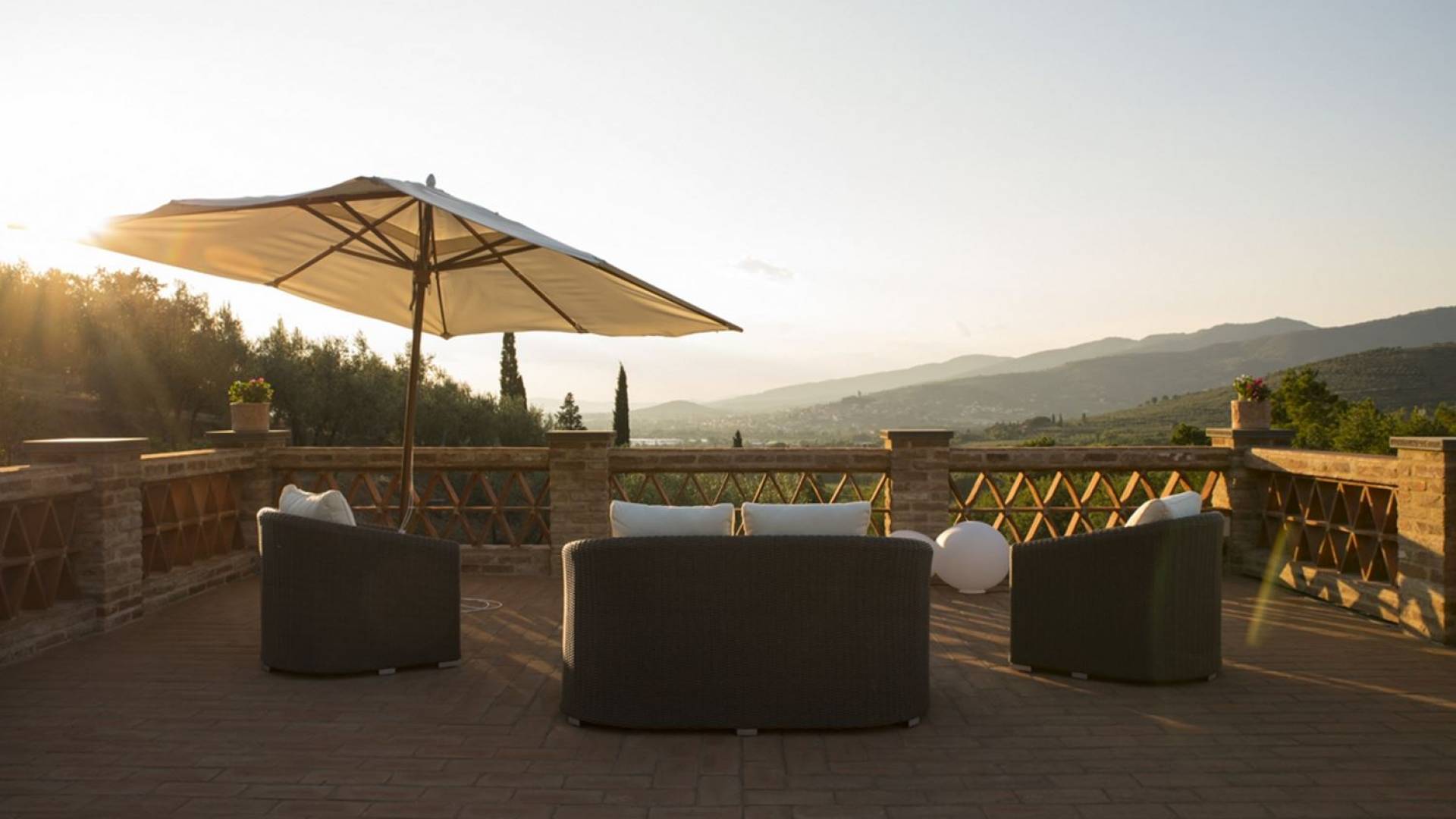 Draußen bietet das große Schwimmbad jedoch die Möglichkeit, alleine oder in der Gruppe Spaß zu haben und zu entspannen. Unmittelbar außerhalb des Wohnbereichs befindet sich auch ein Bereich, in dem Sie Ihre Mahlzeiten genießen können. Auf der Panoramaterrasse auf dem Dach der Villa befindet sich auch eine kleine beleuchtete Lounge, von der aus Sie den herrlichen Sonnenuntergang über Castiglion Fiorentino genießen können, einer Stadt etruskischen Ursprungs, die ihren Namen der florentinischen Herrschaft im Mittelalter verdankt und die, Noch heute sind fast die mittelalterlichen Mauern erhalten, die vom Bergfried dominiert werden. Eine zehnminütige Autofahrt entfernt finden Sie auch die Burg von Montecchio, eine alte Burg auf einem Hügel mit Blick auf das Val di Chiana.