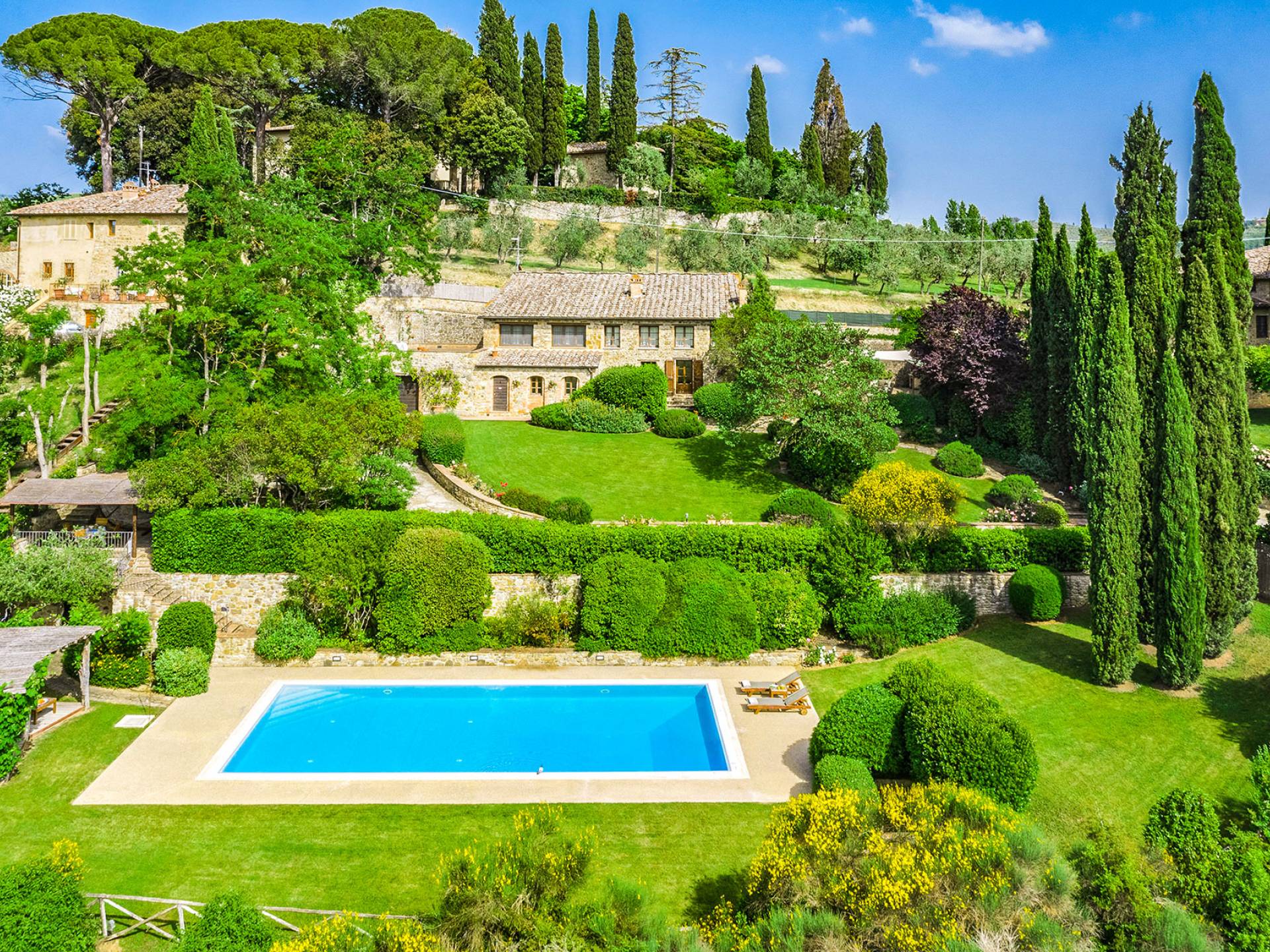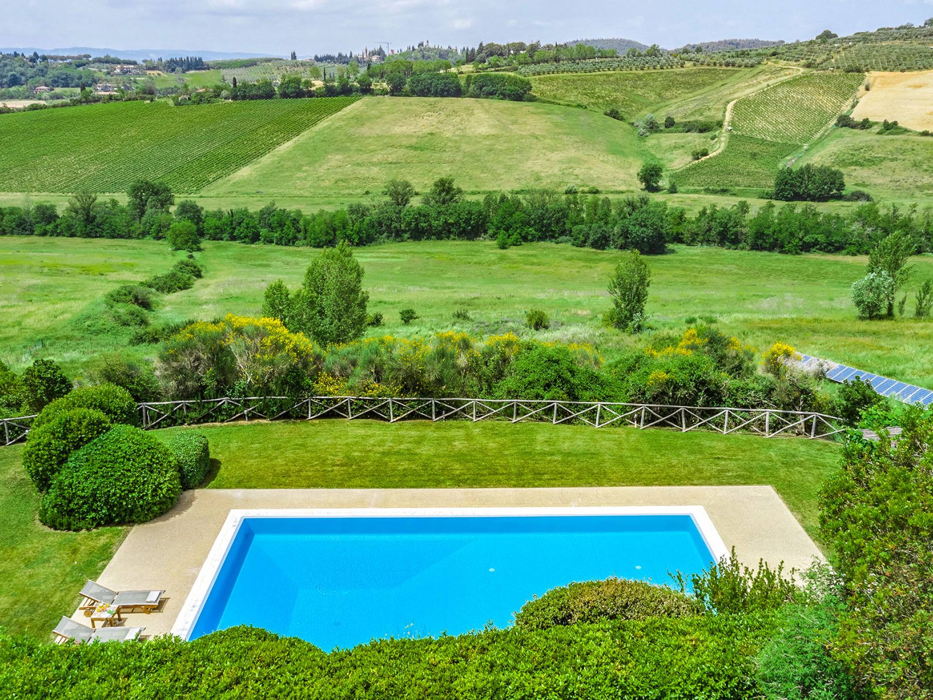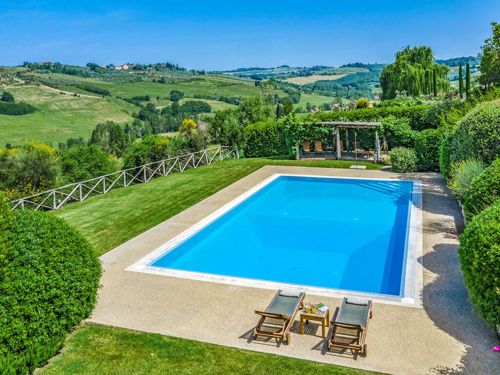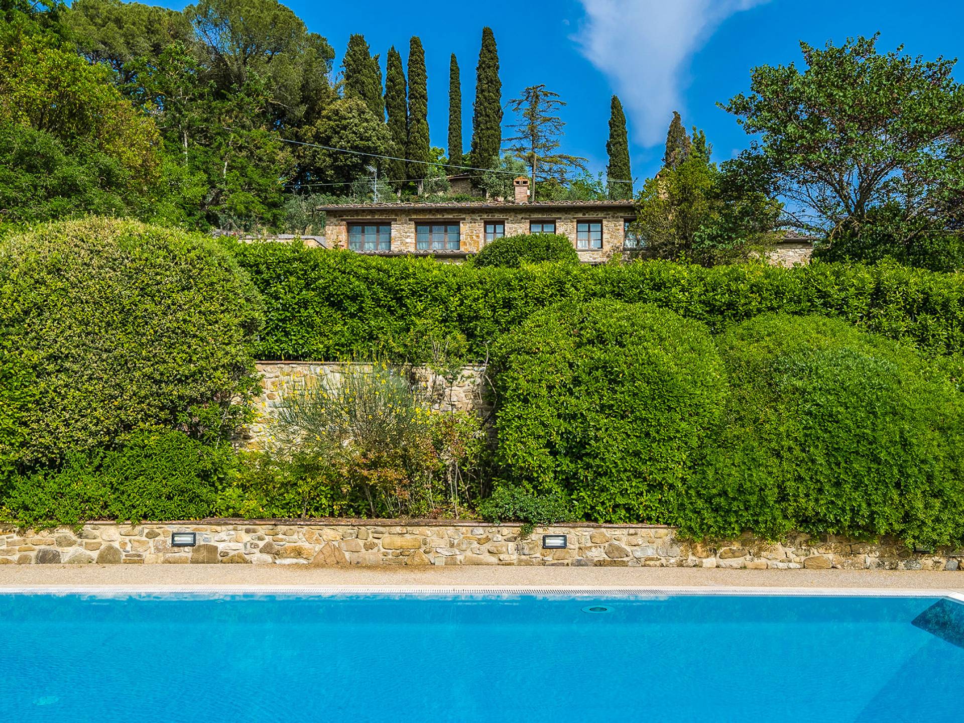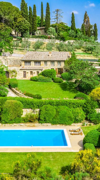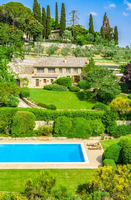 Villa Gemma Tuscany ist eine Luxusvilla mit 3 Schlafzimmern und privatem Pool. Die Villa Gemma ist eine große und komfortable Villa in Hanglage zwischen Florenz und Siena. Bis vor kurzem war es ein verlassener Stall, wurde aber von den neuen Eigentümern mit größter Sorgfalt restauriert und das alte Gebäude in ein prächtiges Landhaus umgewandelt, das voller Charme und Wärme ist. Außerhalb der Küche gibt es eine geräumige, möblierte Loggia und einen schattigen Bereich für draußen essen.