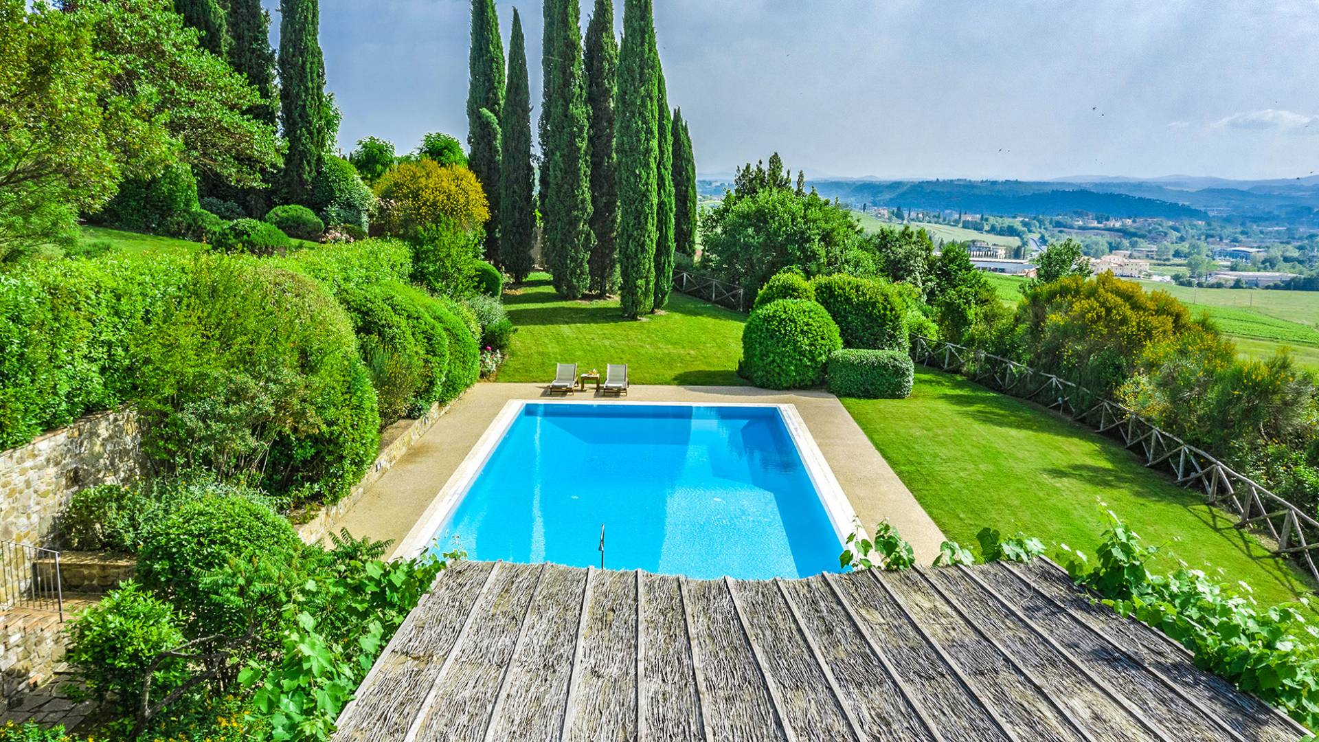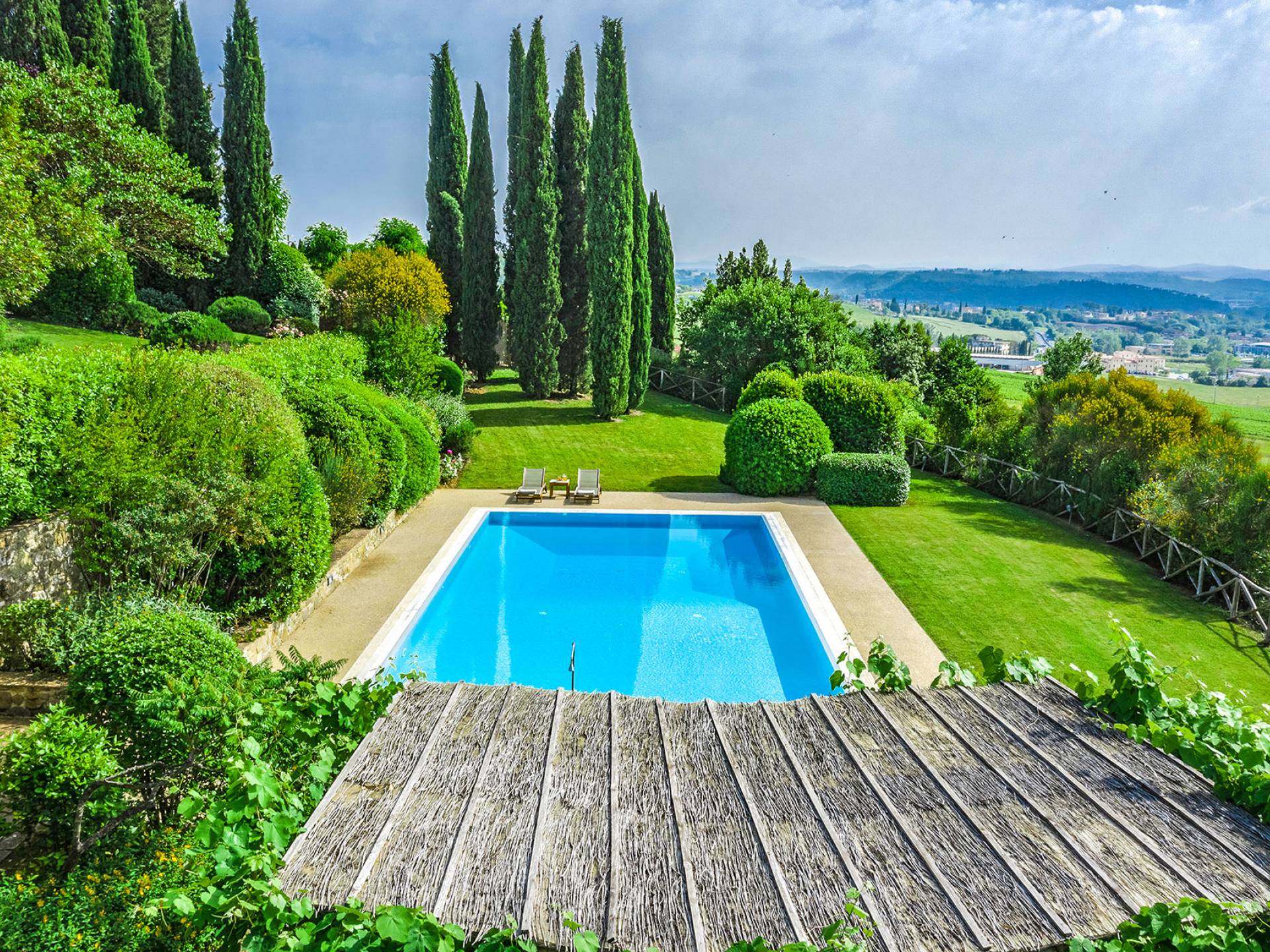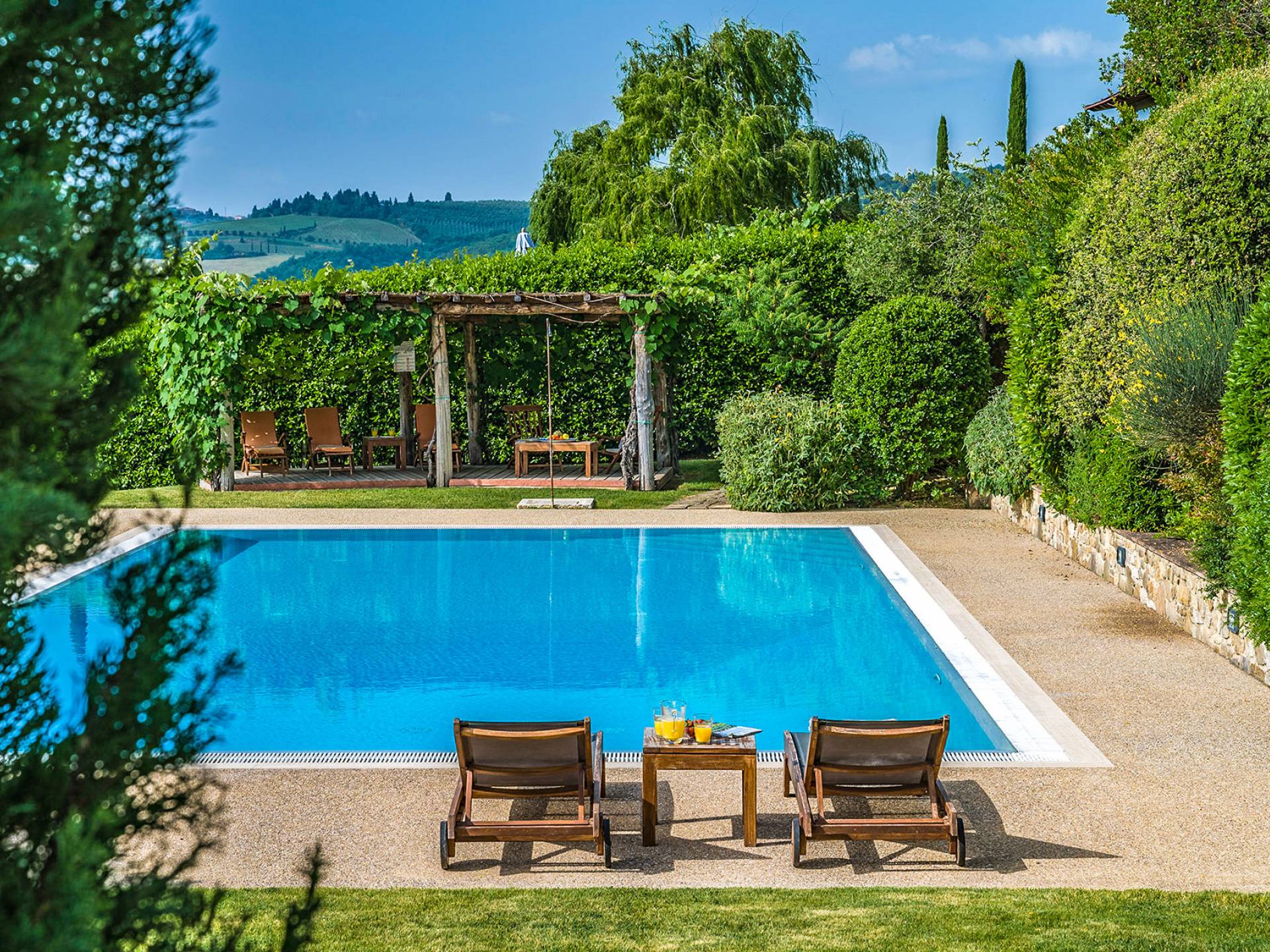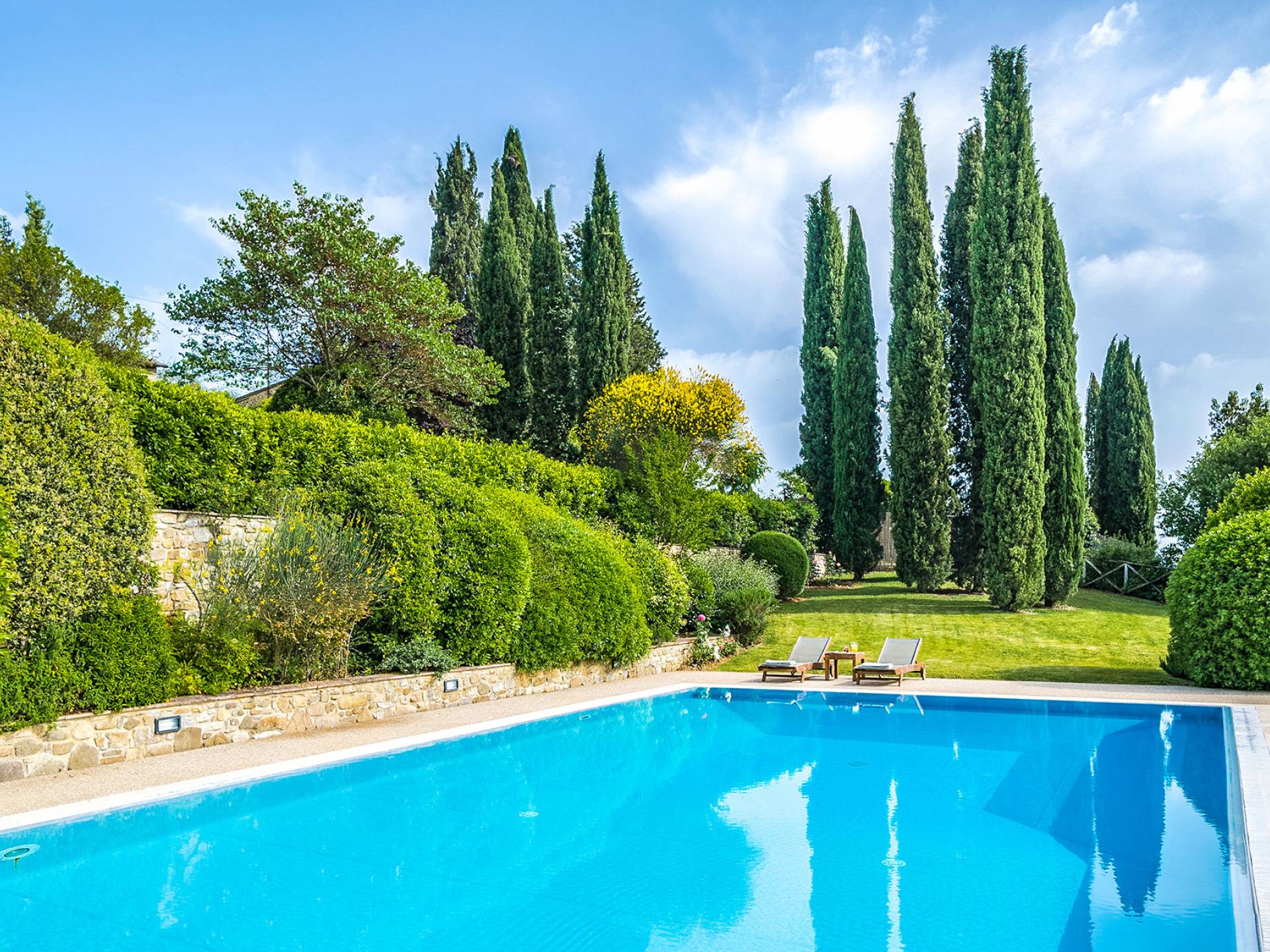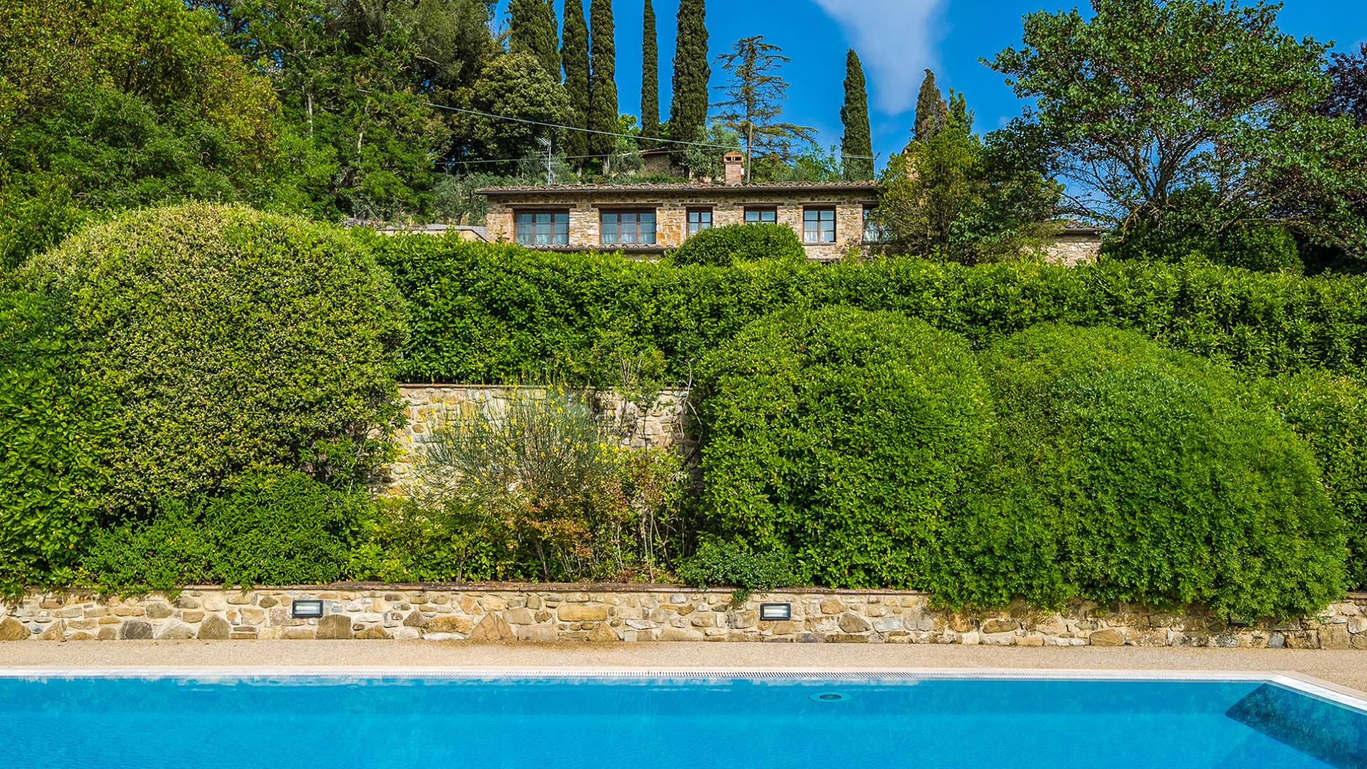 Villa Gemma Tuscany ist eine Luxusvilla mit 3 Schlafzimmern und privatem Pool. Die Villa Gemma ist eine große und komfortable Villa in Hanglage zwischen Florenz und Siena. Bis vor kurzem war es ein verlassener Stall, wurde aber von den neuen Eigentümern mit größter Sorgfalt restauriert und das alte Gebäude in ein prächtiges Landhaus umgewandelt, das voller Charme und Wärme ist. Außerhalb der Küche gibt es eine geräumige, möblierte Loggia und einen schattigen Bereich für draußen essen.