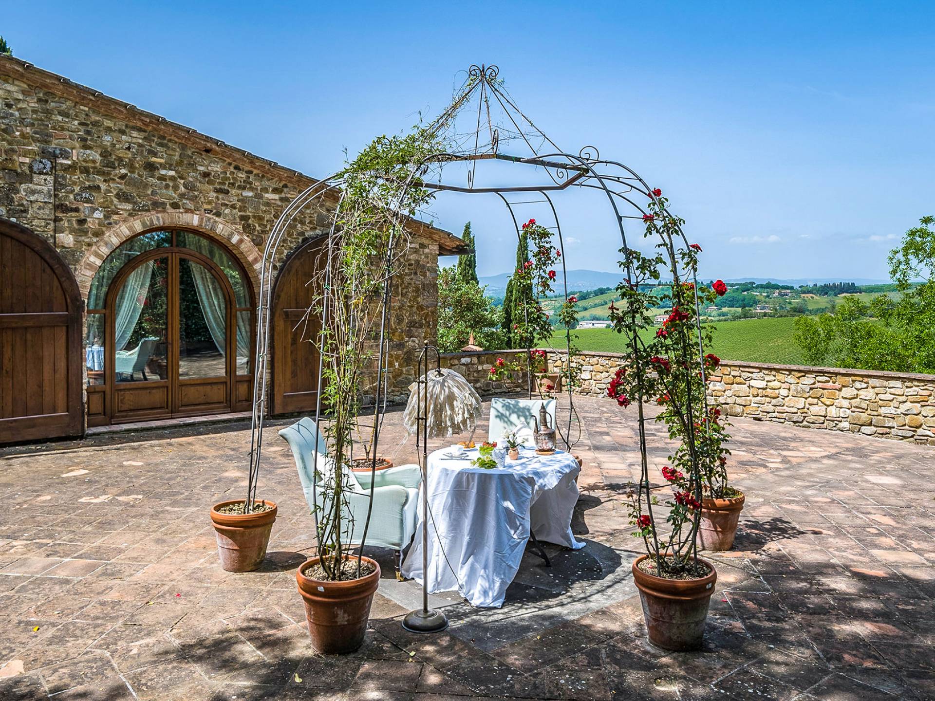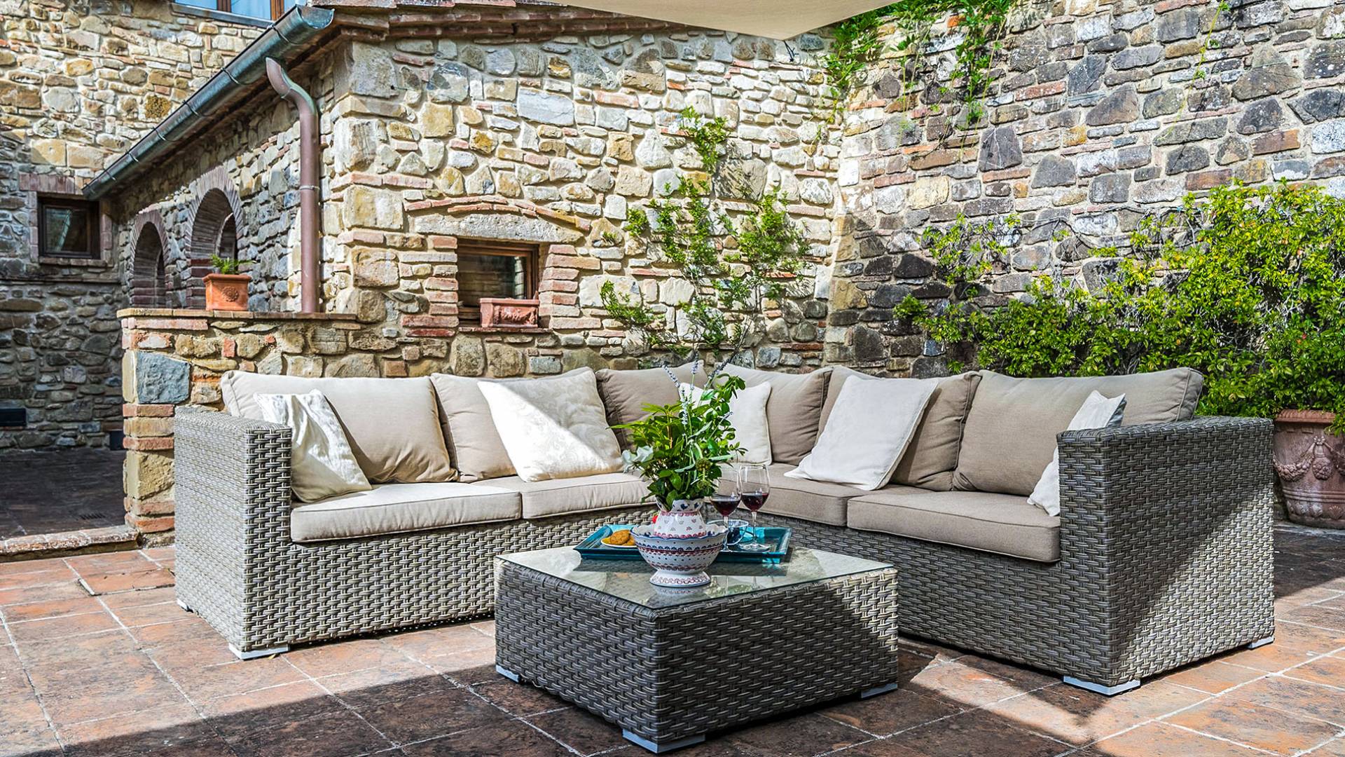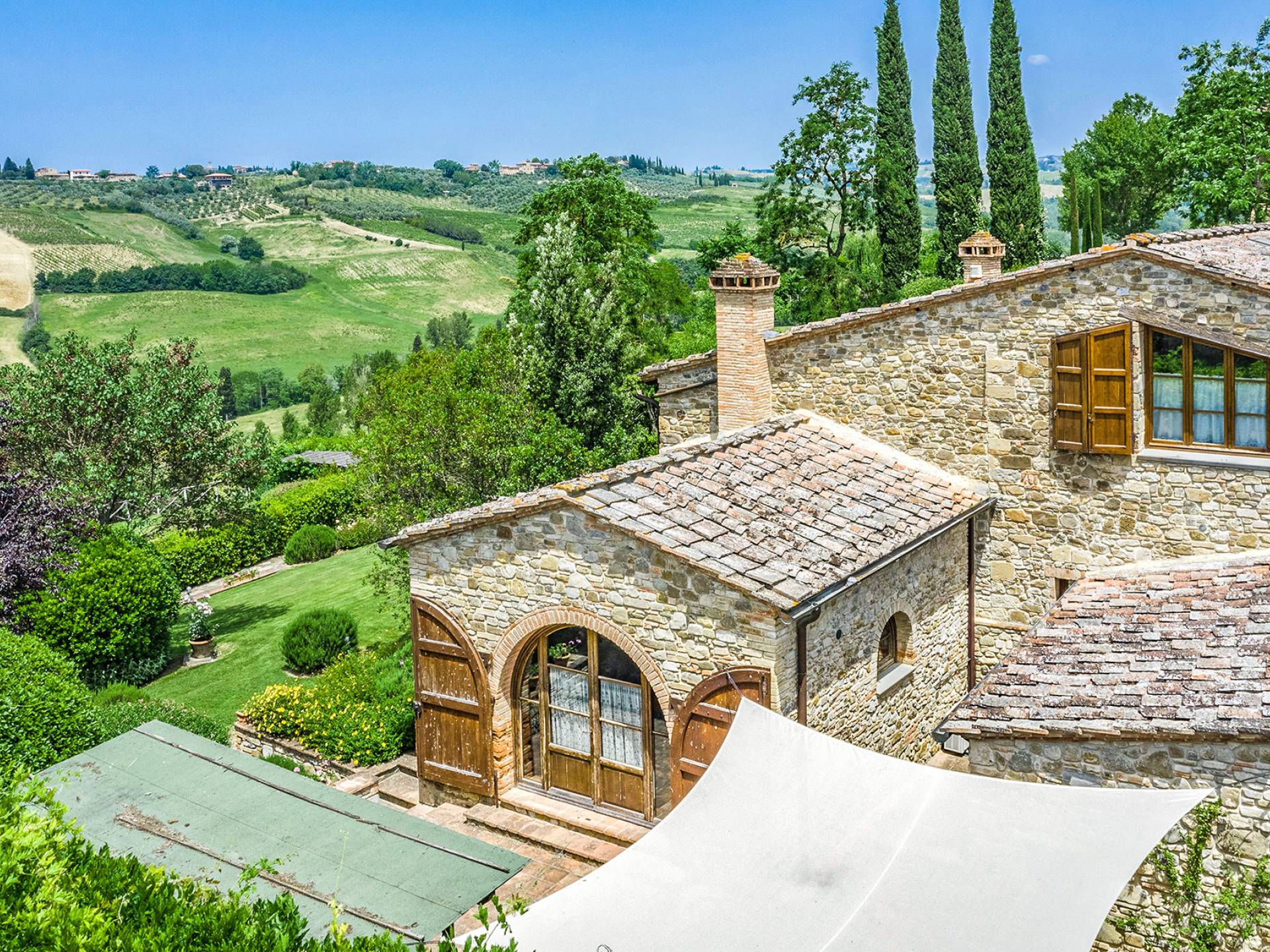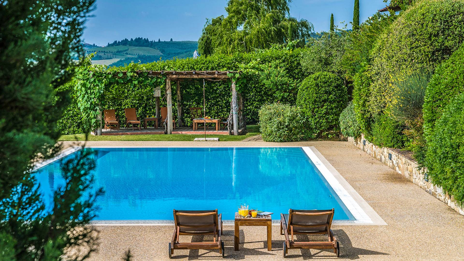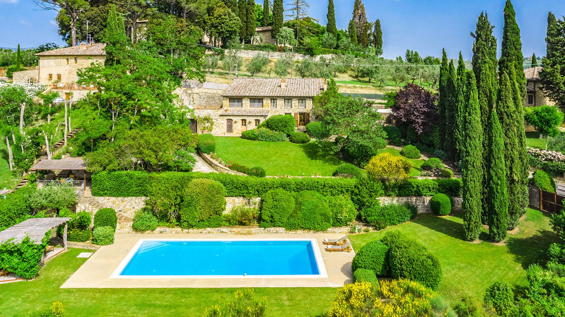 Villa Gemma Tuscany ist eine Luxusvilla mit 3 Schlafzimmern und privatem Pool. Die Villa Gemma ist eine große und komfortable Villa in Hanglage zwischen Florenz und Siena. Bis vor kurzem war es ein verlassener Stall, wurde aber von den neuen Eigentümern mit größter Sorgfalt restauriert und das alte Gebäude in ein prächtiges Landhaus umgewandelt, das voller Charme und Wärme ist. Außerhalb der Küche gibt es eine geräumige, möblierte Loggia und einen schattigen Bereich für draußen essen.