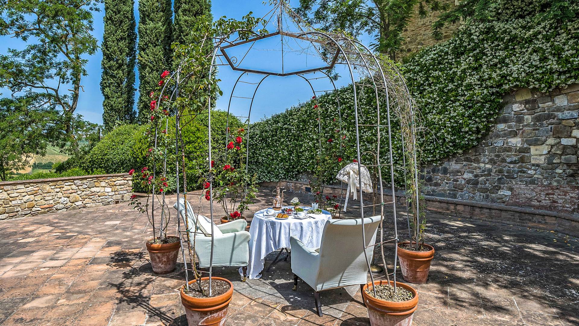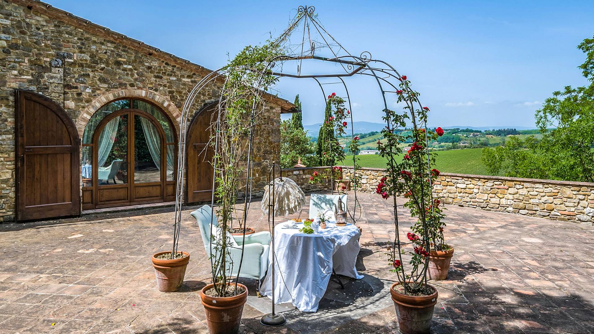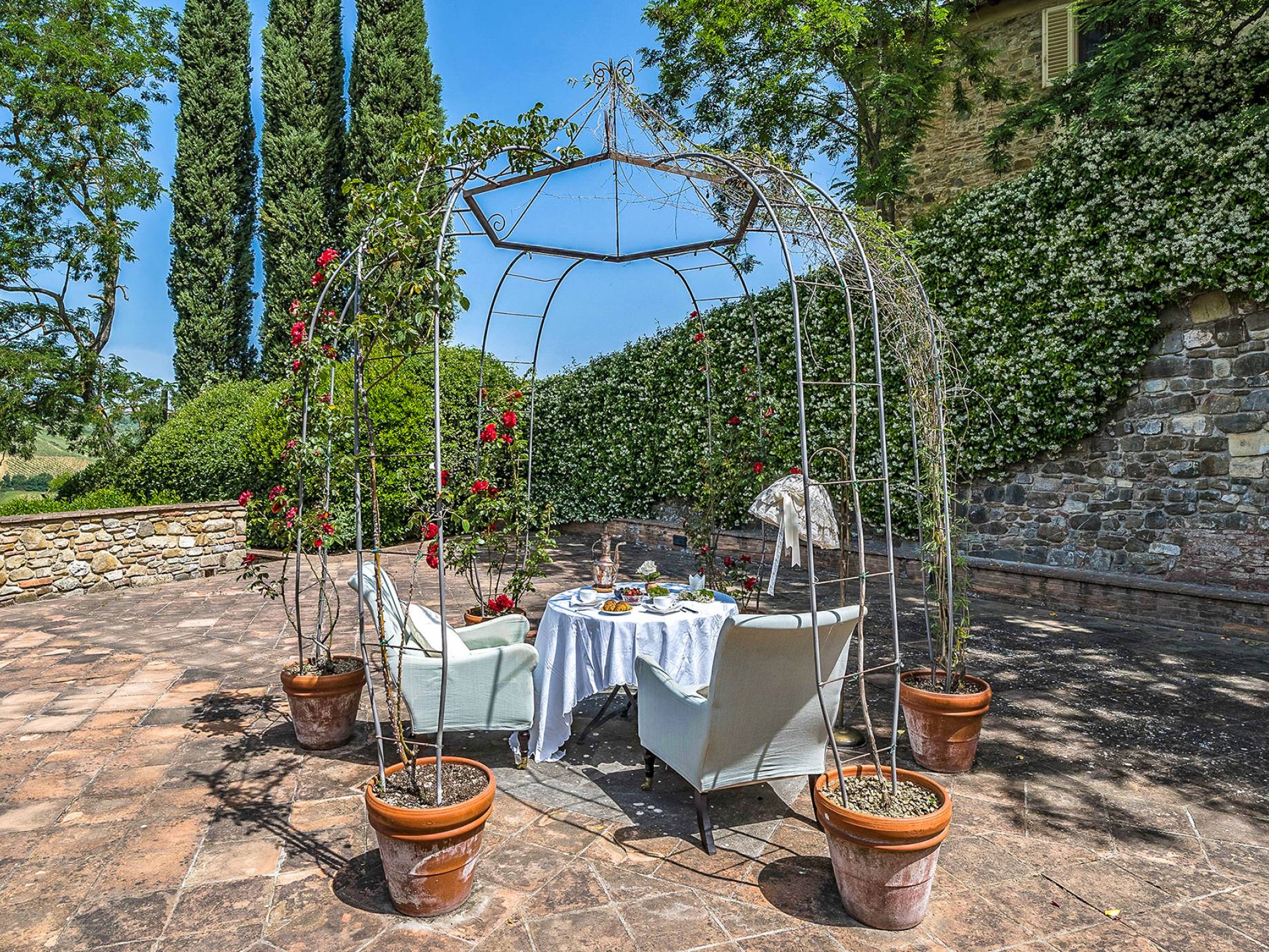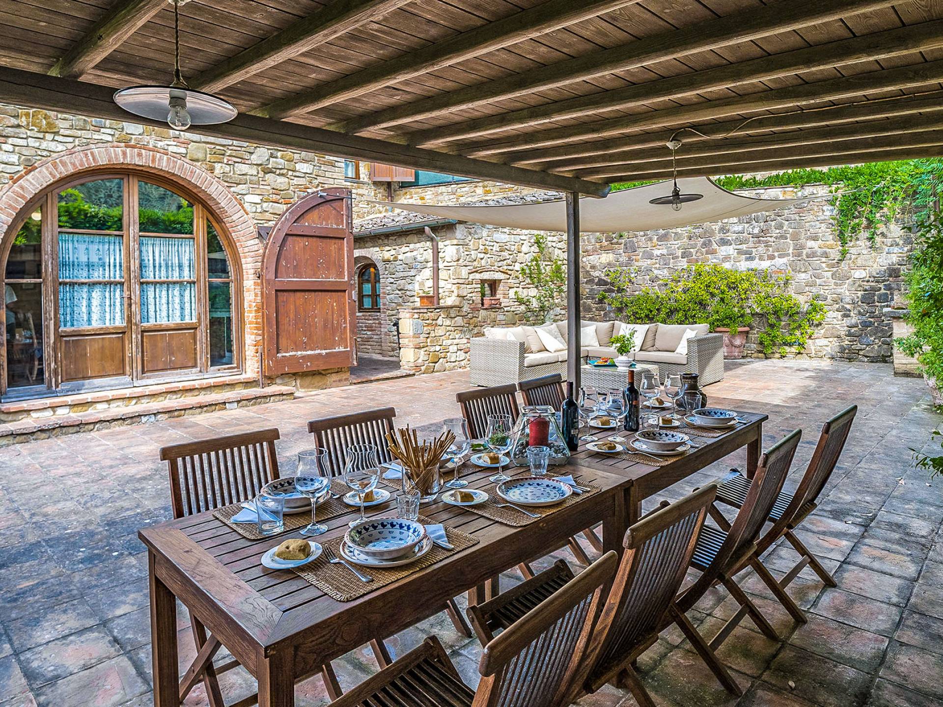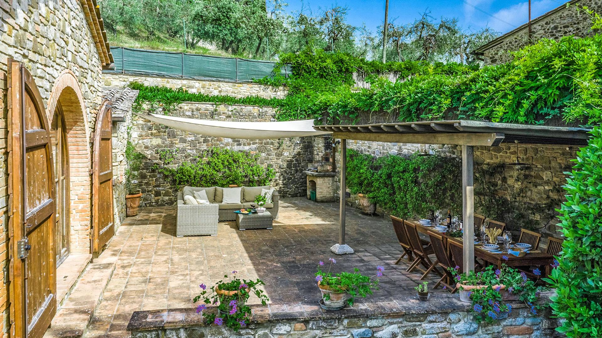 Villa Gemma Tuscany ist eine Luxusvilla mit 3 Schlafzimmern und privatem Pool. Die Villa Gemma ist eine große und komfortable Villa in Hanglage zwischen Florenz und Siena. Bis vor kurzem war es ein verlassener Stall, wurde aber von den neuen Eigentümern mit größter Sorgfalt restauriert und das alte Gebäude in ein prächtiges Landhaus umgewandelt, das voller Charme und Wärme ist. Außerhalb der Küche gibt es eine geräumige, möblierte Loggia und einen schattigen Bereich für draußen essen.