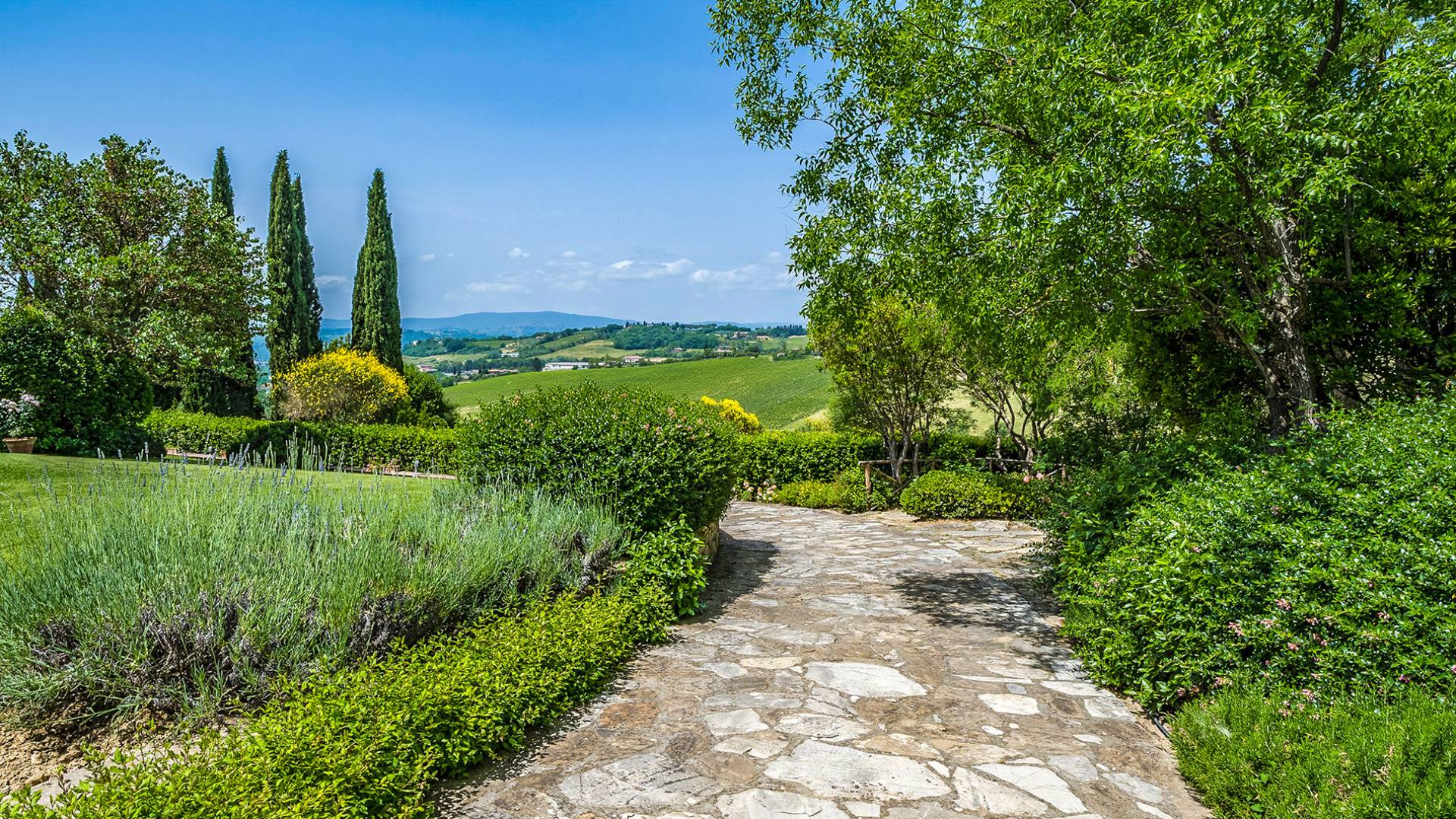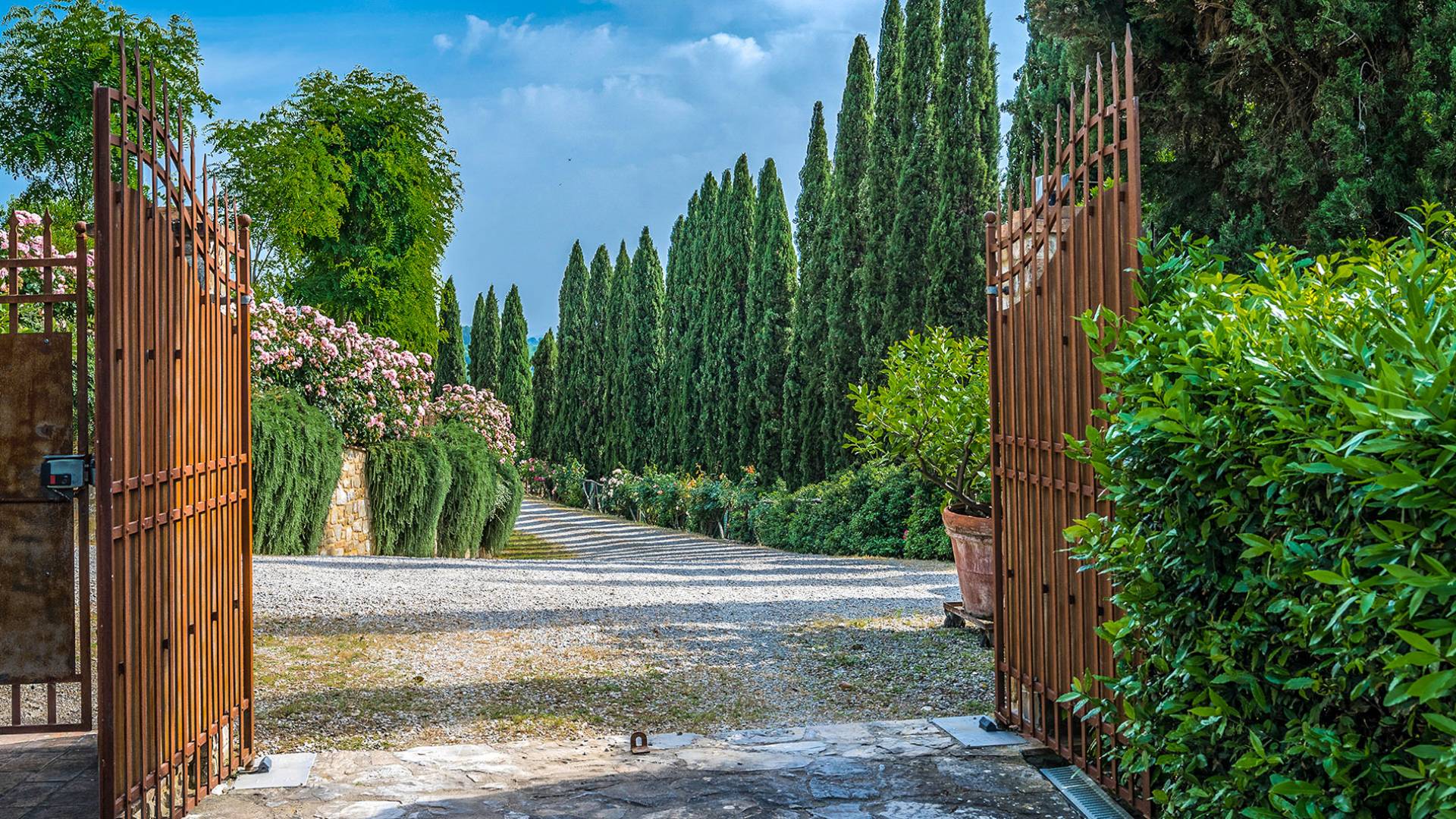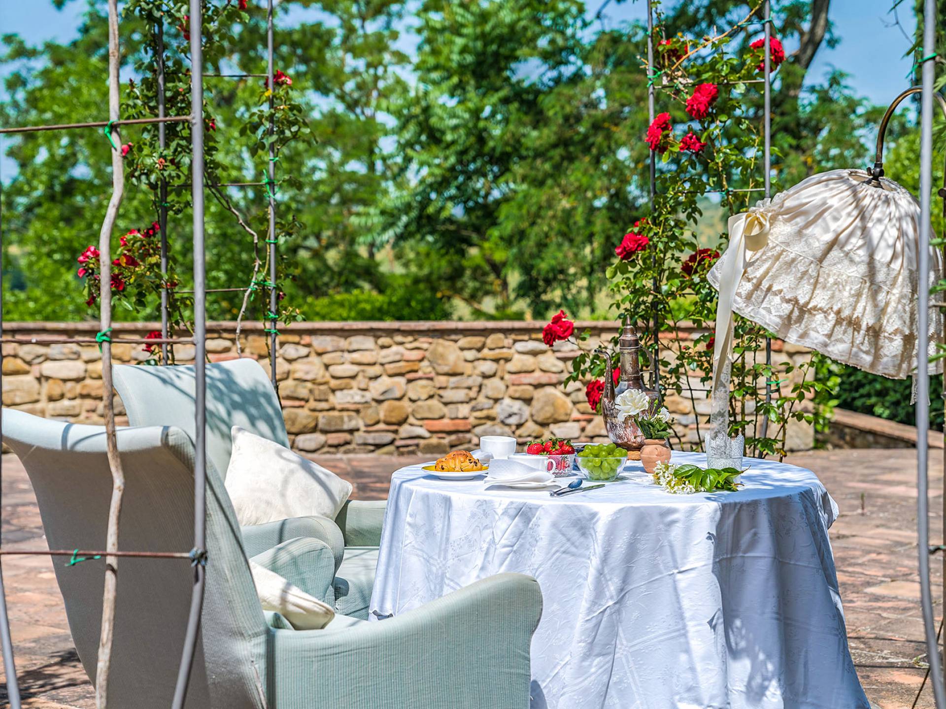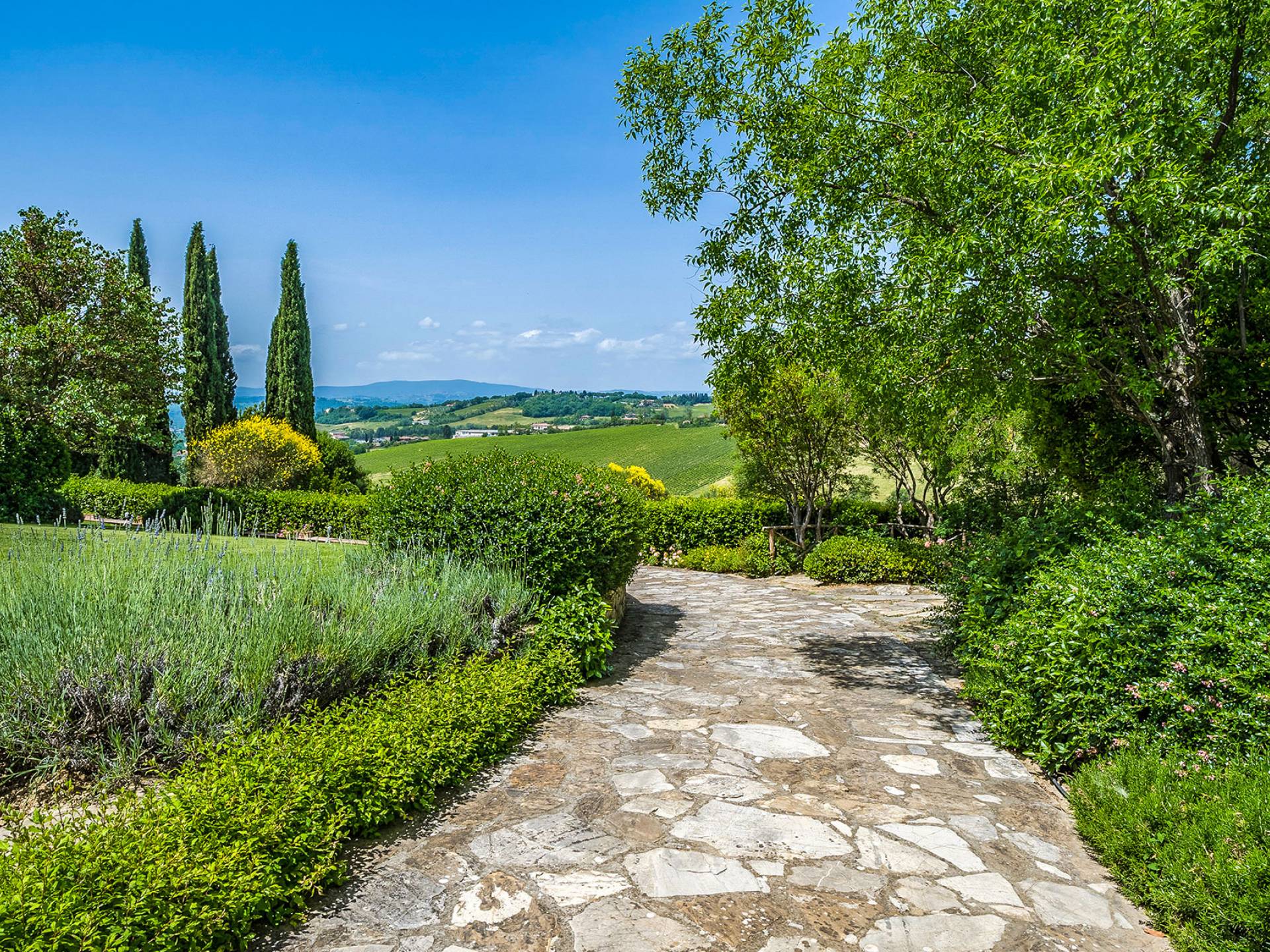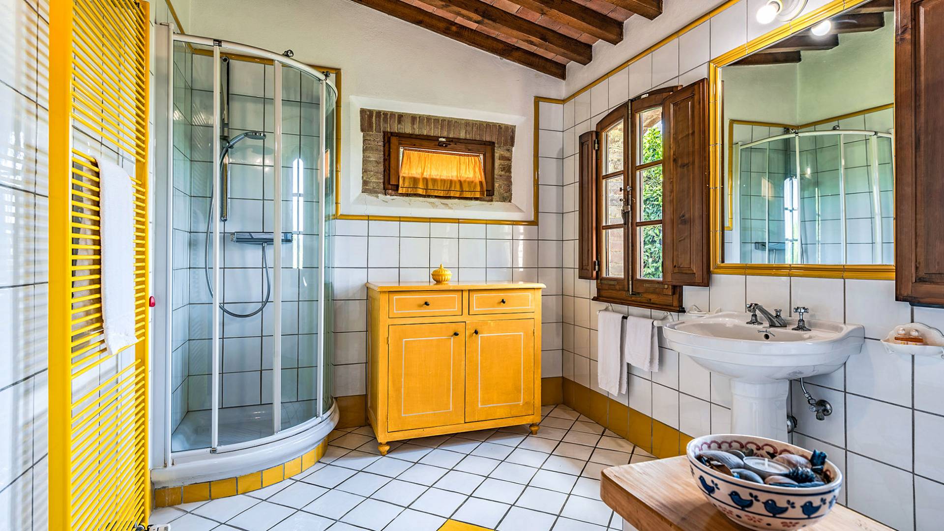 Alle Innenbereiche wurden mit modernen und klassischen, traditionellen toskanischen Stücken eingerichtet, die sich gut in die antiken „Cotto“ -Böden und die Deckenbalken einfügen. Die große Küche verfügt über einen Geschirrspüler, einen Herd und einen amerikanischen Doppelkühlschrank mit einem schönen Kamin.