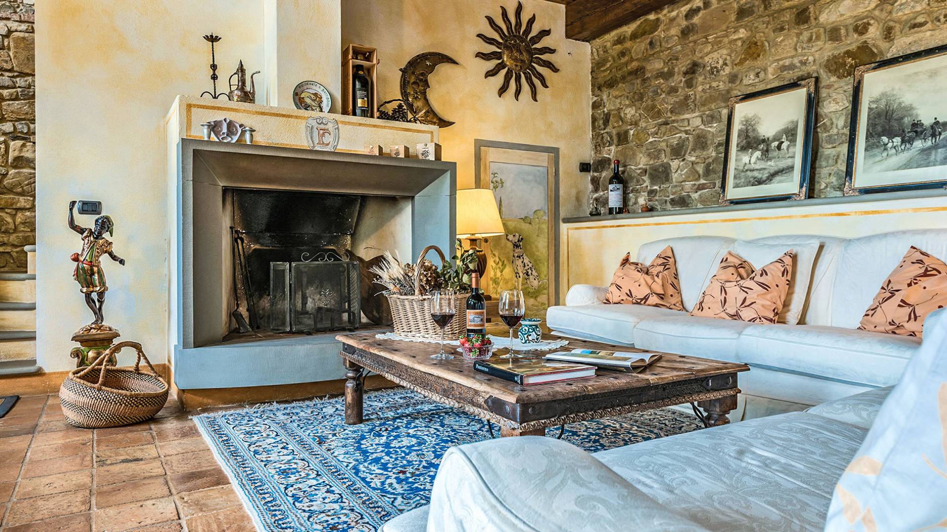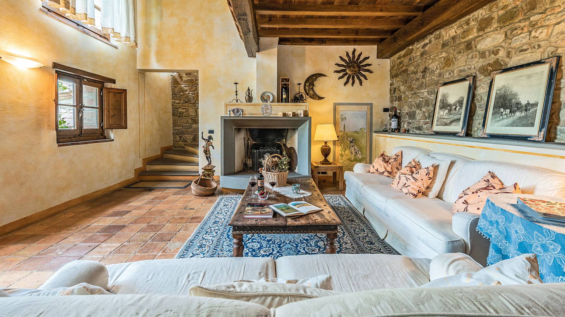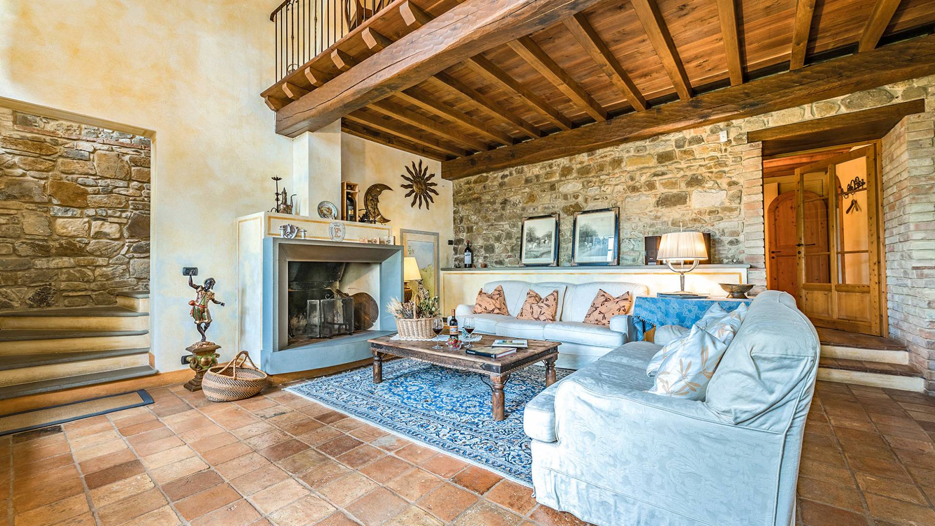 Wenn Sie in die Lounge gehen, ist es leicht zu verstehen, dass die Person, die das Haus restauriert hat, dies mit großer Sorgfalt und Leidenschaft getan hat. Alle antiken Materialien, zusammengestellt mit dem „Know-how“ von vor langer Zeit und mit Aufmerksamkeit für modernes, komfortables Wohnen. Die Liebe zum Detail ist erstaunlich. Der Kamin mit seinem großen Steinmantel, die Treppen und Fensterbeschläge in geschnitzter Pietre Serena, die verzierten Wände. Über dem Aufenthaltsraum befindet sich ein Studio mit 2 Diwanen, die in zwei bequeme Betten umgewandelt werden können.