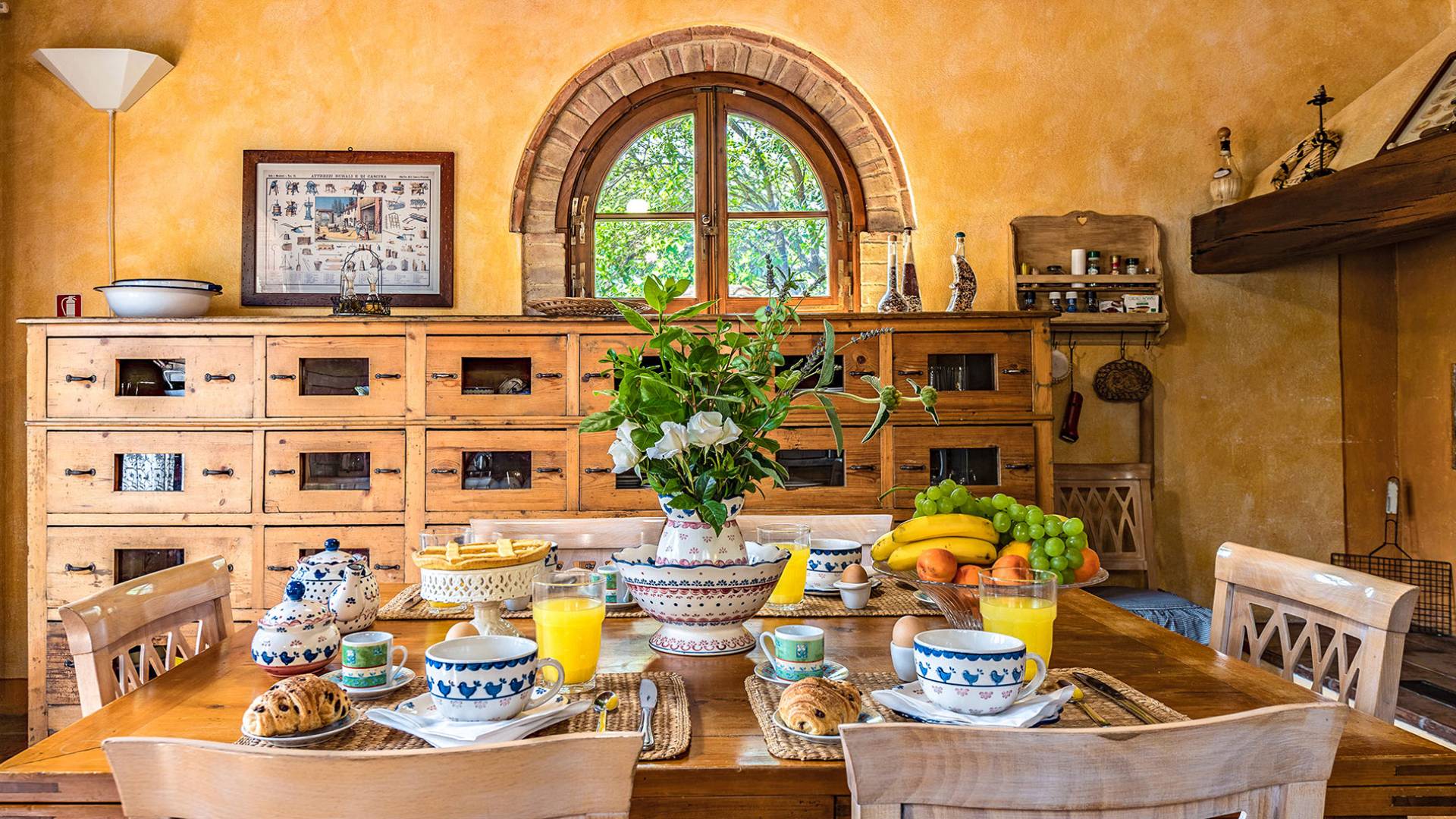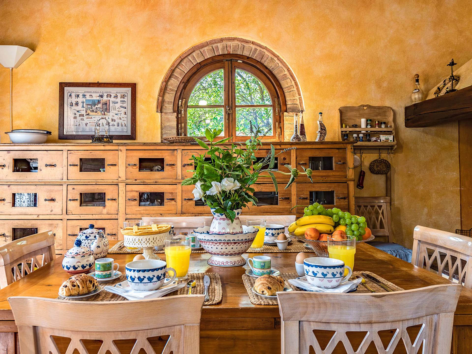 Wie in allen ursprünglichen Bauernhäusern war die Küche der wichtigste Teil des Hauses, in dem sich die Familie versammelte, um die originalen toskanischen Gerichte zu genießen, die auf Anfrage auch von den Gästen genossen werden können.
