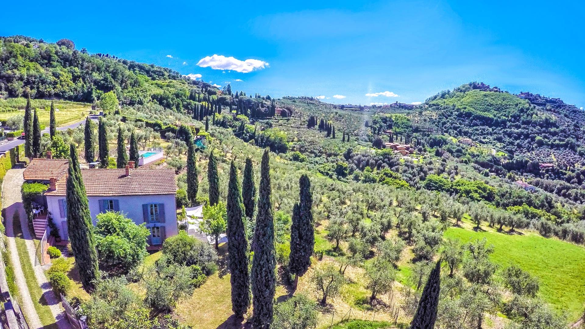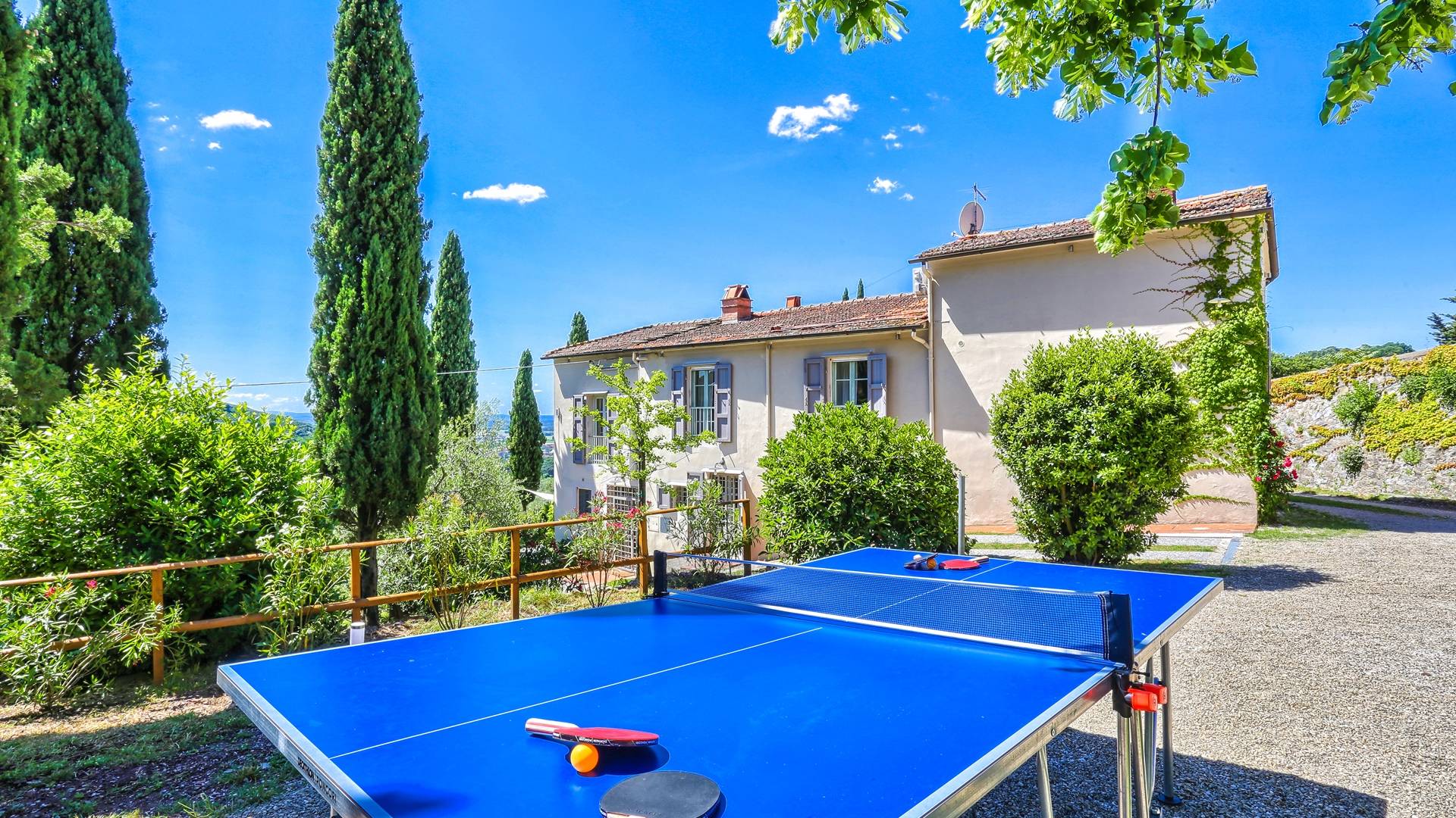 Von außen präsentiert sich die Villa als antikes toskanisches Bauernhaus, nach Süden ausgerichtet und somit immer sonnig. Die Lage der Villa Maona ist strategisch: Supermarkt, elegante Boutiquen, typische Restaurants und bedeutende Weinkeller sind nur wenige Minuten entfernt, ebenso wie Schwimmbäder, Thermalanlagen, Golfplätze, Tennisplätze, Reitställe, Seen zum Sportfischen, Radfahren, oder Joggen und Trekking.