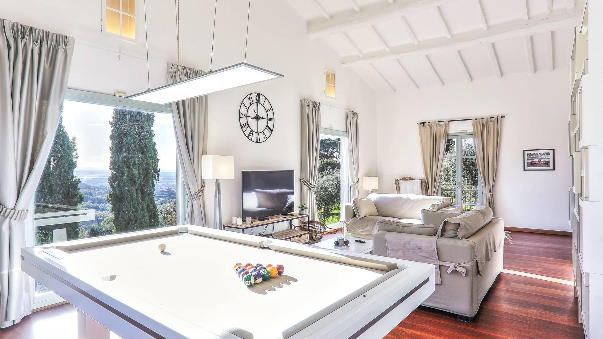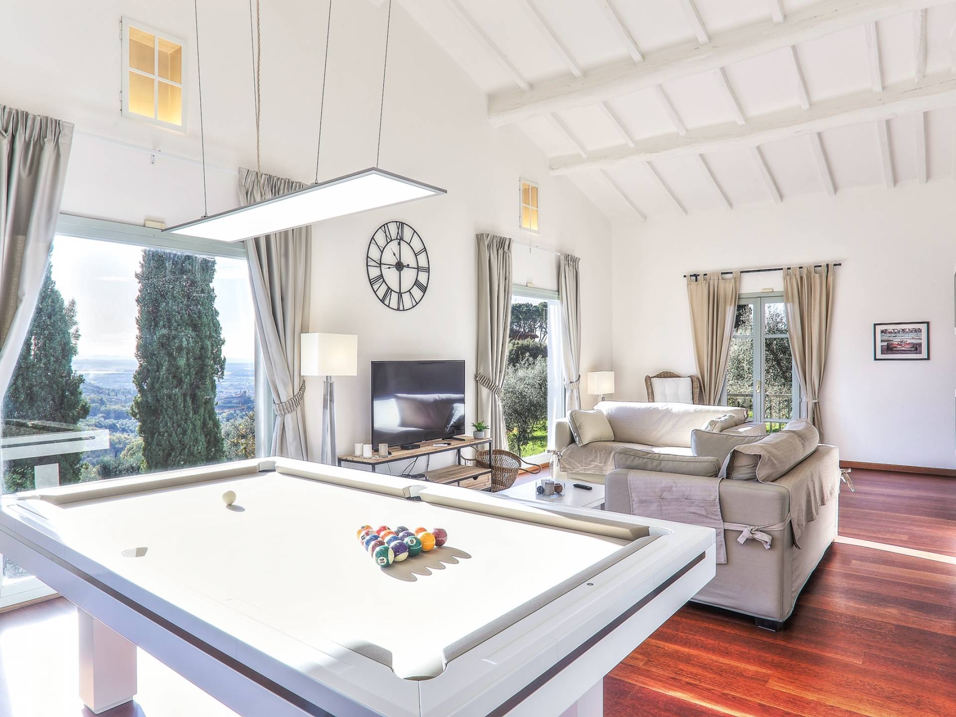 Das Innere wurde mit gutem Geschmack restauriert und die hellen und geräumigen Bereiche sind komfortabel und entspannend. Ein großes Esszimmer (mit 10 Sitzplätzen) und eine Küche mit Kamin haben Zugang zum Park. Der Loungebereich mit seinen großen Fenstern blickt auf das Tal. Die Villa bietet einen privaten Pool (geöffnet von April bis einschließlich Oktober) Sie verfügt über WLAN innen und außen, Sat-TV, Billardtisch, Tischtennis, Alarmanlage, Waschmaschine und Trockner.