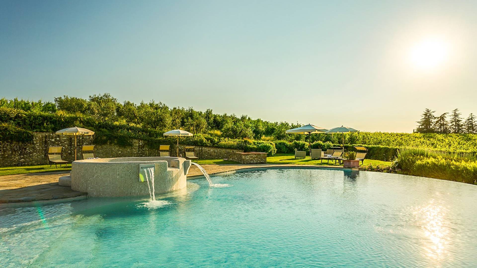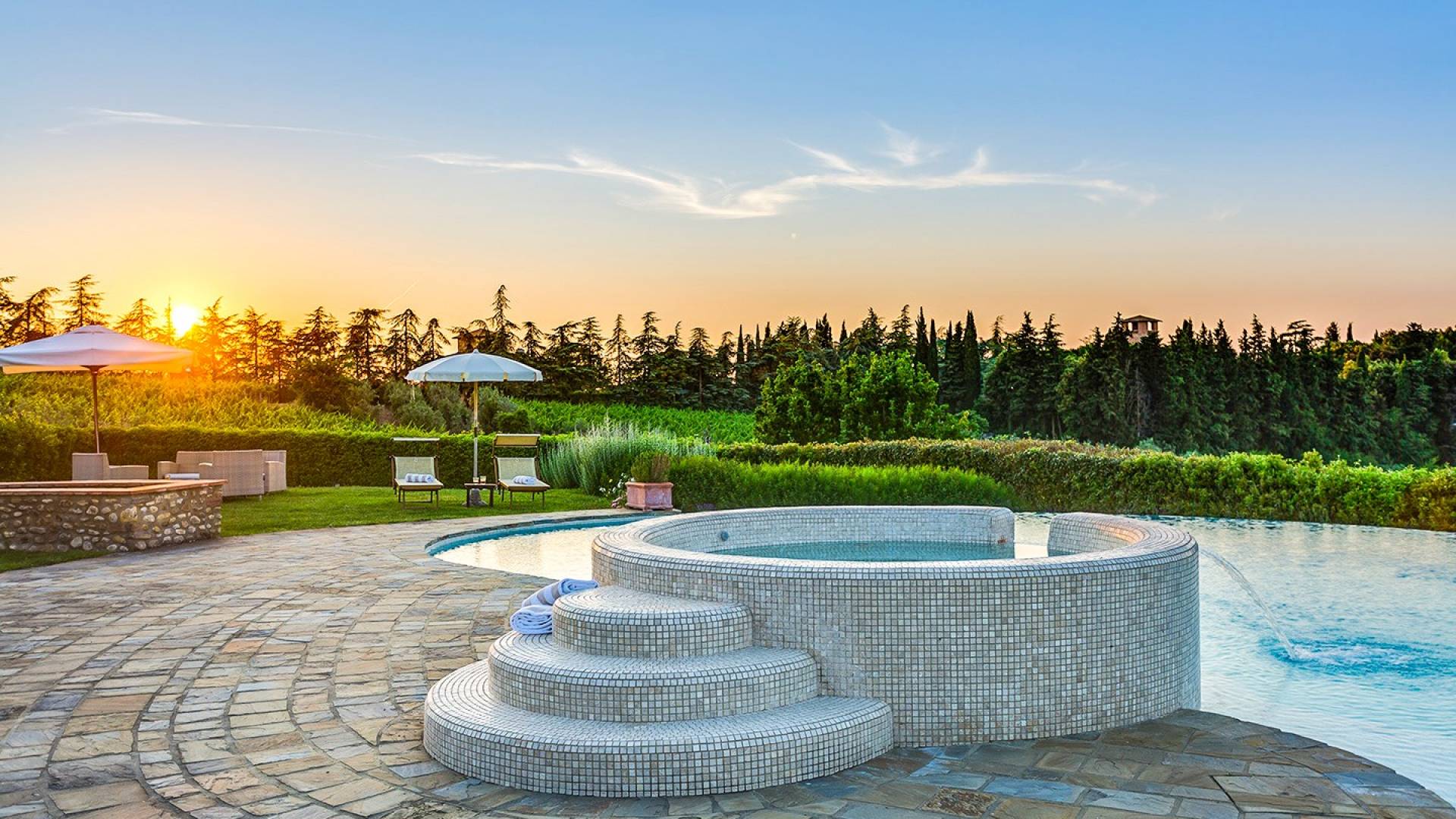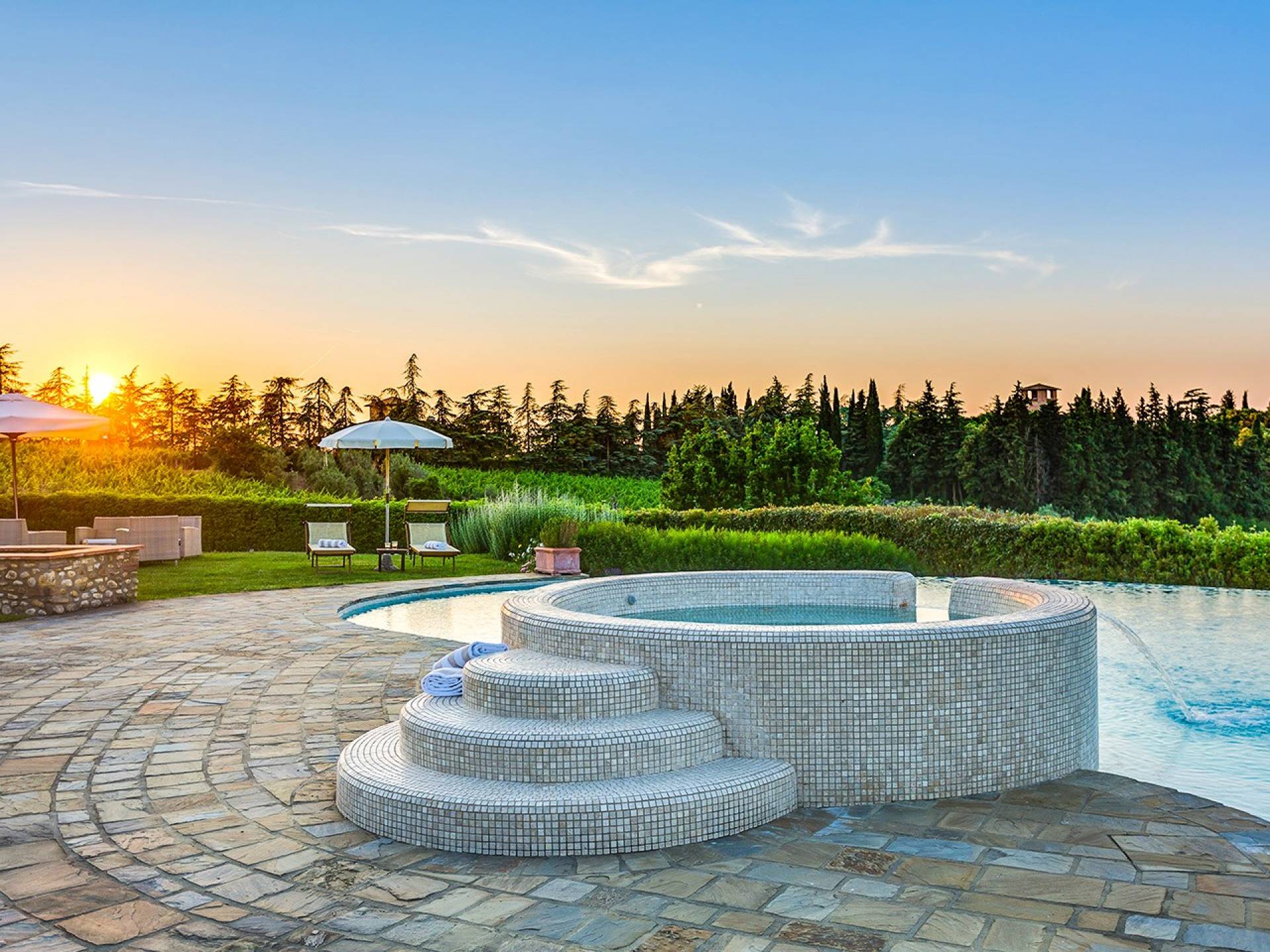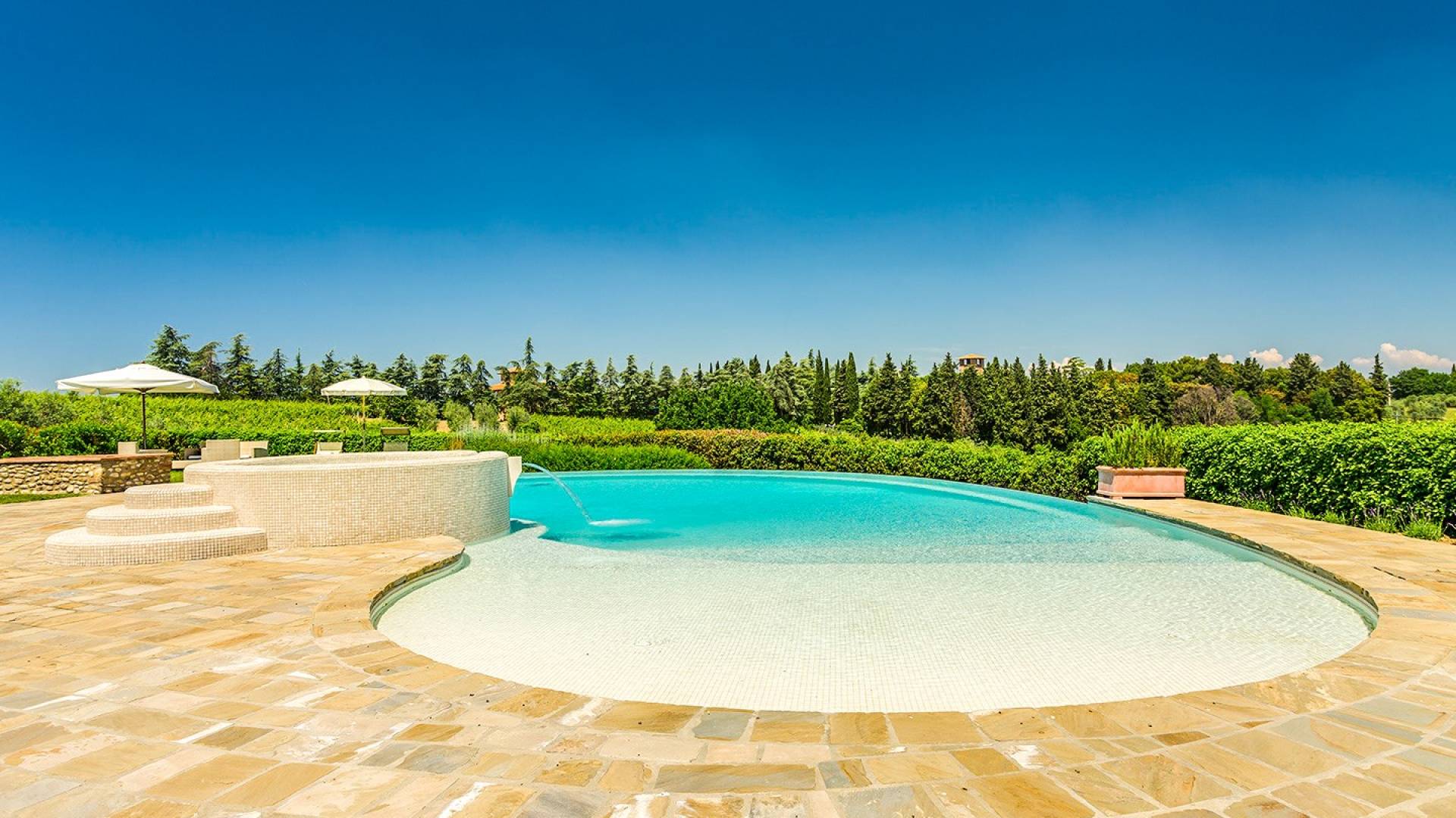 Villa Sole del Chianti liegt auf dem offenen Land, nur wenige Kilometer von Tavarnelle Val di Pesa entfernt, wo Sie alle notwendigen Geschäfte und Dienstleistungen finden. Besonders schön ist das Schwimmbad, dessen Eingang auf das darunter liegende Tal ausgerichtet ist. Der Pool verfügt über einen großen Hydromassagebereich, der mit Mosaiken und Wasserfällen gefliest ist. Der gesamte Komplex harmoniert perfekt mit einer der panoramischsten Landschaften des Chianti und bietet das doppelte Vergnügen eines erfrischenden Sprungs und einer atemberaubenden Aussicht.