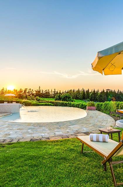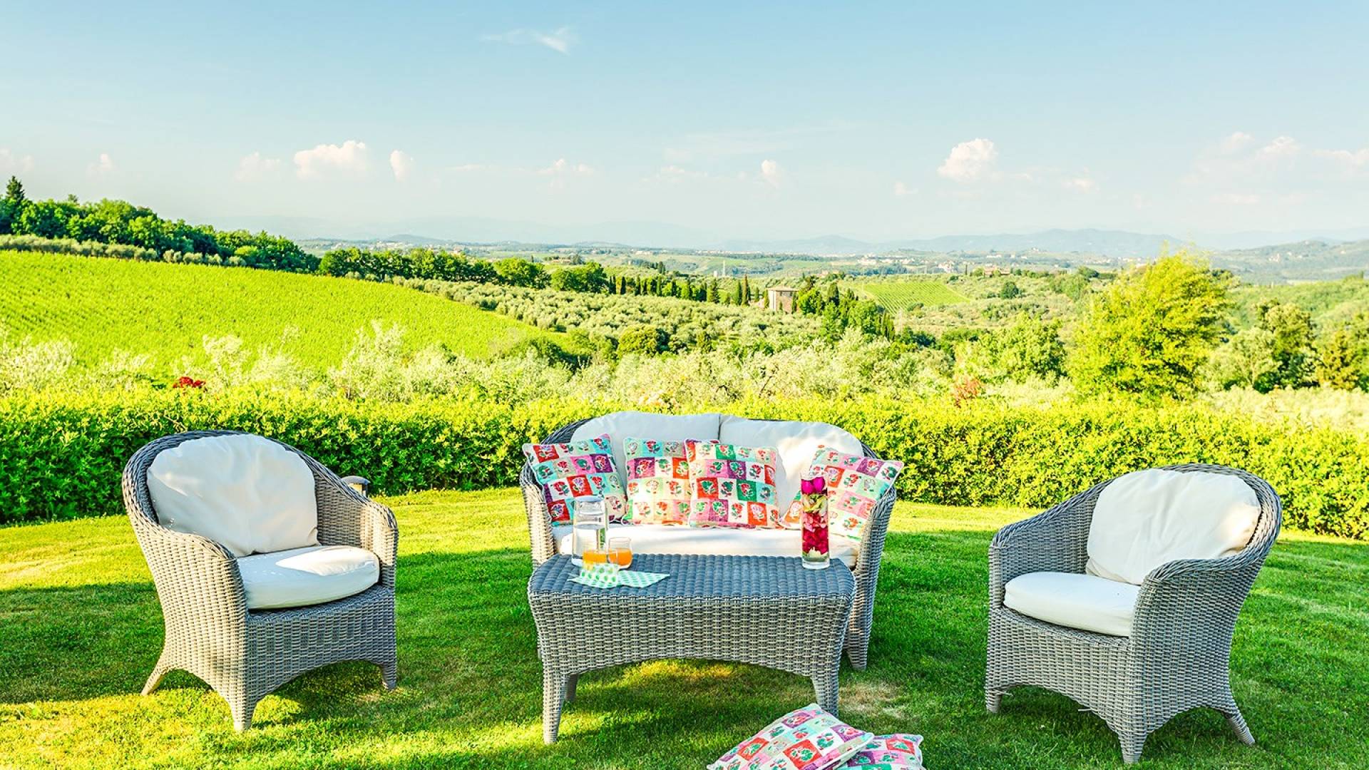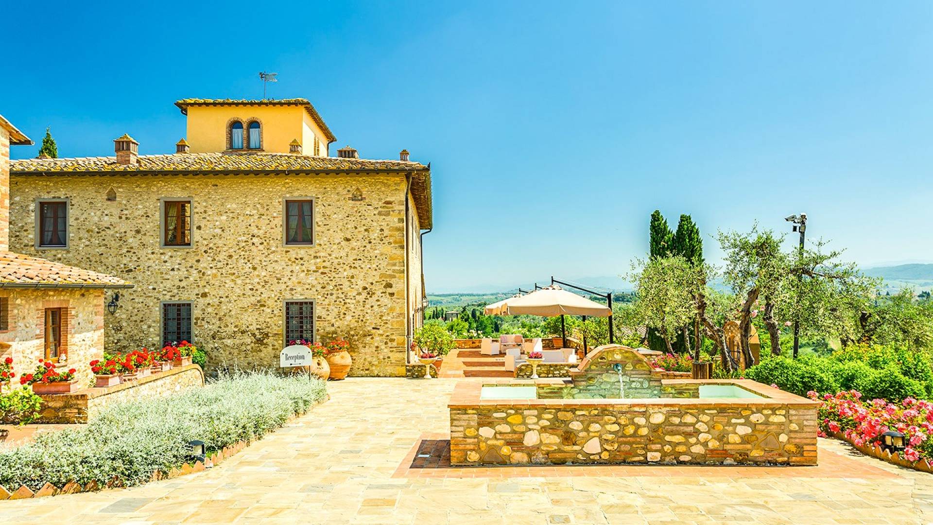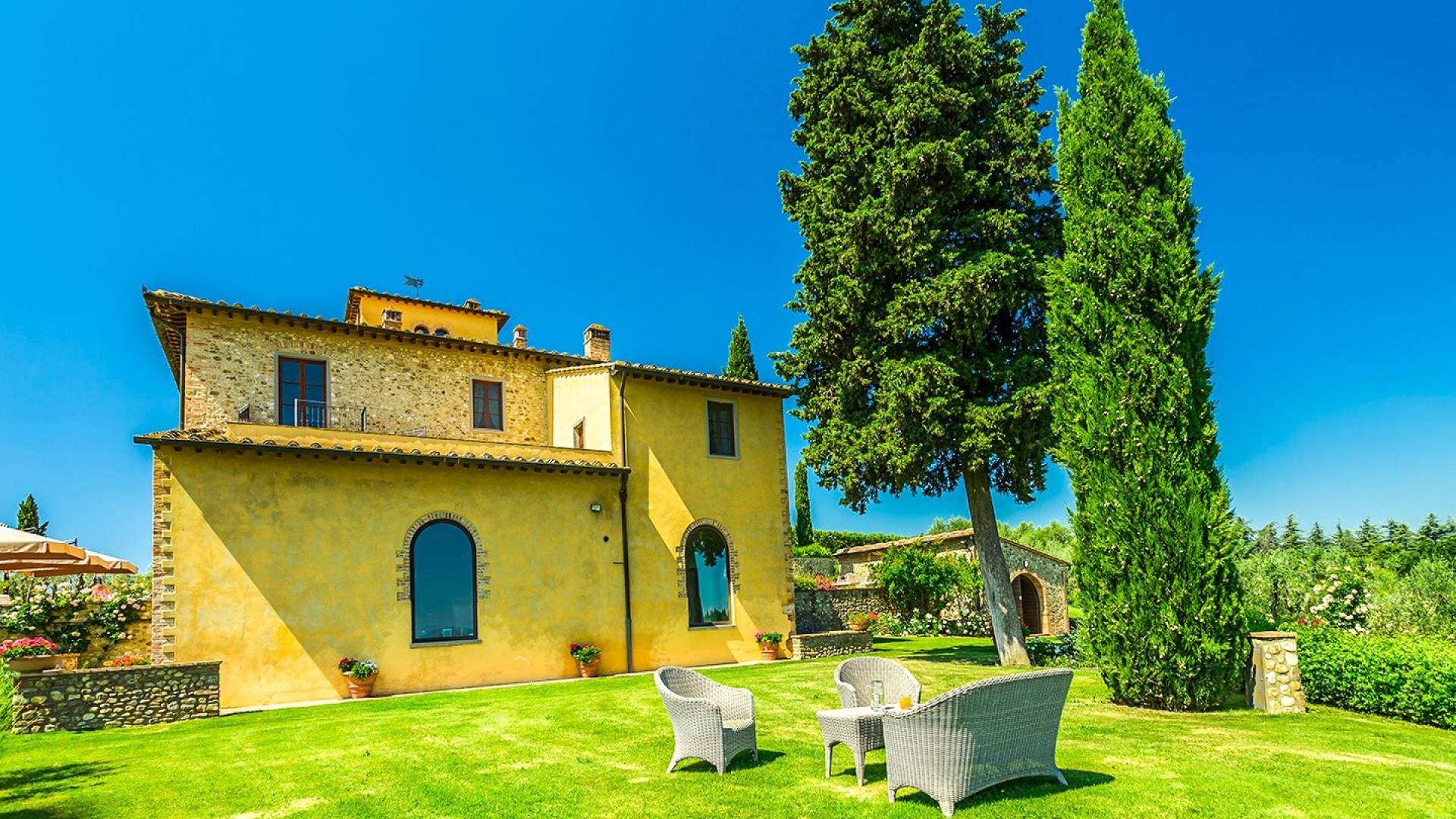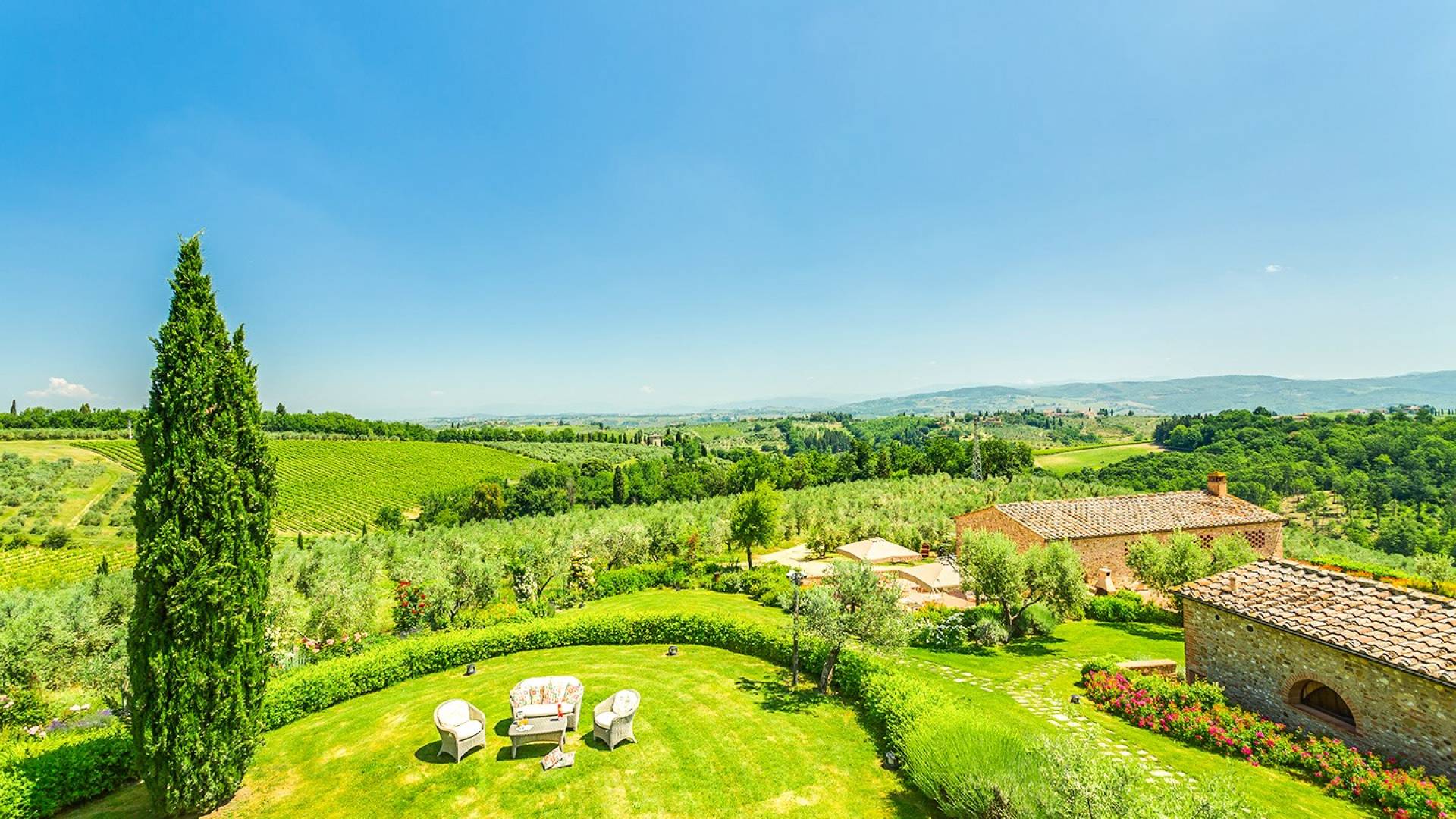 Chianti-Sonne und eine schöne Villa, auf halbem Weg zwischen Florenz und Siena, umgeben von grünen Hügeln und Weinbergen. Hier weicht der frenetische Rhythmus des modernen Lebens der Ruhe und Stille der Villa, in der Sie die antiken Traditionen des Chianti nacherleben können.