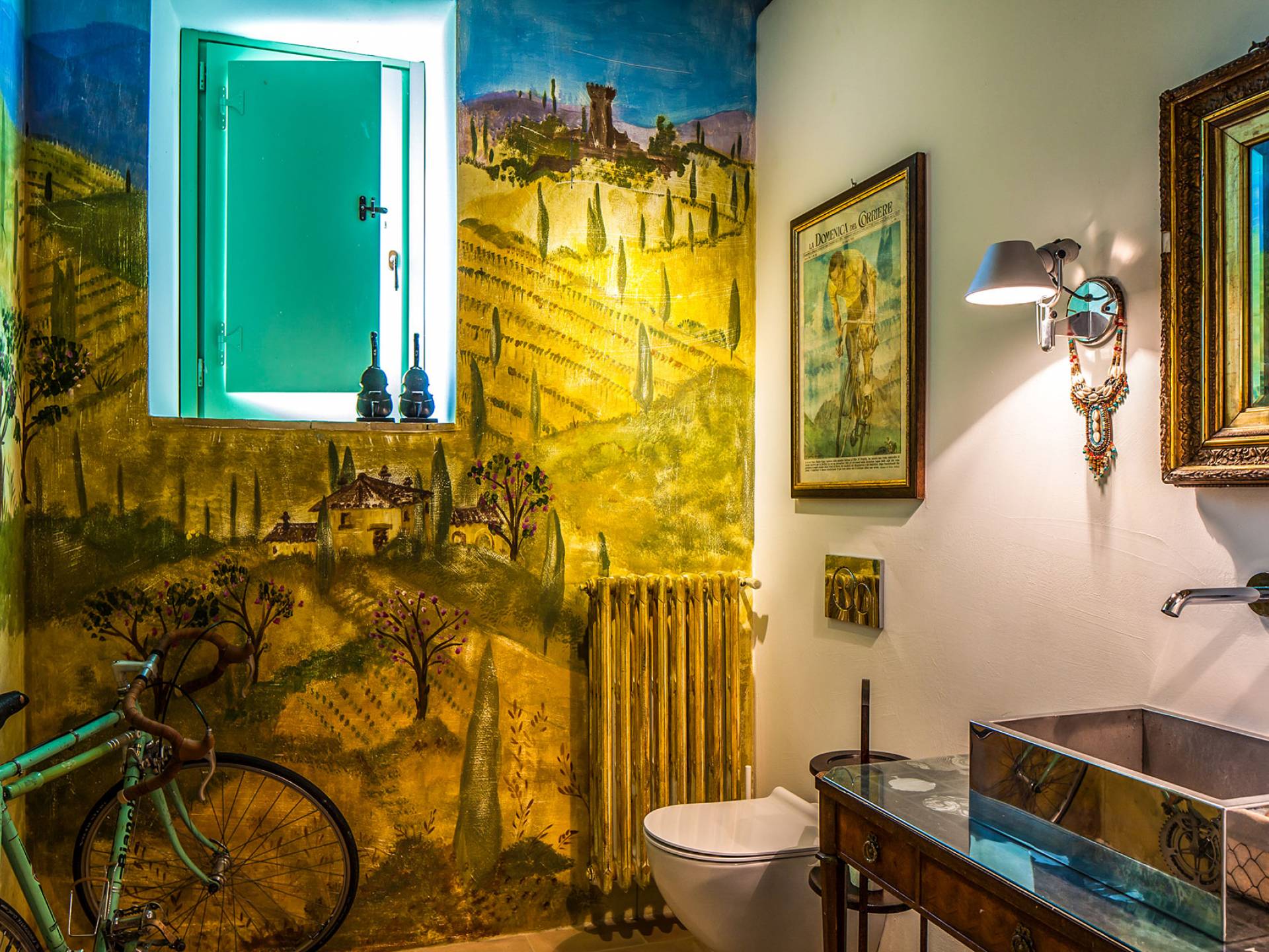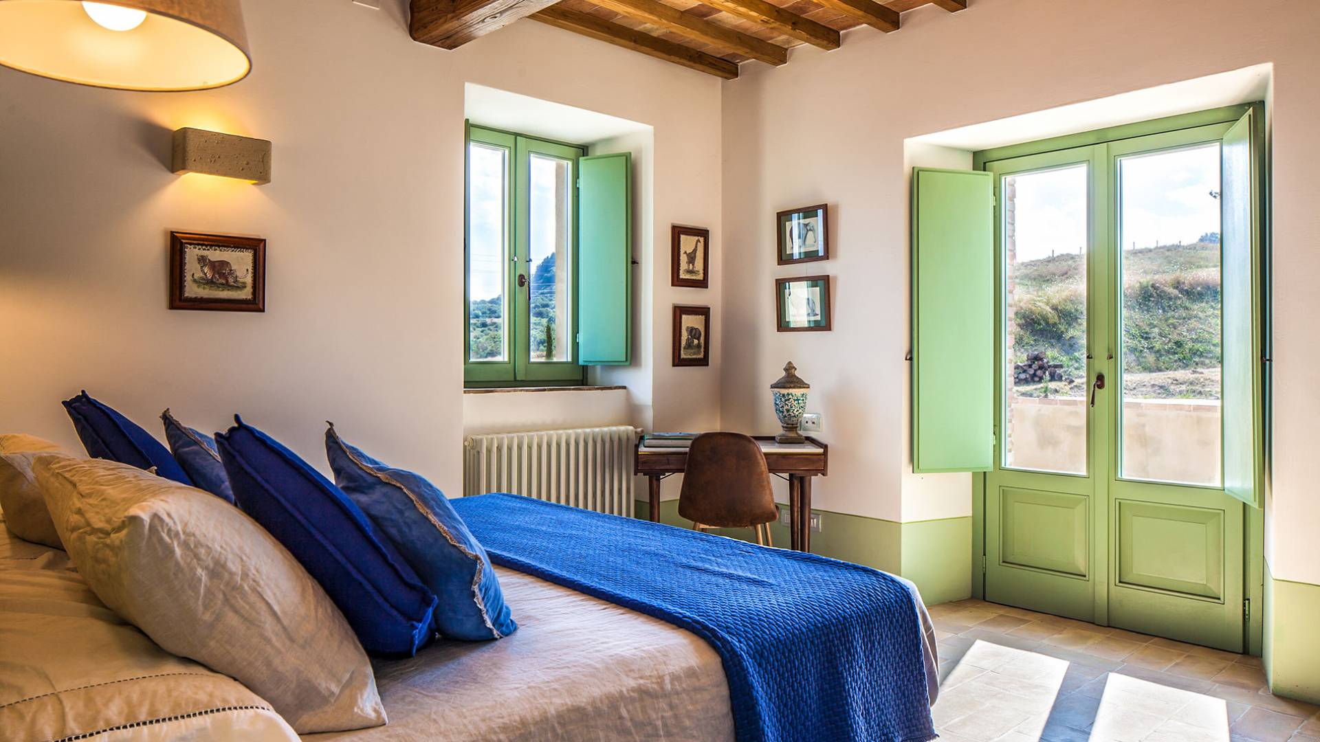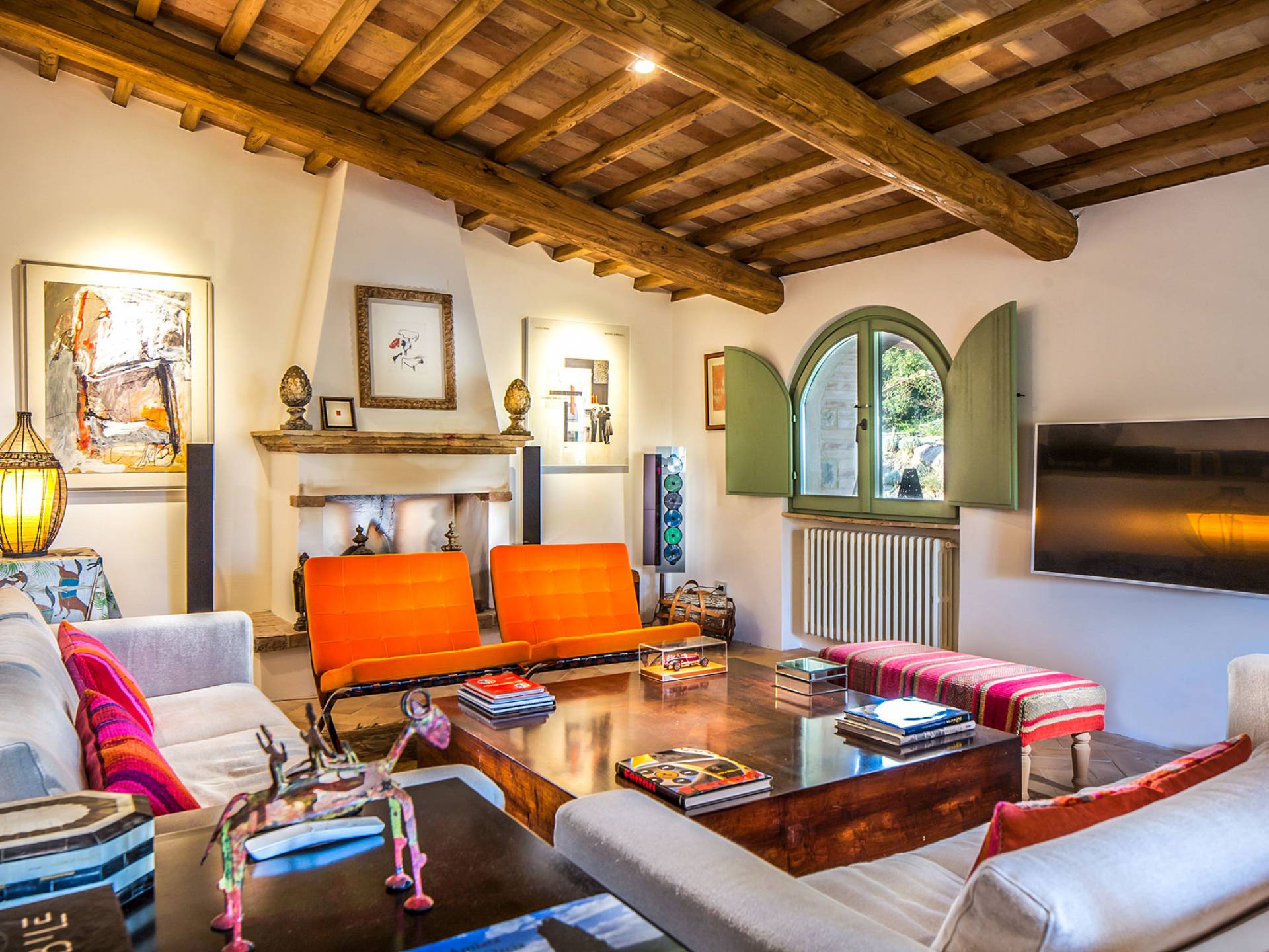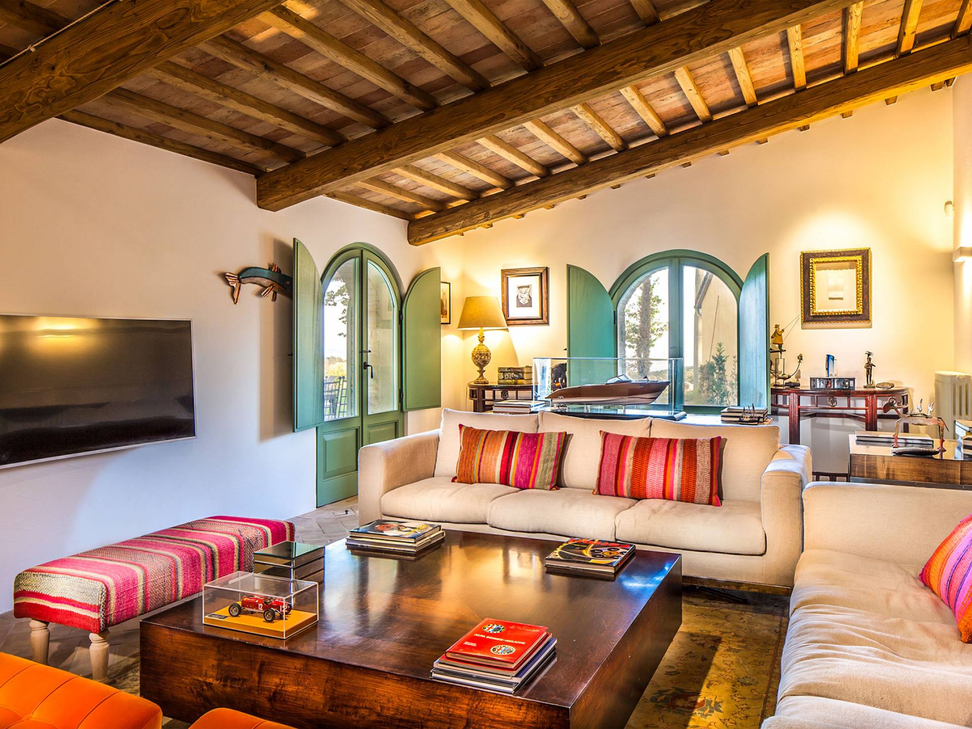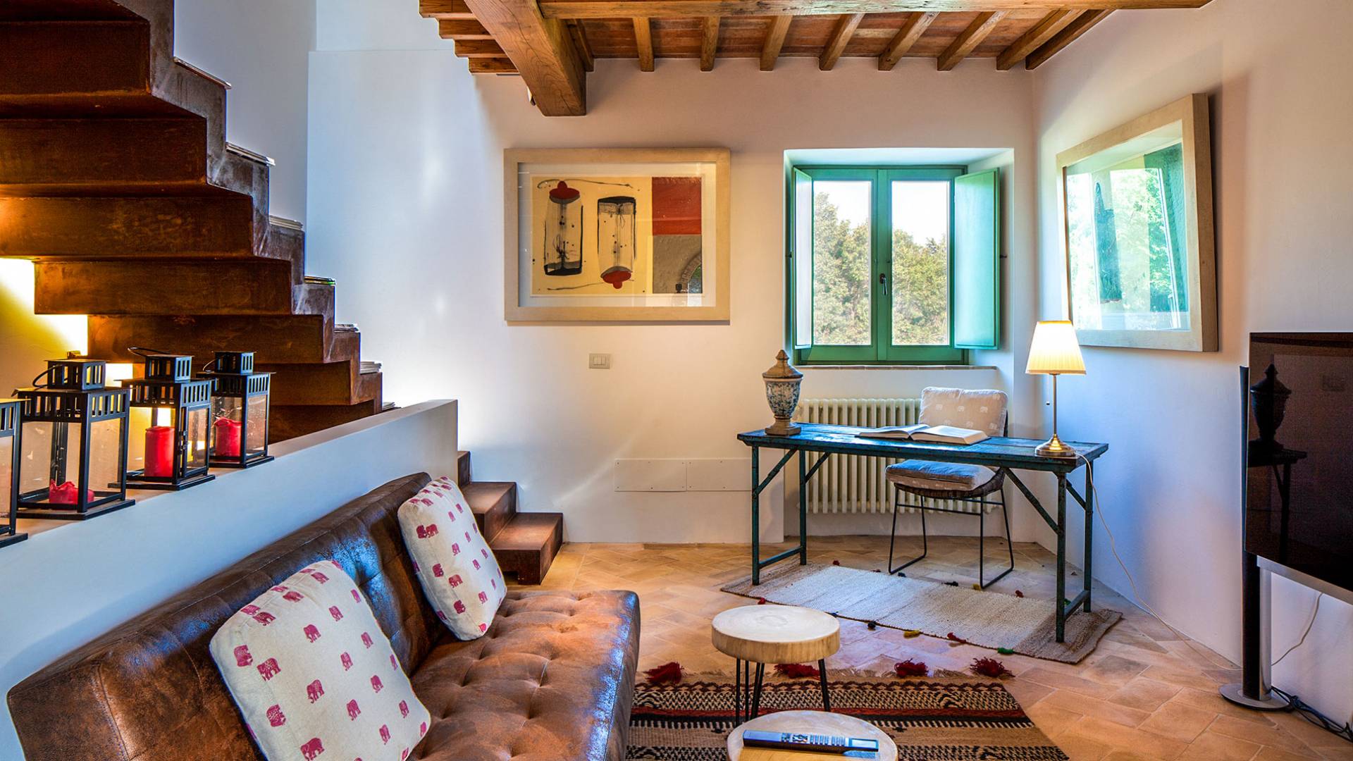 Die Innenräume sind sorgfältig raffiniert und jeder Bereich ist geschmackvoll und stilvoll eingerichtet. Der Wohnbereich zeichnet sich durch schöne Sichtbalken aus und ermöglicht den Zugang zu einer gemütlichen Lounge, in der Sie Abende in fröhlicher Gesellschaft verbringen können. Die Küche ist funktional und sehr einladend und zeichnet sich durch einen rustikalen Stil aus, der fast aus einer anderen Zeit stammt. Villa Tuscania Valdorcia verfügt über fünf Schlafzimmer auf den drei Etagen des Gebäudes. Vom Wohnbereich aus führt eine spektakuläre Holztreppe in modernem Design zu wunderschönen Schlafzimmern, die alle mit Fresken im bukolischen Stil geschmückt sind.