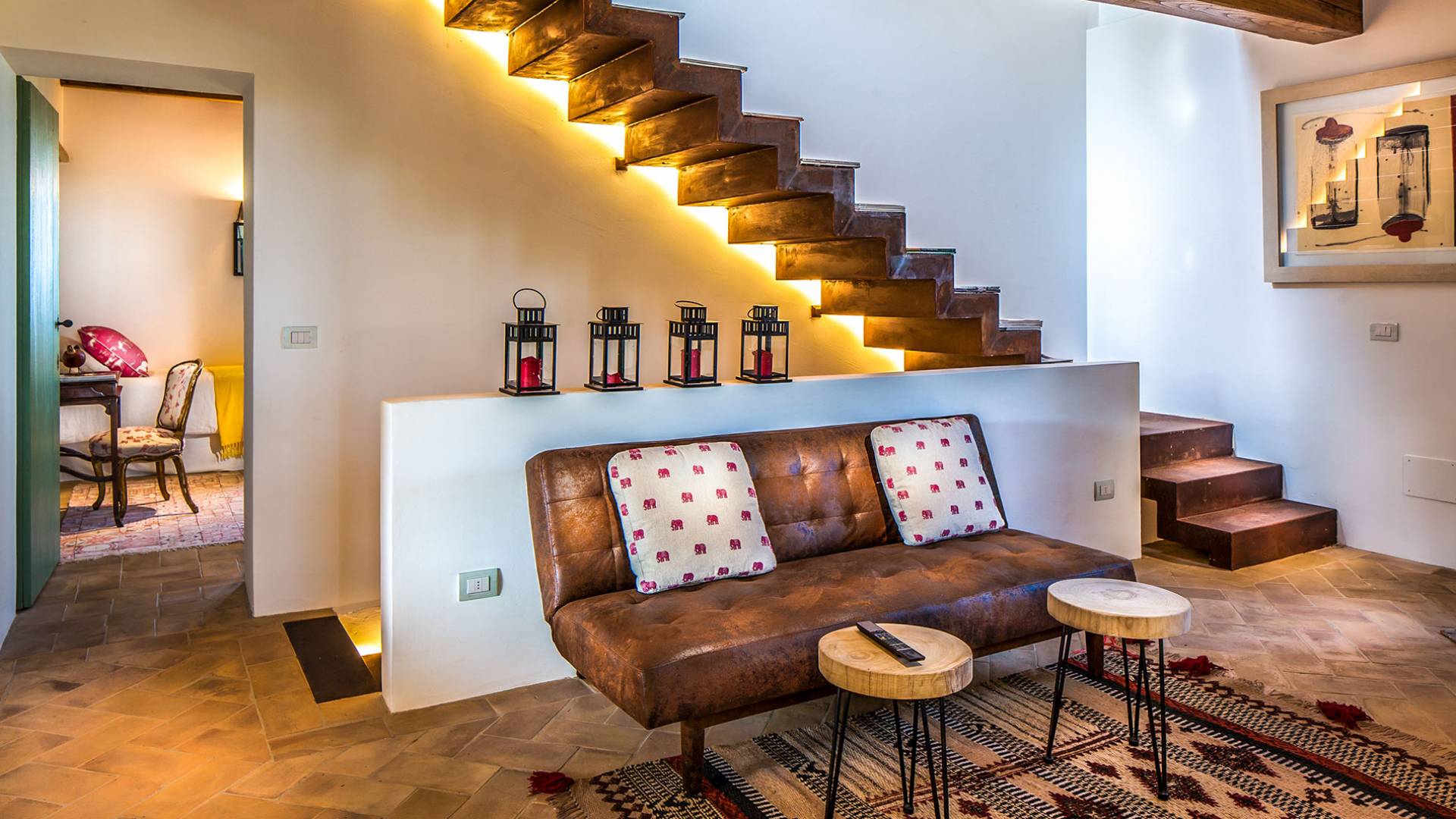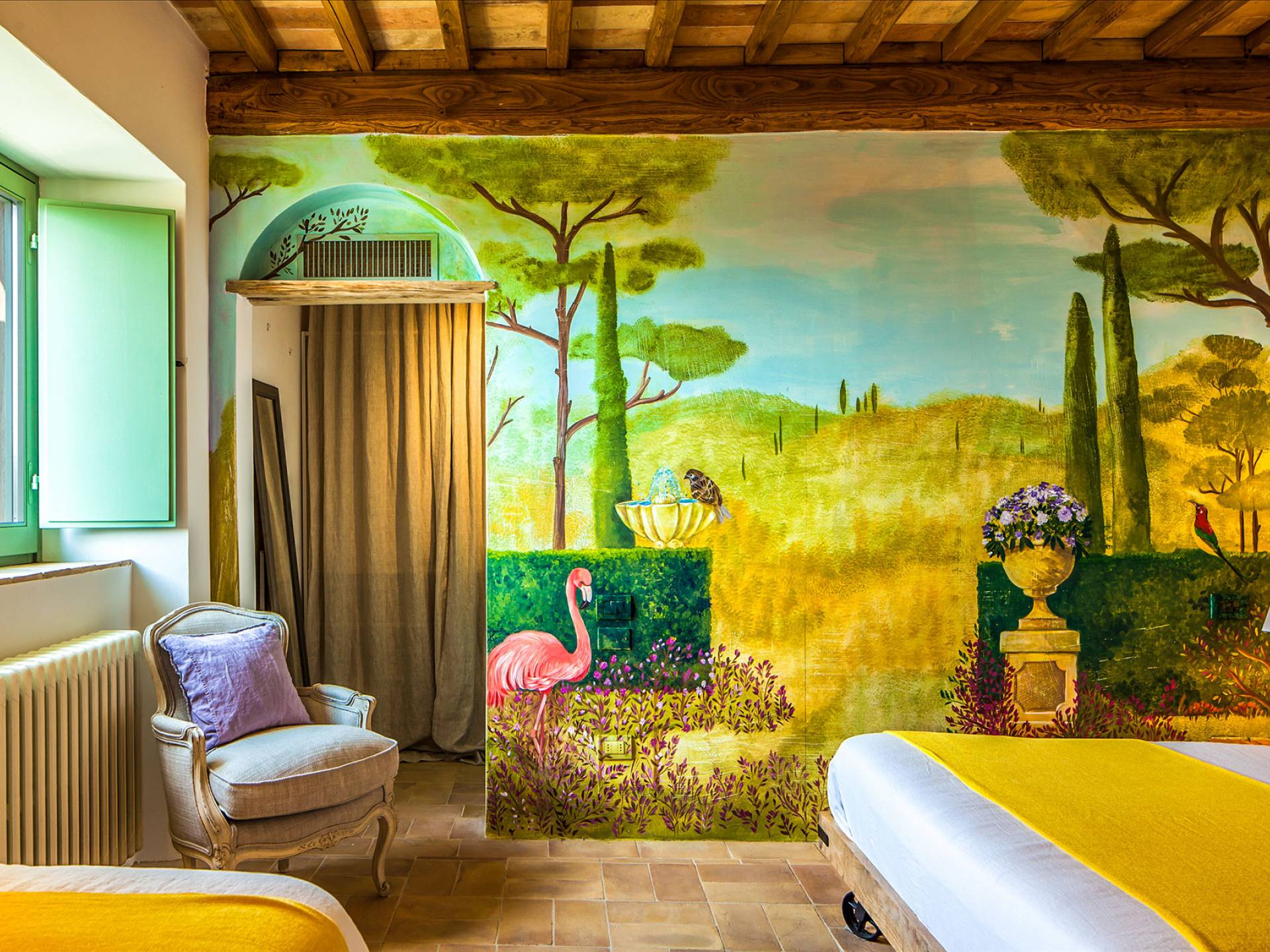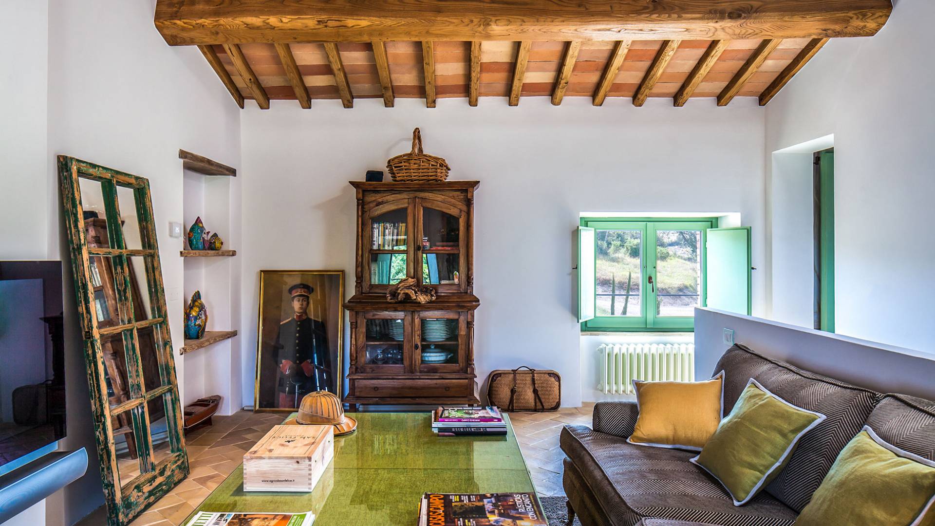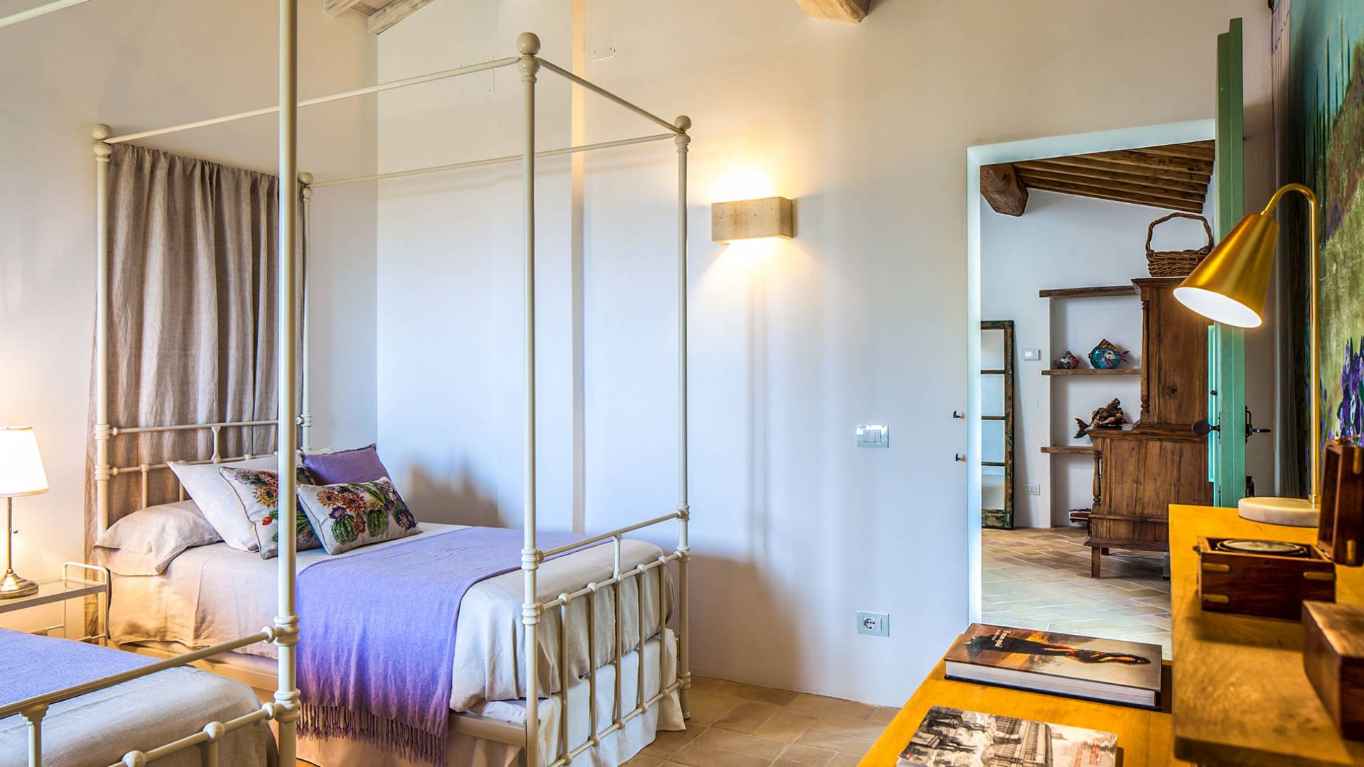 Die Innenräume sind sorgfältig raffiniert und jeder Bereich ist geschmackvoll und stilvoll eingerichtet. Der Wohnbereich zeichnet sich durch schöne Sichtbalken aus und ermöglicht den Zugang zu einer gemütlichen Lounge, in der Sie Abende in fröhlicher Gesellschaft verbringen können. Die Küche ist funktional und sehr einladend und zeichnet sich durch einen rustikalen Stil aus, der fast aus einer anderen Zeit stammt. Villa Tuscania Valdorcia verfügt über fünf Schlafzimmer auf den drei Etagen des Gebäudes. Vom Wohnbereich aus führt eine spektakuläre Holztreppe in modernem Design zu wunderschönen Schlafzimmern, die alle mit Fresken im bukolischen Stil geschmückt sind.