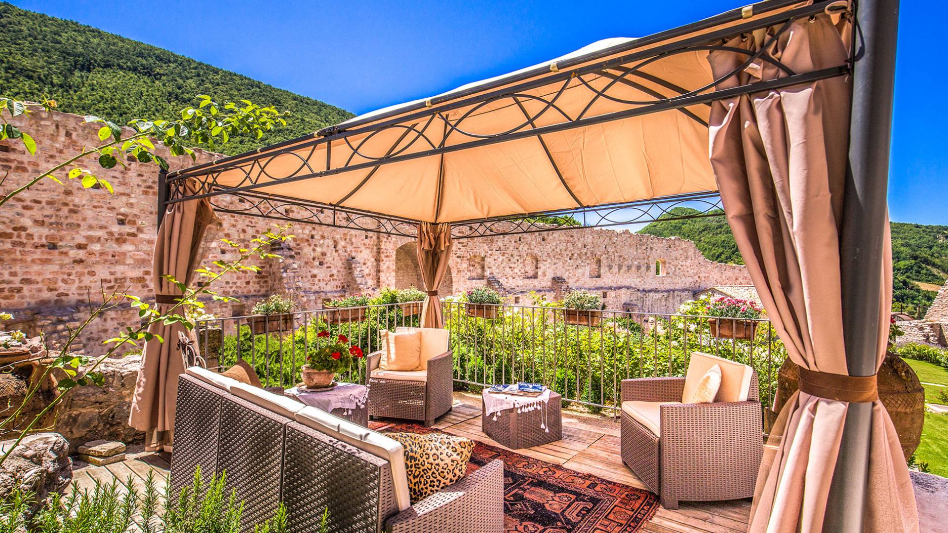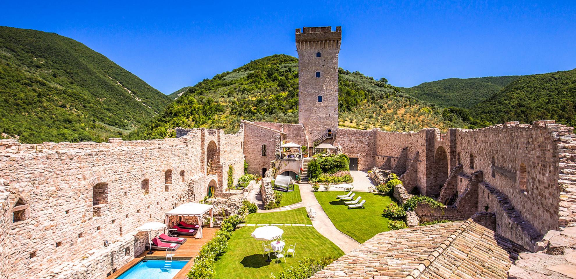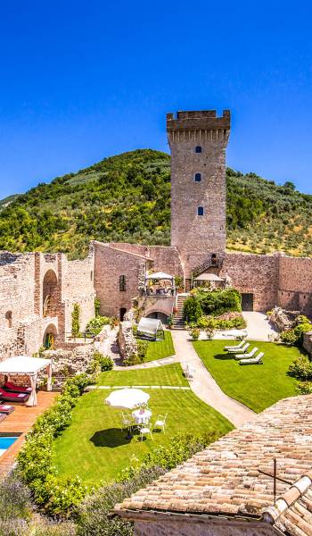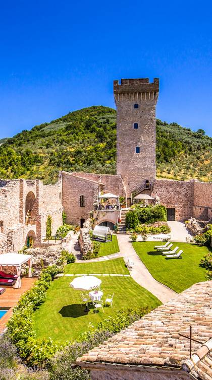 Versteckt in der Gegend von Perugia, in der Nähe der mittelalterlichen Altstadt von Foligno, bietet die Villa Torrino Umbria fünf exquisite Schlafzimmer. Dieses historische Schloss, das von den üppigen umbrischen Hügeln in Mittelitalien umgeben ist, bietet eine märchenhafte Atmosphäre und ist ein architektonischer Schatz aus dem 13. Jahrhundert, der in eine der einzigartigsten und unvergesslichsten historischen Residenzen Umbriens umgewandelt wurde.