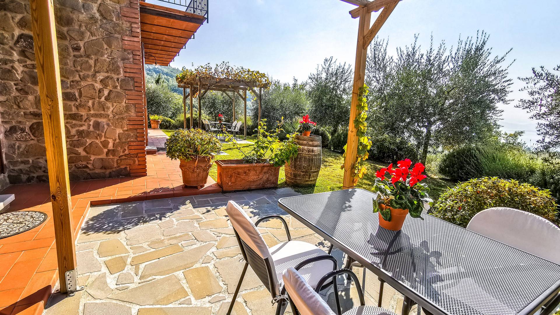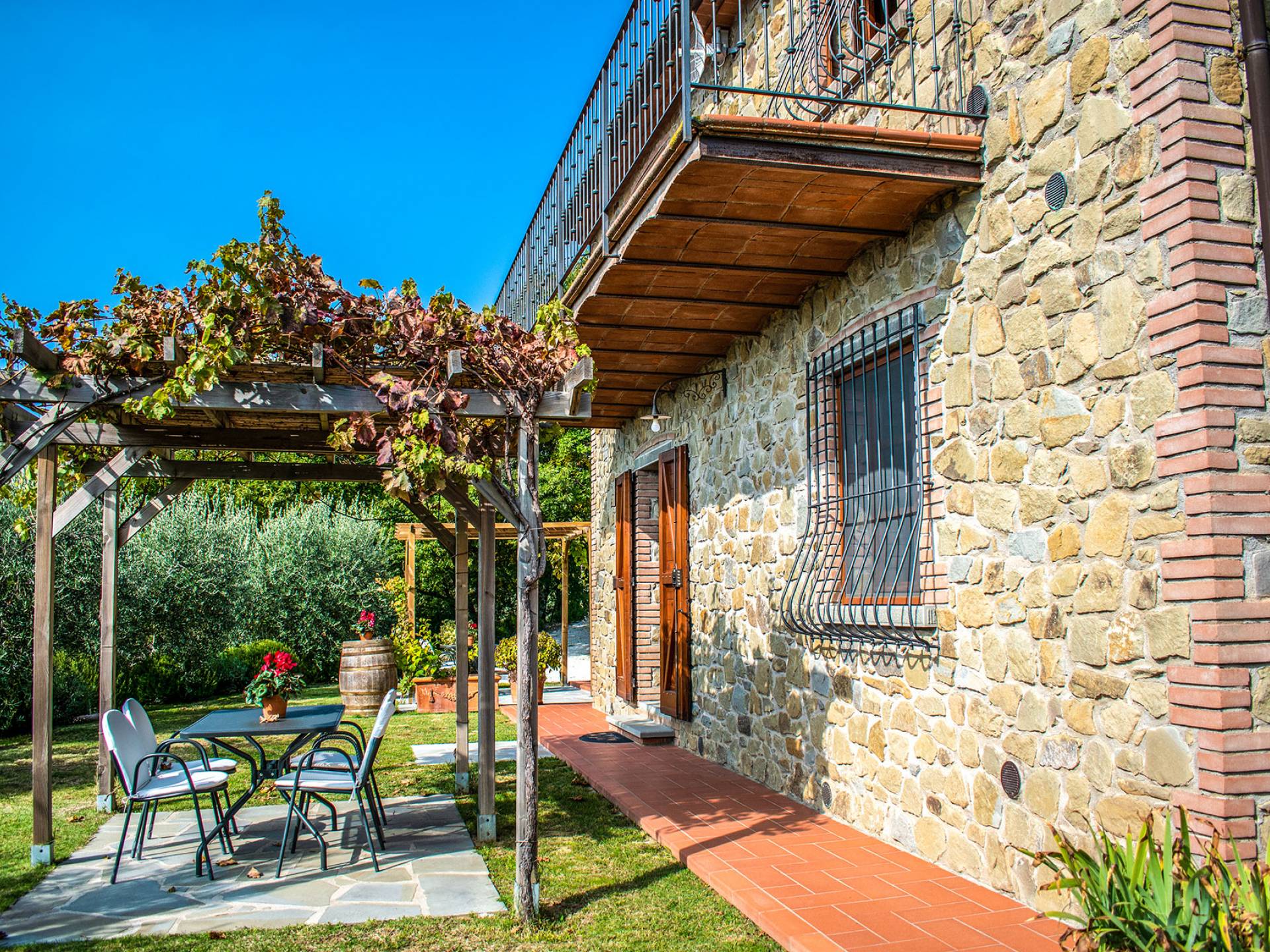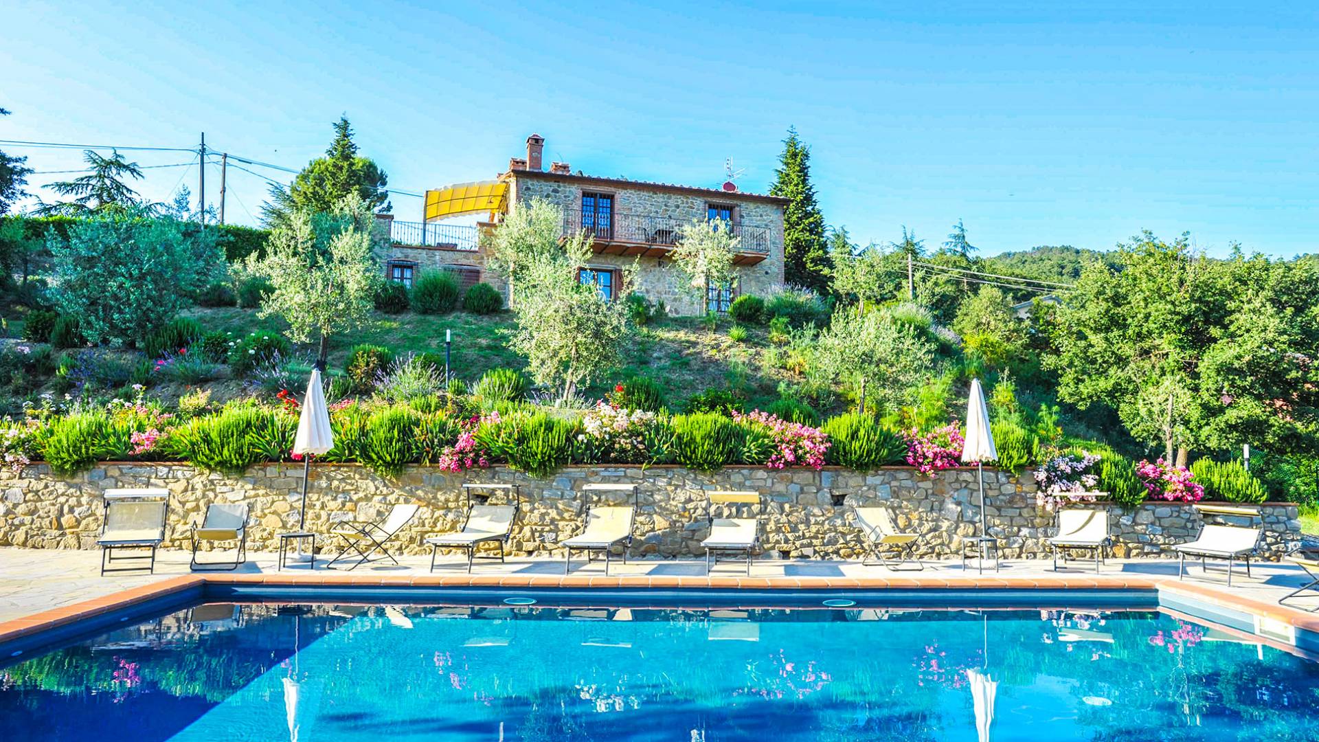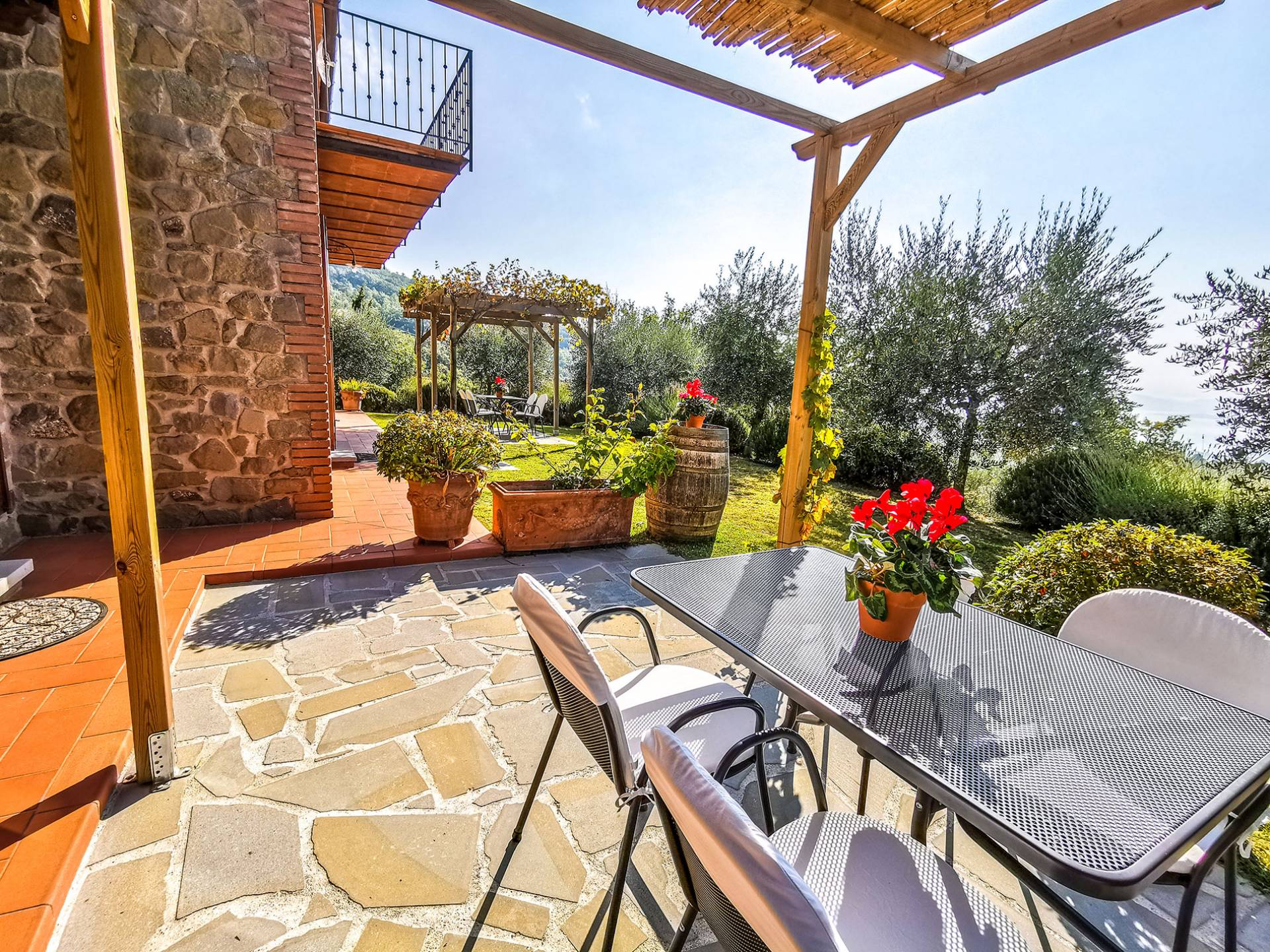 Villa Antonella Umbria ist eine Luxusvilla mit 5 Schlafzimmern und einem privaten Pool. Mit ihrem wunderbaren Blick auf den Trasimenischen See lässt die Villa Antonella ihre Gäste in einem Traum leben. An der Grenze zwischen der Toskana und Umbrien gelegen, ist das Anwesen von einem 4.000 Quadratmeter großen Garten mit Infinity-Außenpool und Sonnenterrasse umgeben. Seine 5 Zimmer und 3 Badezimmer verteilen sich auf zwei sehr schön eingerichtete Apartments im Landhaus-Chic, die alle mit einem Flachbild-TV, kostenlosem WLAN ausgestattet sind. Jedes von ihnen verfügt über einen eigenen Eingang und ein Badezimmer mit kostenlosen Pflegeprodukten und einem Haartrockner.