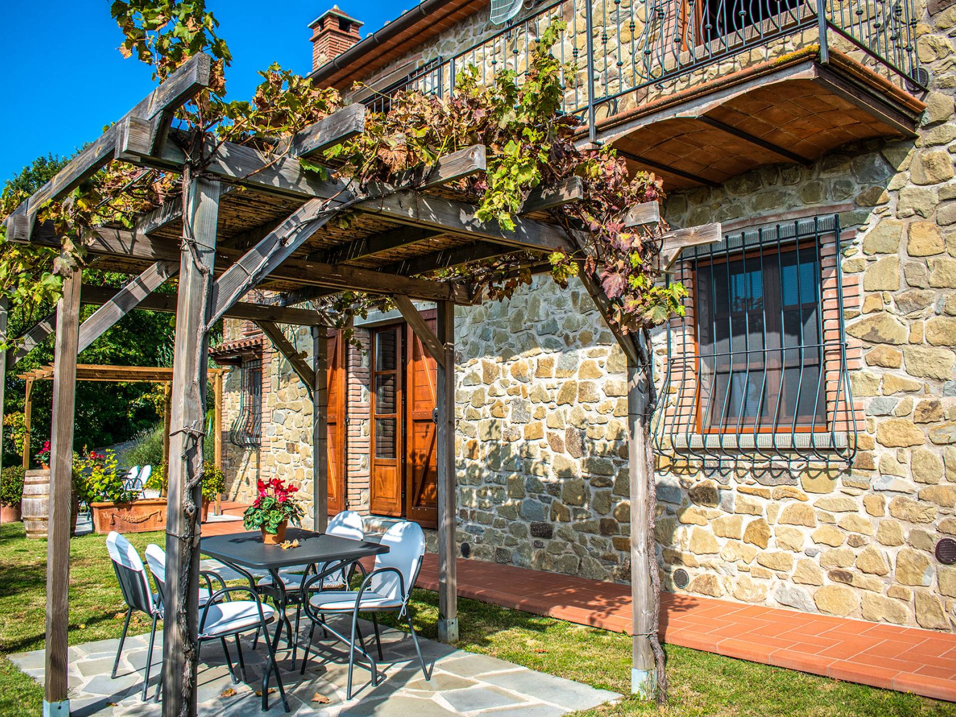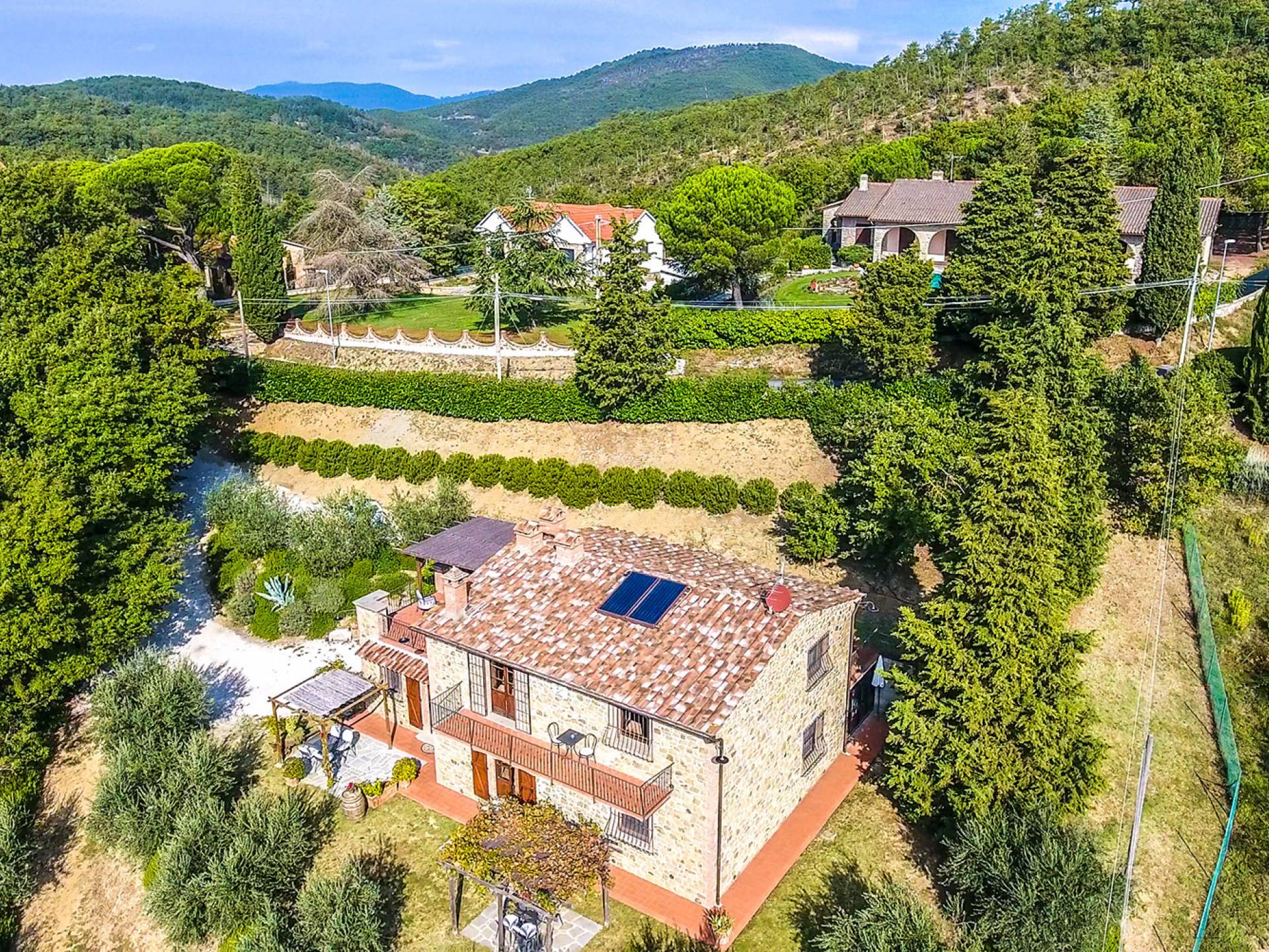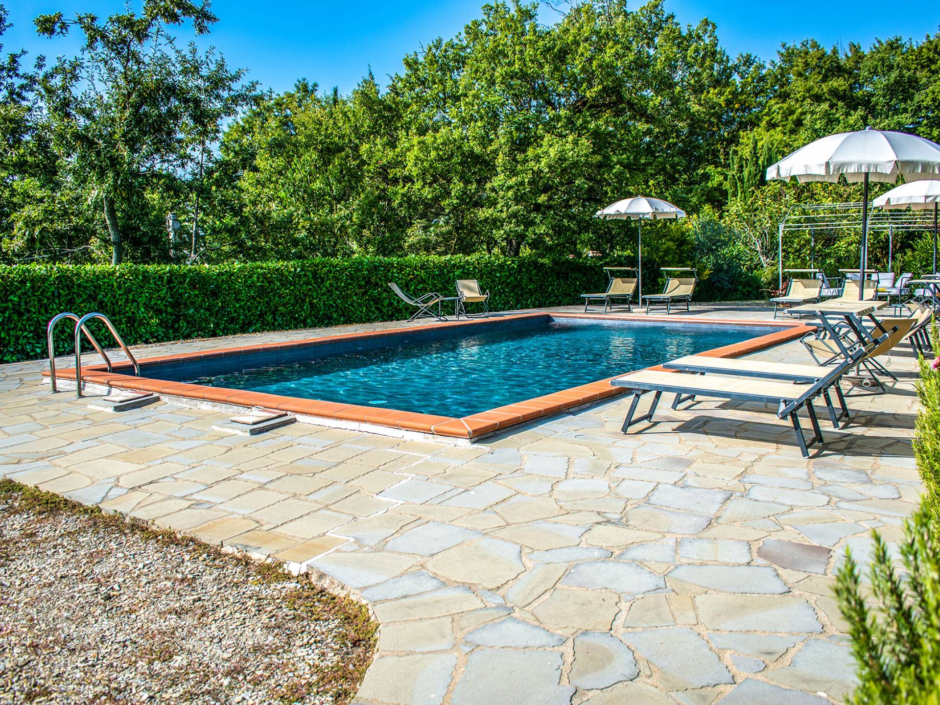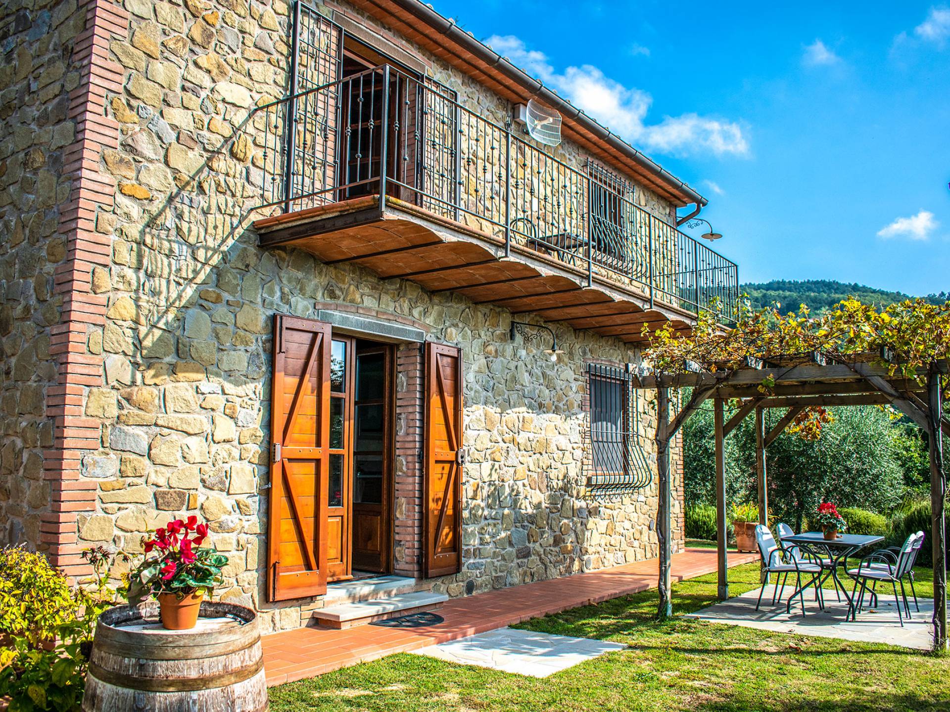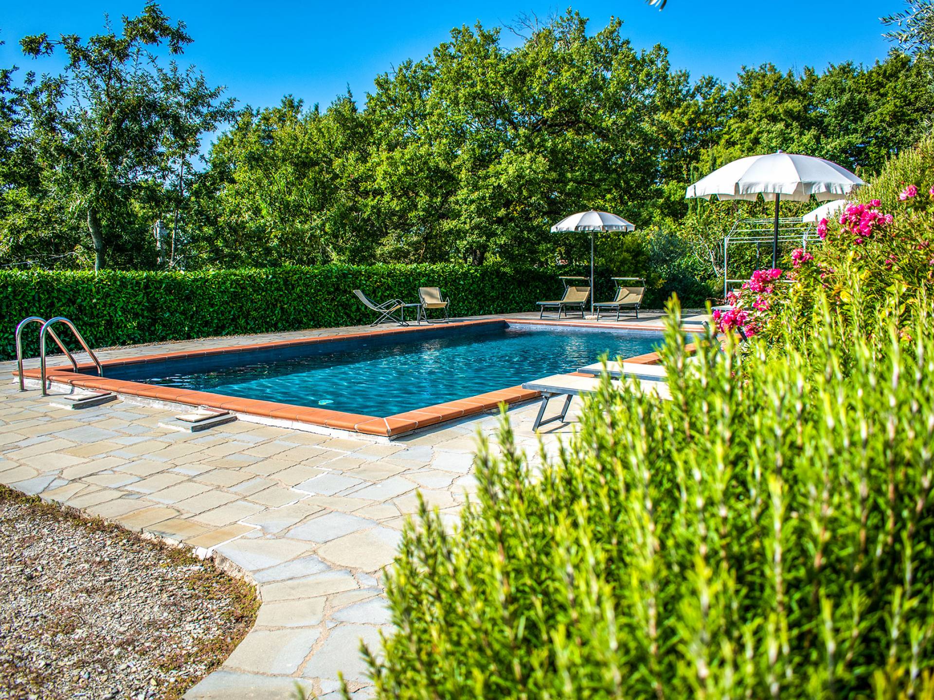 Villa Antonella Umbria ist eine Luxusvilla mit 5 Schlafzimmern und einem privaten Pool. Mit ihrem wunderbaren Blick auf den Trasimenischen See lässt die Villa Antonella ihre Gäste in einem Traum leben. An der Grenze zwischen der Toskana und Umbrien gelegen, ist das Anwesen von einem 4.000 Quadratmeter großen Garten mit Infinity-Außenpool und Sonnenterrasse umgeben. Seine 5 Zimmer und 3 Badezimmer verteilen sich auf zwei sehr schön eingerichtete Apartments im Landhaus-Chic, die alle mit einem Flachbild-TV, kostenlosem WLAN ausgestattet sind. Jedes von ihnen verfügt über einen eigenen Eingang und ein Badezimmer mit kostenlosen Pflegeprodukten und einem Haartrockner.