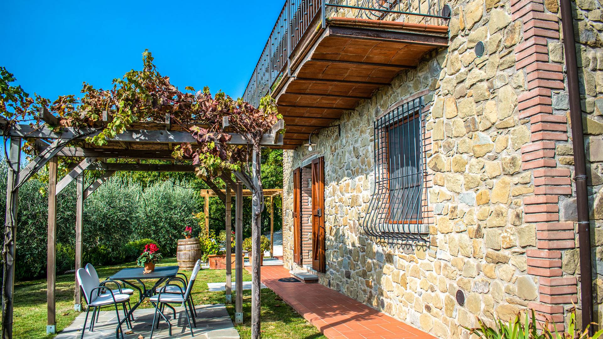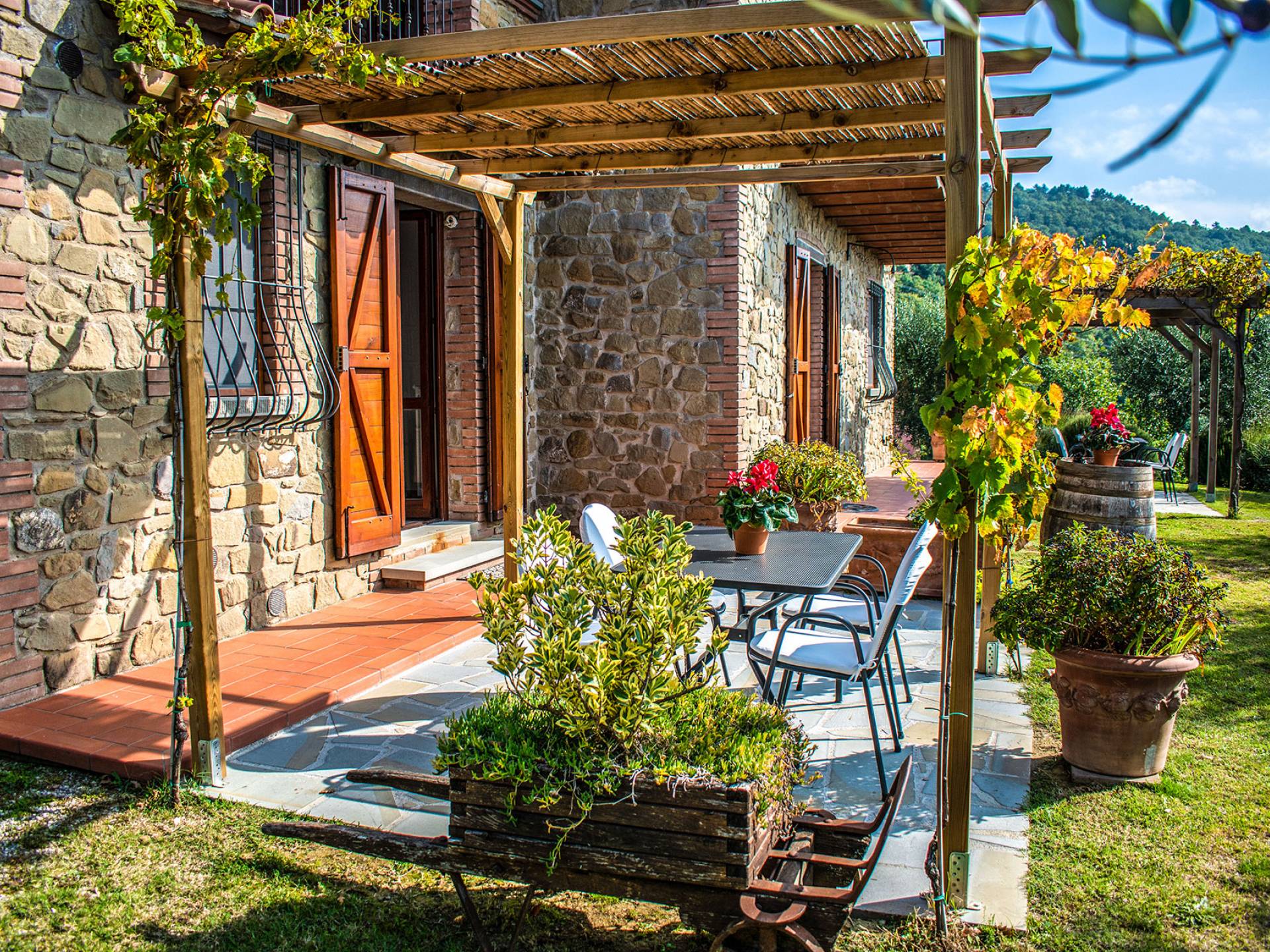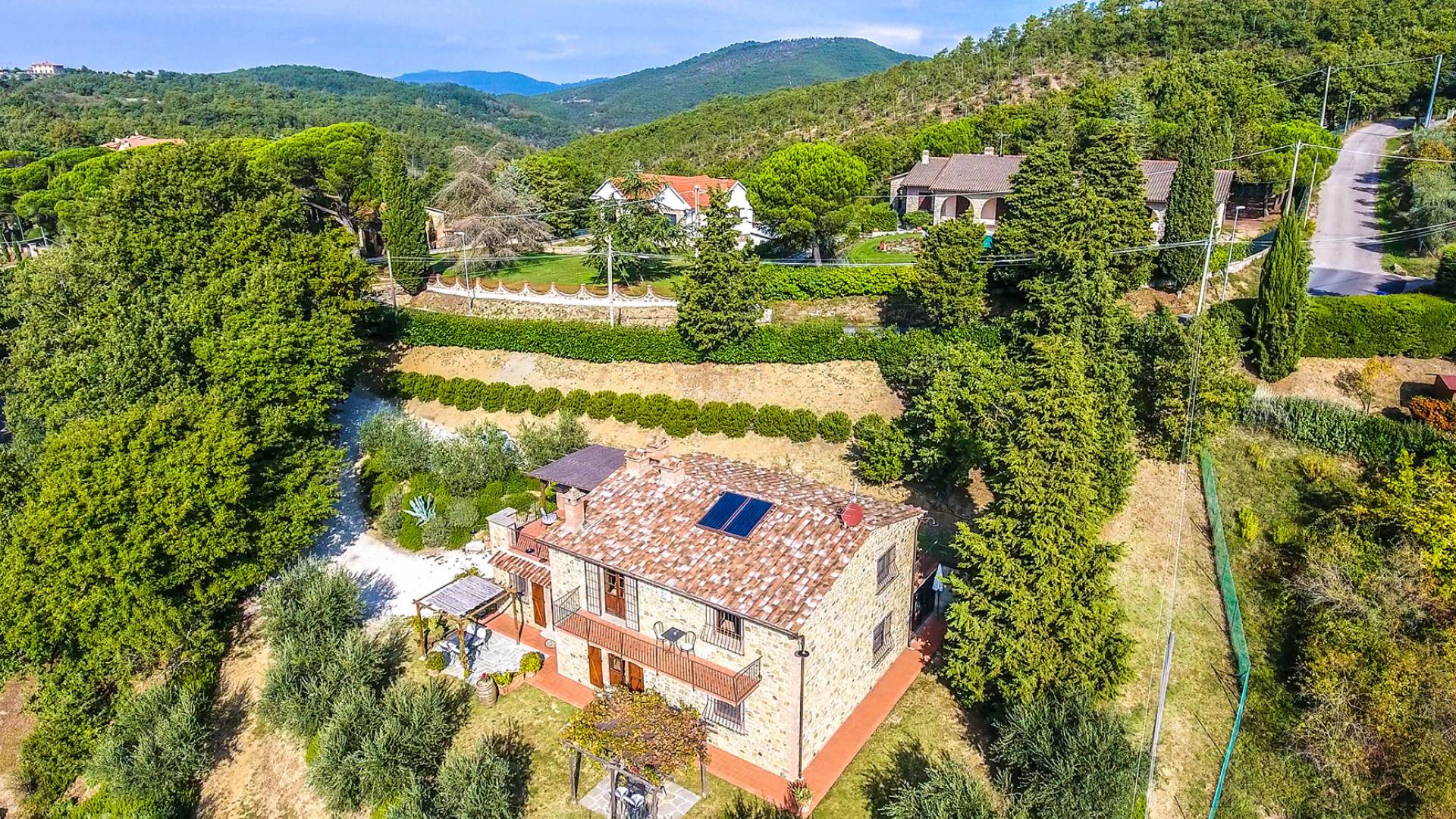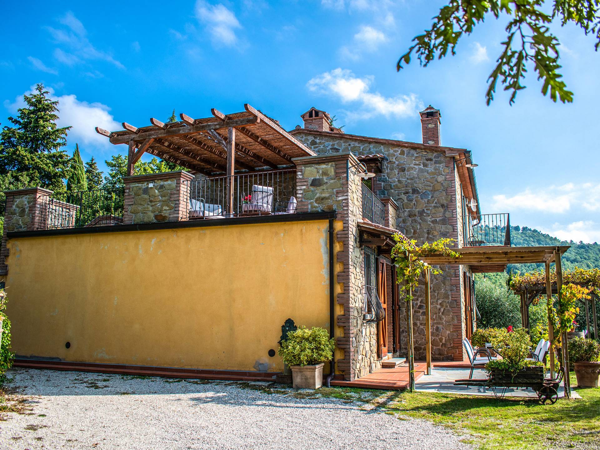 Villa Antonella Umbria ist eine Luxusvilla mit 5 Schlafzimmern und einem privaten Pool. Mit ihrem wunderbaren Blick auf den Trasimenischen See lässt die Villa Antonella ihre Gäste in einem Traum leben. An der Grenze zwischen der Toskana und Umbrien gelegen, ist das Anwesen von einem 4.000 Quadratmeter großen Garten mit Infinity-Außenpool und Sonnenterrasse umgeben. Seine 5 Zimmer und 3 Badezimmer verteilen sich auf zwei sehr schön eingerichtete Apartments im Landhaus-Chic, die alle mit einem Flachbild-TV, kostenlosem WLAN ausgestattet sind. Jedes von ihnen verfügt über einen eigenen Eingang und ein Badezimmer mit kostenlosen Pflegeprodukten und einem Haartrockner.