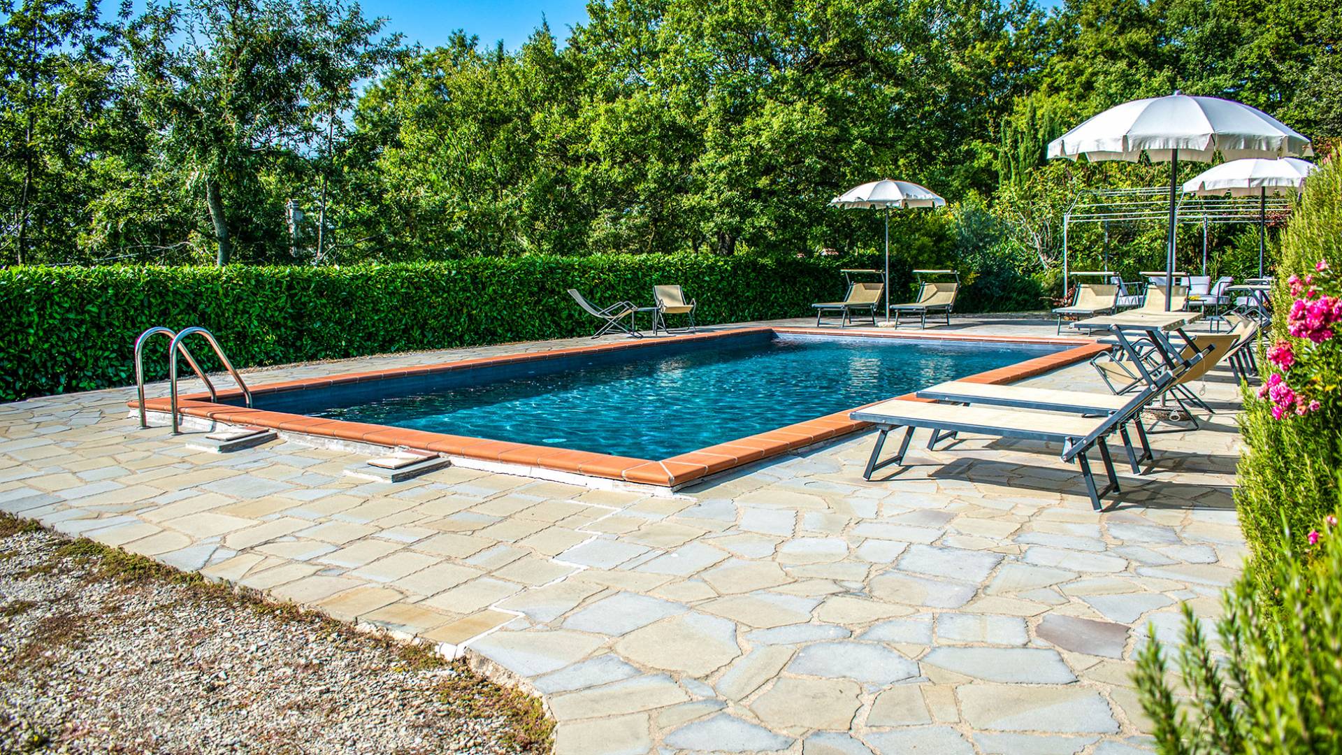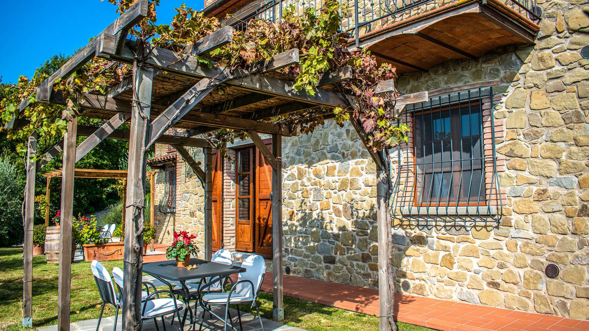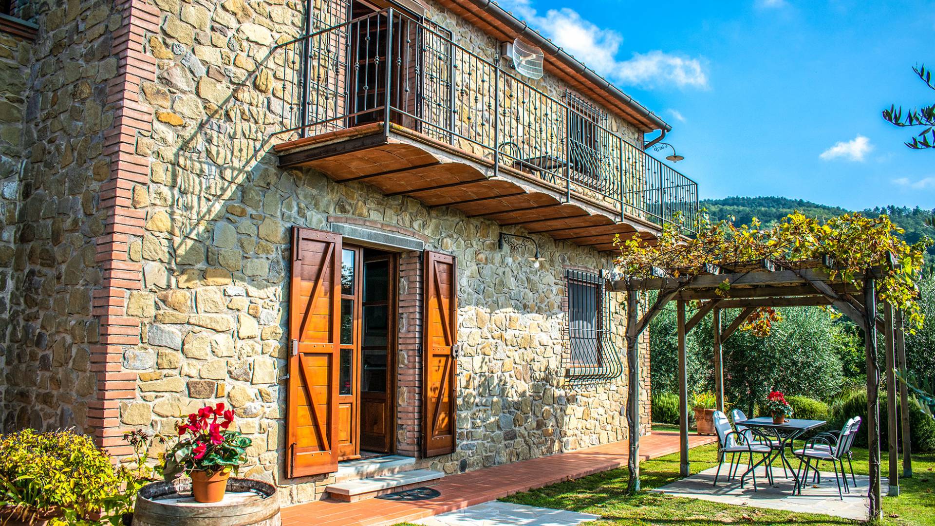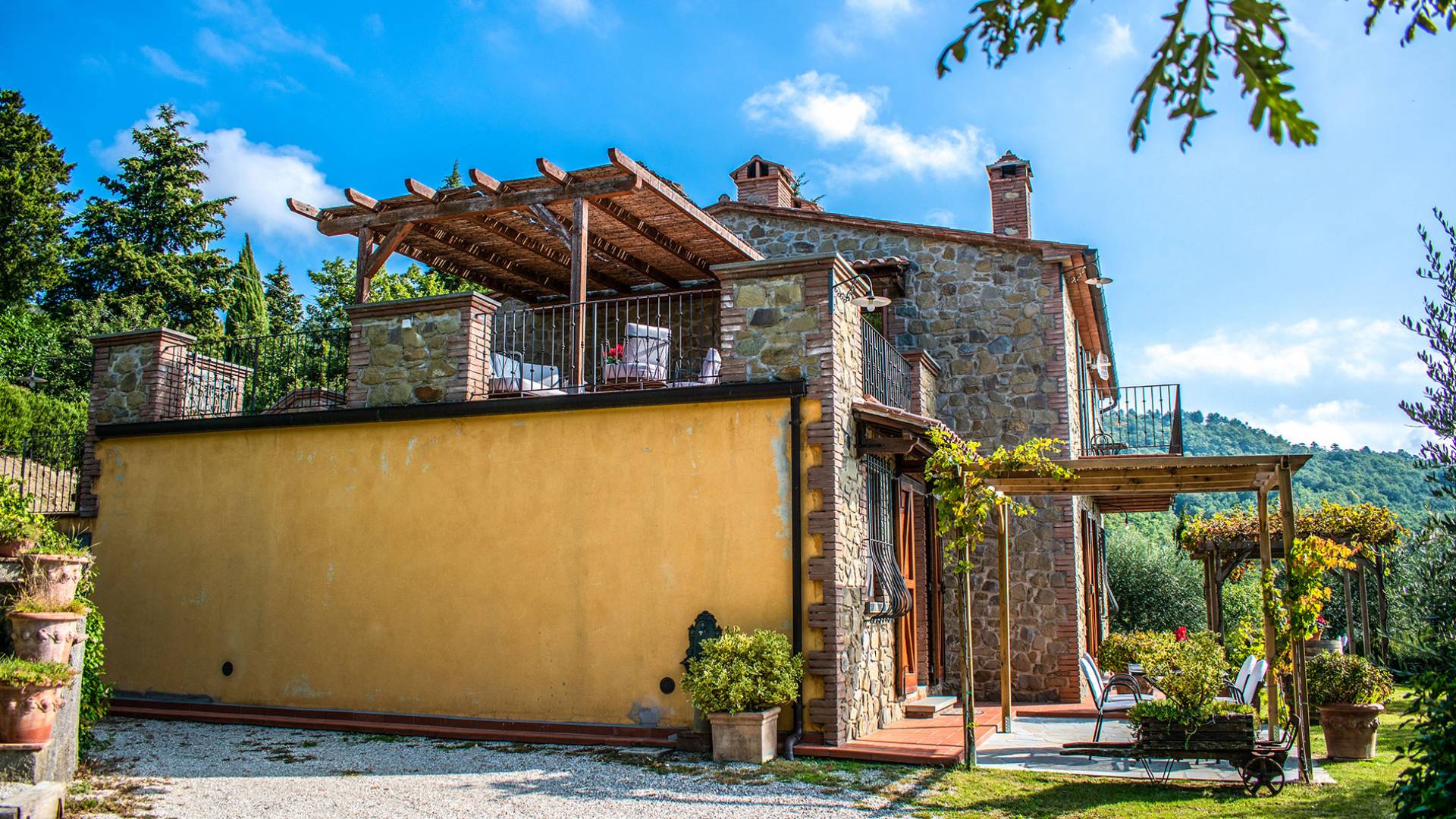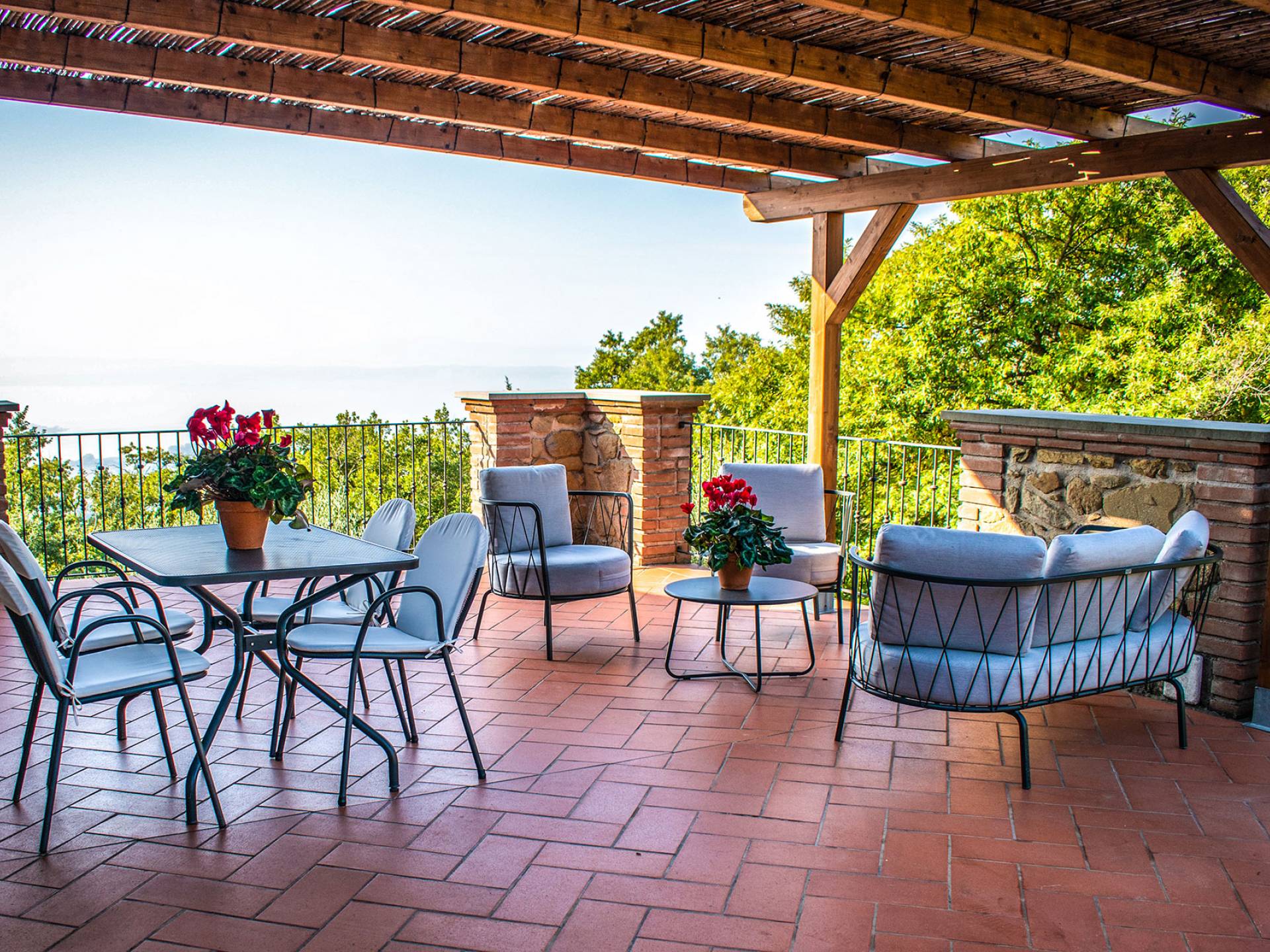 Villa Antonella Umbria ist eine Luxusvilla mit 5 Schlafzimmern und einem privaten Pool. Mit ihrem wunderbaren Blick auf den Trasimenischen See lässt die Villa Antonella ihre Gäste in einem Traum leben. An der Grenze zwischen der Toskana und Umbrien gelegen, ist das Anwesen von einem 4.000 Quadratmeter großen Garten mit Infinity-Außenpool und Sonnenterrasse umgeben. Seine 5 Zimmer und 3 Badezimmer verteilen sich auf zwei sehr schön eingerichtete Apartments im Landhaus-Chic, die alle mit einem Flachbild-TV, kostenlosem WLAN ausgestattet sind. Jedes von ihnen verfügt über einen eigenen Eingang und ein Badezimmer mit kostenlosen Pflegeprodukten und einem Haartrockner.