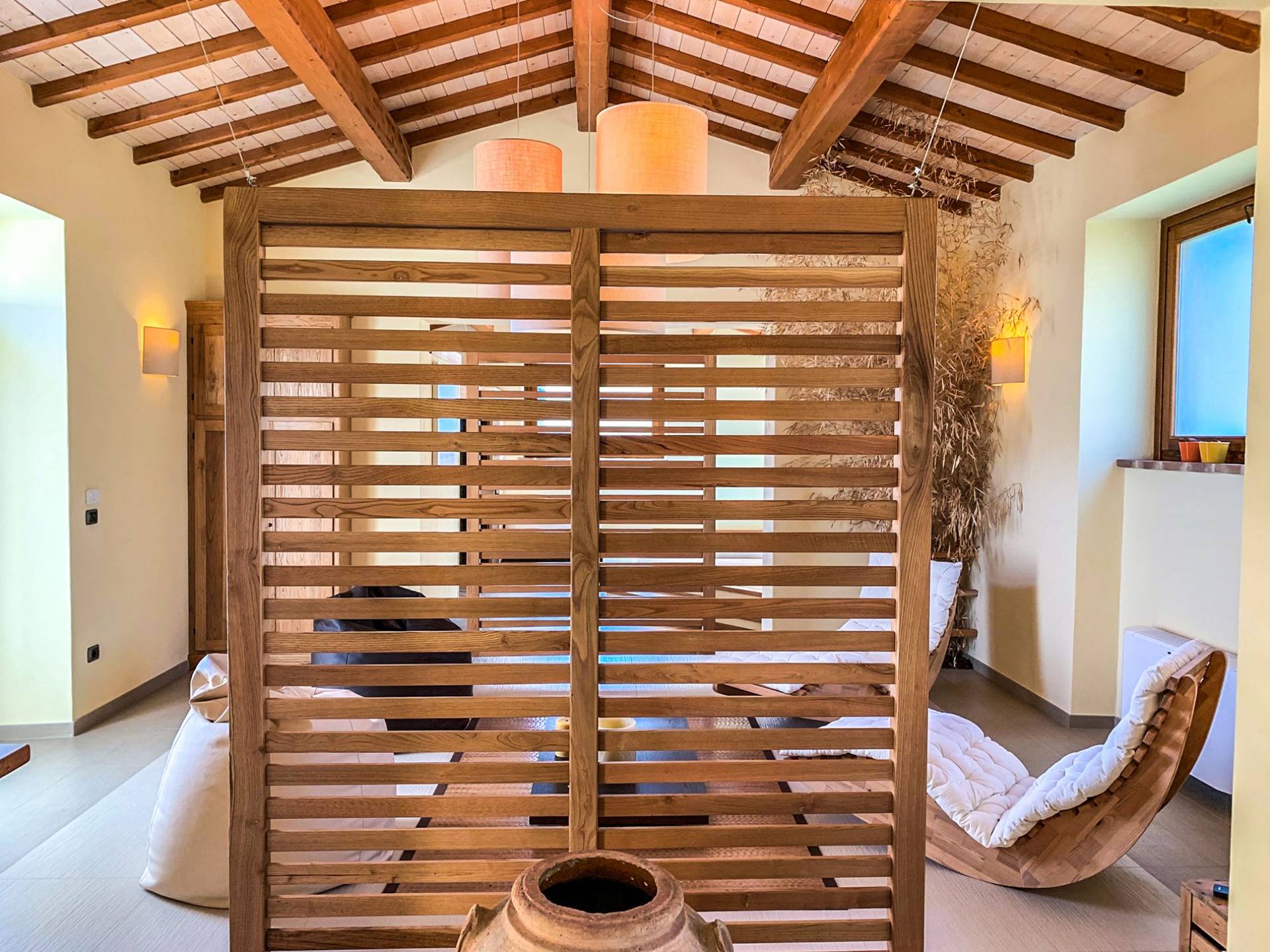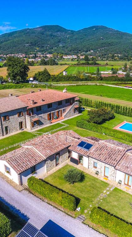 Renoviert unter Beibehaltung der Harmonien des alten Bauernhauses, von den Steinmauern bis hin zu den Terrakotta-Oberflächen, hat der Veranstaltungsort auch die Ikonen bewahrt, die einst das Gefühl vermittelten, sich wie ein Holzofen zu versammeln, der verwendet wurde, um Brot zu backen, das einst von mehreren Familien geteilt wurde , oder der Garten, der einst als Innenhof diente, in dem sich die Nachbarn über alltägliche Angelegenheiten unterhielten. Villa Della Valle bietet auch einen Wellnessbereich, einen schönen Swimmingpool und ein Fitnessstudio, die alle mit erneuerbaren und umweltfreundlichen Quellen betrieben werden, die ihre Selbstversorgung garantieren. Draußen vermittelt der Blick auf eine alte Burg eine einzigartige Aussicht, während im Inneren jeder Raum geschaffen wurde, um Momente der Entspannung und des friedlichen Lebens zu genießen, selbst die Einrichtung spiegelt den ländlichen Geschmack Umbriens wider, aber mit einem Hauch von Modernität