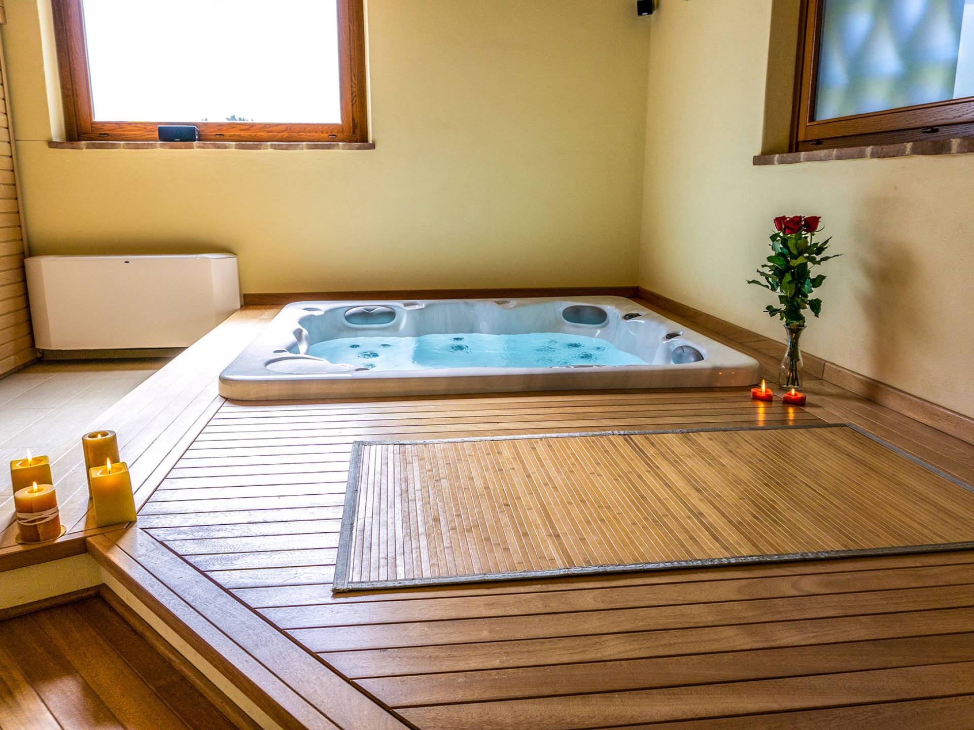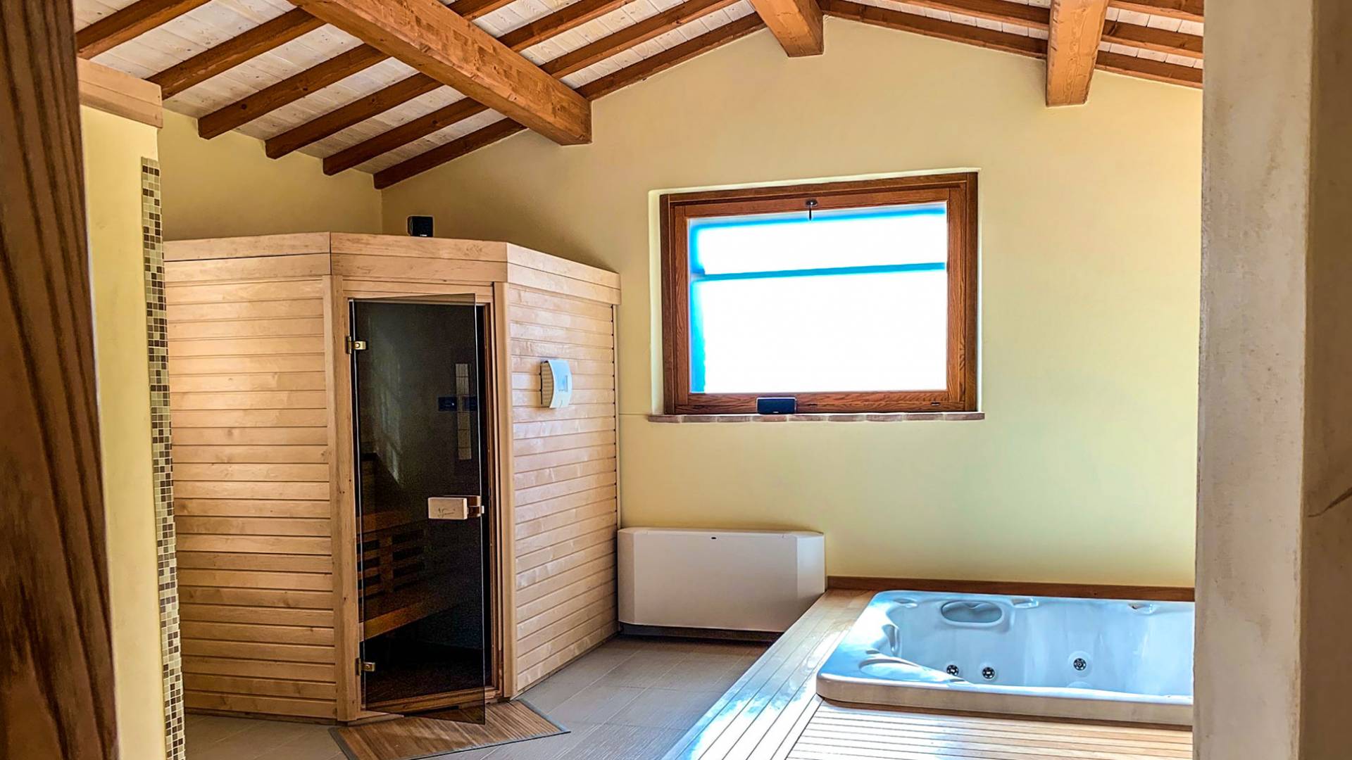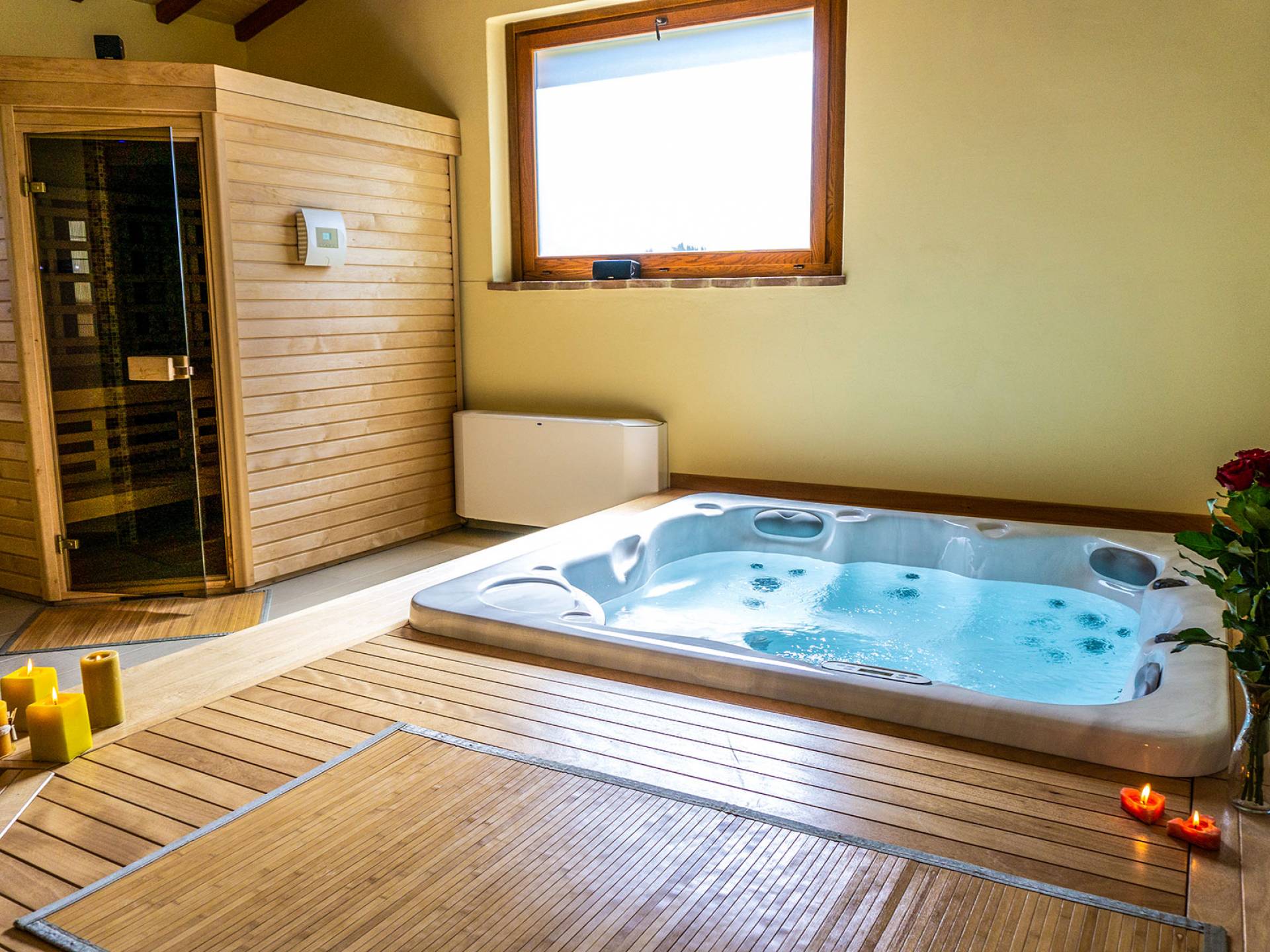 In einem alten, komplett renovierten Nebengebäude können sich die Gäste bei einem Whirlpool, einer Erlebnisdusche und einer rosa Birkenholzsauna entspannen. In der Nähe gibt es Reitställe, einen Tennisplatz und Naturlehrpfade.