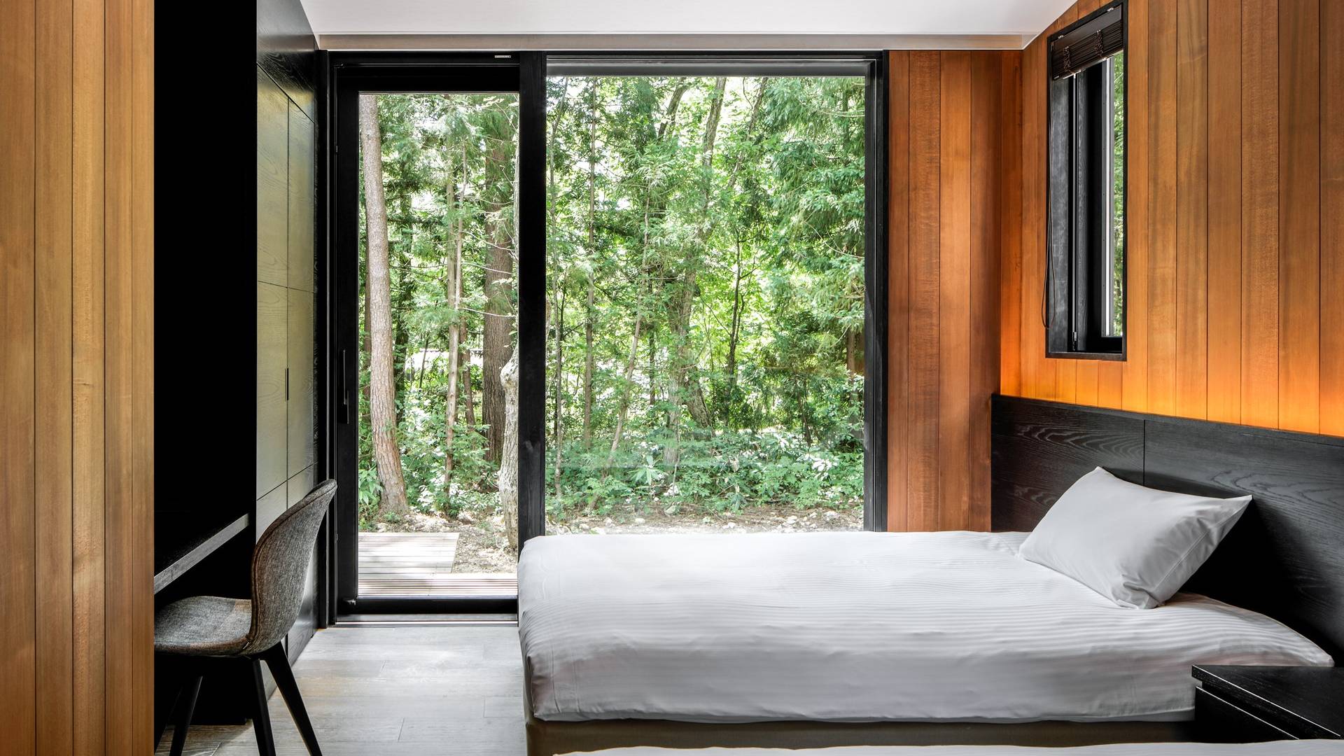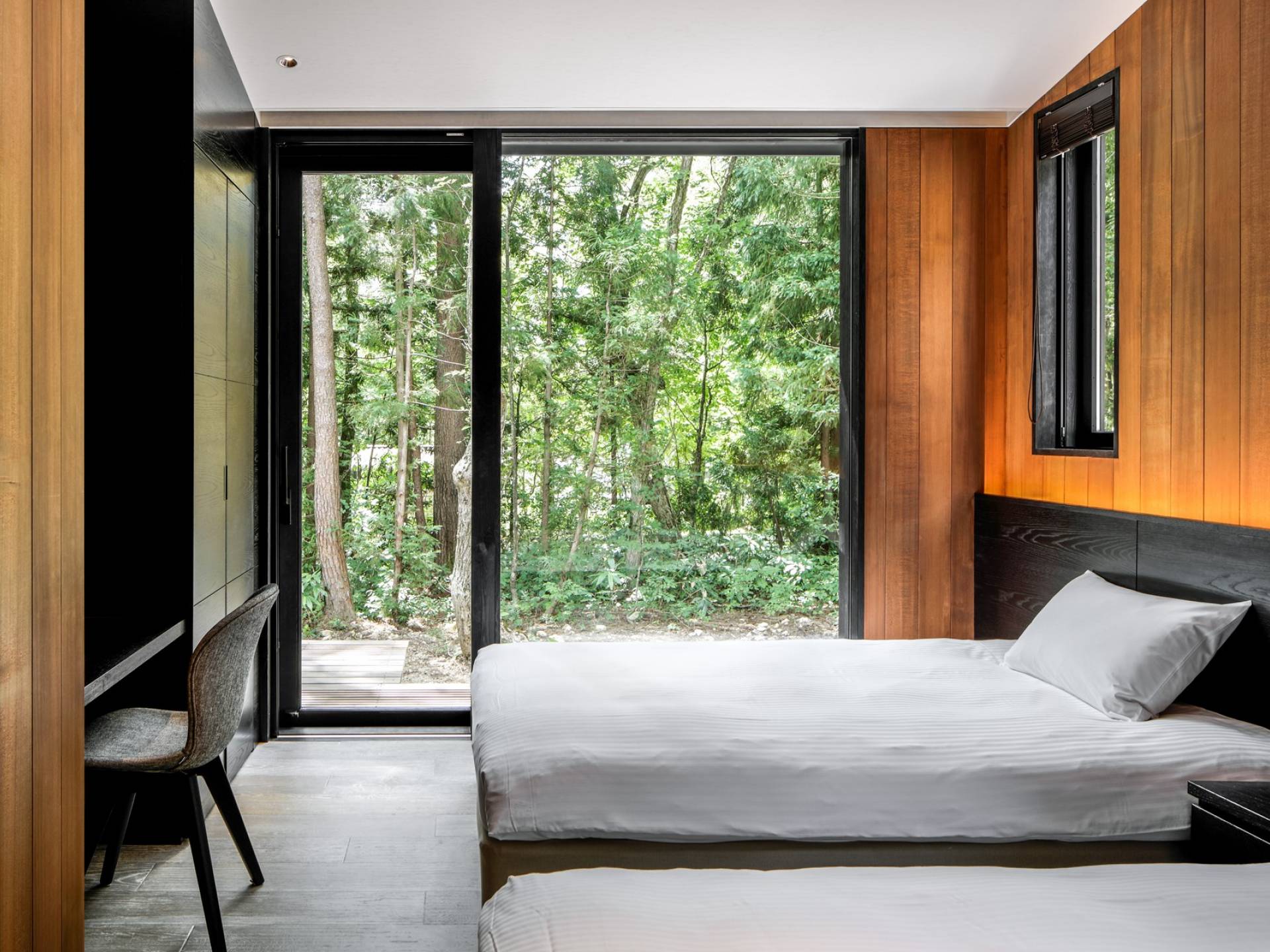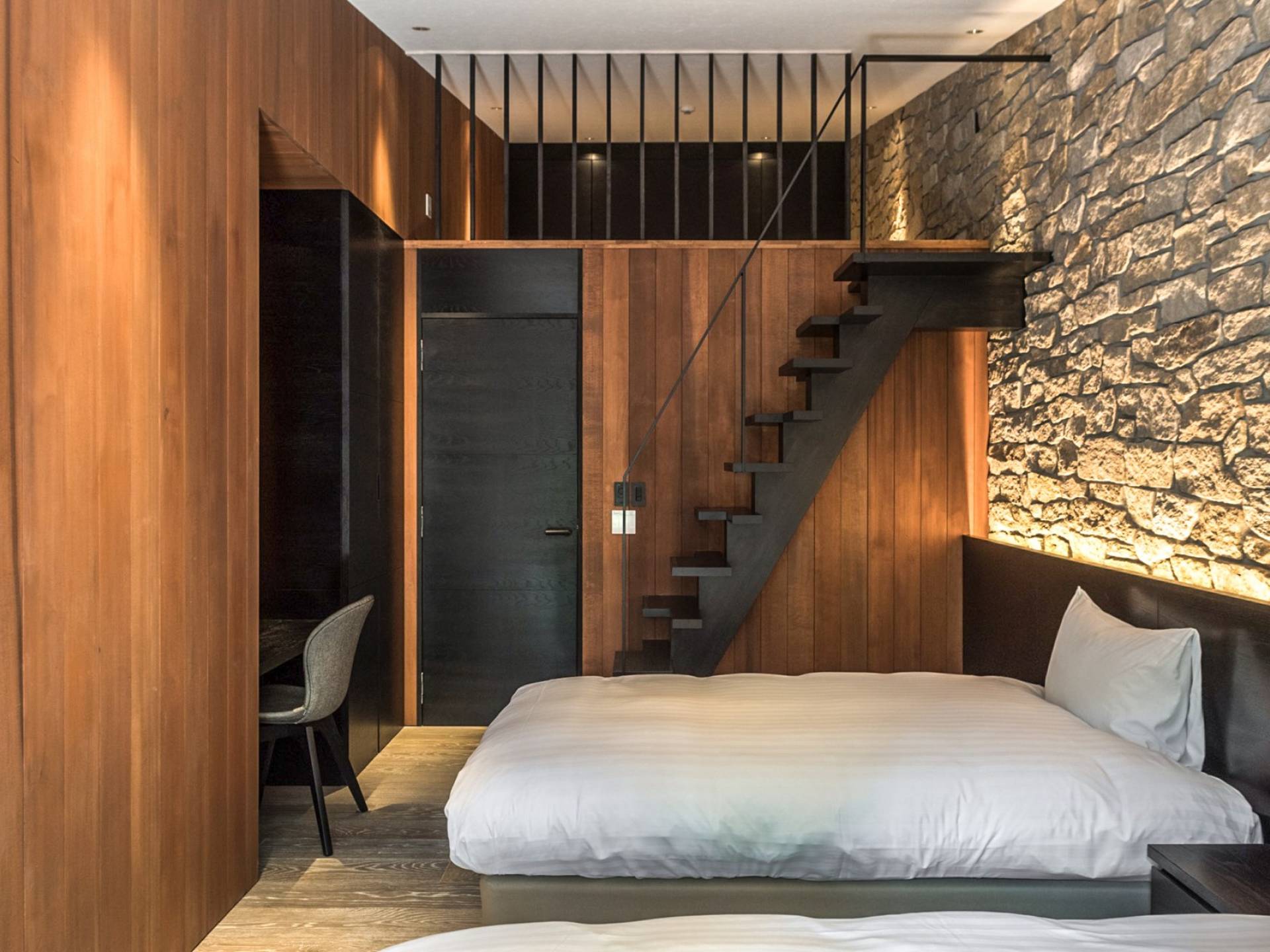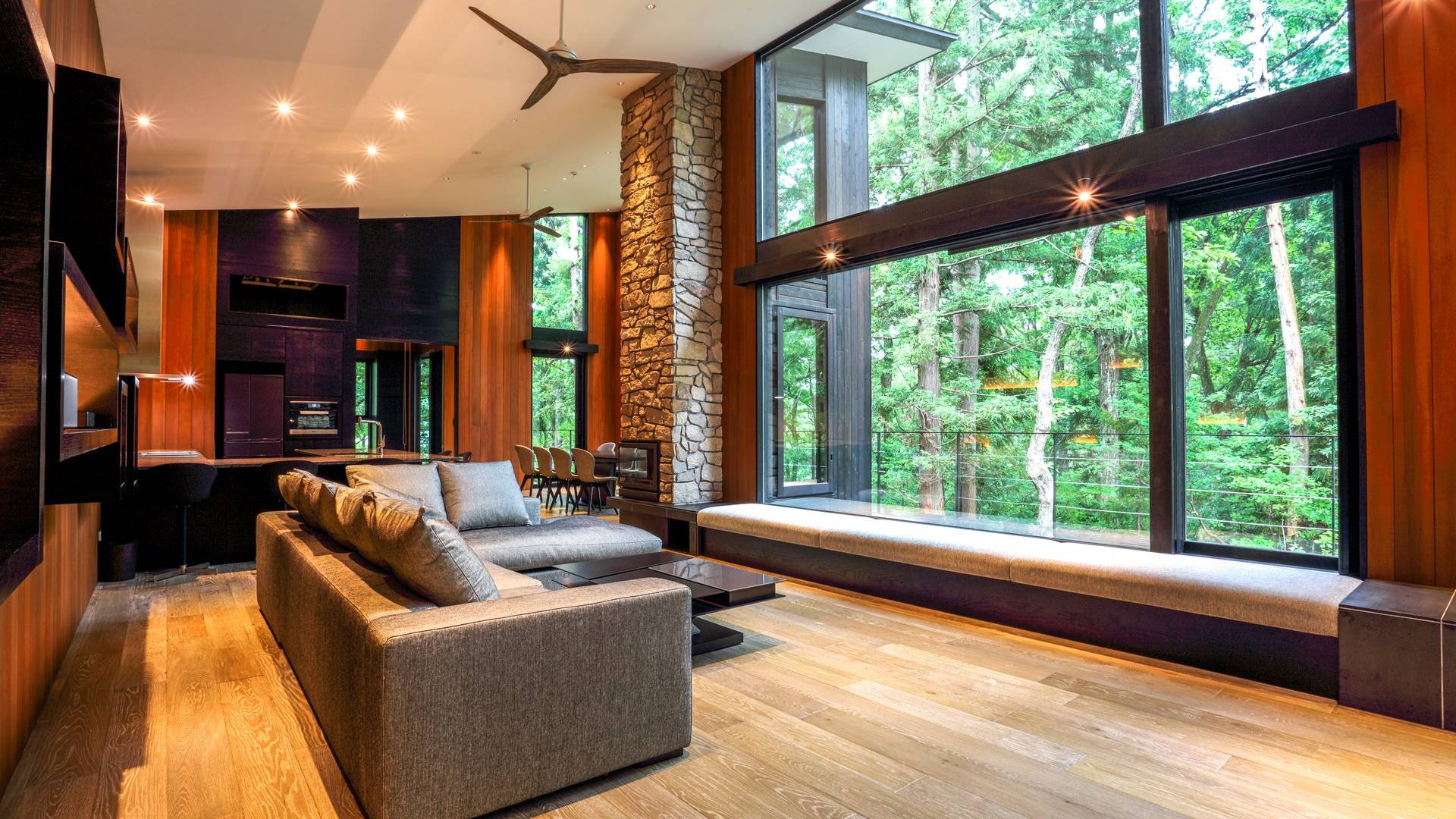 Die Villa befindet sich in der Nähe des weltberühmten Skigebiets Happo-one. Der nächste Sessellift, Sakka Slope, ist nur 150 m entfernt und bequem zu Fuß erreichbar. Ebenfalls leicht erreichbar sind die anderen Skigebiete mit dem bequemen Shuttlebus. Die wunderbaren Restaurants in der Gegend von Wadano sind ebenfalls größtenteils zu Fuß erreichbar. Die Villa El Cielo verfügt über ein kompliziert geformtes Dach, um ein Wohnzimmer mit einer maximalen Deckenhöhe von 5,2 m und einem Dachboden zu schaffen. Alle Holzverkleidungswände im Innen- und Außenbereich sind aus roter Zeder gefertigt, wobei nur eine Wand im Hauptbereich mit einem Felsen bedeckt ist, um einen Akzent zu setzen. Der elegante Stil sorgt für eine stilvolle Villa im Wald. Bitte genießen Sie Ihre Zeit hier.