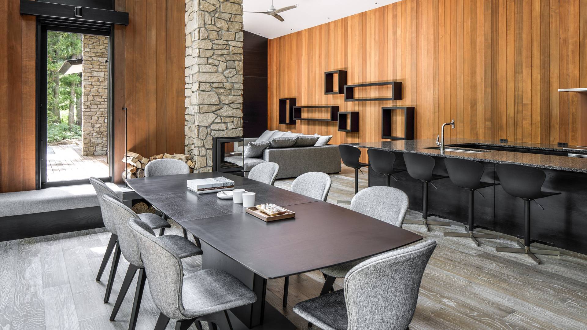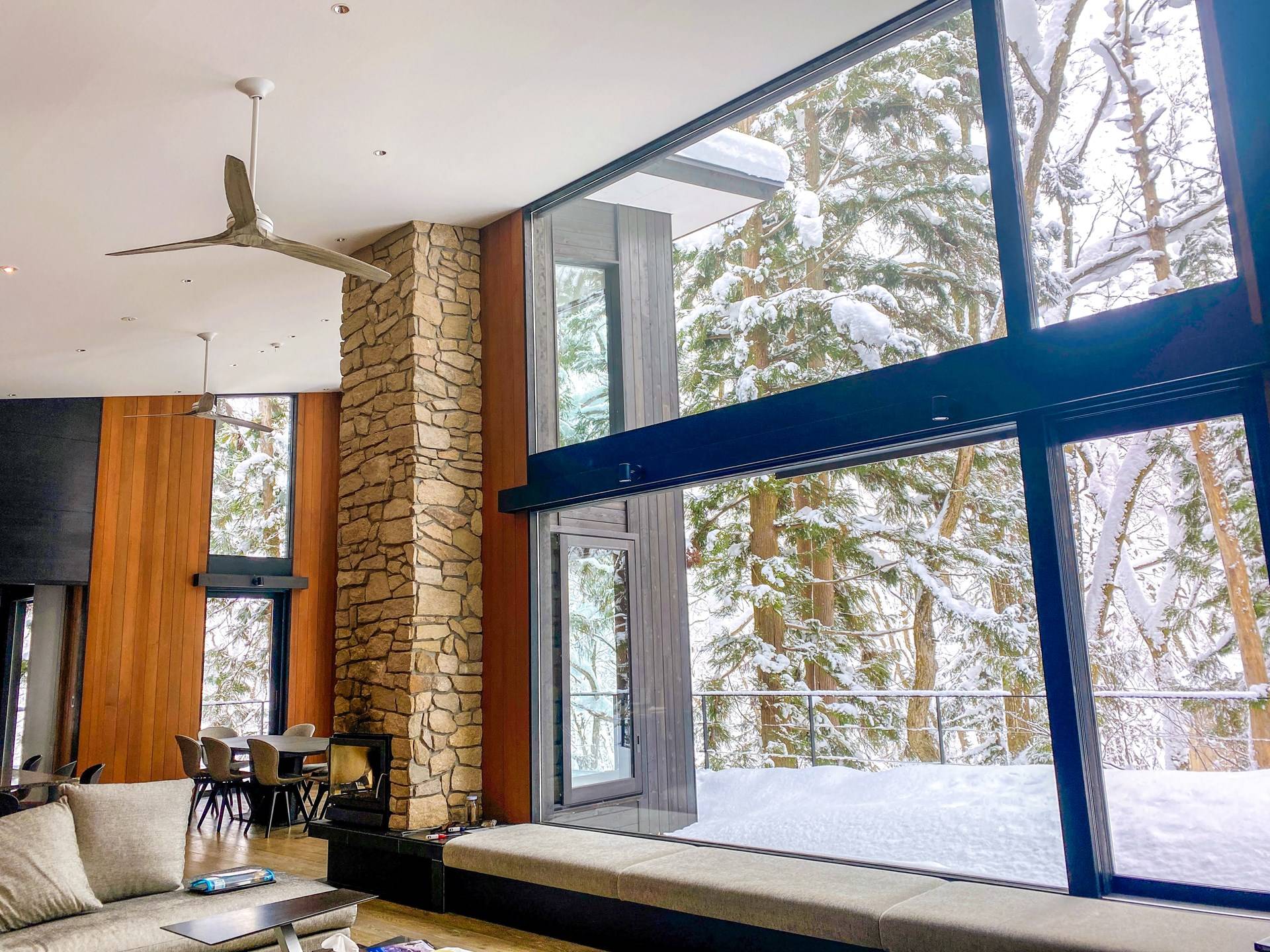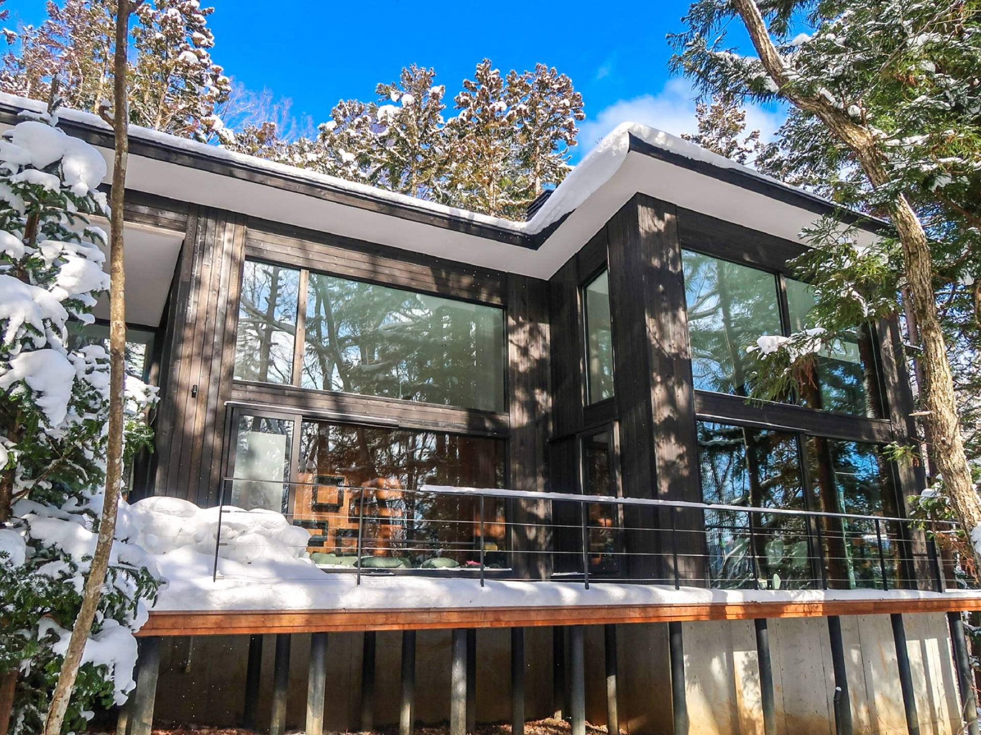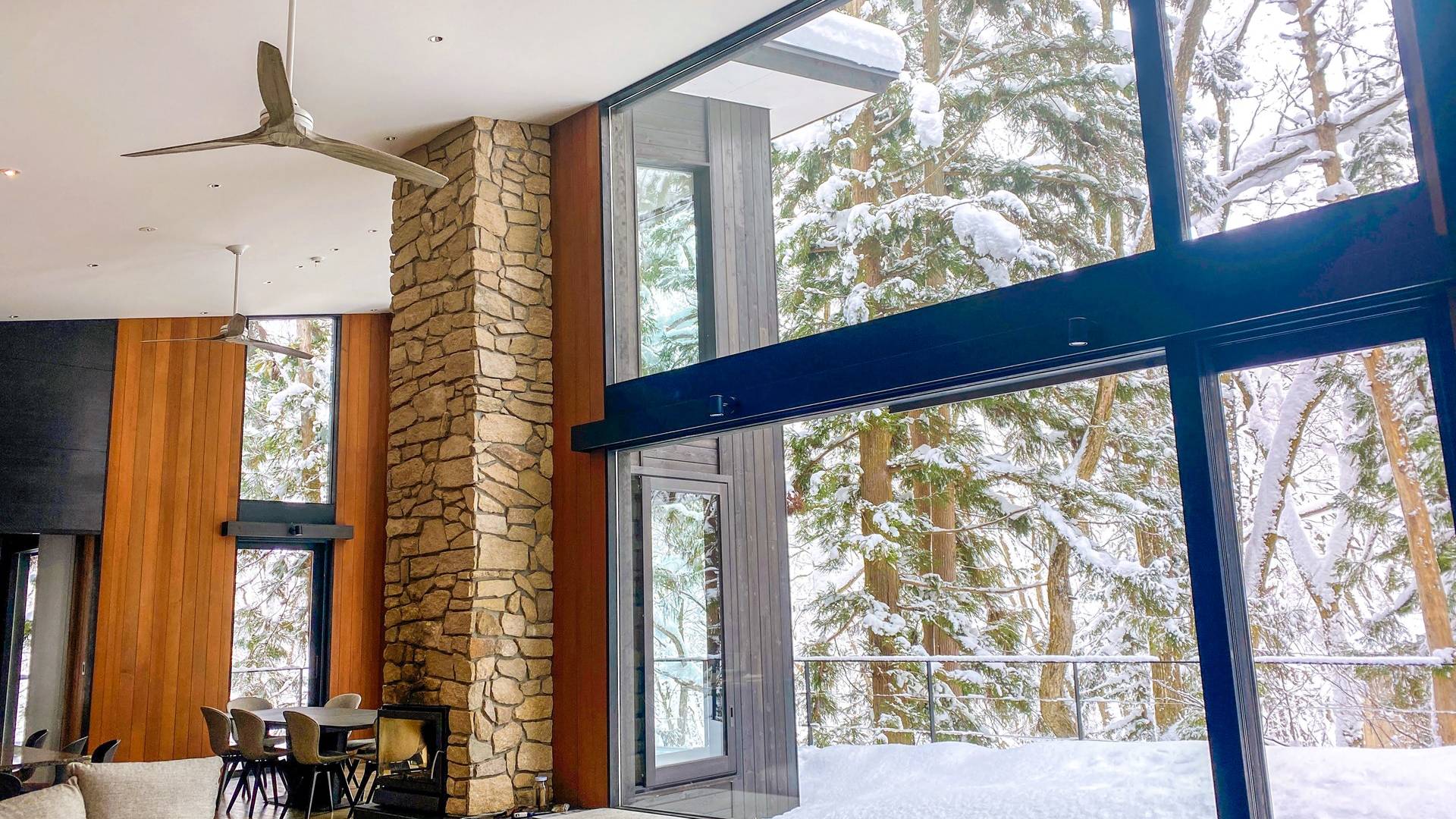 Nur 150 Meter von den Pisten entfernt bietet die Villa El Cielo einen breiten Wohnbereich mit einer 5 m hohen Decke, die Ihnen einen erholsamen Aufenthalt im Wald ermöglicht. Das Design ermöglicht es 2 Familien oder einer kleinen Gruppe von Menschen, in Privatsphäre zu leben. Jeder private Bereich ist mit dem Wohnzimmer verbunden, wodurch eine perfekte Balance zwischen Privatsphäre und Beziehungsbindung hergestellt wird. Eine nach Süden ausgerichtete Holzterrasse bietet den Gästen einen herrlichen Blick auf den Wald.