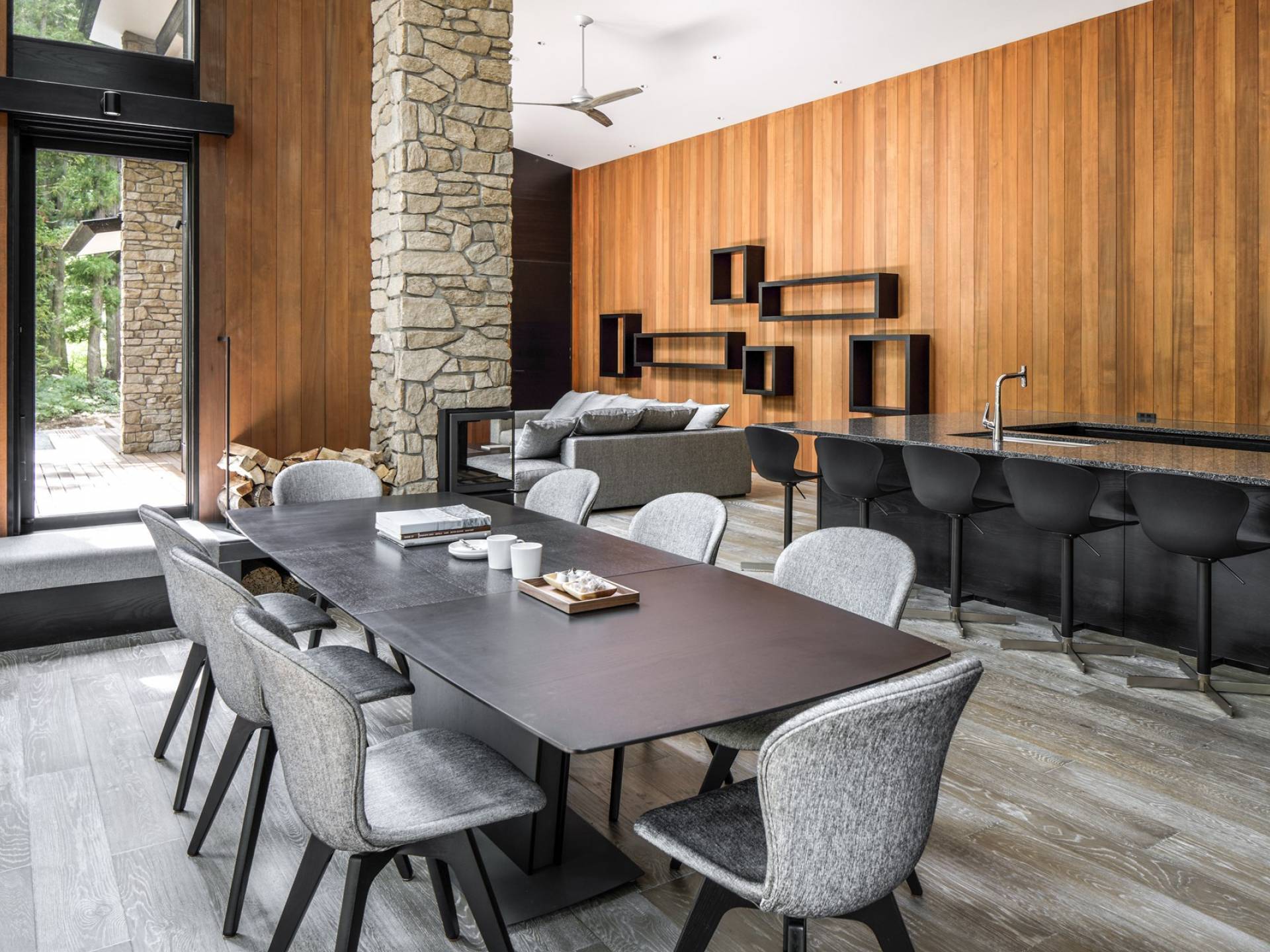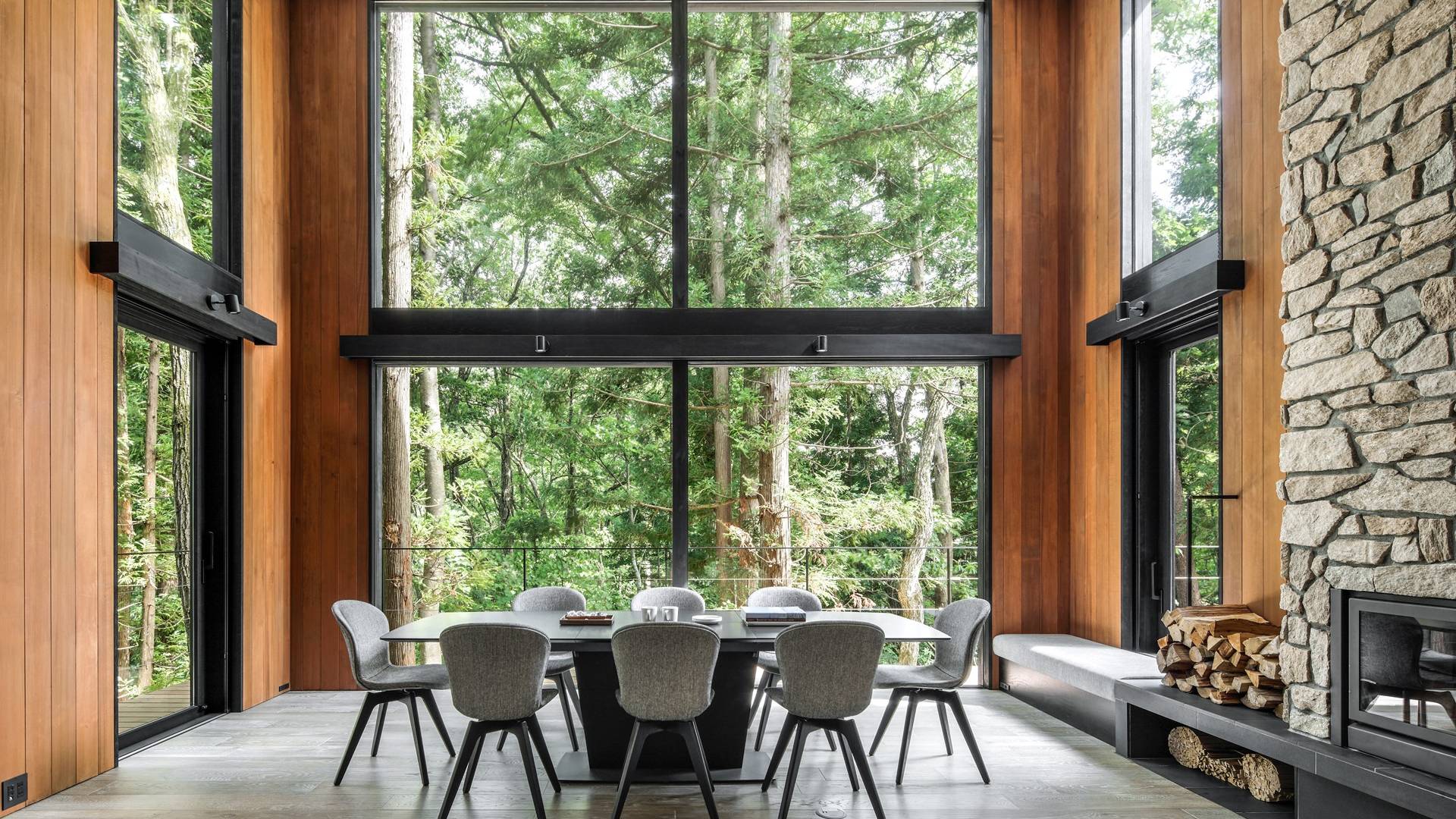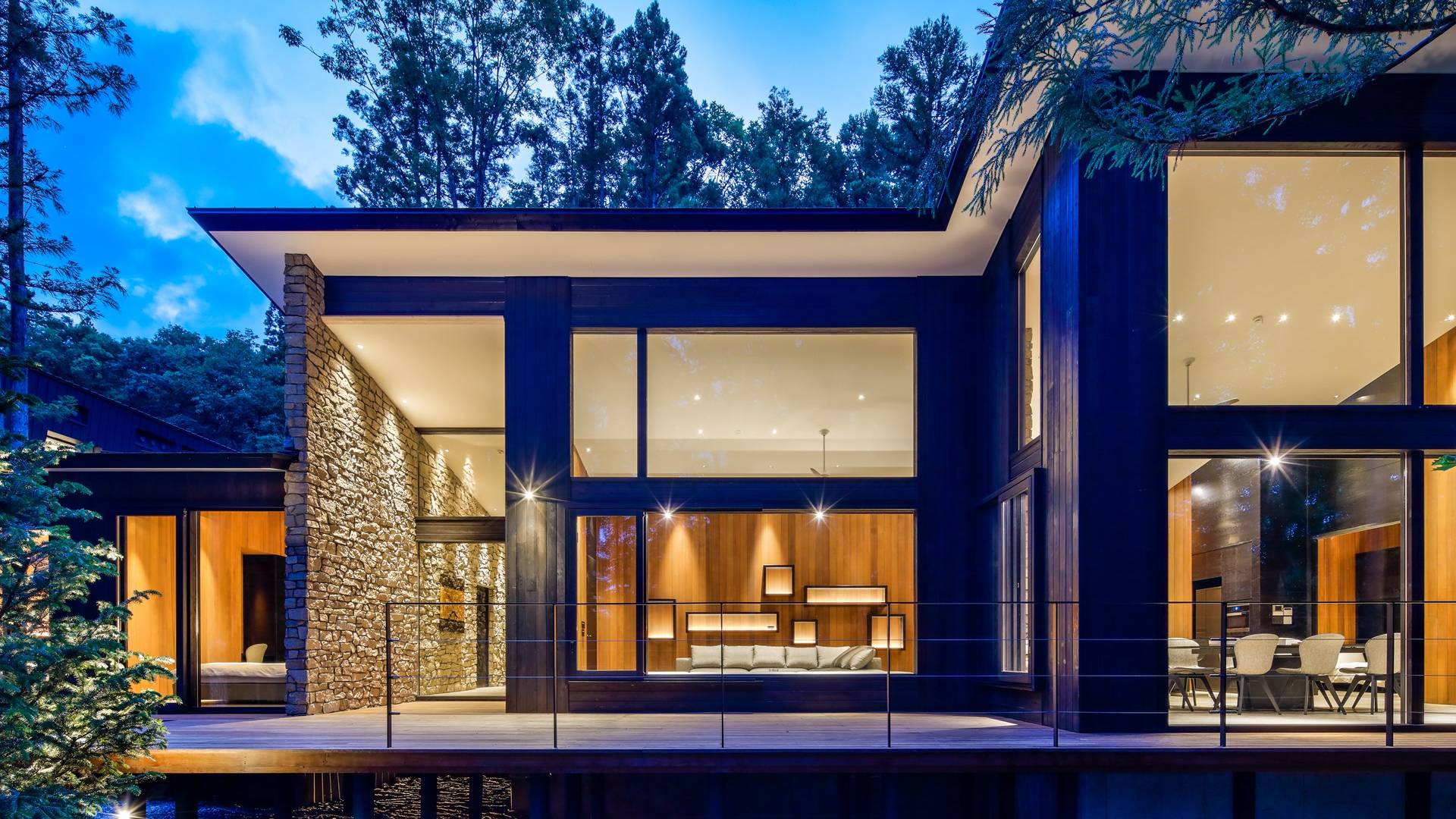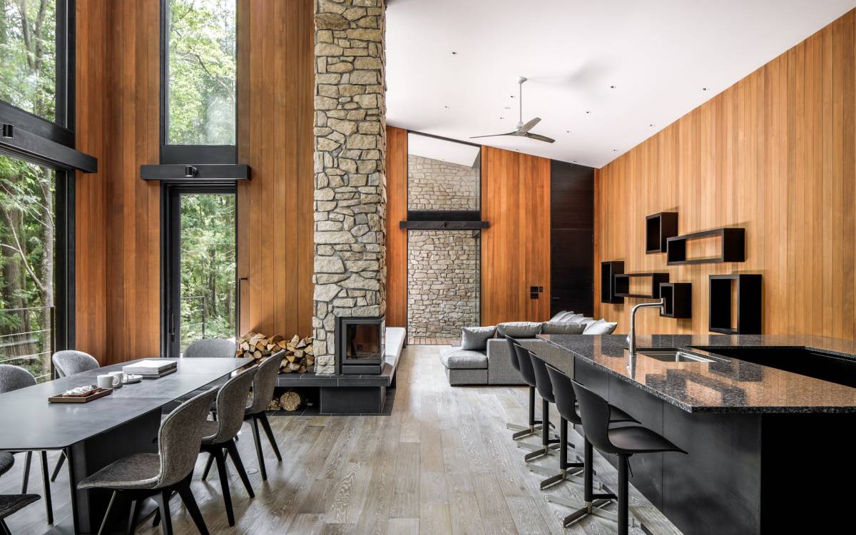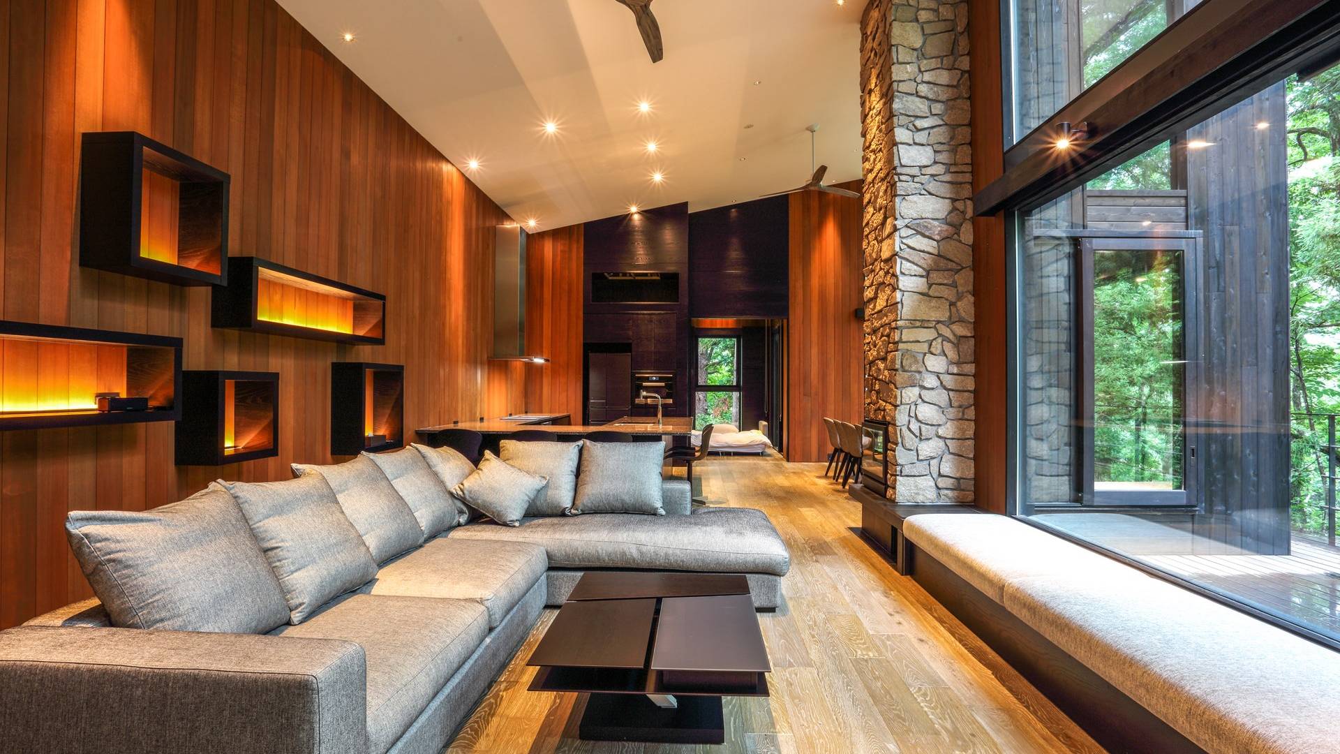 Nur 150 Meter von den Pisten entfernt bietet die Villa El Cielo einen breiten Wohnbereich mit einer 5 m hohen Decke, die Ihnen einen erholsamen Aufenthalt im Wald ermöglicht. Das Design ermöglicht es 2 Familien oder einer kleinen Gruppe von Menschen, in Privatsphäre zu leben. Jeder private Bereich ist mit dem Wohnzimmer verbunden, wodurch eine perfekte Balance zwischen Privatsphäre und Beziehungsbindung hergestellt wird. Eine nach Süden ausgerichtete Holzterrasse bietet den Gästen einen herrlichen Blick auf den Wald.