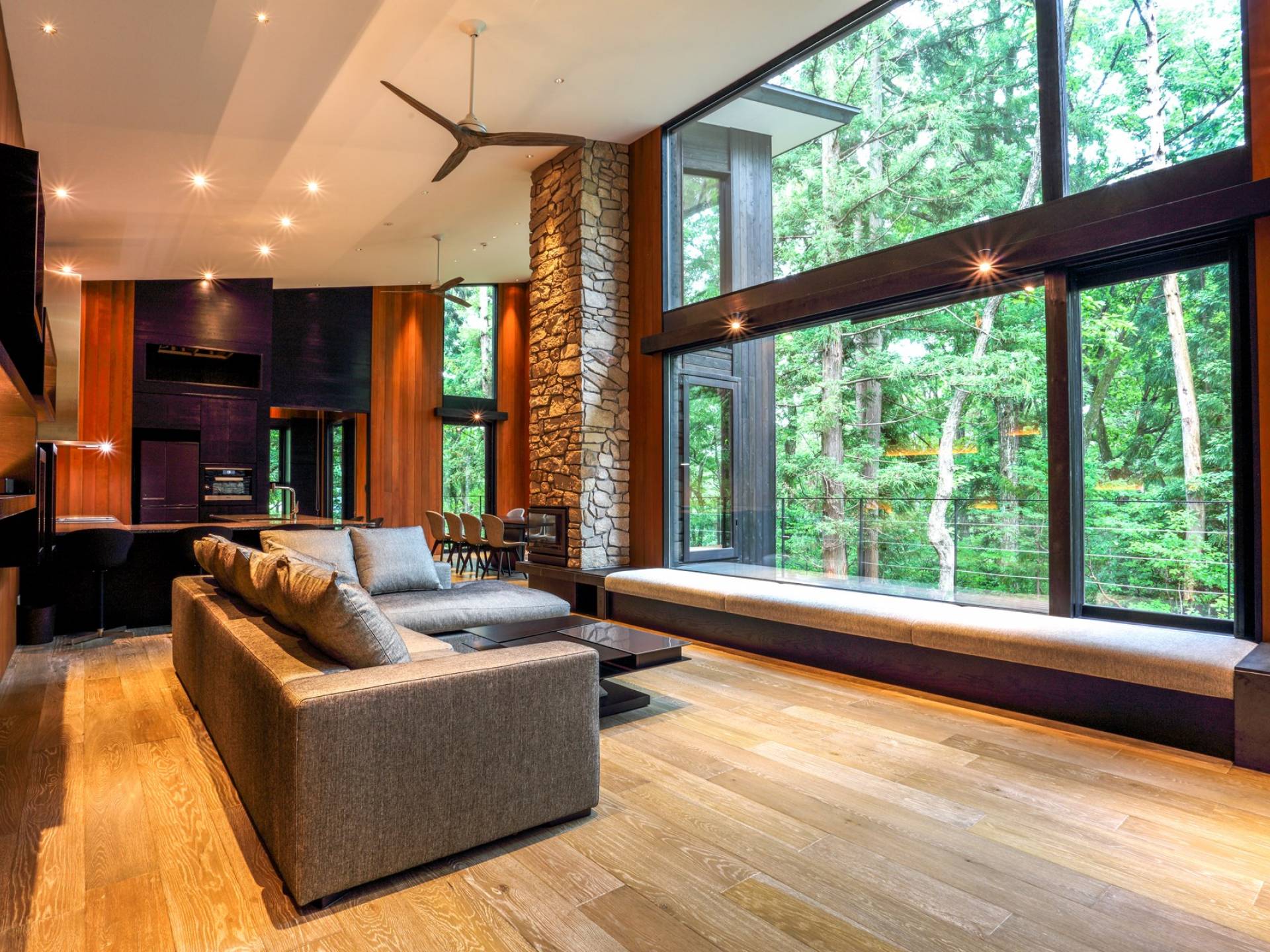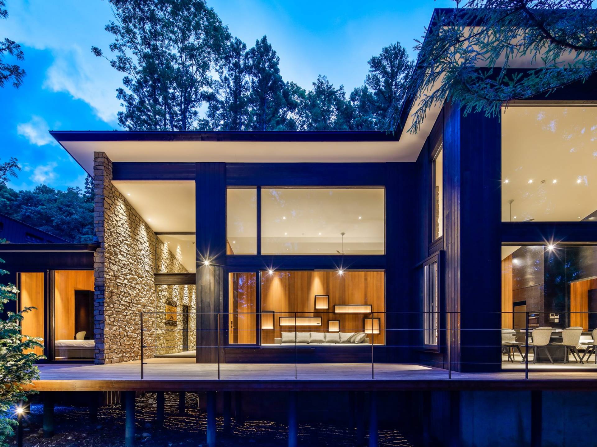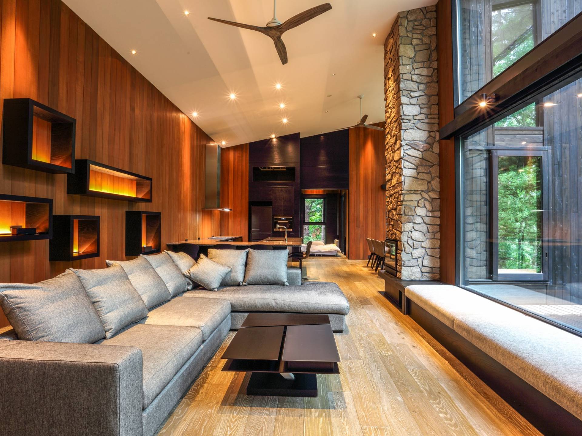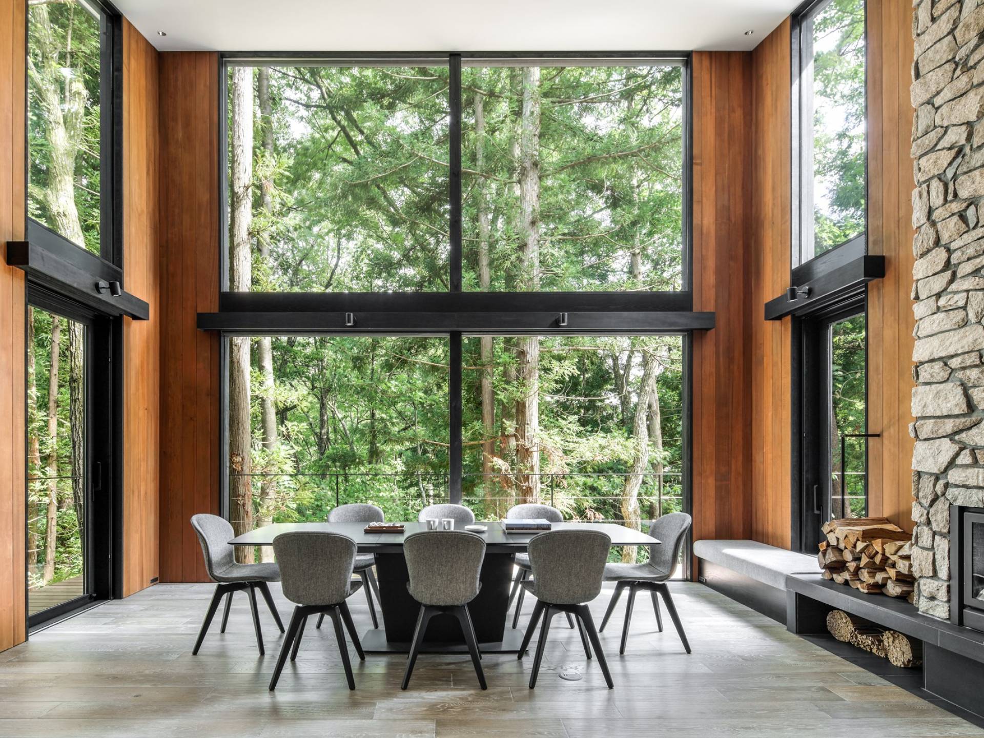 Nur 150 Meter von den Pisten entfernt bietet die Villa El Cielo einen breiten Wohnbereich mit einer 5 m hohen Decke, die Ihnen einen erholsamen Aufenthalt im Wald ermöglicht. Das Design ermöglicht es 2 Familien oder einer kleinen Gruppe von Menschen, in Privatsphäre zu leben. Jeder private Bereich ist mit dem Wohnzimmer verbunden, wodurch eine perfekte Balance zwischen Privatsphäre und Beziehungsbindung hergestellt wird. Eine nach Süden ausgerichtete Holzterrasse bietet den Gästen einen herrlichen Blick auf den Wald.