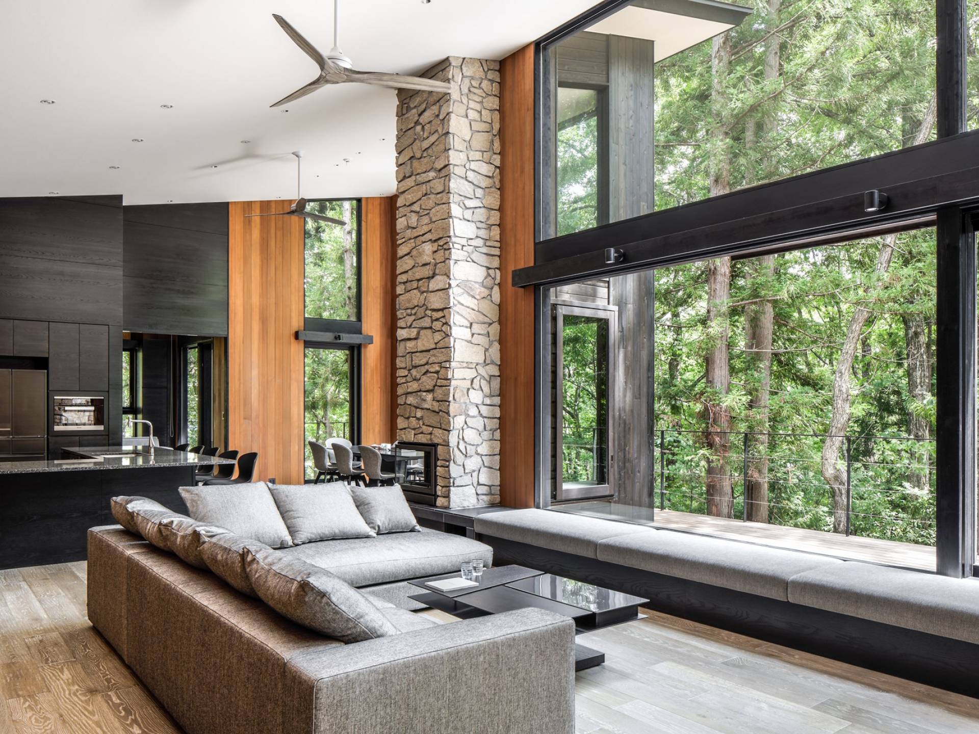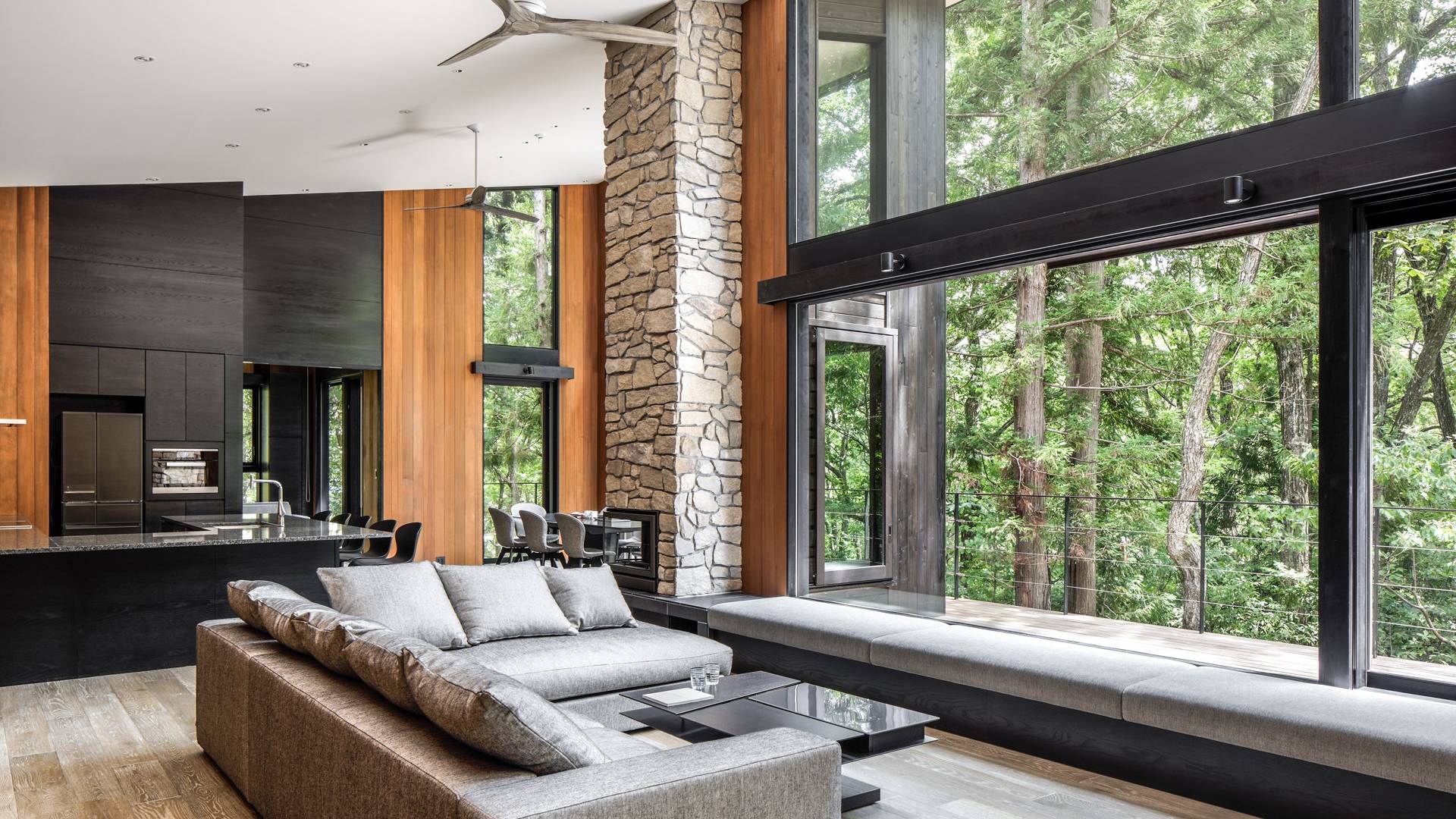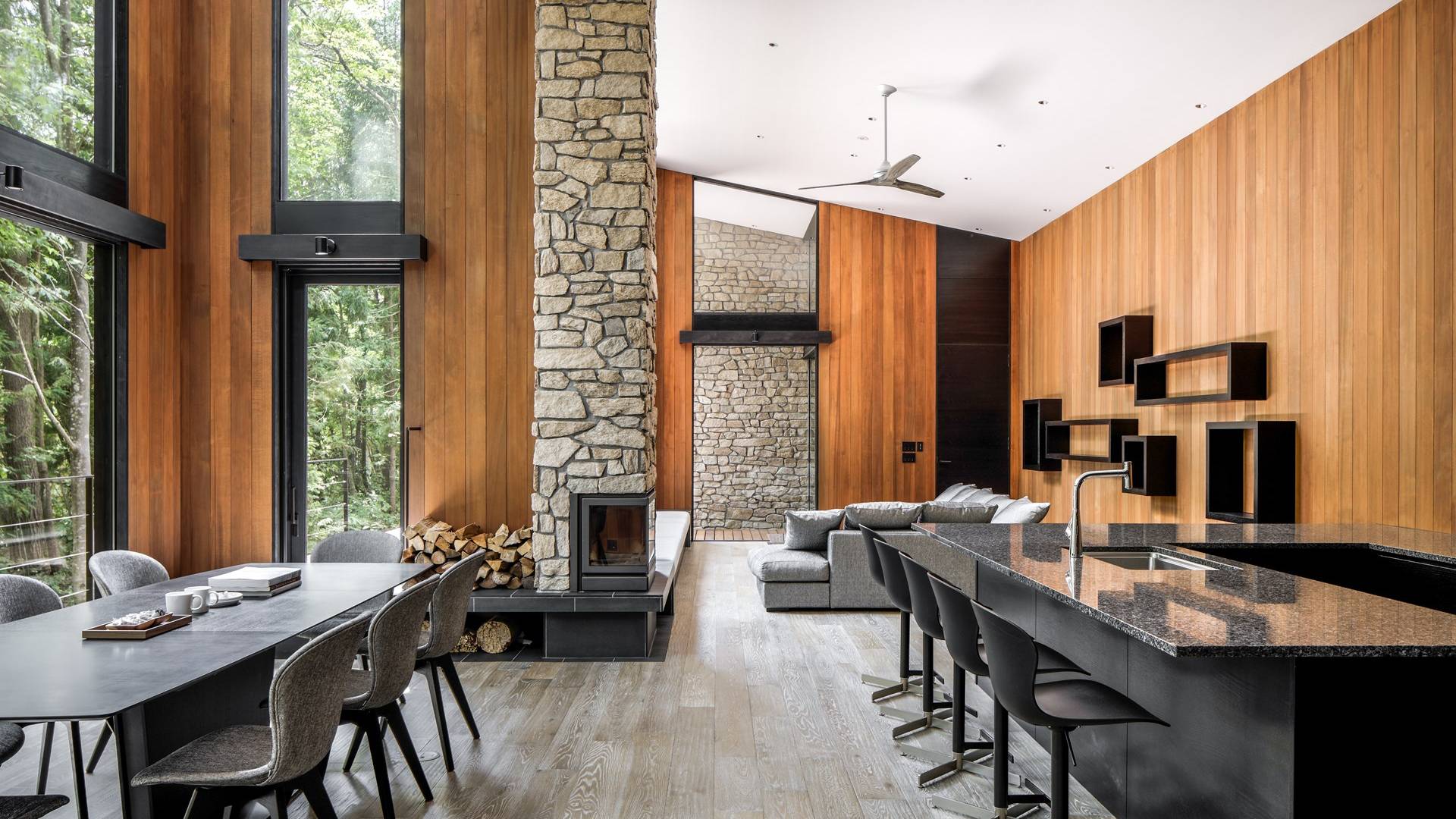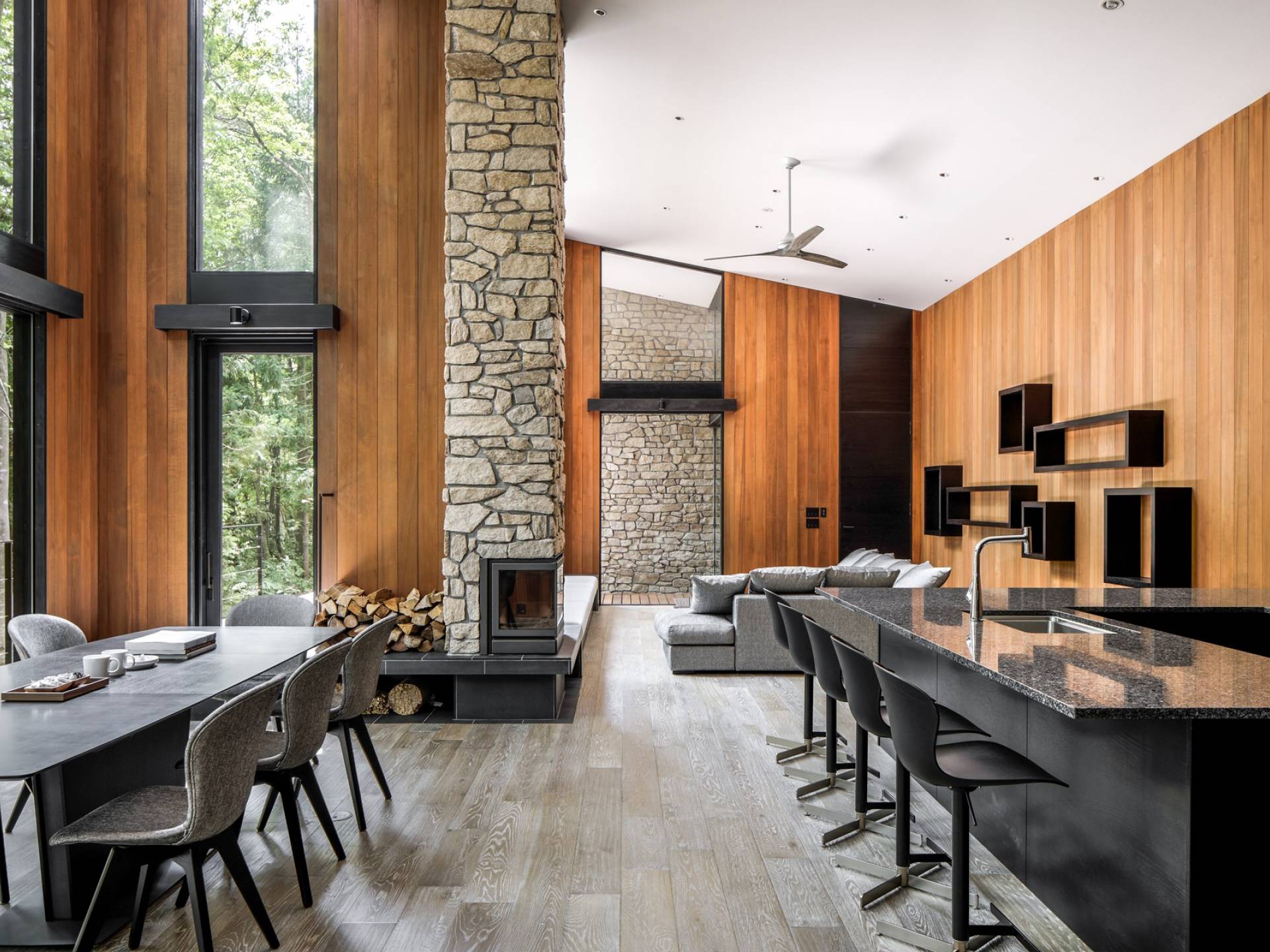 Nur 150 Meter von den Pisten entfernt bietet die Villa El Cielo einen breiten Wohnbereich mit einer 5 m hohen Decke, die Ihnen einen erholsamen Aufenthalt im Wald ermöglicht. Das Design ermöglicht es 2 Familien oder einer kleinen Gruppe von Menschen, in Privatsphäre zu leben. Jeder private Bereich ist mit dem Wohnzimmer verbunden, wodurch eine perfekte Balance zwischen Privatsphäre und Beziehungsbindung hergestellt wird. Eine nach Süden ausgerichtete Holzterrasse bietet den Gästen einen herrlichen Blick auf den Wald.