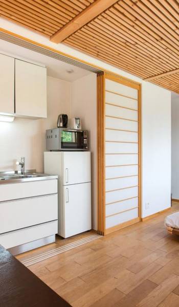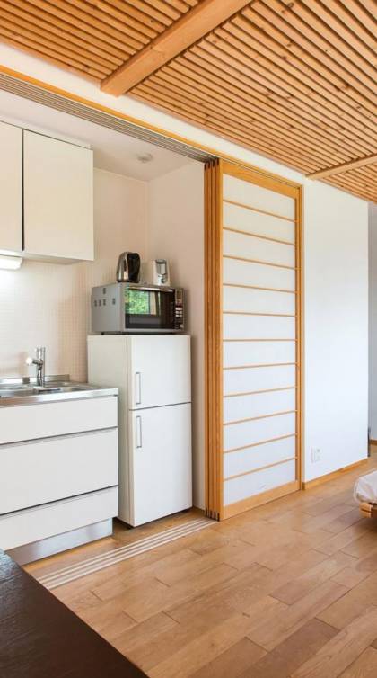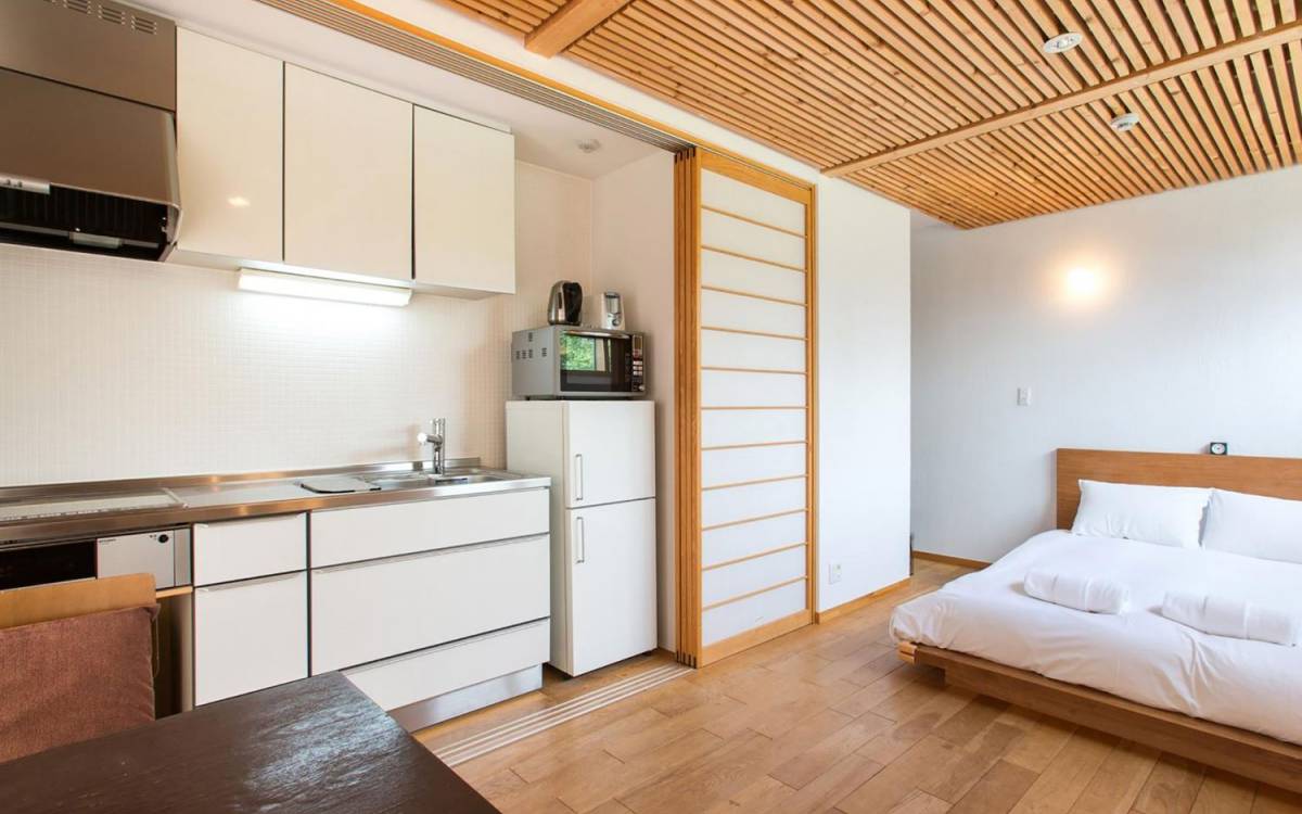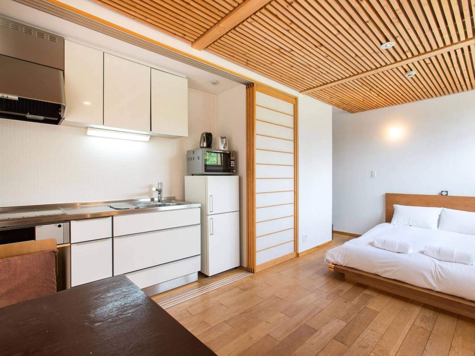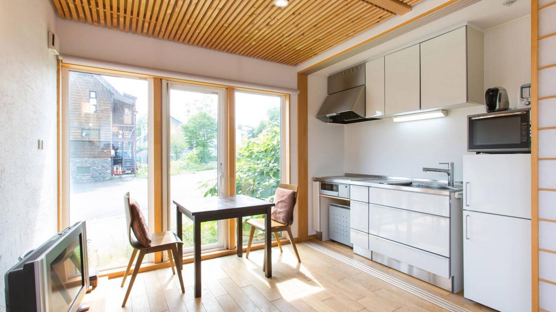 Chalet Sekka Ni 1 ist ein leuchtendes Studio, das Luxus mit Gemütlichkeit auf eine Weise verbindet, die Sie lieben werden! Es verfügt über ein Queensize-Bett, eine große Toilette, eine Küchenzeile mit einigen wichtigen Annehmlichkeiten, einen Tisch für zwei Personen, einen Smart-TV und einen Trockenraum. Das clevere Design des Luxusstudios ermöglicht es, die Küchenzeile zu verstecken, wenn sie nicht verwendet wird.