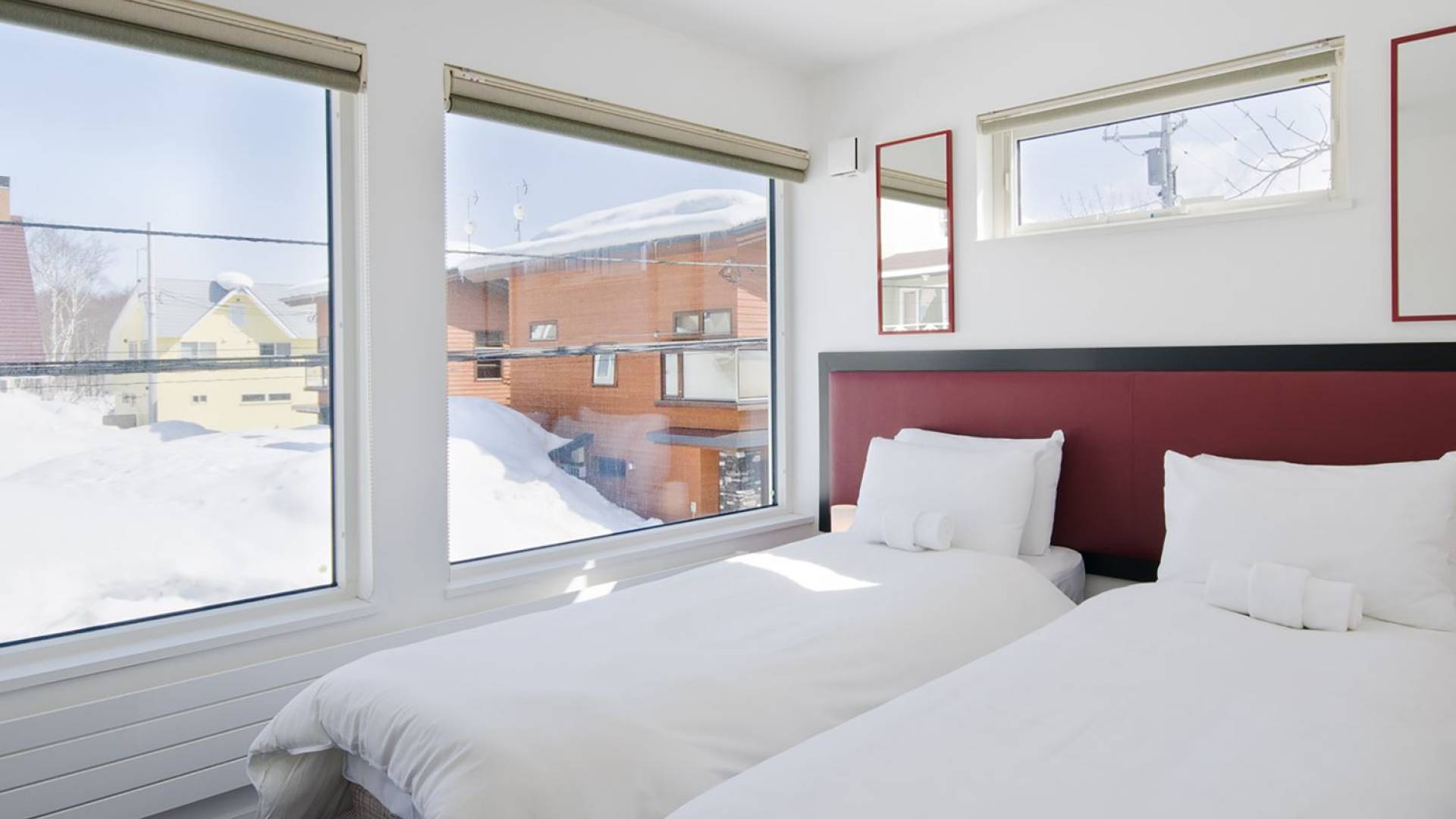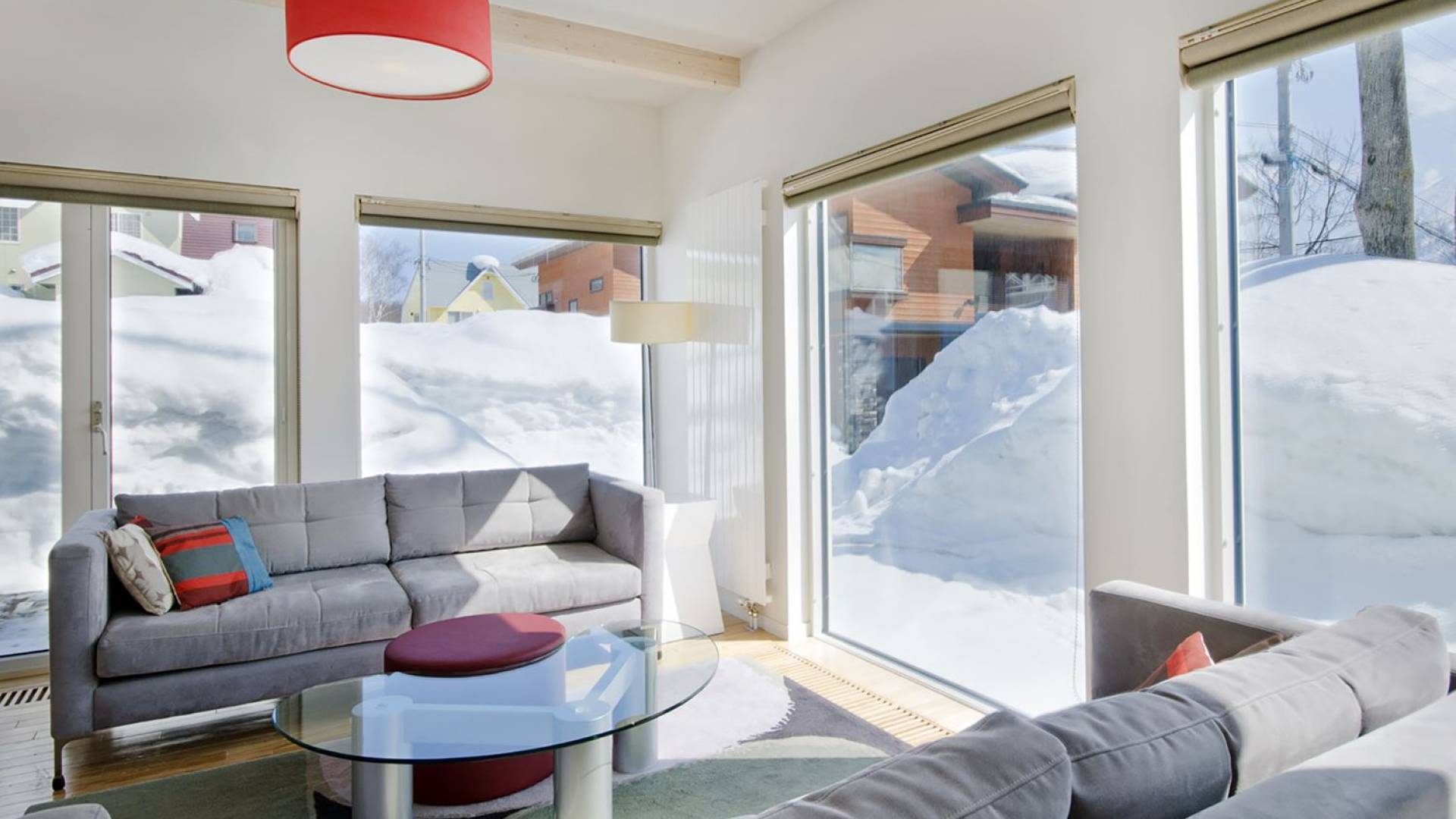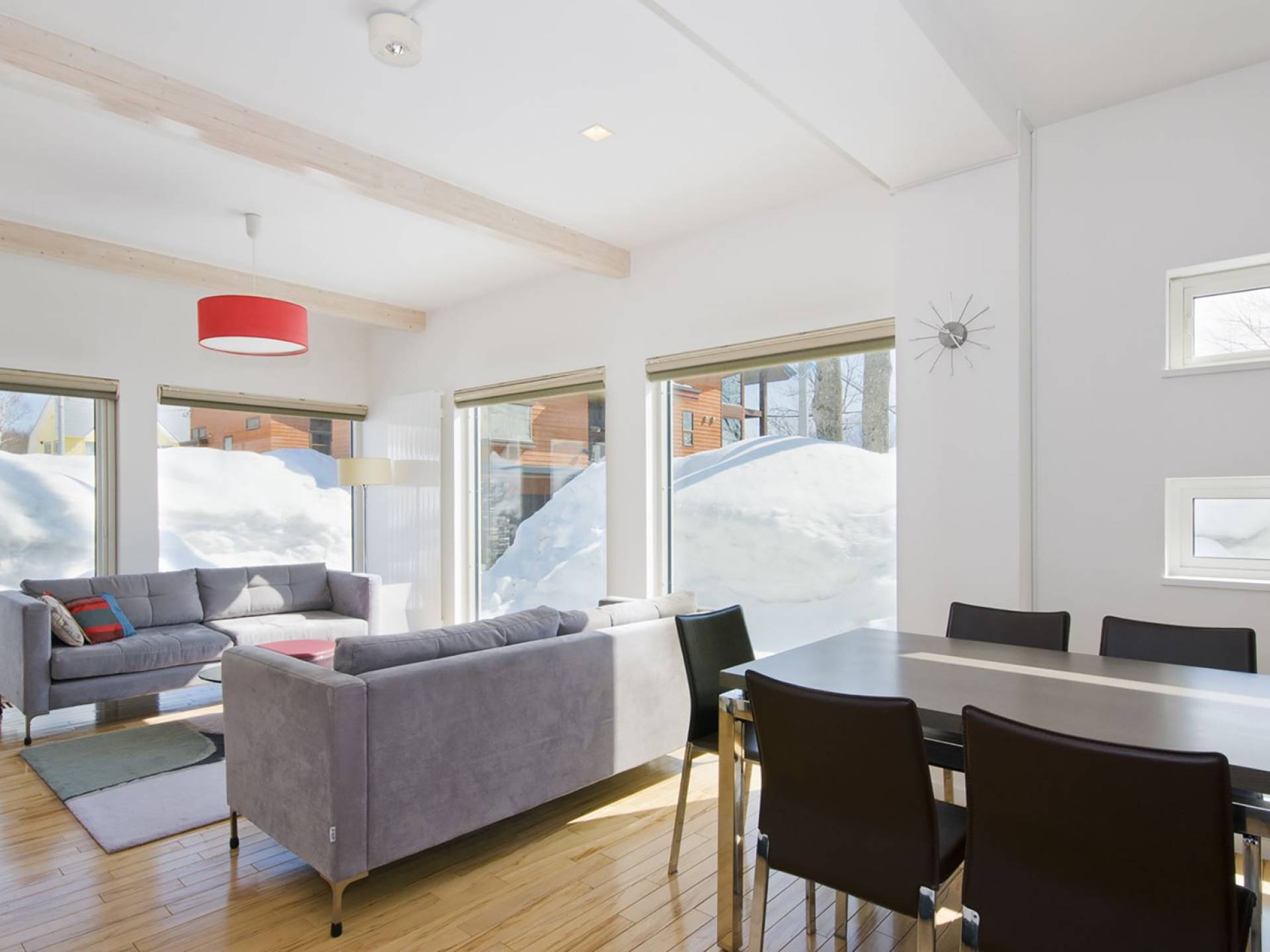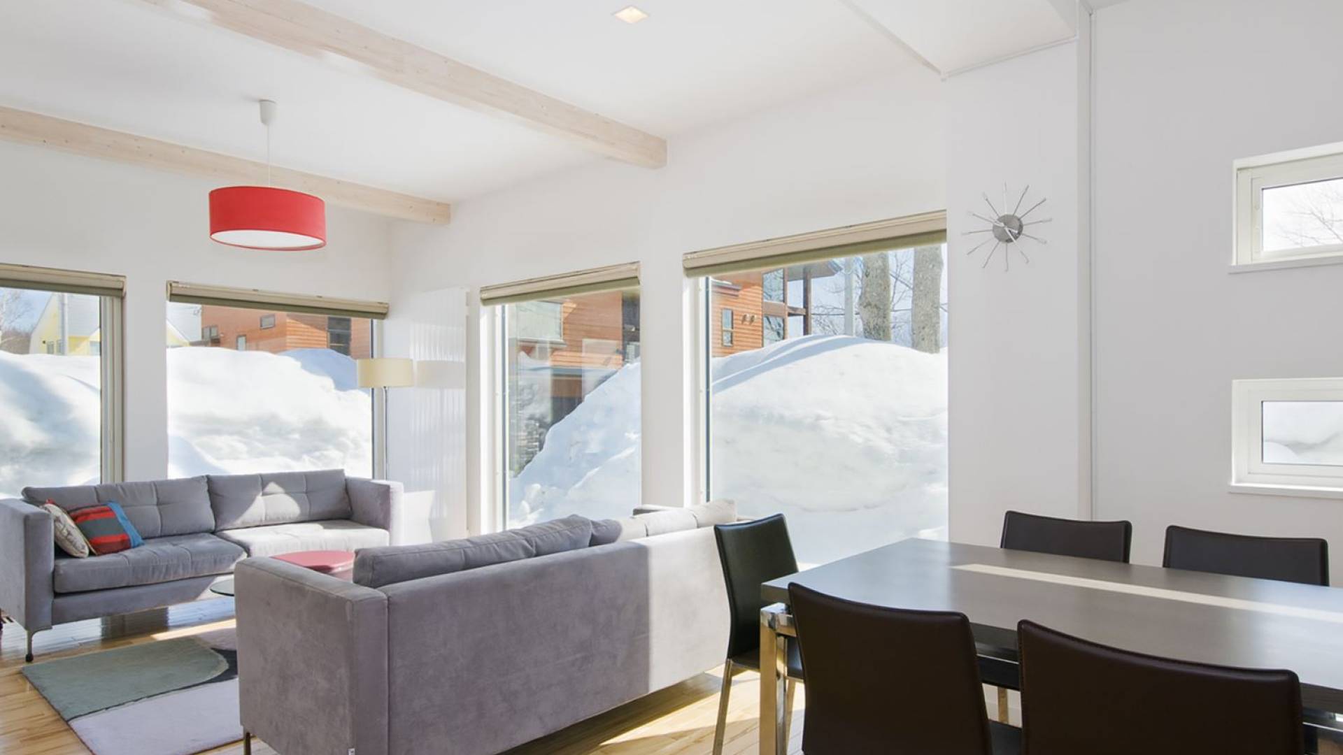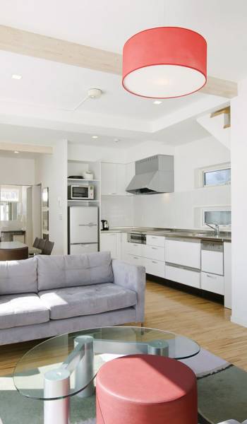 Chalet Yamabiko ist ein Luxus-Chalet mit 3 Schlafzimmern. Das Chalet Yamabiko ist ein urbaner und doch luxuriöser Rückzugsort in Niseko, Japan. Erbaut an einem magischen Ort, wird ein Besuch dort, besonders im Winter, Sie in Erstaunen versetzen. Die elegante und moderne Architektur und die Dominanz von Weiß mit einigen roten Spritzern sind die Hauptmerkmale des Innendesigns dieses Luxus-Chalets.