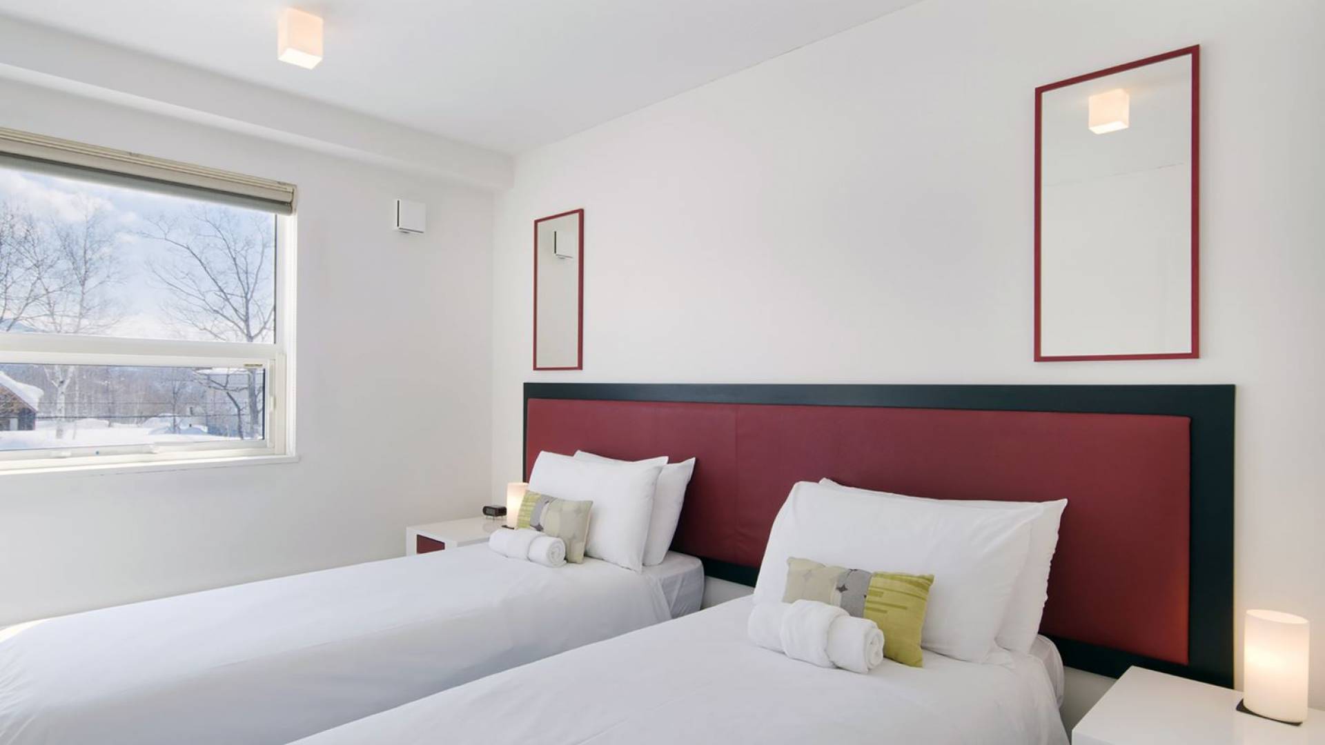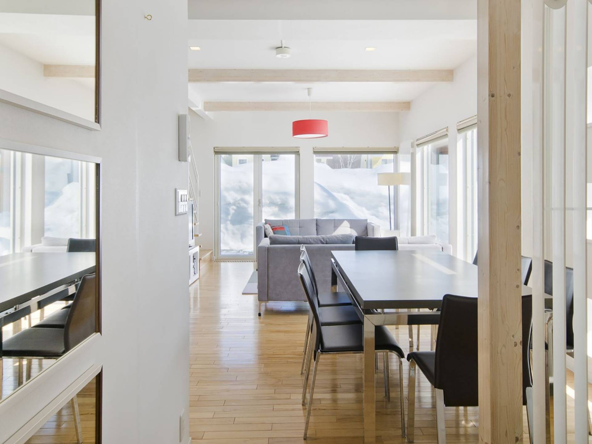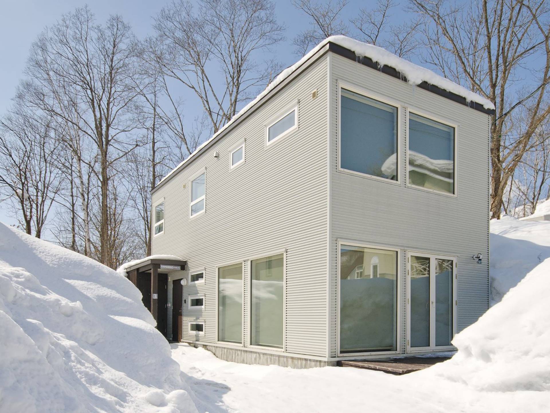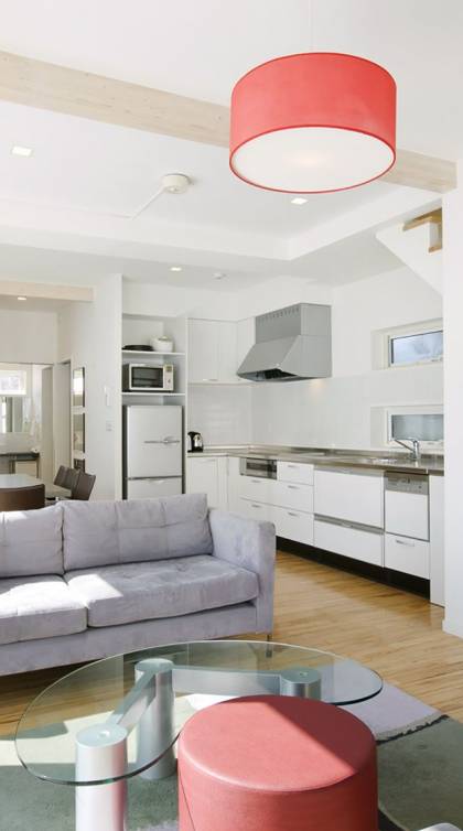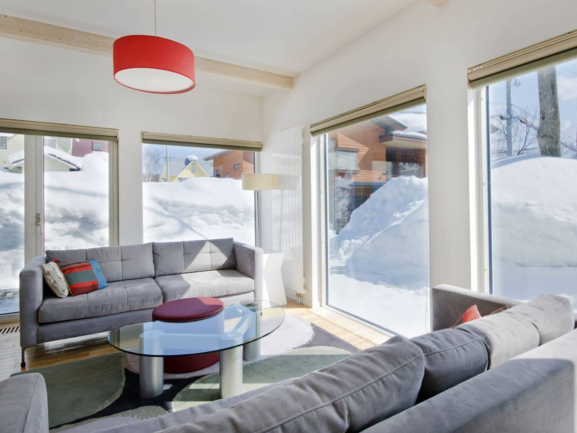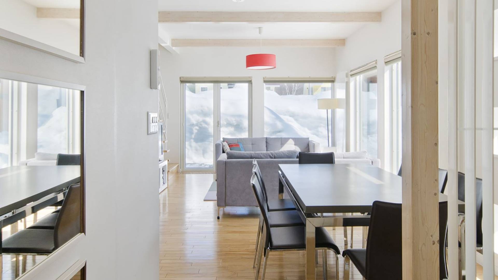 Chalet Yamabiko ist ein Luxus-Chalet mit 3 Schlafzimmern. Das Chalet Yamabiko ist ein urbaner und doch luxuriöser Rückzugsort in Niseko, Japan. Erbaut an einem magischen Ort, wird ein Besuch dort, besonders im Winter, Sie in Erstaunen versetzen. Die elegante und moderne Architektur und die Dominanz von Weiß mit einigen roten Spritzern sind die Hauptmerkmale des Innendesigns dieses Luxus-Chalets.