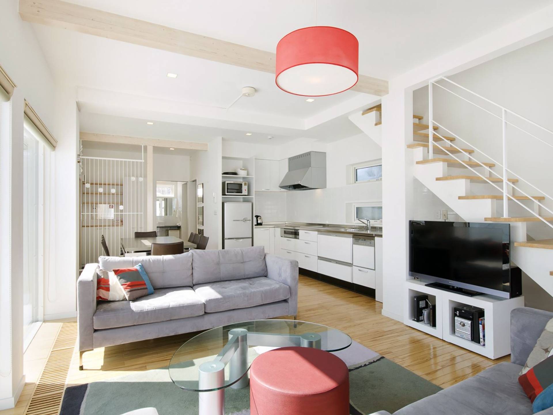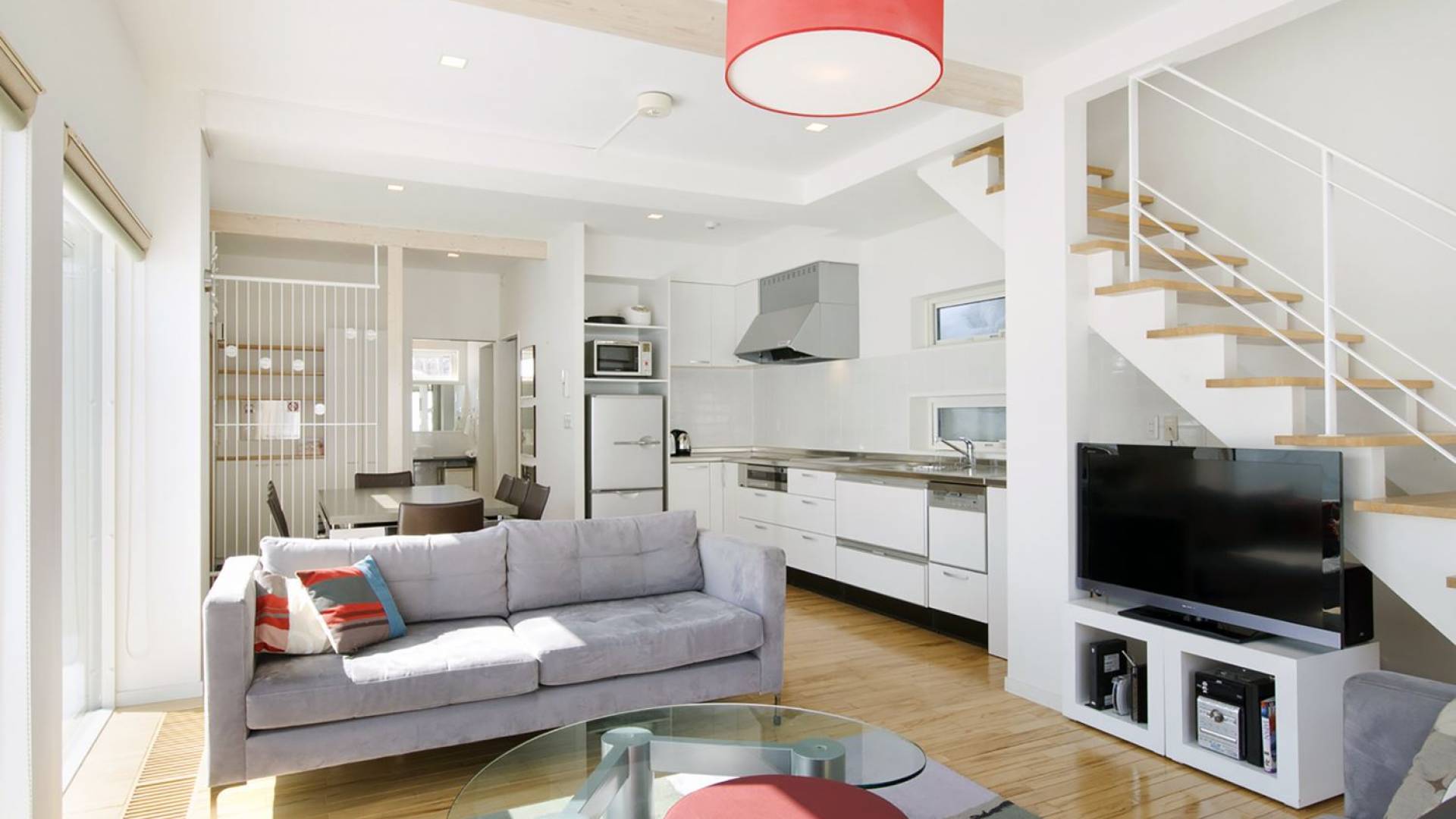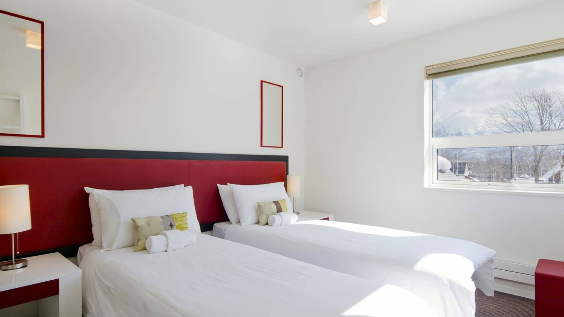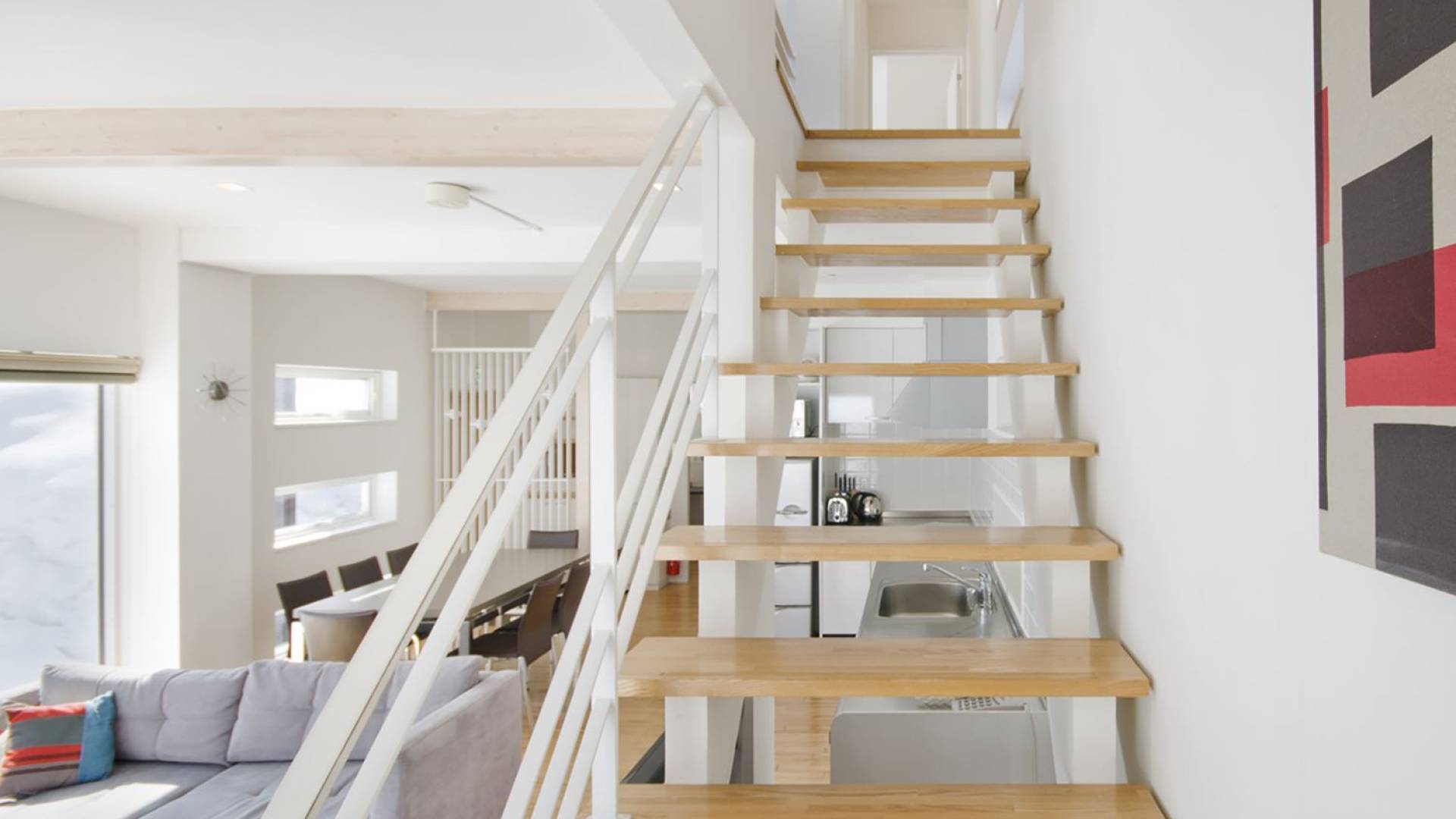 Chalet Yamabiko ist ein Luxus-Chalet mit 3 Schlafzimmern. Das Chalet Yamabiko ist ein urbaner und doch luxuriöser Rückzugsort in Niseko, Japan. Erbaut an einem magischen Ort, wird ein Besuch dort, besonders im Winter, Sie in Erstaunen versetzen. Die elegante und moderne Architektur und die Dominanz von Weiß mit einigen roten Spritzern sind die Hauptmerkmale des Innendesigns dieses Luxus-Chalets.