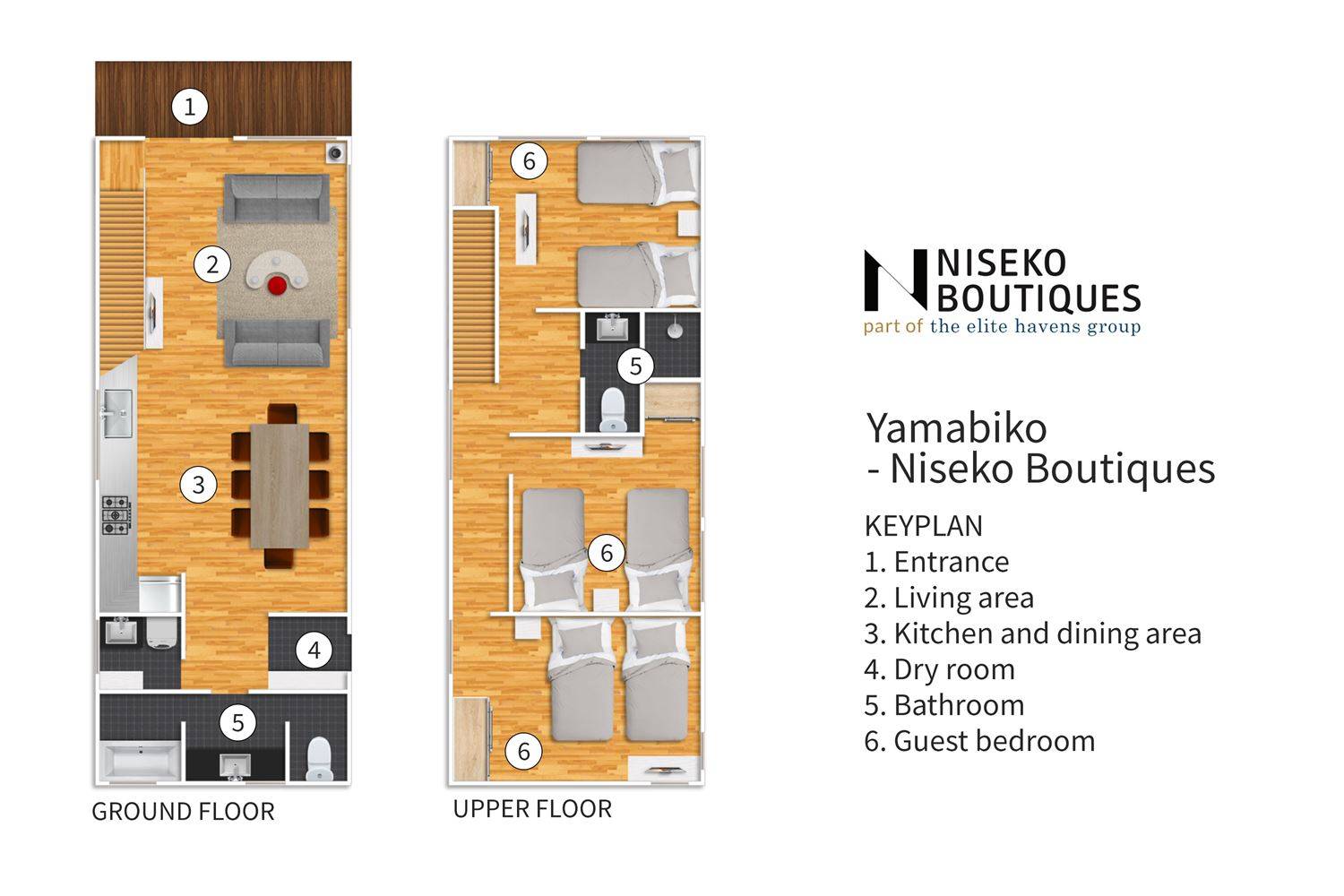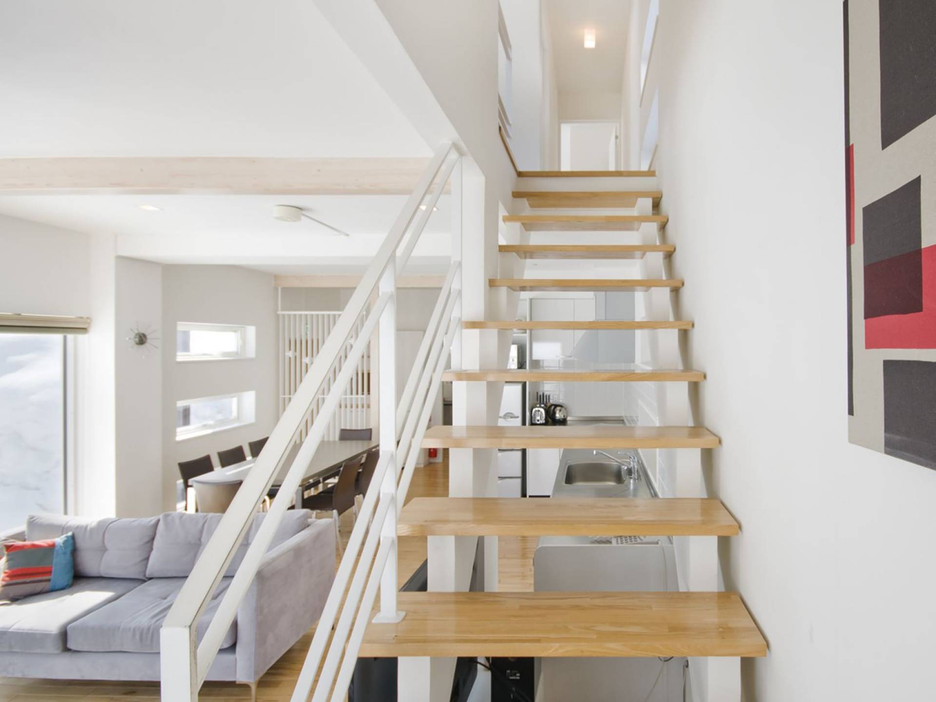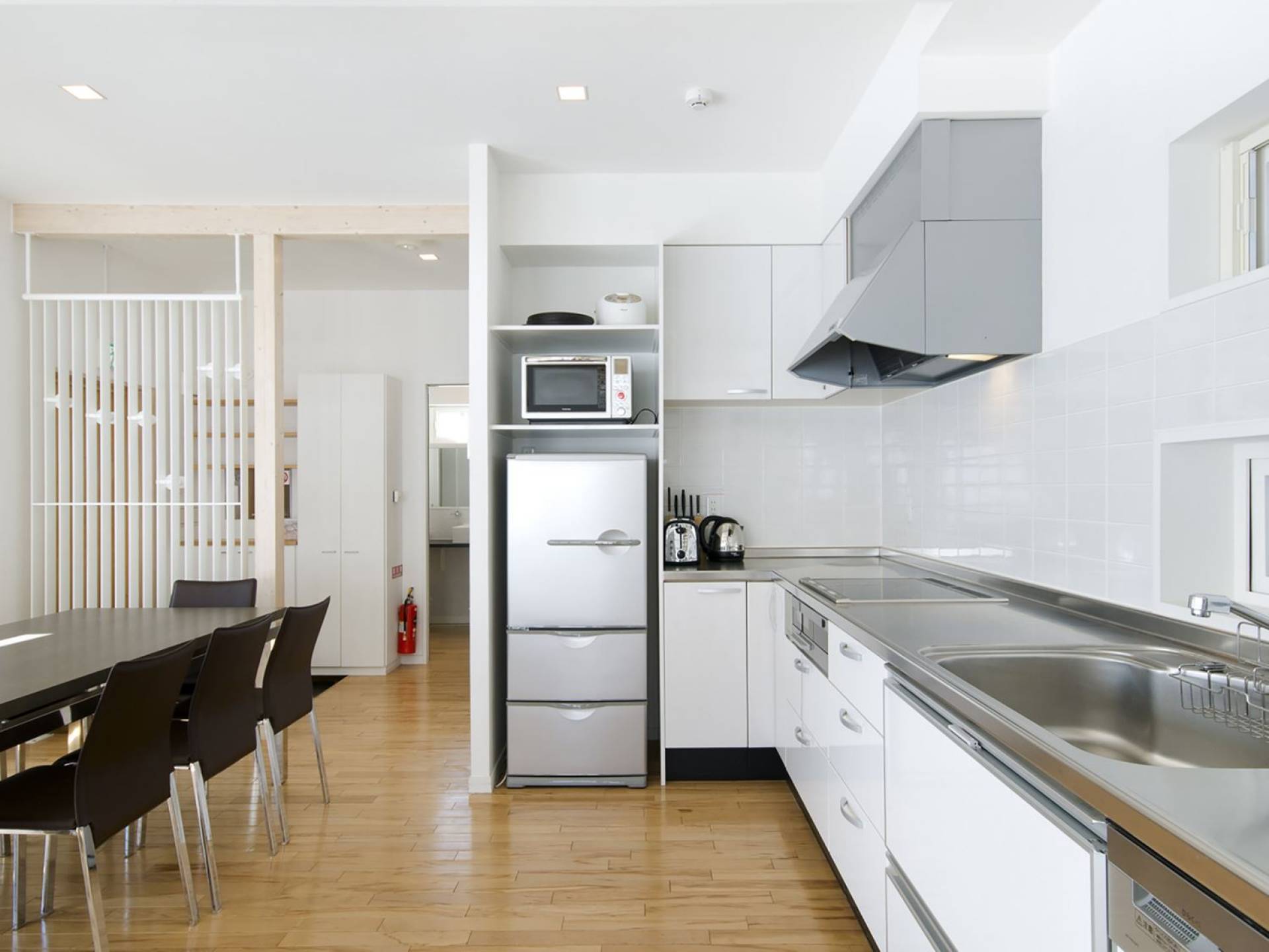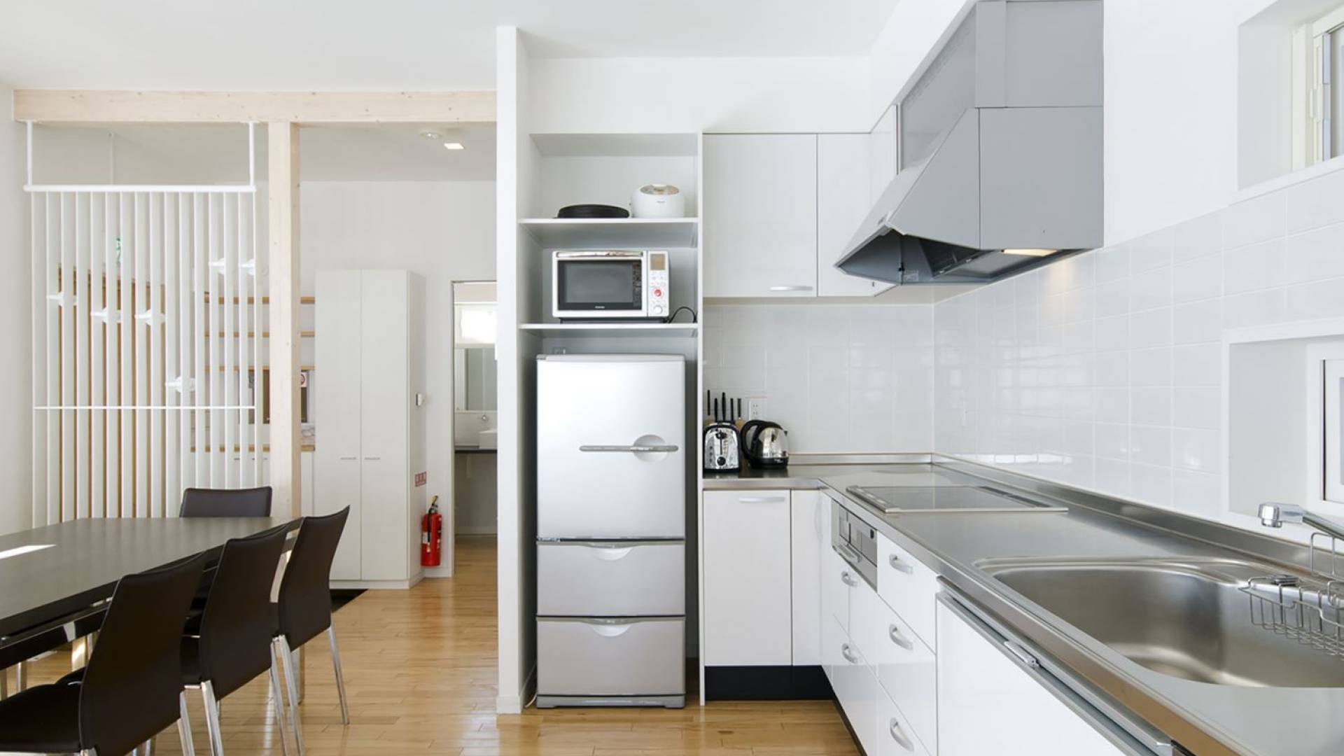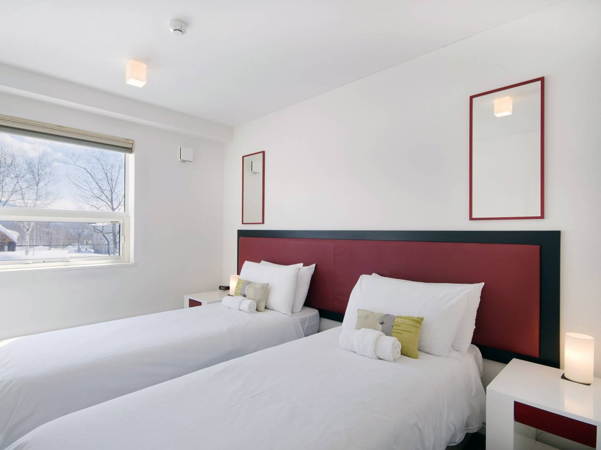 Chalet Yamabiko ist ein Luxus-Chalet mit 3 Schlafzimmern. Das Chalet Yamabiko ist ein urbaner und doch luxuriöser Rückzugsort in Niseko, Japan. Erbaut an einem magischen Ort, wird ein Besuch dort, besonders im Winter, Sie in Erstaunen versetzen. Die elegante und moderne Architektur und die Dominanz von Weiß mit einigen roten Spritzern sind die Hauptmerkmale des Innendesigns dieses Luxus-Chalets.
