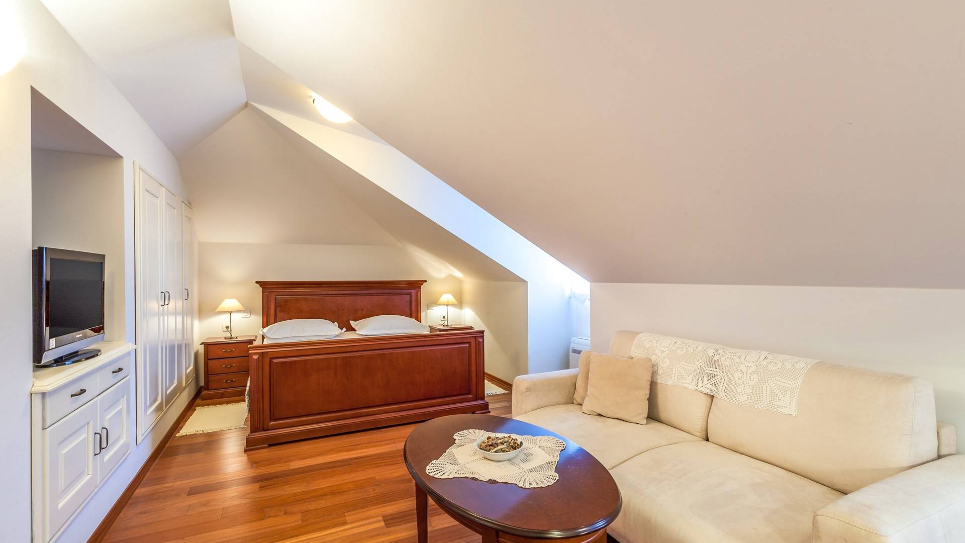 Die Villa verfügt über 4 Doppelzimmer sowie ein ausziehbares Sofa, sodass die Villa Mir Vama bequem Platz für 10 Gäste bietet. Die Schlafzimmer folgen dem gleichen Einrichtungsstil wie der Rest der Villa mit warmen Holzmöbeln und bequemen Betten. In allen Zimmern gibt es viel Platz zum Verstauen und Entspannen in Ihrem eigenen Raum. Die Villa verfügt über 4 moderne Badezimmer, von denen 3 mit einer Badewanne oder Dusche ausgestattet sind. In einem der Badezimmer befindet sich auch eine Waschmaschine, damit Sie sich mit allen damit verbundenen Vorzügen wie zu Hause fühlen können.