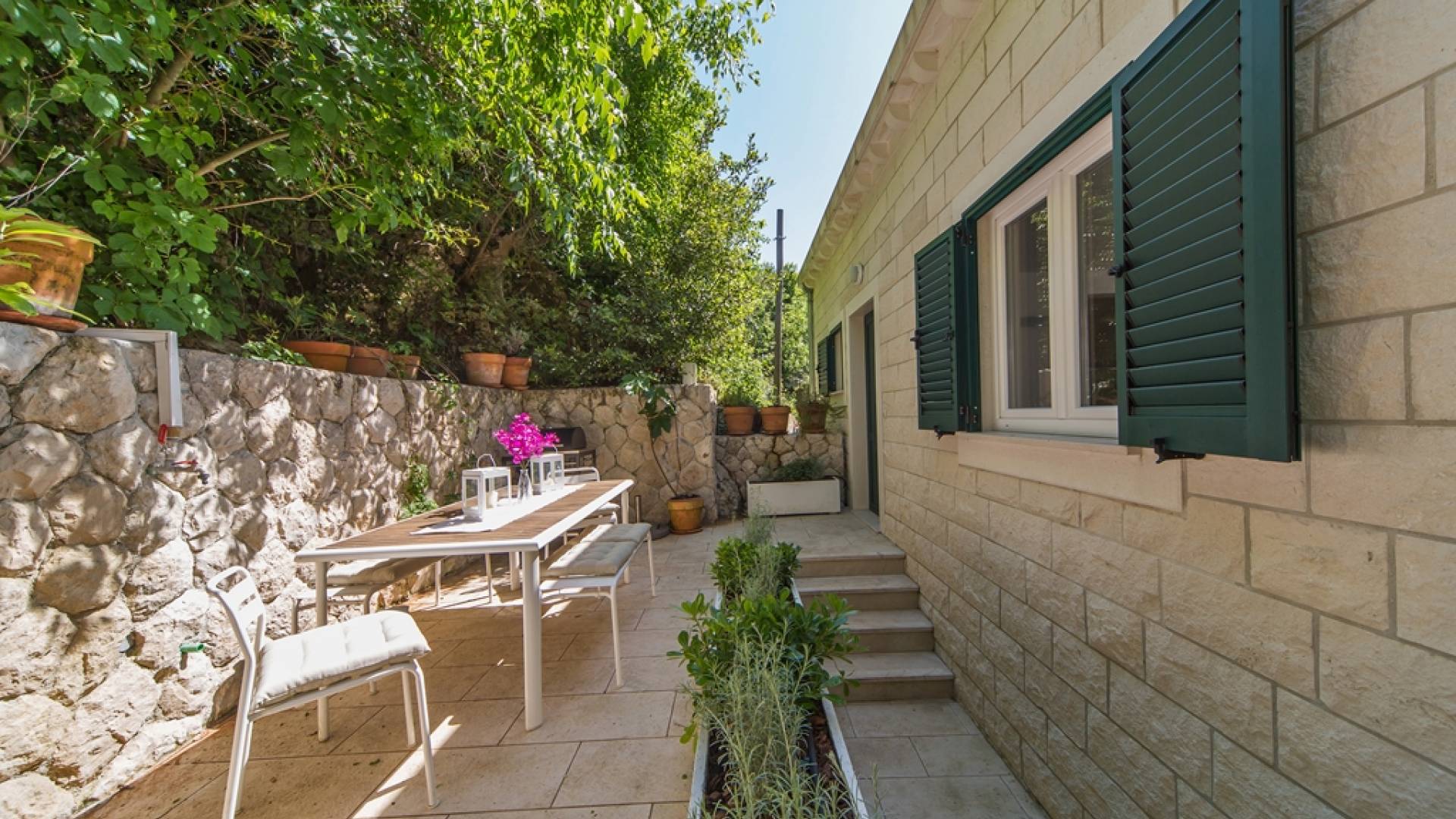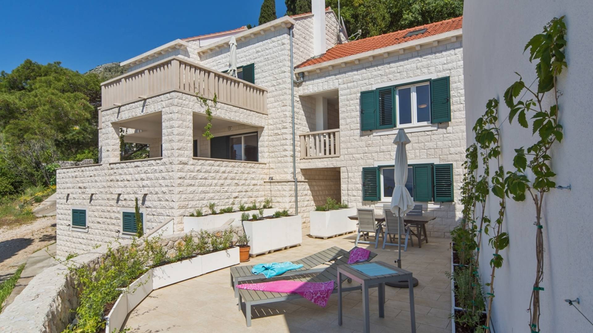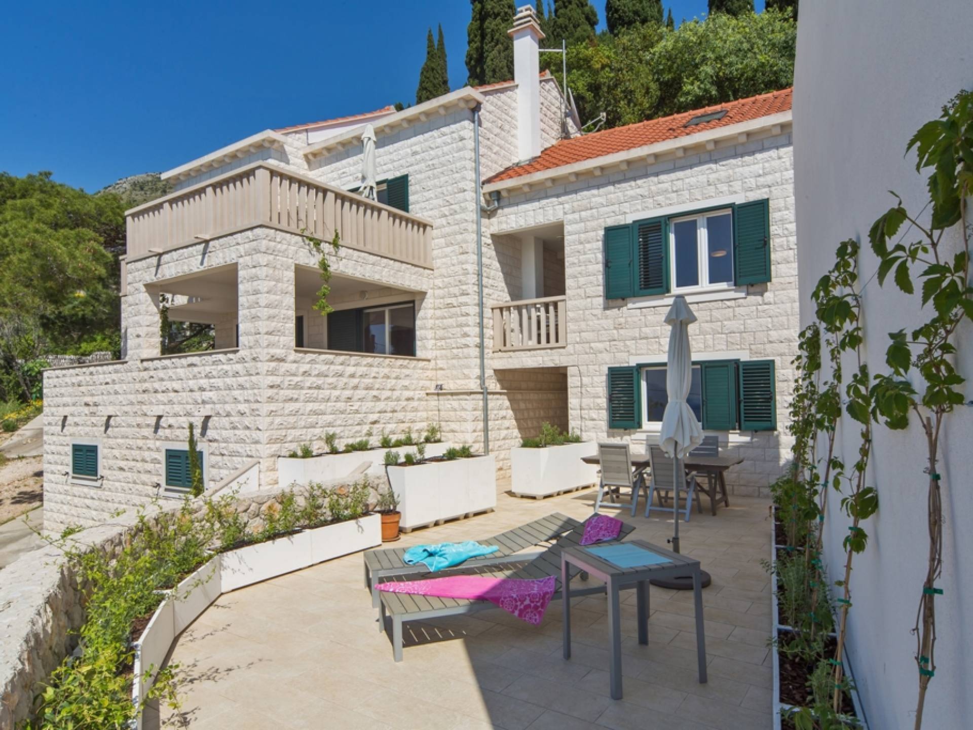 Unsere Immobilien bestehen aus zwei separaten Villen "The West Villa" und "The East Villa", die nebeneinander mit Blick auf die wunderschöne Bucht Cista Luka liegen, nur wenige hundert Meter nördlich des Zentrums von Cavtat. Die beiden Liegenschaften wurden an der historischen Stätte des ländlichen Komplexes Anic-Nikic aus dem 18. Jahrhundert vollständig rekonstruiert (siehe Standortdetails hier). Der Umbau wurde im Jahr 2012 abgeschlossen. Die beiden Villen verfügen über eine Gesamtfläche von über 450 Quadratmetern, umgeben von etwa 600 Quadratmetern Garten.