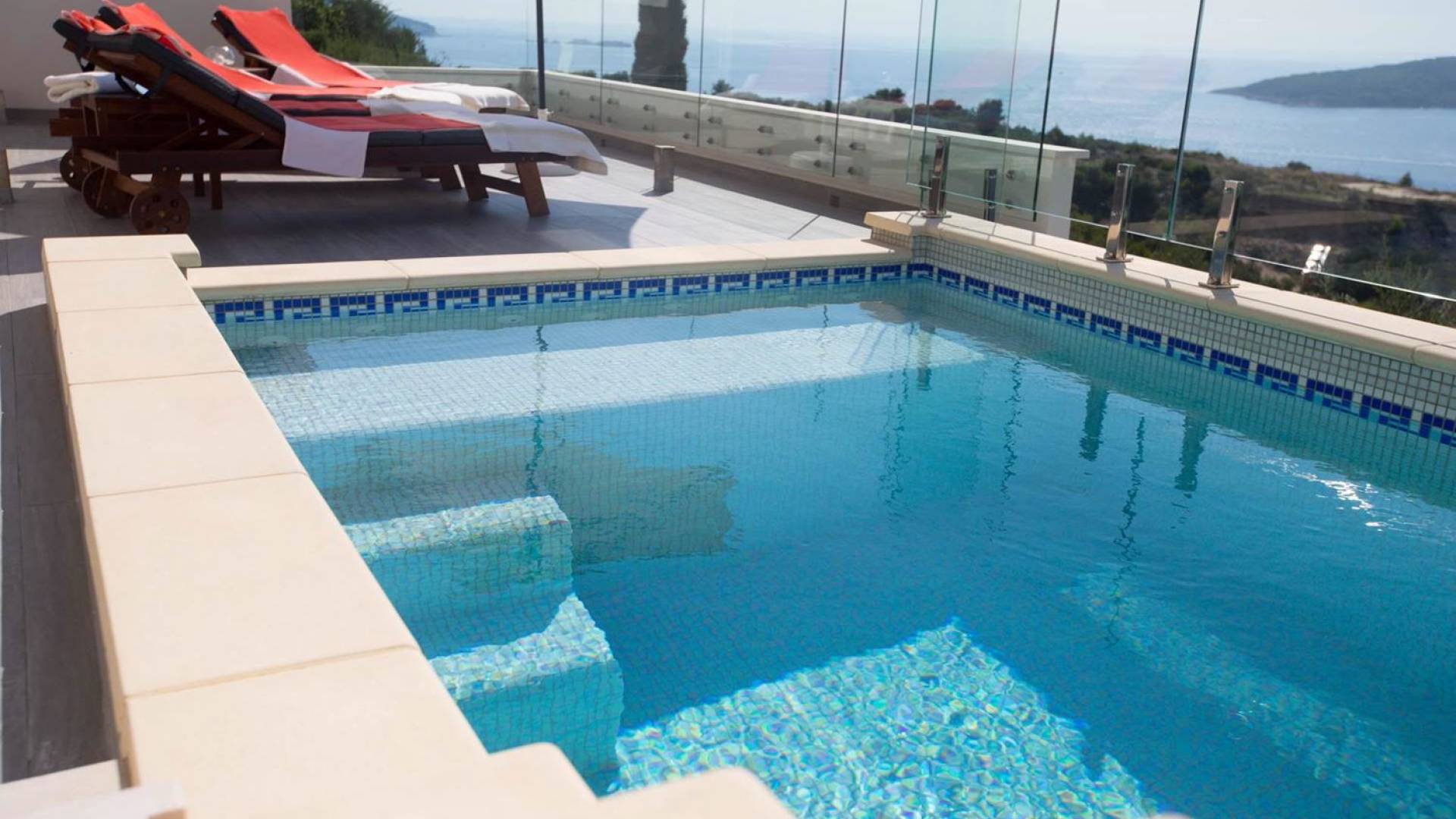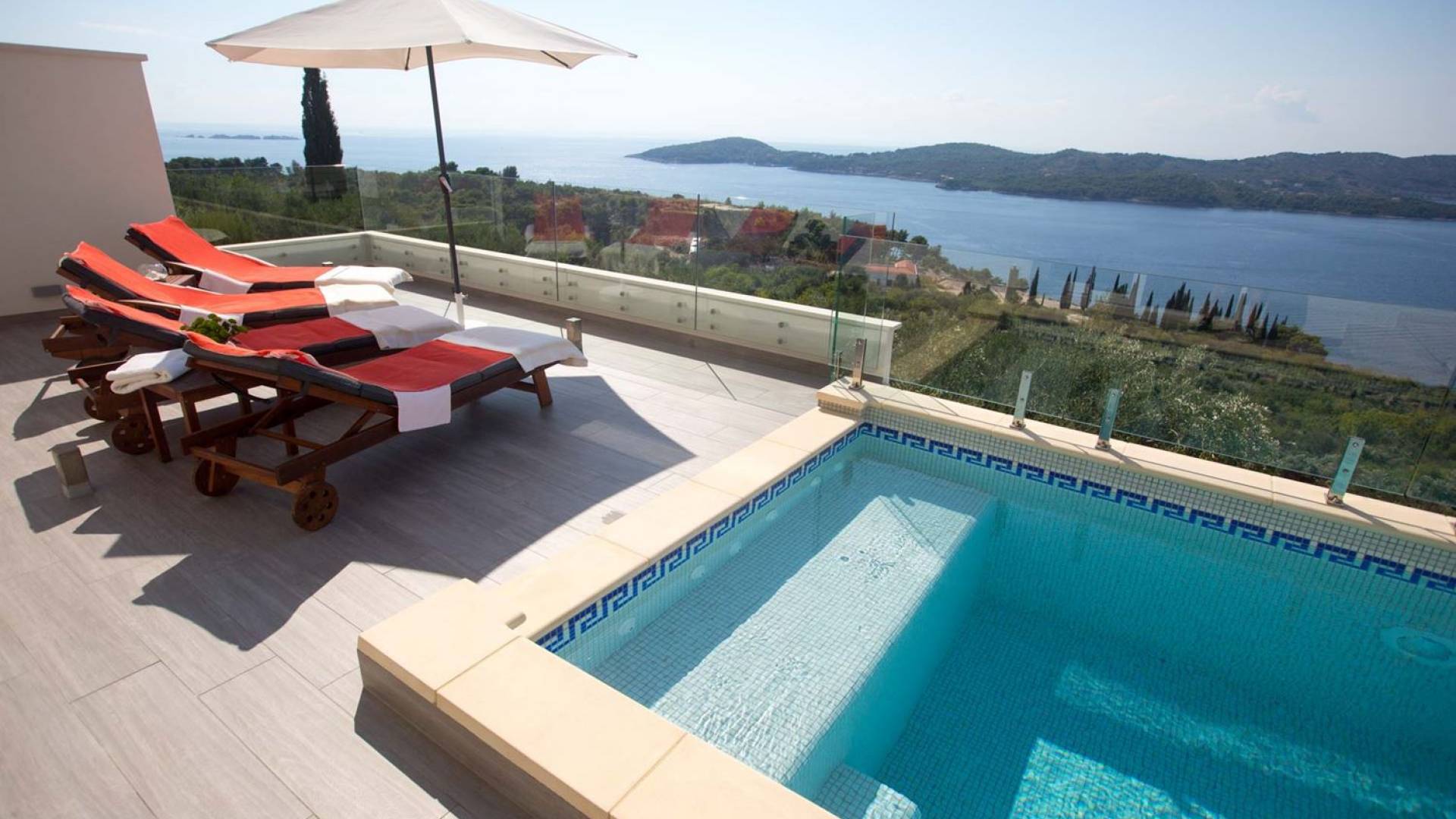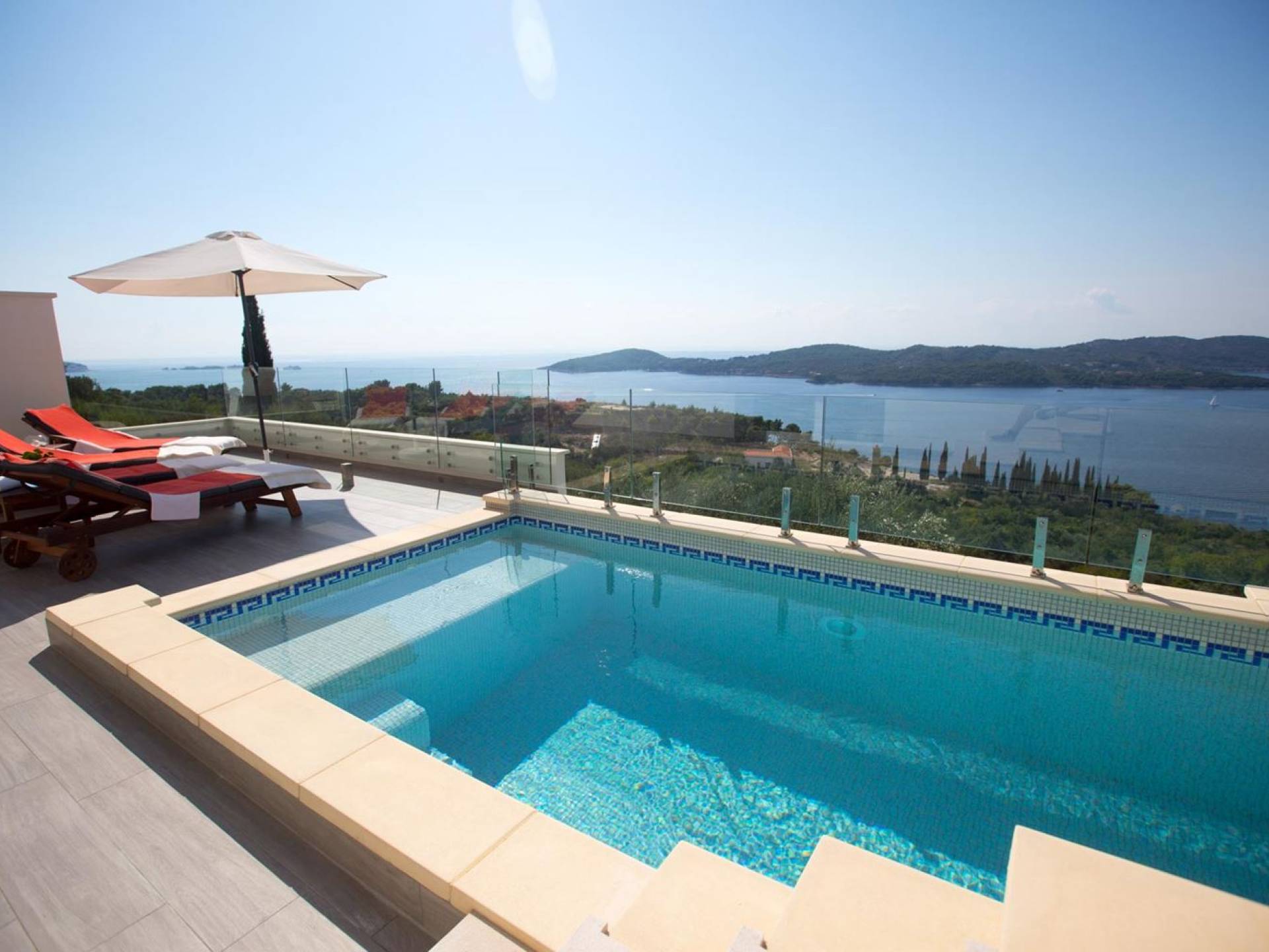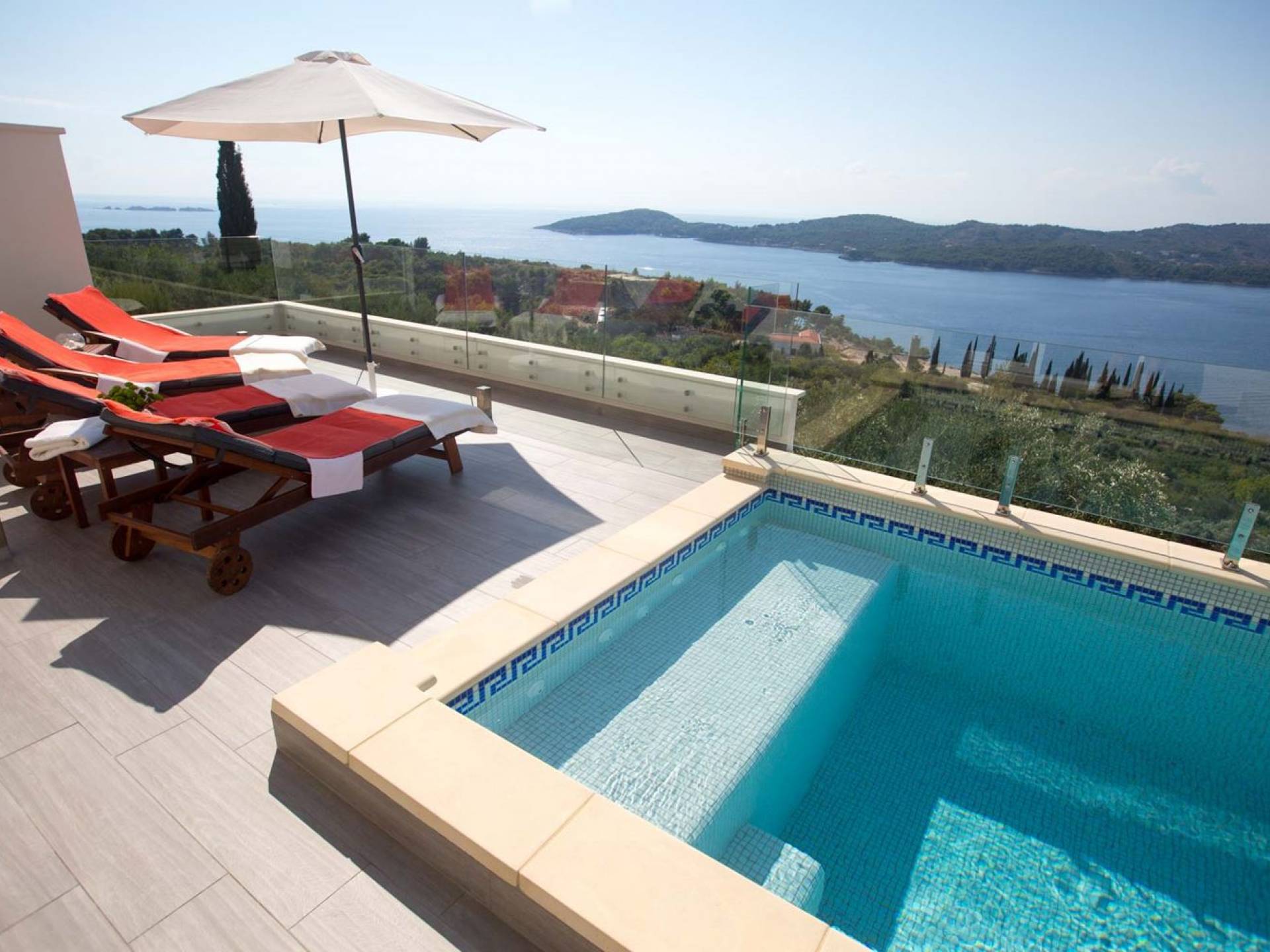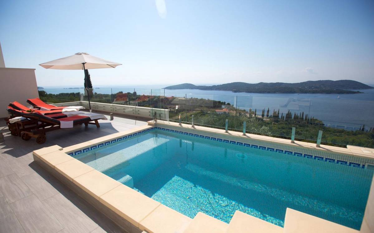 Villa Daisy ist eine neu erbaute und moderne 2-Schlafzimmer-Villa, die Ihnen die Möglichkeit bietet, Ihren Urlaub abseits des Trubels der Stadt zu verbringen und dennoch nahe genug zu sein, um sie zum Abendessen oder Mittagessen zu besuchen. Dem Paradies ganz nah - das ist die beste Beschreibung der Villa. Diese exquisit gestaltete Villa erstreckt sich über drei Etagen und da die Villa auf einem Hügel liegt, hat man von jedem Zimmer und jeder Terrasse aus einen großartigen Blick auf das Mittelmeer, die umliegenden Inseln und die üppige dalmatinische Landschaft.