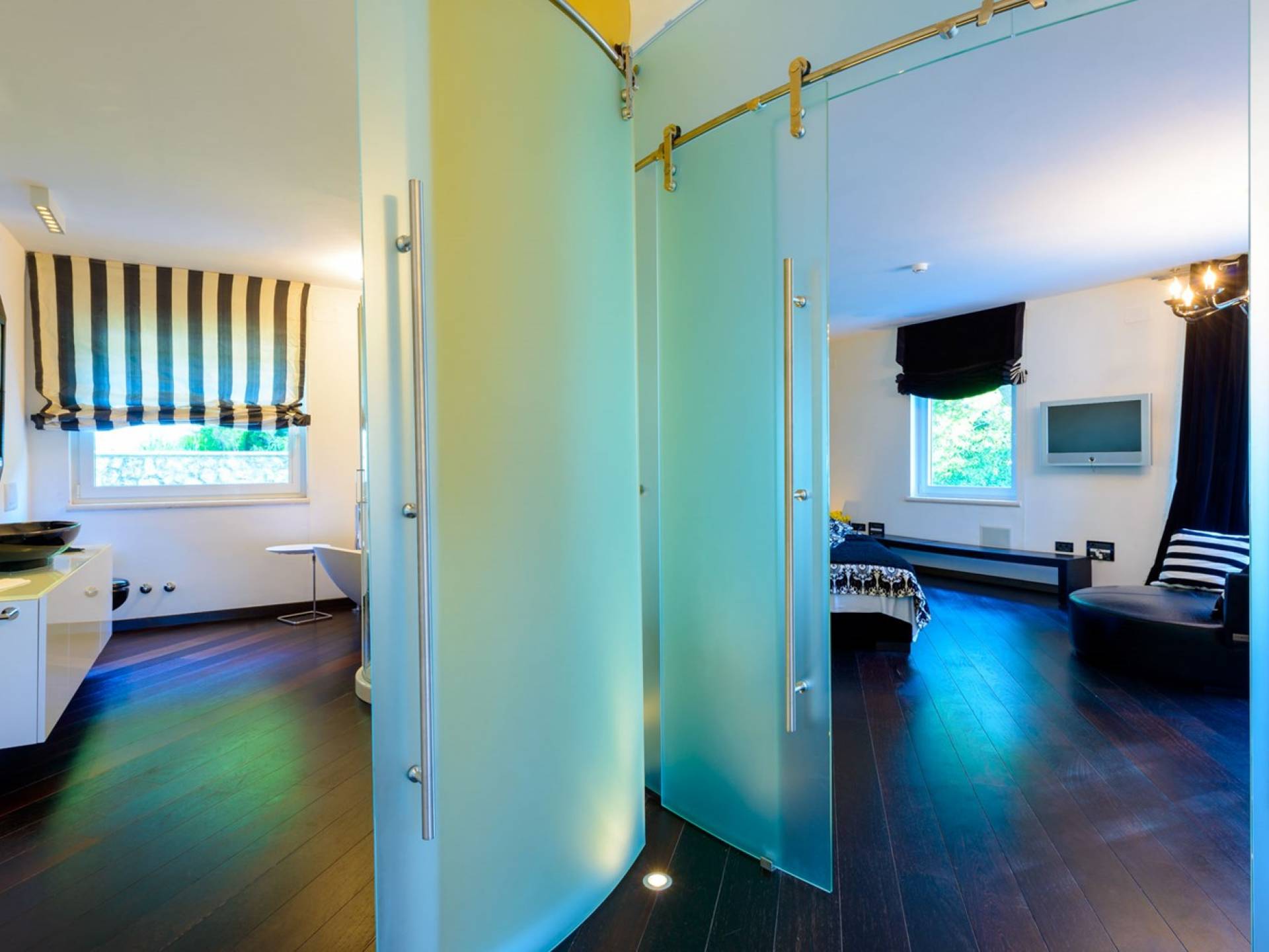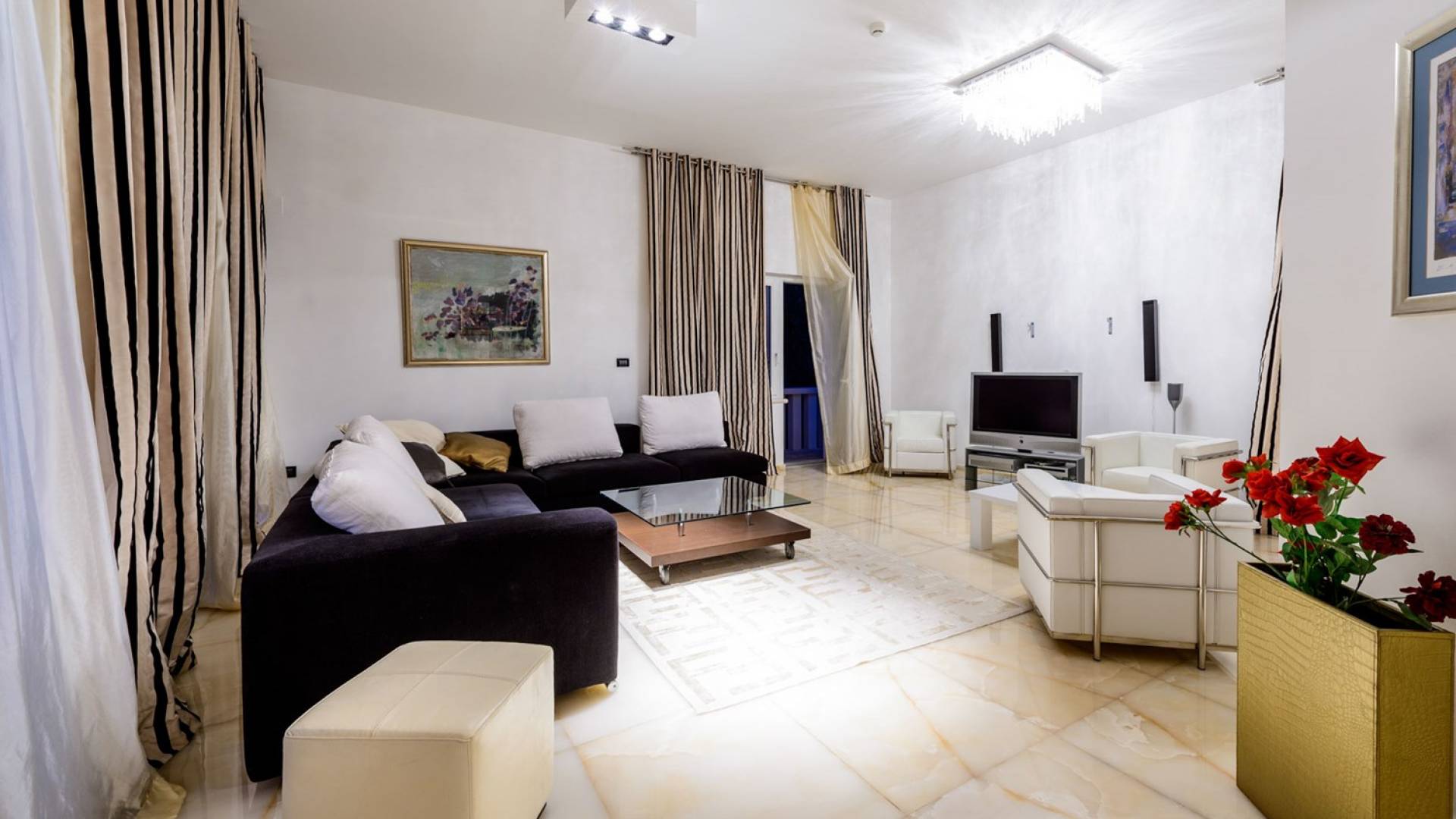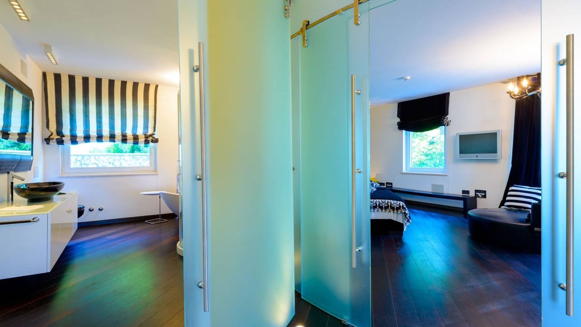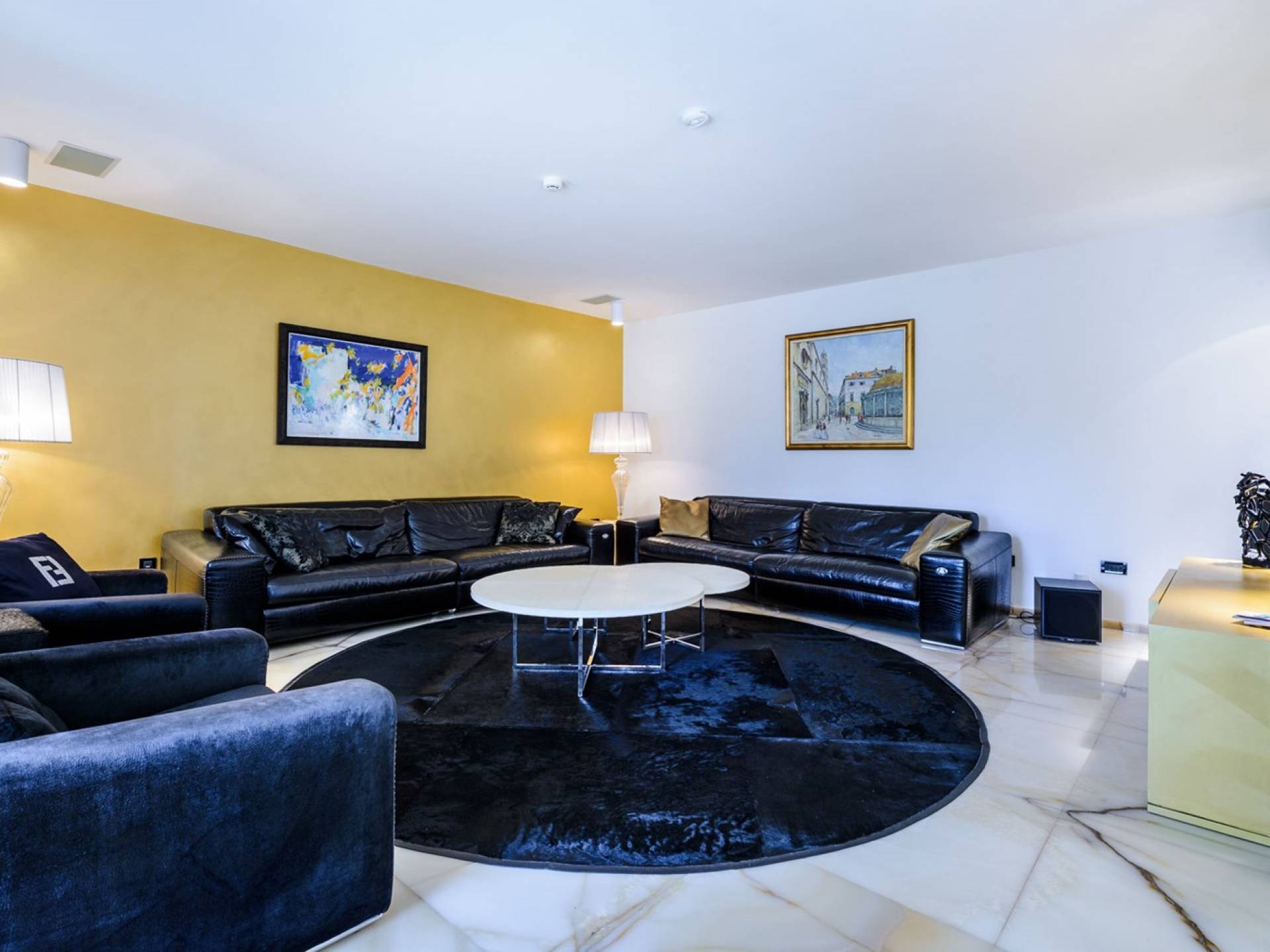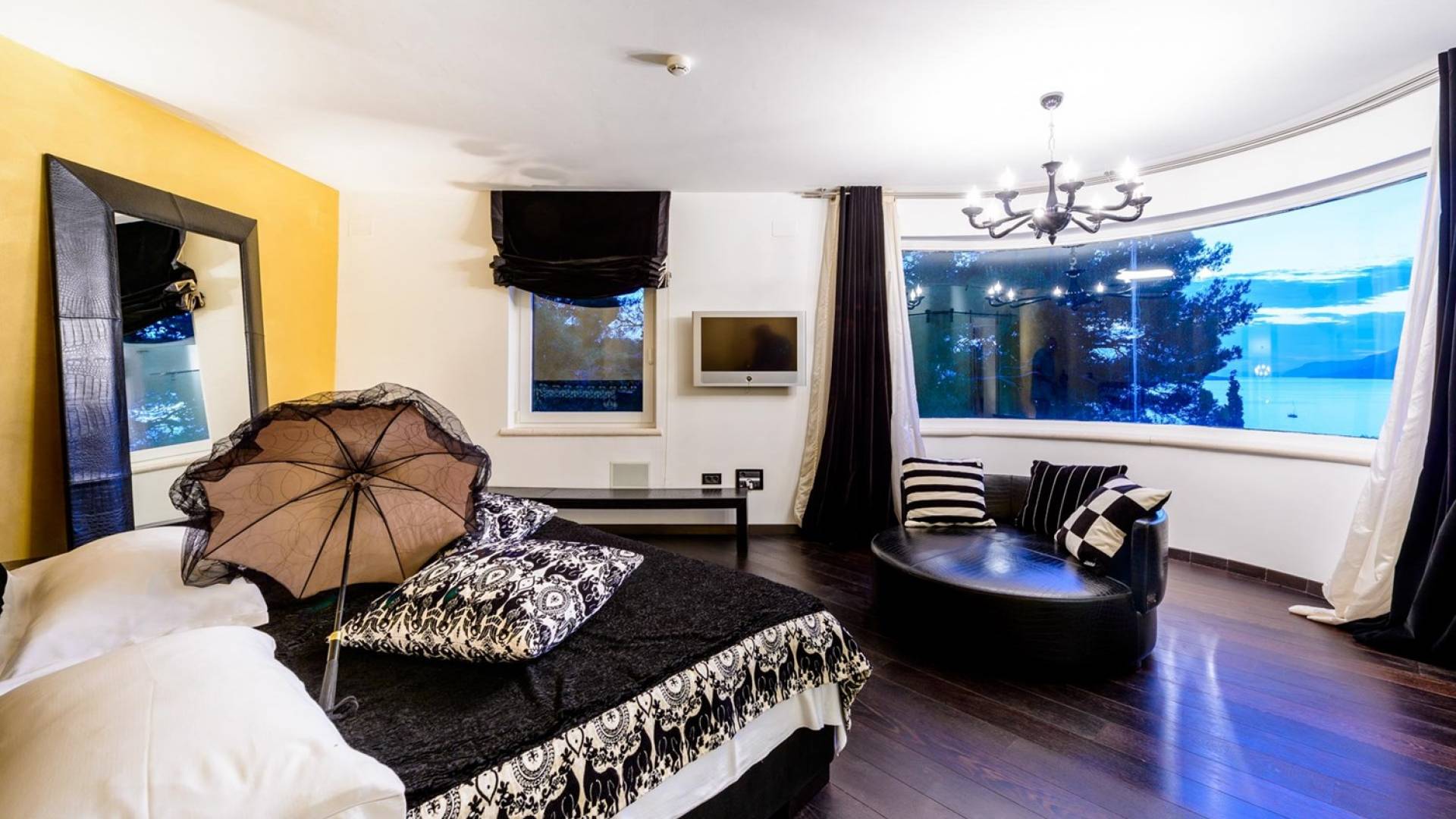 Das Erdgeschoss der Villa Royal Dubrovnik ist mit Innentreppen aus Marmor mit dem großzügigen Erholungsbereich verbunden. Die beiden Zimmer mit Doppelbetten befinden sich im ersten Stock; Ein Schlafzimmer hat auch Sitzmöbel zum Entspannen. Das zweite Zimmer verfügt ebenfalls über ein Designer-Doppelbett und ein modern ausgestattetes Badezimmer mit Dusche. Von diesem Raum gibt es einen Ausgang auf die schöne Terrasse voller Sonnenschein. Auf dieser Etage gibt es auch ein modernes Badezimmer mit Whirlpool und ein weiteres Zimmer mit einem modernen und Designer-Sofa, das als Bett genutzt werden kann. Auf der zweiten Etage der Villa Royal Dubrovnik gibt es ein Hauptschlafzimmer mit eigenem Bad und ein großes Wohnzimmer mit Terrasse und herrlichem Blick auf das offene Meer. Vom Wohnzimmer gibt es einen Ausgang zur Terrasse mit Swimmingpool. Die Terrasse mit Swimmingpool ist geräumig, vor Blicken geschützt, umgeben von mediterranen Bäumen und Pflanzen. Dieses elegante Schwimmbad mit eigenem Wasserfall, Wassermassage und Geysir-Optionen wartet darauf, von Ihnen in absoluter Privatsphäre genossen zu werden.