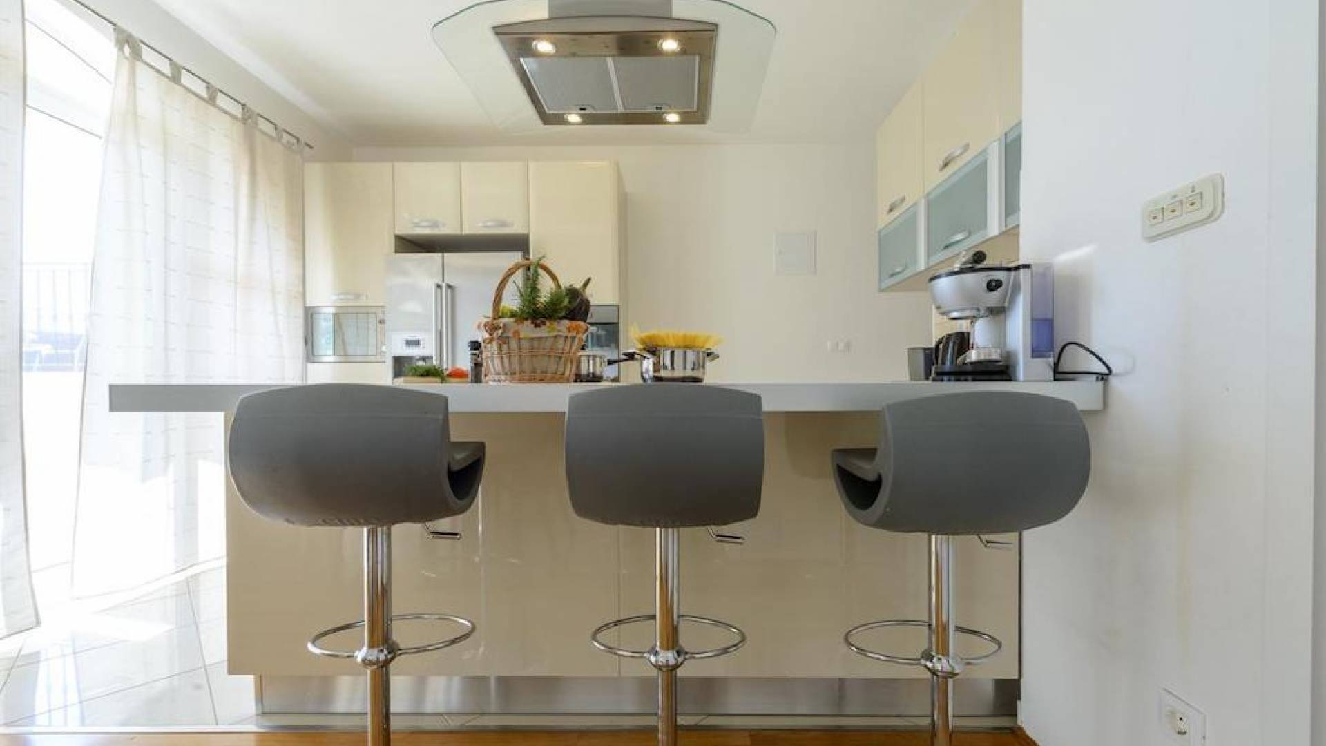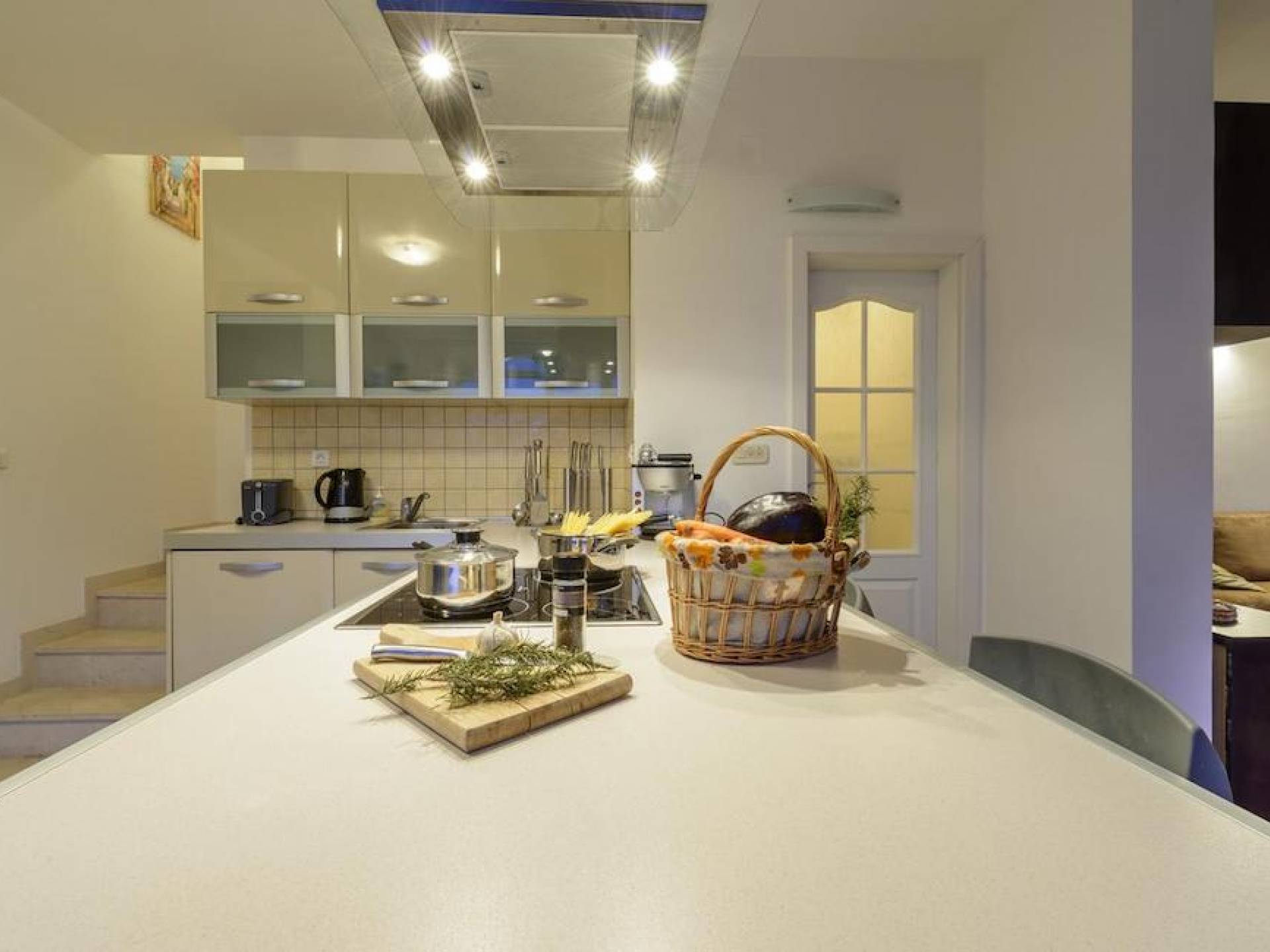 Villa Sana Via Ferienwohnung mit einer Innenfläche von 120 m2 und 40 m2 Terrassen hat zwei Etagen. Insgesamt gibt es zwei Doppelschlafzimmer, ein Studio-Apartment, 3 Badezimmer und ist für 6 Personen + 2 Personen geeignet, die auf einem ausziehbaren Sofa im Wohnzimmerbereich untergebracht werden können.