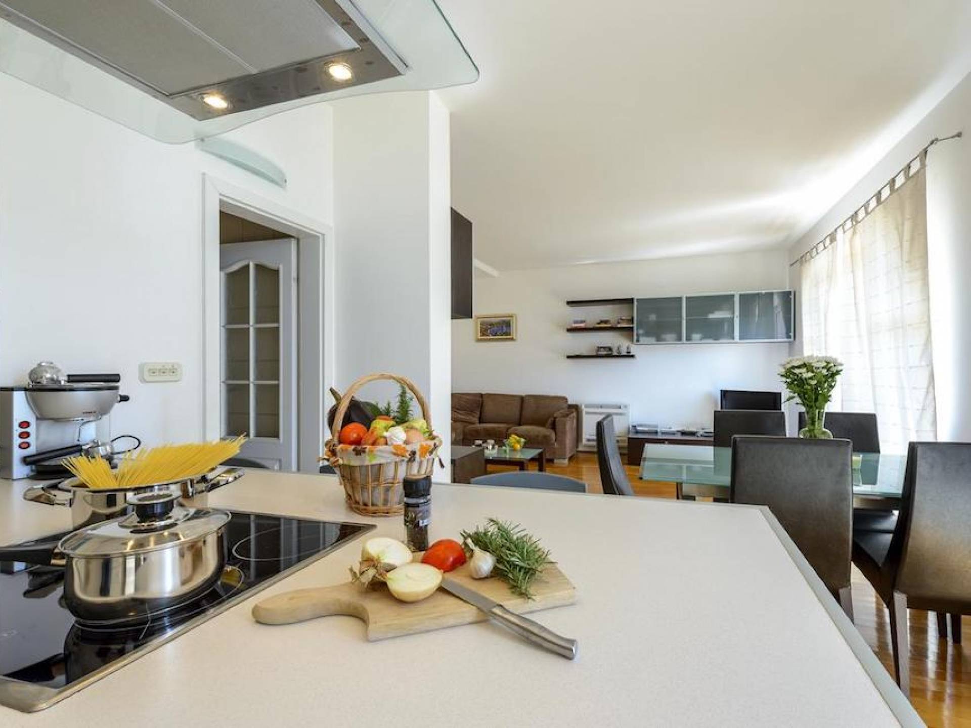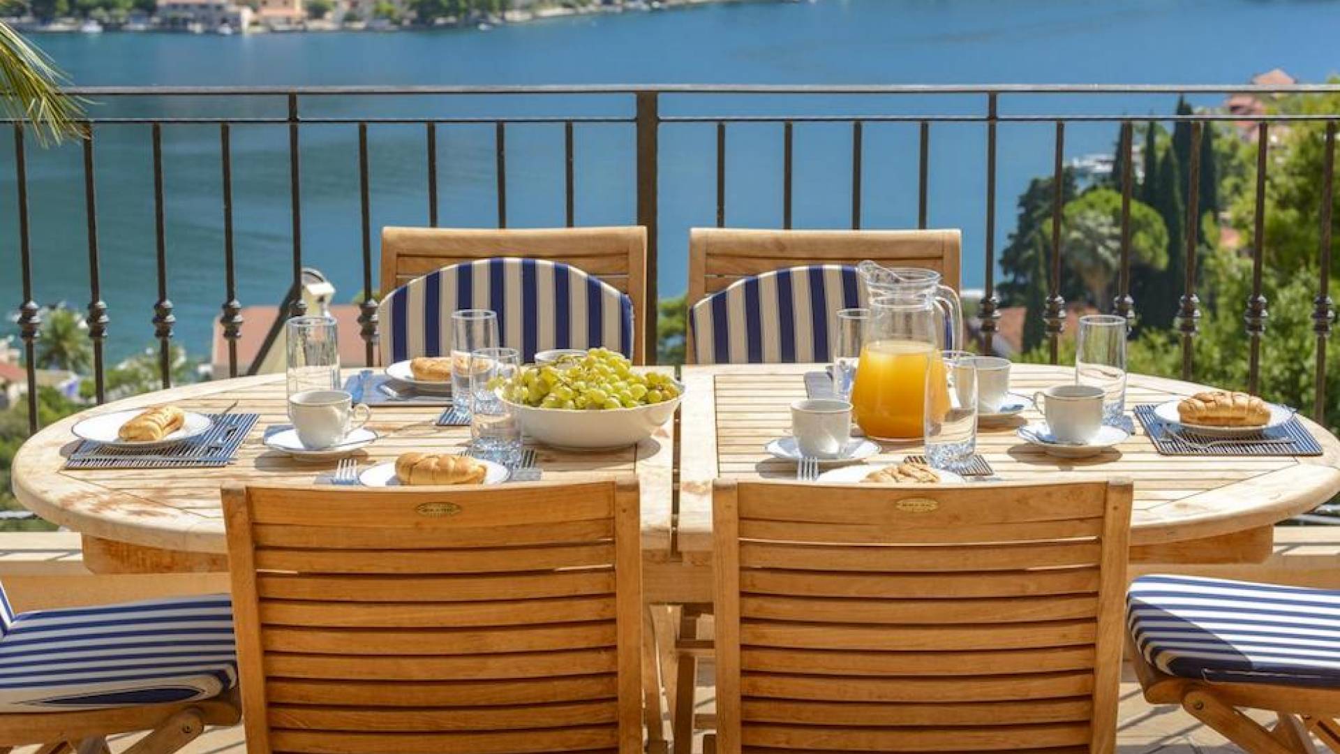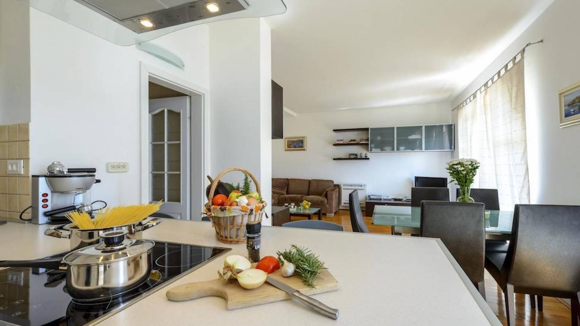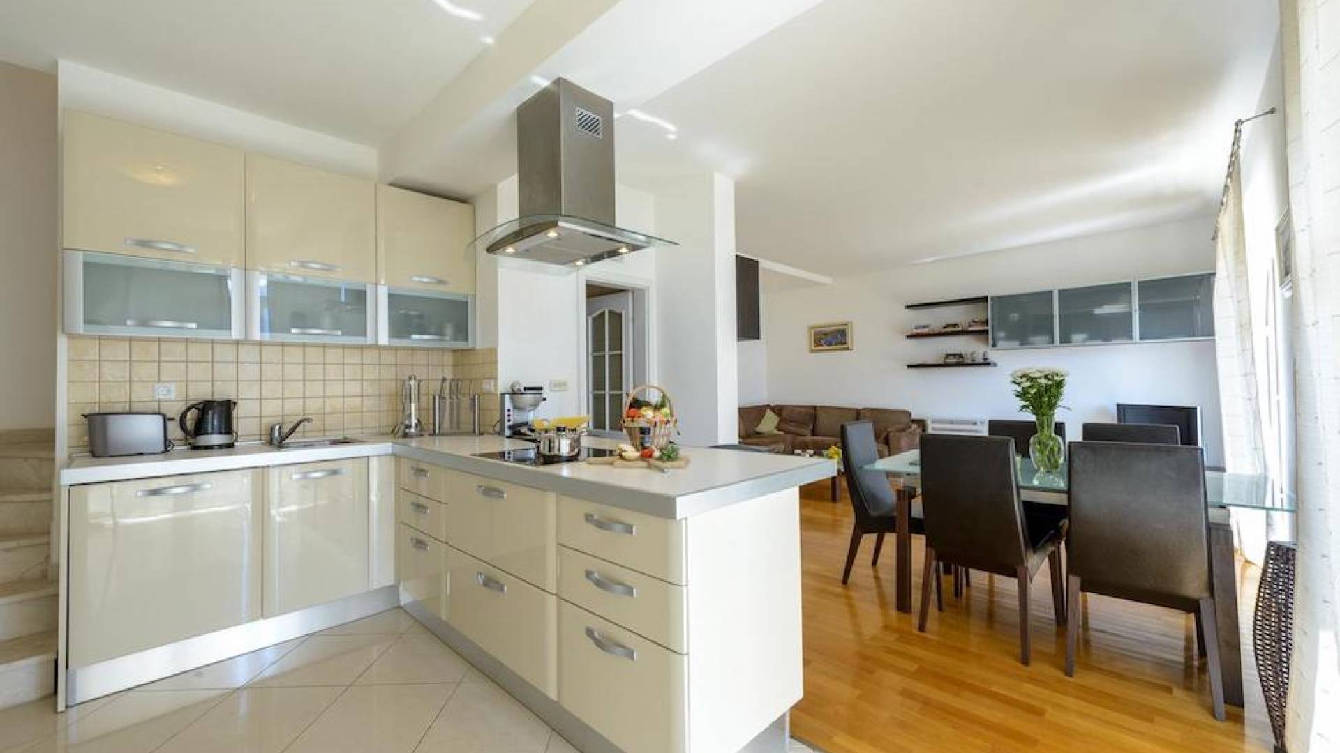 Die Terrasse ist der perfekte Ort für Geselligkeit, Vergnügen und Spaß. Oft verbringen die Gäste den ganzen Tag auf der Terrasse beim Sonnenbaden, Grillen vorbereiten, sich im Pool erfrischen, immer mit einem herrlichen Blick über die Bucht und das kristallklare Adriatische Meer. Parkplätze sind außerhalb des Hauses und in der Garage neben dem Haus vorhanden.