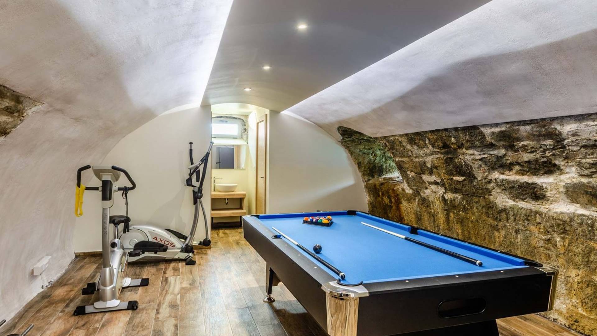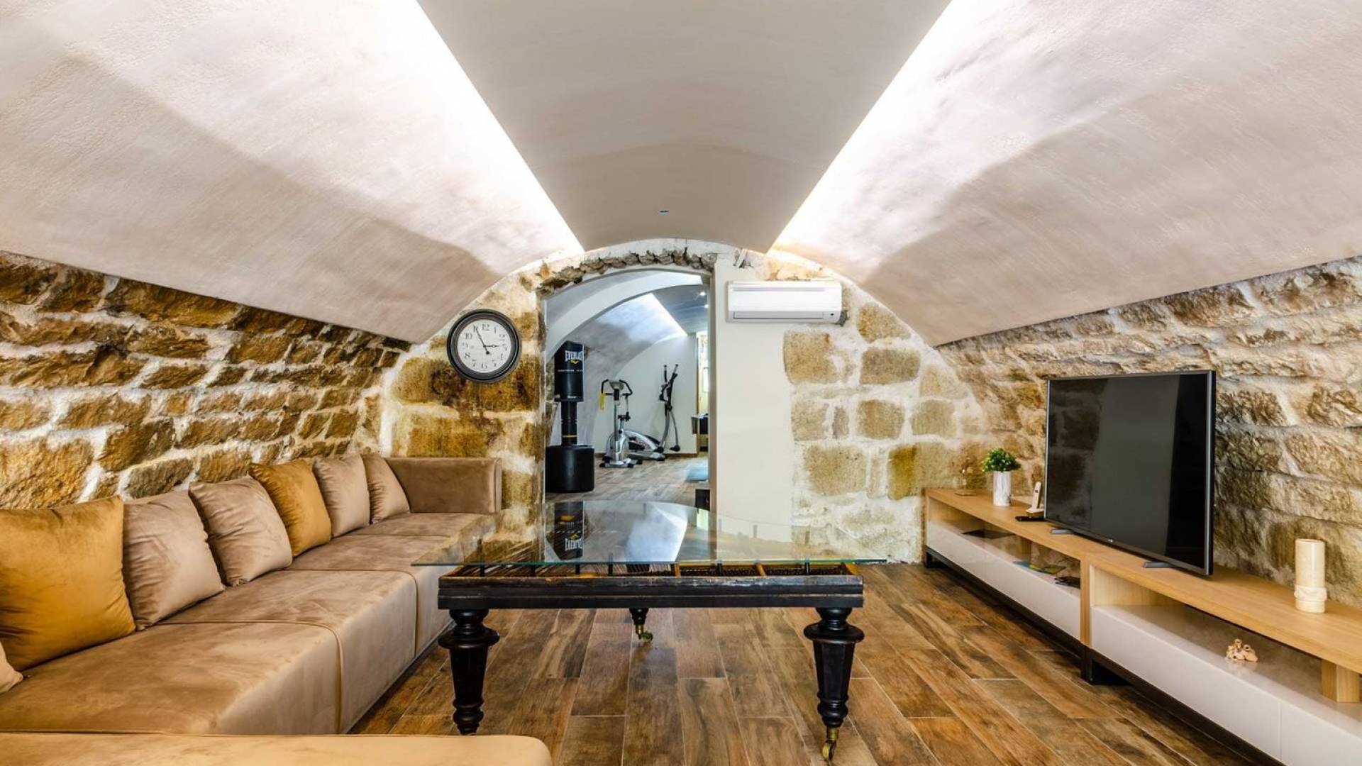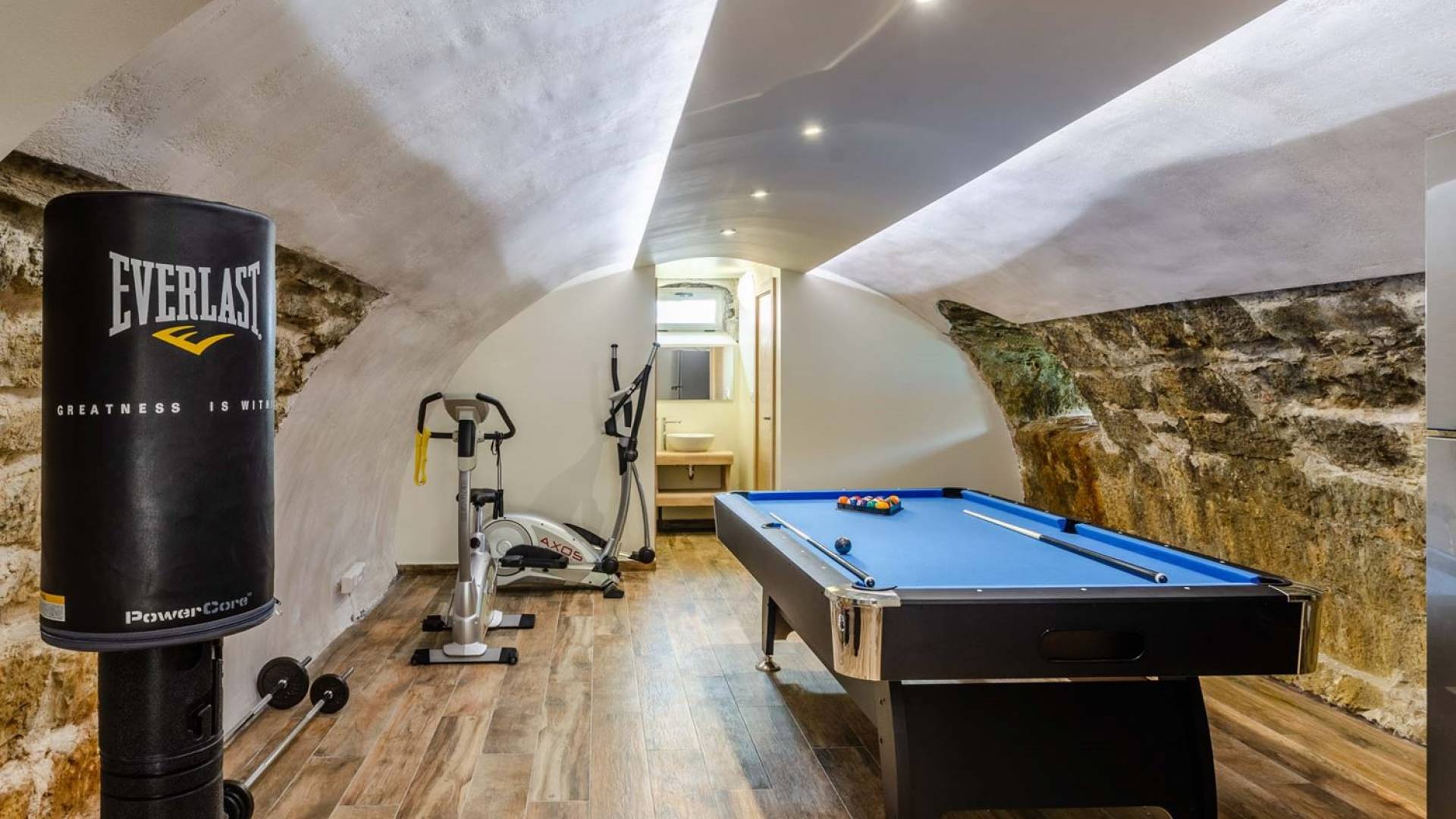 Neben dem atemberaubenden Äußeren hat die Villa ein wunderbares, geschmackvoll eingerichtetes Interieur, das seinen Gästen mehr als nur Komfort bietet. Villa Mystery bietet Unterkunft für 8 Gäste in 4 schönen und komfortablen Schlafzimmern, jedes mit eigenem Bad. Wenn Sie das Haus durch die Terrassentüren betreten, gelangen Sie in das Erdgeschoss der luxuriösen Villa Mystery. Hier finden Sie einen gemütlichen und komfortablen Wohn- und Essbereich mit einer modernen und voll ausgestatteten Küche. Heutzutage macht ein geschäftiger Lebensstil jeden Moment der Freizeit sehr wertvoll – deshalb bietet diese Villa alle Annehmlichkeiten, die Sie brauchen, um sich zu entspannen und dem Druck des Alltags zu entfliehen. Auf dieser Ebene befindet sich auch ein Fitnessraum mit Fitnessgeräten und einem Billardtisch sowie eines der Badezimmer.