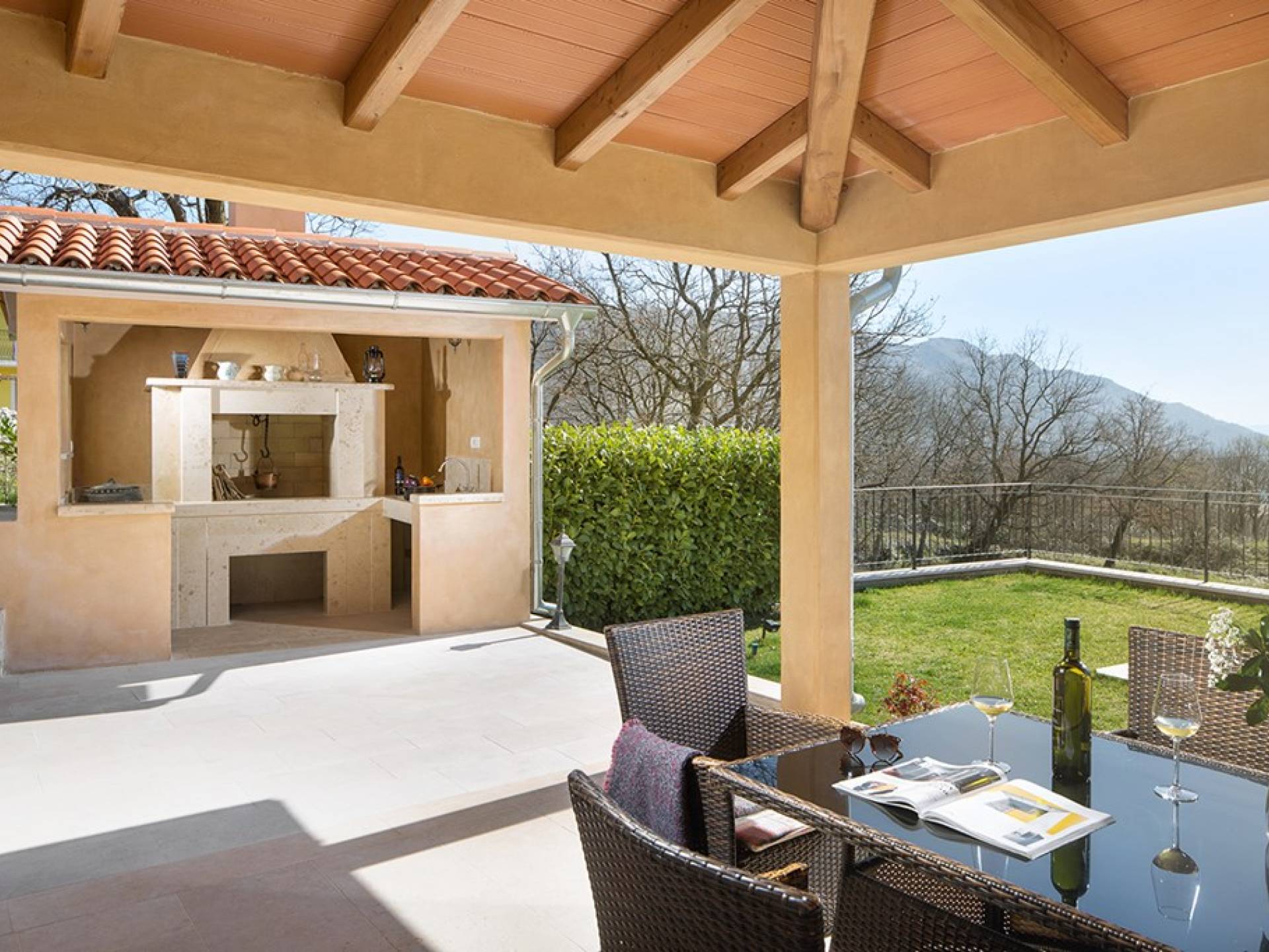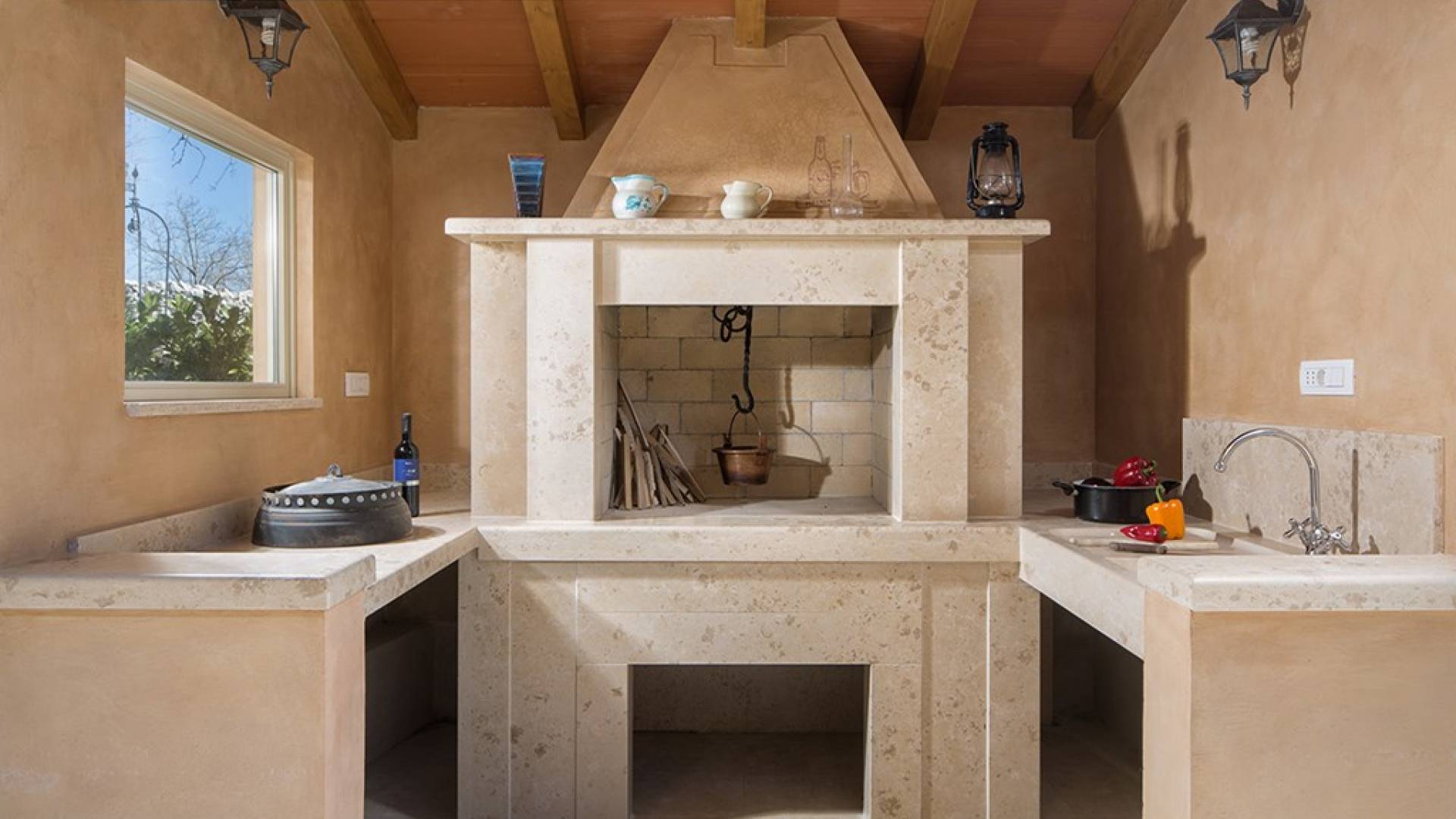 Villa Palachina Antishova Istria ist vollständig an einen modernen Lebensstil angepasst und ihr Charme sind die Elemente der rustikalen Architektur, der Fassade im ursprünglichen Stil mit natürlichen Materialien und erdigen Farben und einem Steinring von der traditionellen istrischen Zisterne aus dem Jahr 1880.