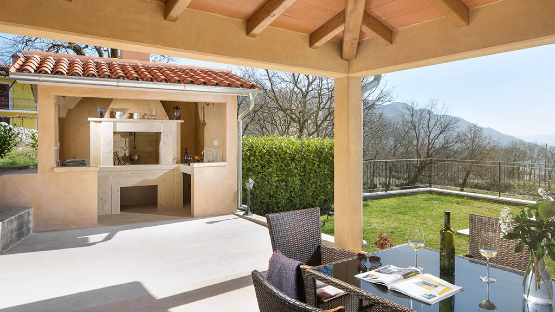Die Entfernung zum nächsten Supermarkt beträgt 4 km, das erste Restaurant 1,5 km (mögliche Verpflegung nach Vereinbarung), die ersten Strände sind 3 km entfernt und die Entfernung zu den schönsten Stränden Istriens in Rabac beträgt 10 km . Die Villa Palachina Antishova liegt nur eine Autostunde von allen natürlichen und kulturellen Sehenswürdigkeiten Istriens entfernt. Mit einer rustikalen Bauweise des Hauses und besonderer Berücksichtigung der Regeln des Feng Shui sind Haus und Garten mit Geräten ausgestattet, die dem modernen Lebensstil und den Bedürfnissen entsprechen, und vollständig vom WLAN-Signal abgedeckt.