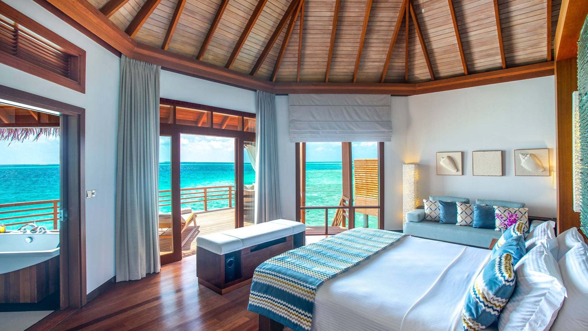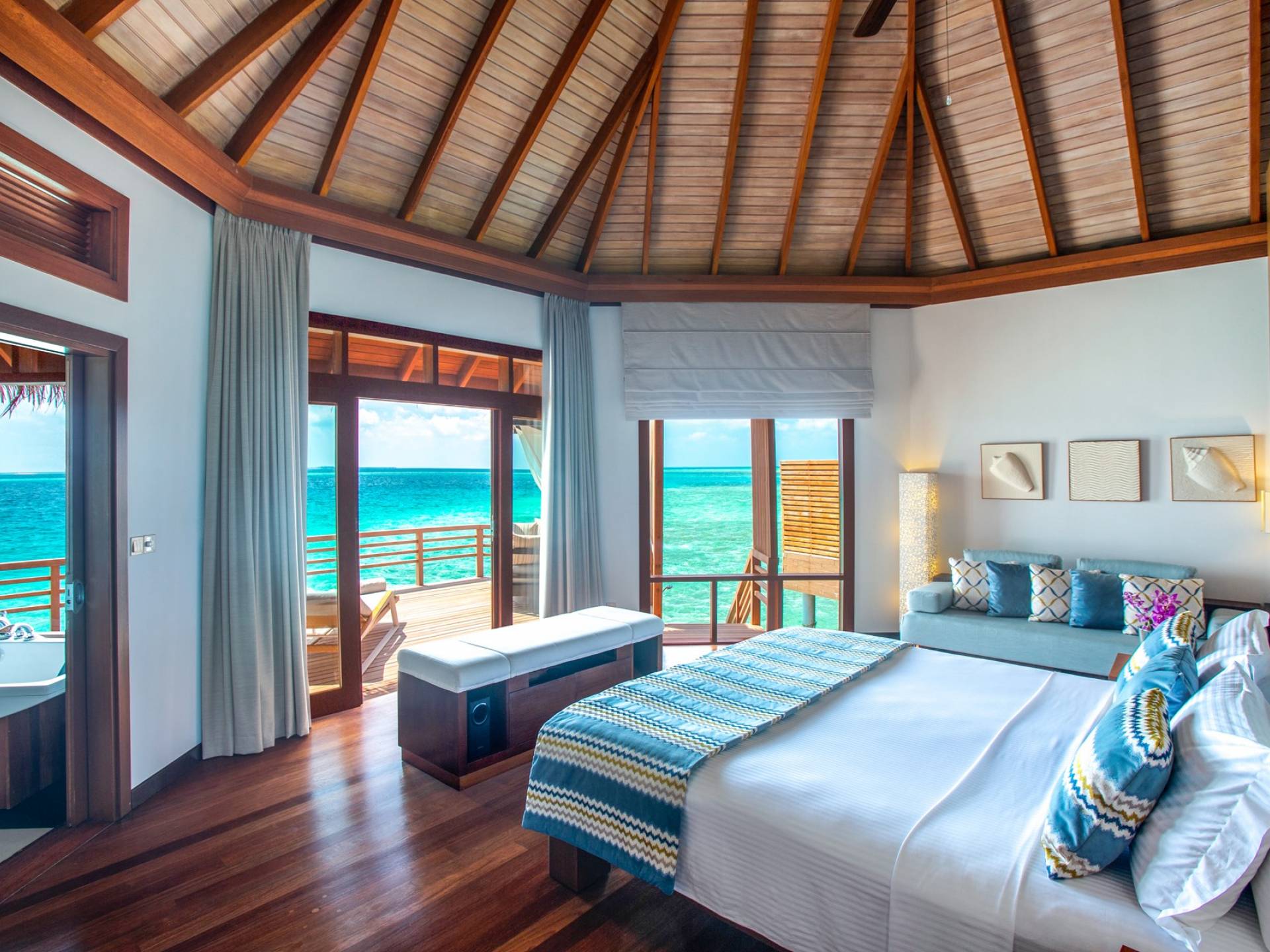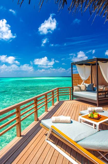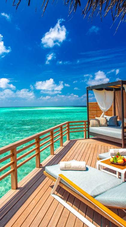 Diese Wasservillen auf Baros Maldives sind Ihr ganz persönlicher Rückzugsort über der Lagune. Sie sind warme Holzkokons der Ruhe. Unsere Lagune liegt direkt hinter Ihrem überdachten Tagesbett und wartet darauf, dass Sie hineinspringen und sie erkunden, während Sie von einem breiten Holzdeck endlose Ausblicke auf das Meer genießen können. Entspannen Sie abends inmitten spektakulärer Sonnenuntergänge und beobachten Sie, wie sich der Himmel in eine Lichtshow aus Sternbildern verwandelt. Genießen Sie im Inneren eine private Welt aus elegant-gemütlichen Möbeln und edlen Annehmlichkeiten, mit durchdachten Hauch von Genuss, wohin Sie auch schauen.