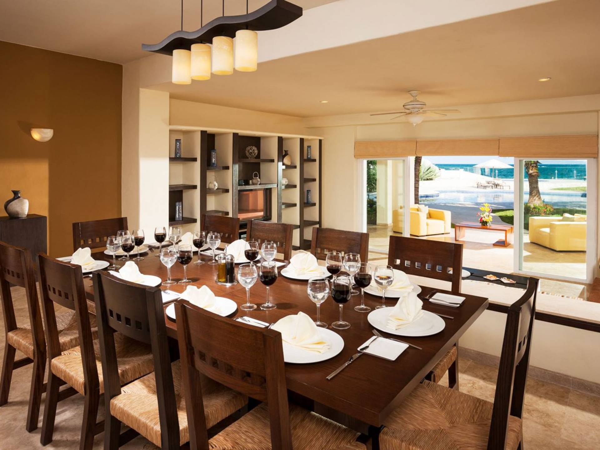 Die Villa wurde für große Partys entworfen und ist klimatisiert, mit einer voll ausgestatteten Gourmet-Küche aus Granit mit Edelstahlgeräten, Nespresso-Kaffeemaschine, Spüle, Direktwahltelefon, Geschirrspüler, Kühl-/Gefrierschrank und einem 6-Flammen-Herd Herd. Die gastronomischen Einrichtungen sind eines der Highlights von Azul Carola. Die Gäste haben mehrere Gourmet-Optionen, um den perfekten Urlaub zu vervollständigen. Auf beiden Etagen stehen Esstische für 12 Personen zur Verfügung, unabhängig davon, ob die Gäste sich entscheiden, ihre Mahlzeiten selbst zuzubereiten, den optionalen Kochservice in der Villa in Anspruch zu nehmen oder Gourmet Inclusive im Azul Beach Hotel zu speisen.
