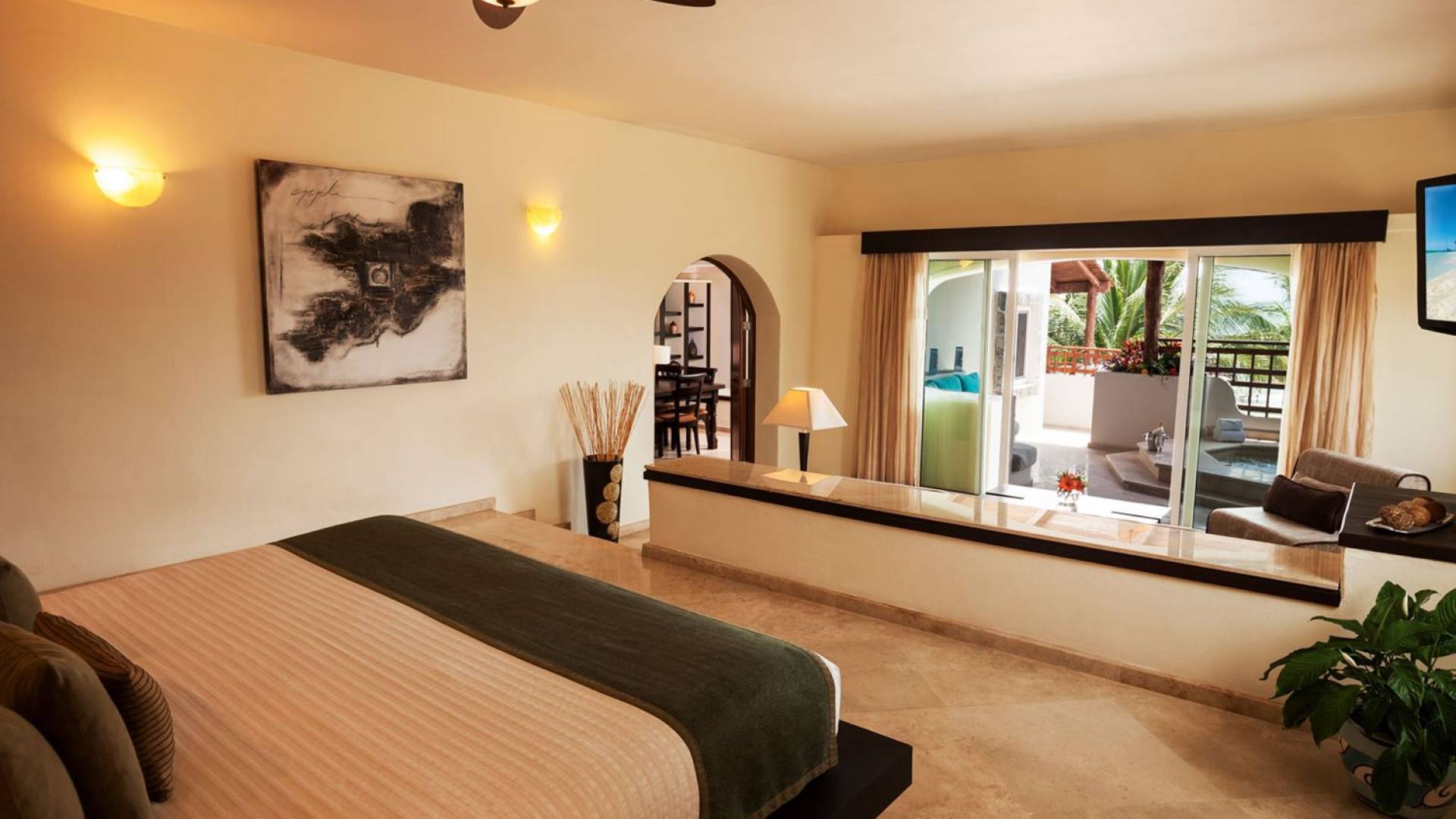 Die zwei 400 Quadratfuß großen Deluxe-Schlafzimmer verfügen über Kingsize-Betten und ein eigenes privates Badezimmer aus Marmor und Mahagoni mit einem Einzelwaschbecken und einer Regenwalddusche. Die Deluxe-Zimmer haben auch eine Terrasse mit Meerblick, die sich für faule Nachmittage oder Familientreffen eignet, mit einer Hängematte im balinesischen Stil, wo die Gäste einen ruhigen, romantischen Sonnenuntergang genießen können.