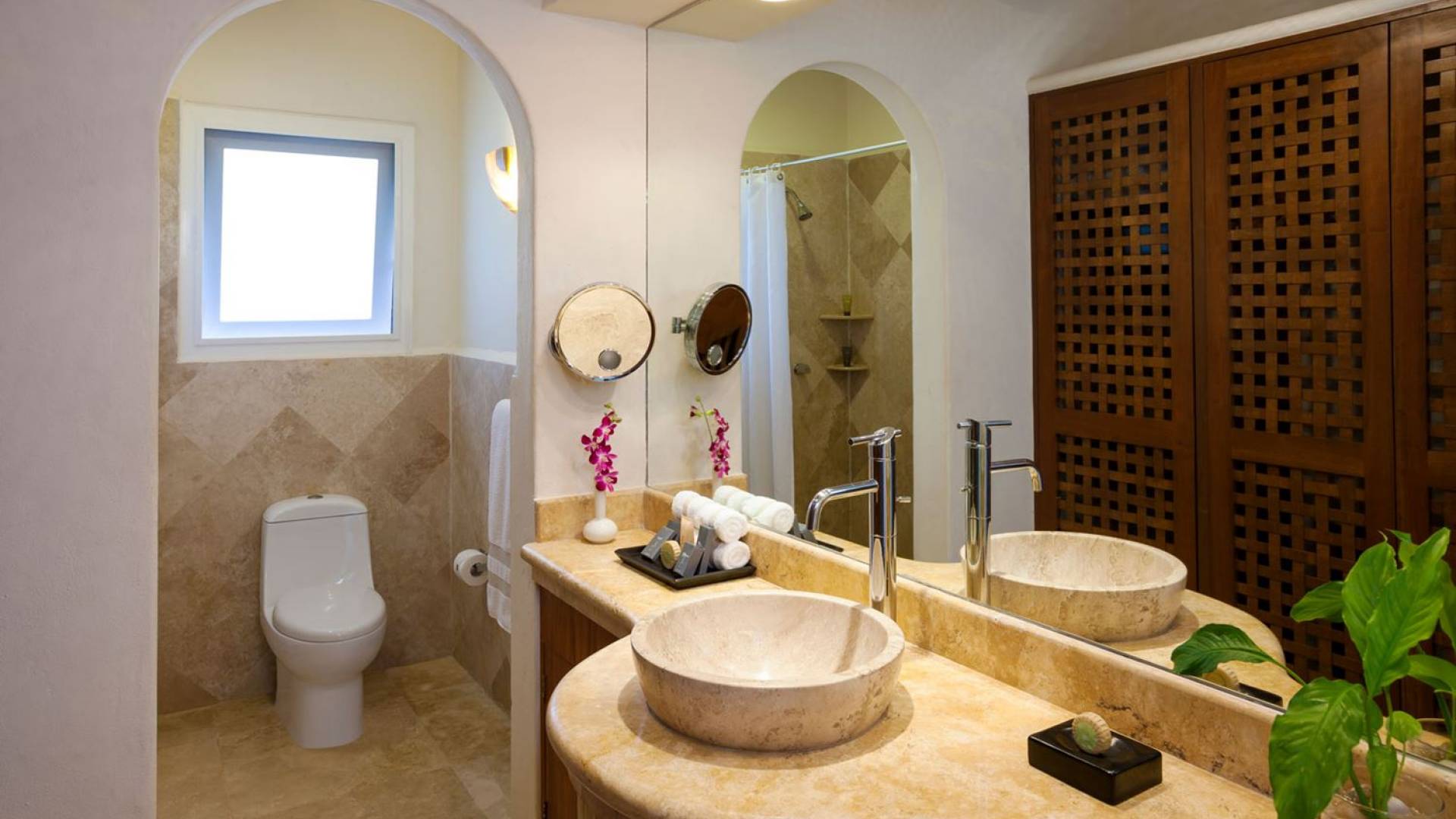 Die Villa umfasst auch zwei 361 Quadratfuß große Classic-Schlafzimmer, die sich ein Badezimmer aus Marmor und Mahagoni mit einem Einzelwaschbecken und einer Regenwalddusche teilen. Die Zimmer verfügen über ein Doppelsofa, ein Kingsize-Bett und einen großen Balkon oder eine Terrasse.