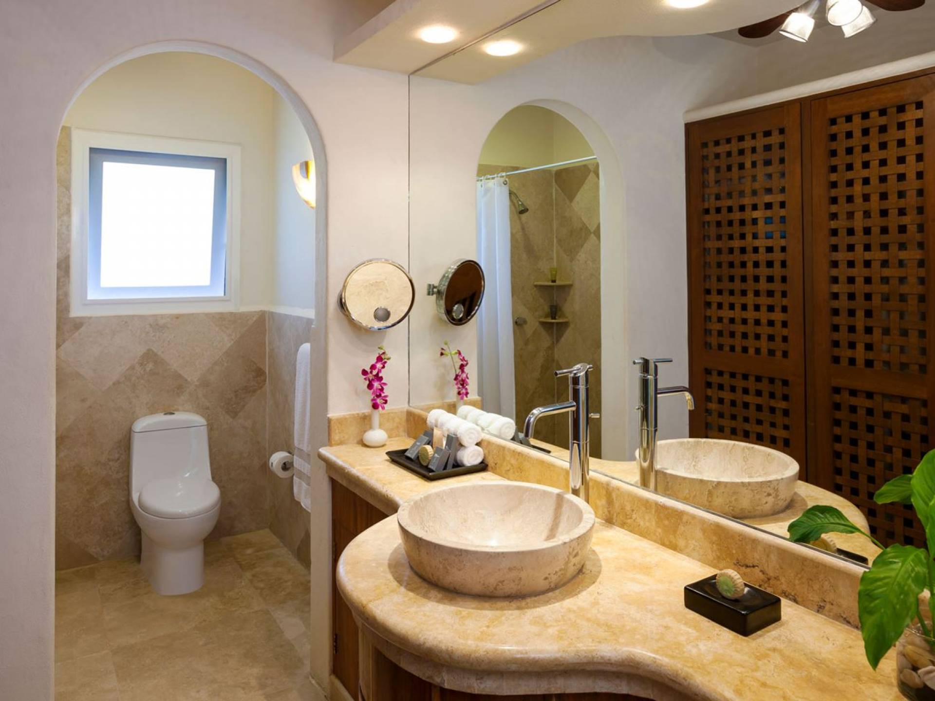 Das Innere der Villa verbindet Strand-Chic mit tropischer Eleganz. Die handgefertigten Mahagonimöbel schmücken die 6 übergroßen Schlafzimmer der Villa mit Meerblick, von denen jedes über eine Terrasse oder einen Balkon, feine italienische Bettwäsche, LCD-Flachbildschirm, Kabel- und Satellitenfernsehen, DVD-Player, iPod-Dockingstation, Radio/Wecker, Safe, Toilettenartikel, Haartrockner, Bügeleisen und Bügelbrett und individuell regulierbare Klimaanlage.