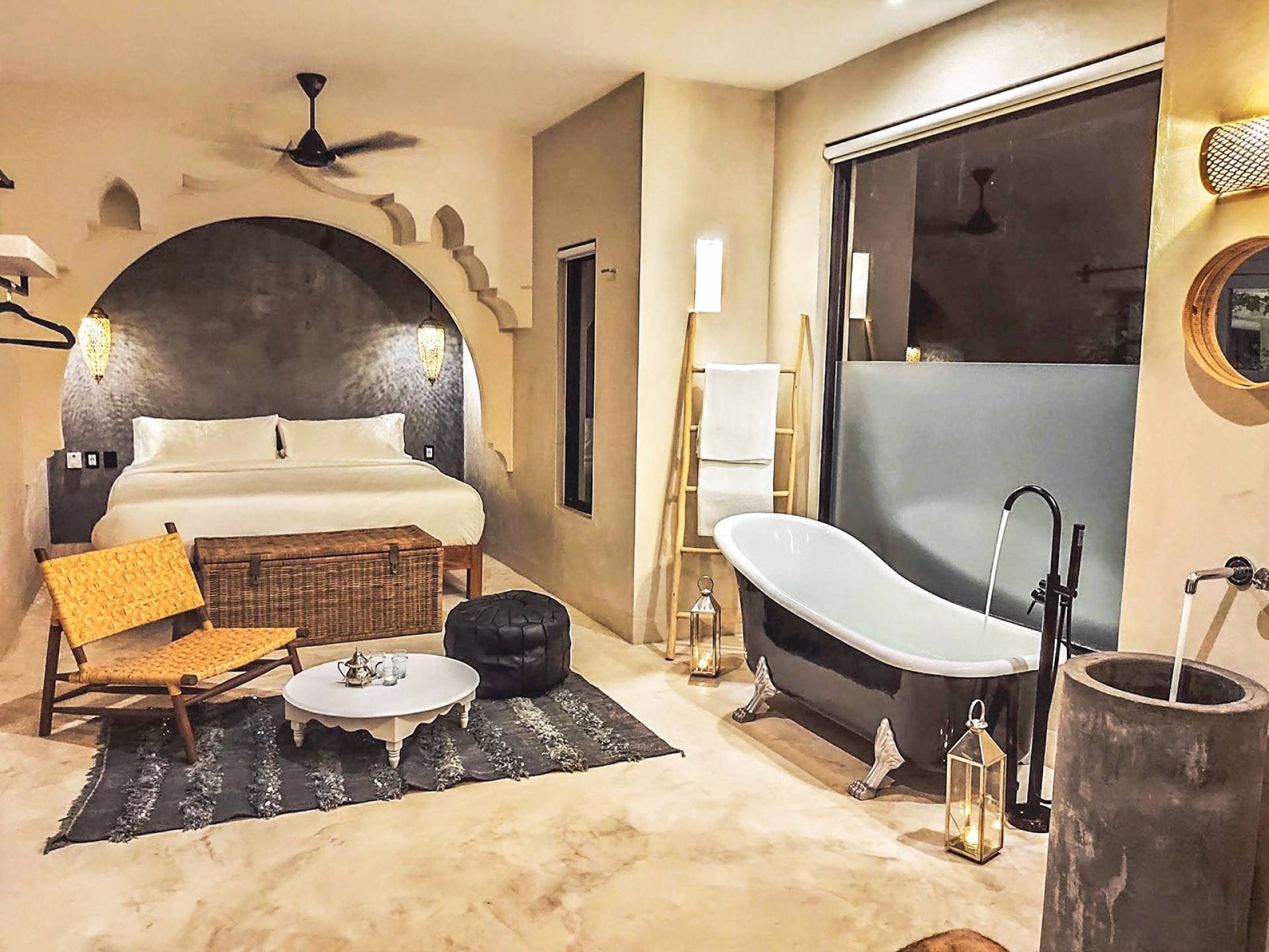Mit seiner Verschmelzung von marokkanischem und mexikanischem Design ist Ambre et Epices ein architektonisches Highlight im tropischen Regenwald. Dieses ehemalige Boutique-Hotel wurde kürzlich in eine private Villa mit 8 Schlafzimmern in Tulum mit multikultureller Persönlichkeit umgewandelt.