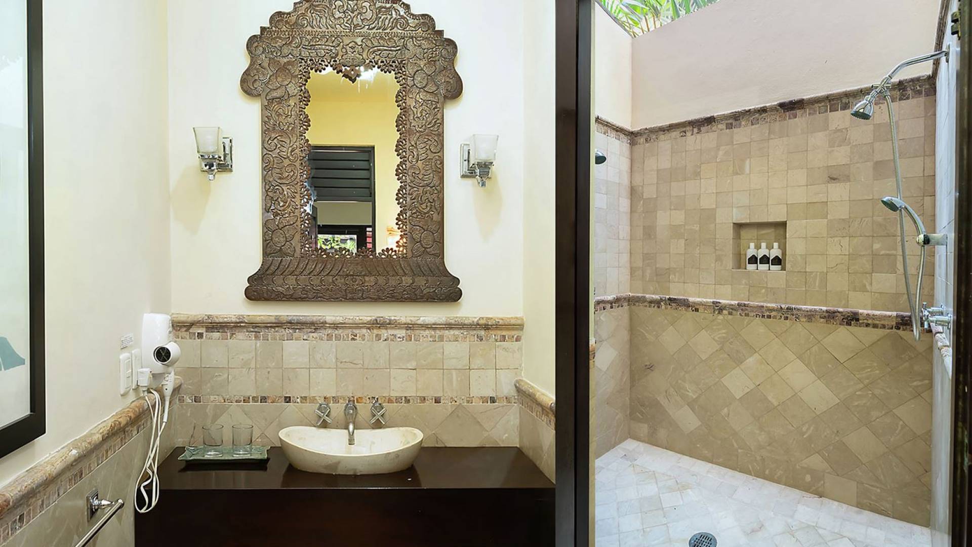 Die Details machen den Unterschied. Details wie handgeschnitzte Onyx-Waschbecken in den Badezimmern und unsere eigene Linie von Spa-Produkten, die von Mayas mit frischen Zutaten aus der Region hergestellt werden. Details wie handgefertigte Fliesen und lokal abgebauter Stein für die Böden, Mahagoni-Möbel in schlichtem, aber zeitlosem Stil. Dies sind die Details, die Casa Buena Suerte unvergesslich machen. Warme Farben und zeitgemäße Möbel schaffen zu jeder Jahreszeit eine entspannende Umgebung zum Entspannen. Alle 5 Gästesuiten verfügen über Balkone mit atemberaubender Aussicht, warmer tropischer Brise und natürlich Luxusbettwäsche. Alle unsere Suiten verfügen über ein eigenes Bad und alle über ein luxuriöses Kingsize-Bett. Eine Satellitenküche auf der zweiten Ebene ermöglicht es den Gästen, einen Mitternachtsgenuss zu genießen, ohne die Treppe hinuntergehen zu müssen. Und unsere Bibliothek mit aktuellen Büchern, DVDs, CDs und Spielen ist immer verfügbar.