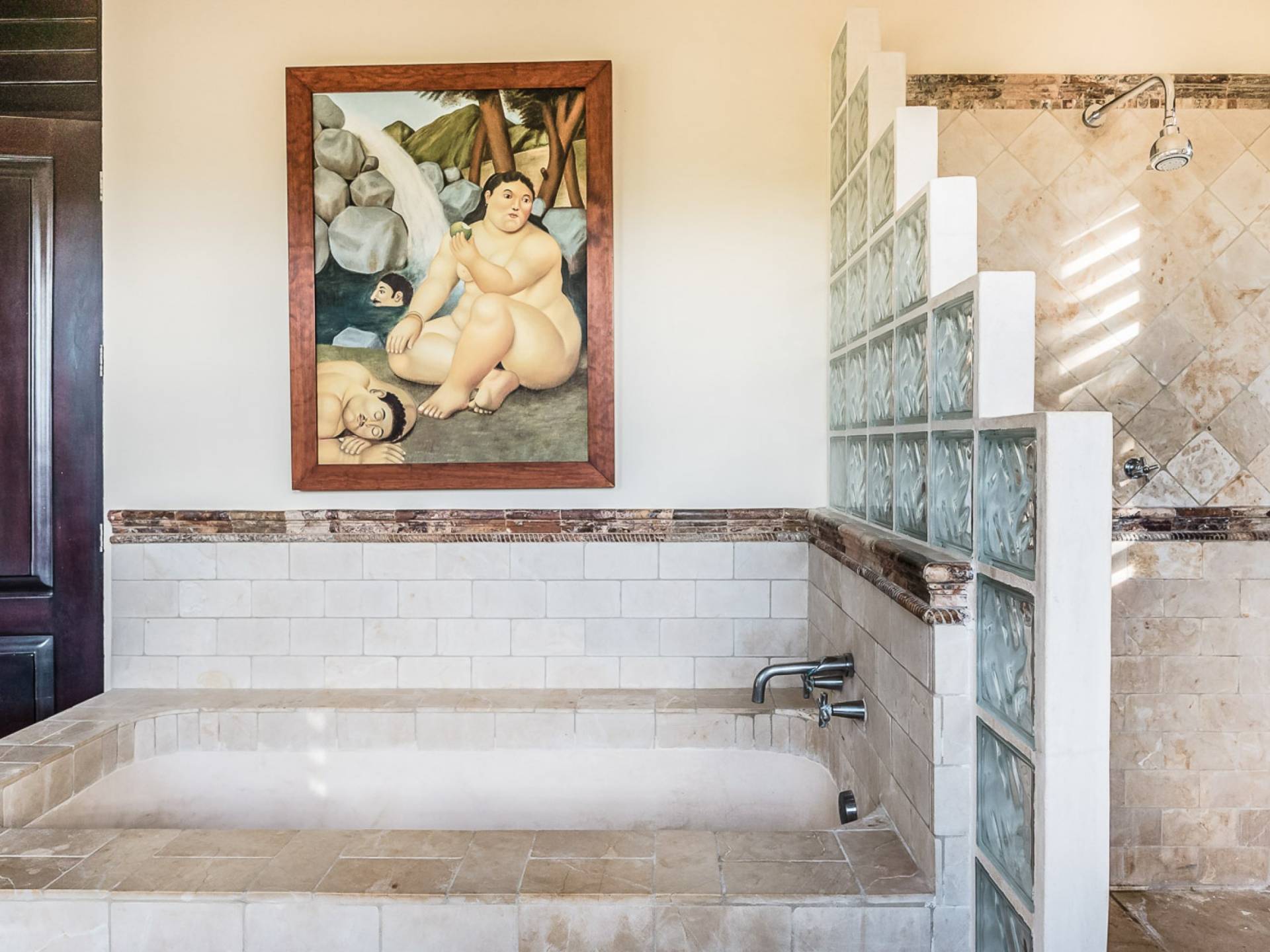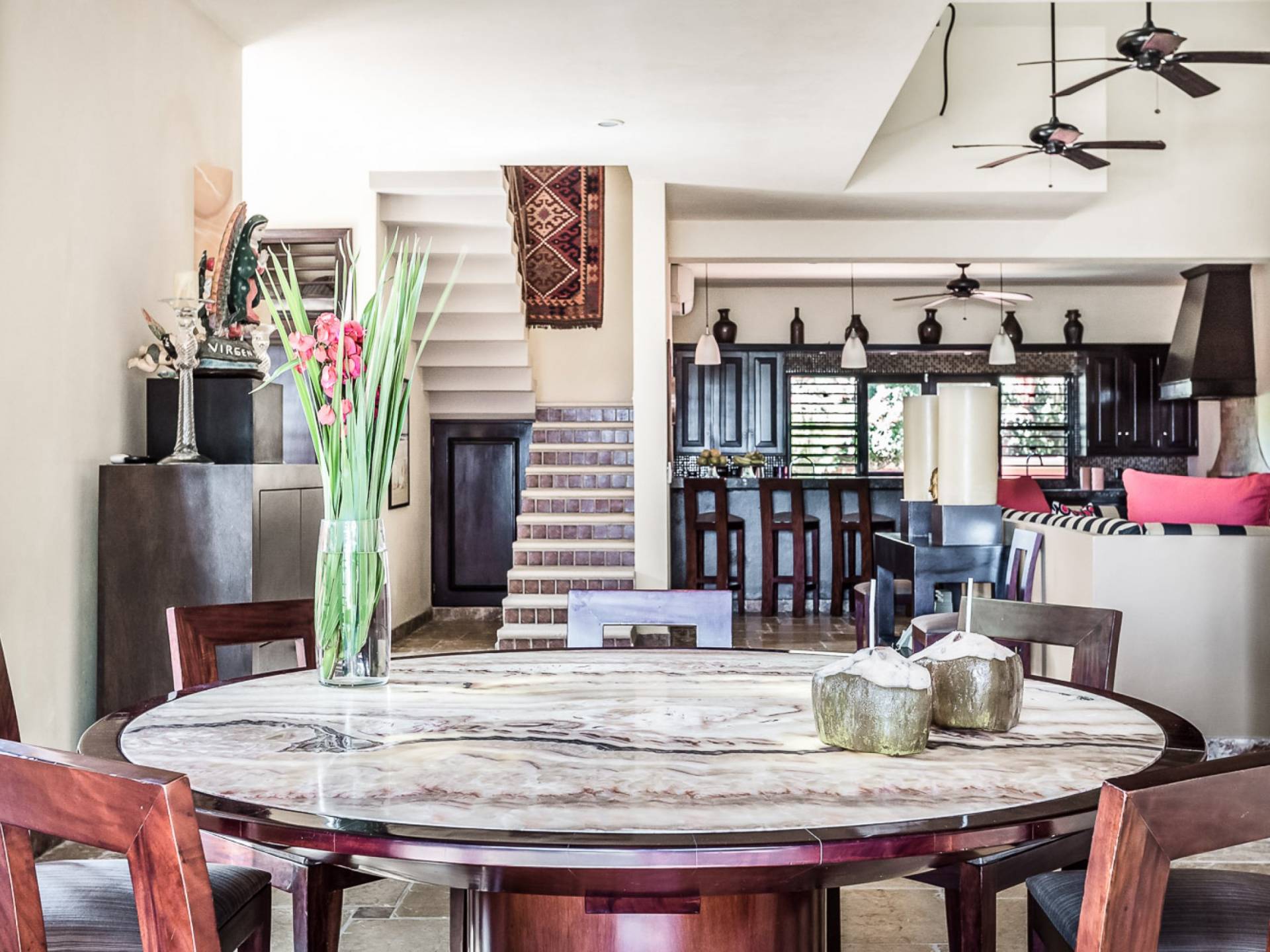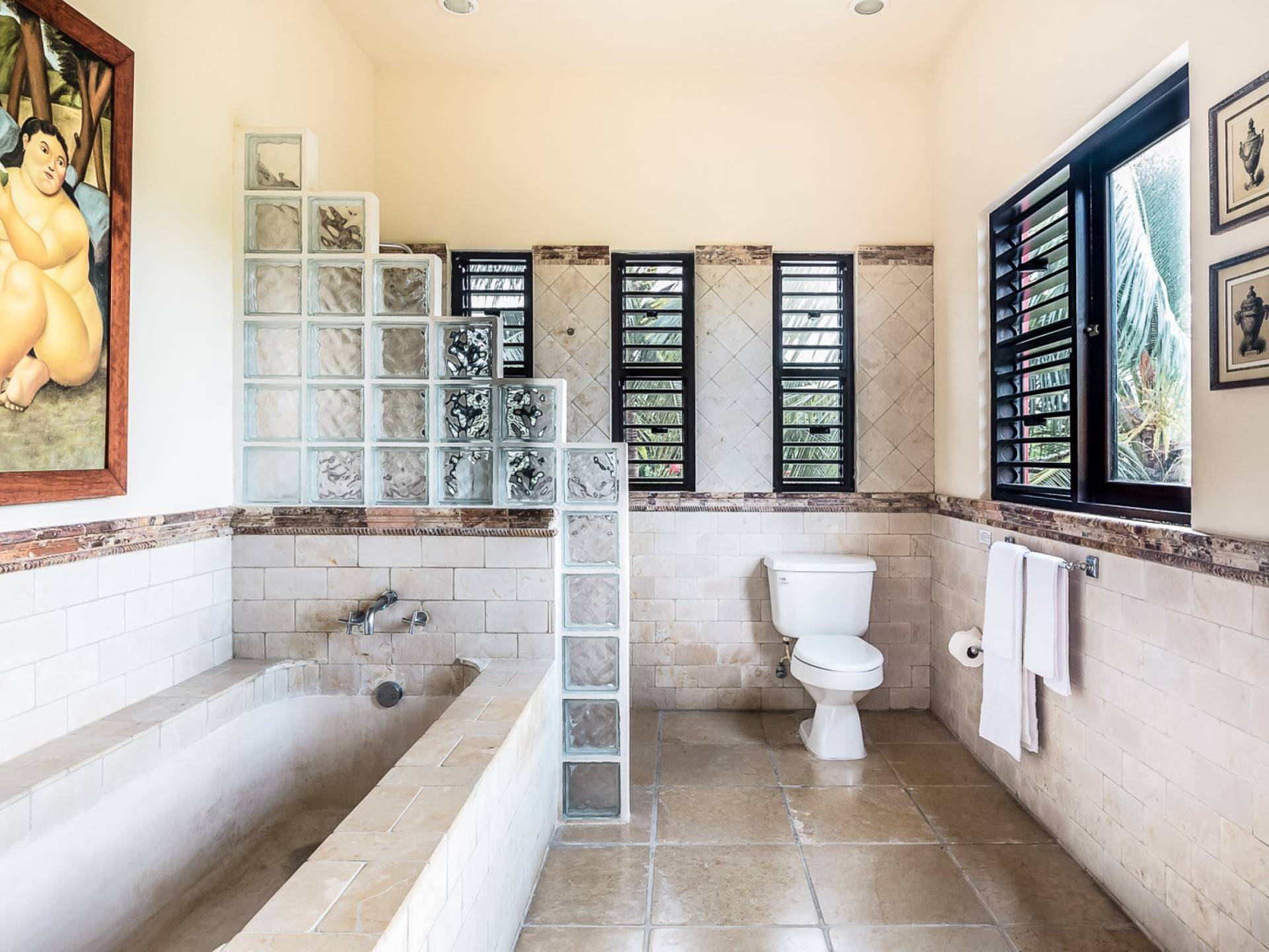 Der Swimmingpool im Casa Buena Suerte ist der größte Pool auf Bahia Soliman. Dieser exquisite Pool ist vollständig mit handgefertigten kobaltblauen Fliesen ausgekleidet, die ihm eine tiefe, satte Farbe und eine seidig glatte Oberfläche verleihen. Der Pool hat eine Nullkante, so dass das Wasser direkt auf das Niveau des Decks steigt, was den Anschein erweckt, als würde es in die Karibik fließen. Es gibt mehrere Flöße, so dass Sie die Sonne genießen können, während Sie im Wasser entspannen, oder, wenn Sie es vorziehen, in einer Chaiselongue auf unserer Poolterrasse entspannen. Direkt gegenüber der Poolterrasse befindet sich unser Wohnzimmer und die Küche im Freien. Getränke und Snacks sind immer in der Nähe. Die Villa verfügt über einen wunderschönen privaten Gartenbereich, der sie zum idealen Ort für Veranstaltungen wie Yoga-Retreats, Firmenretreats und Hochzeiten macht!